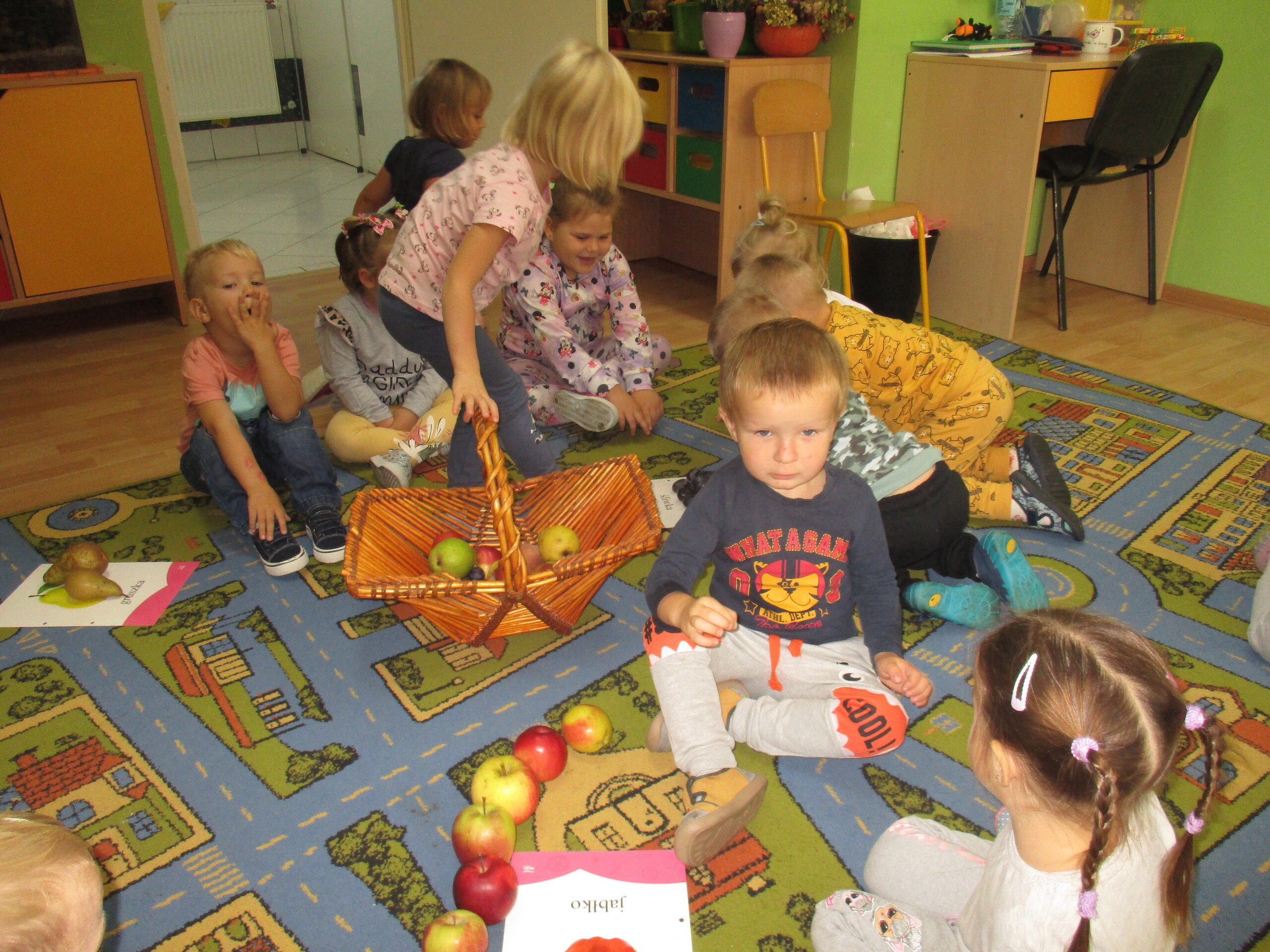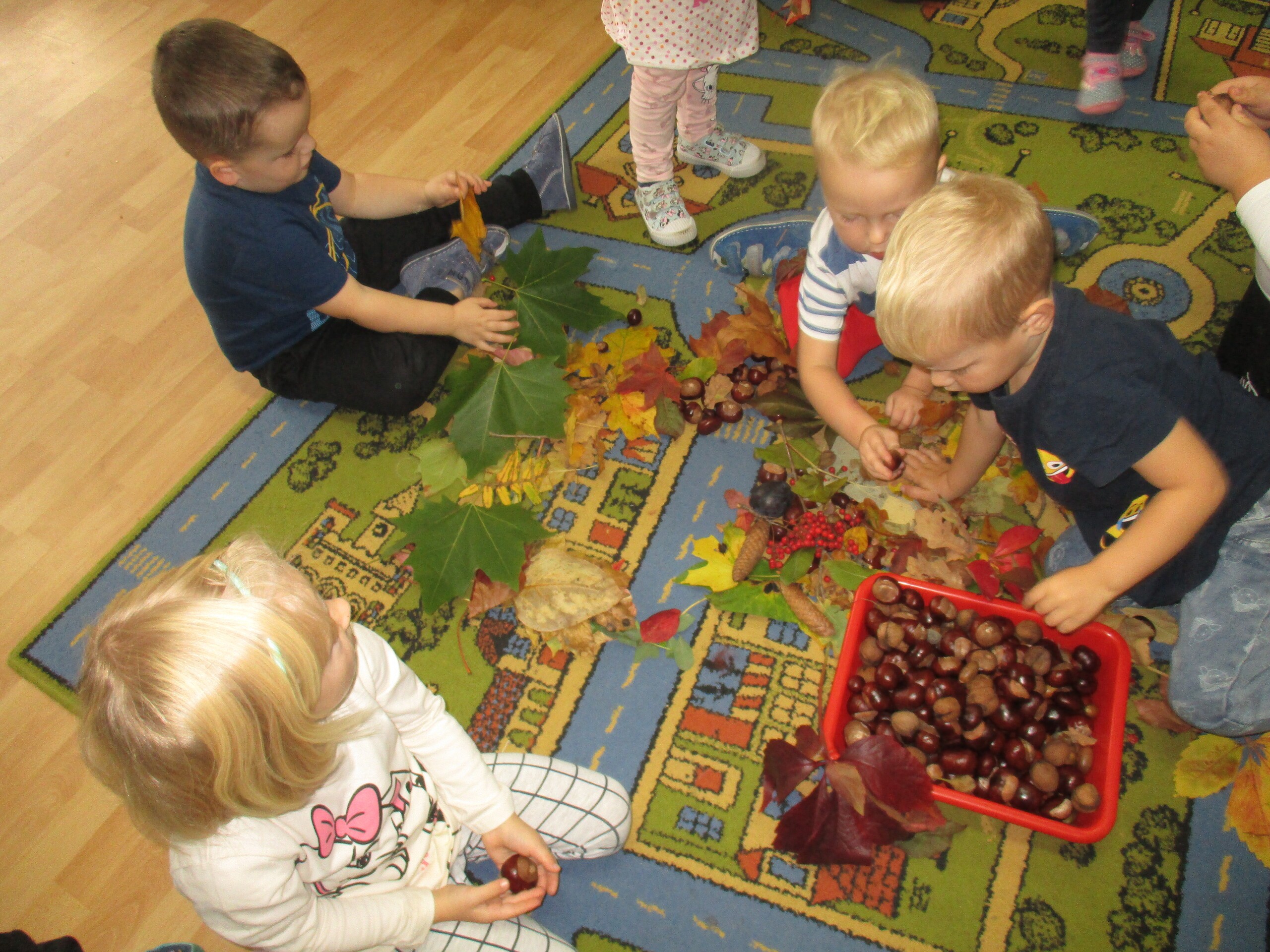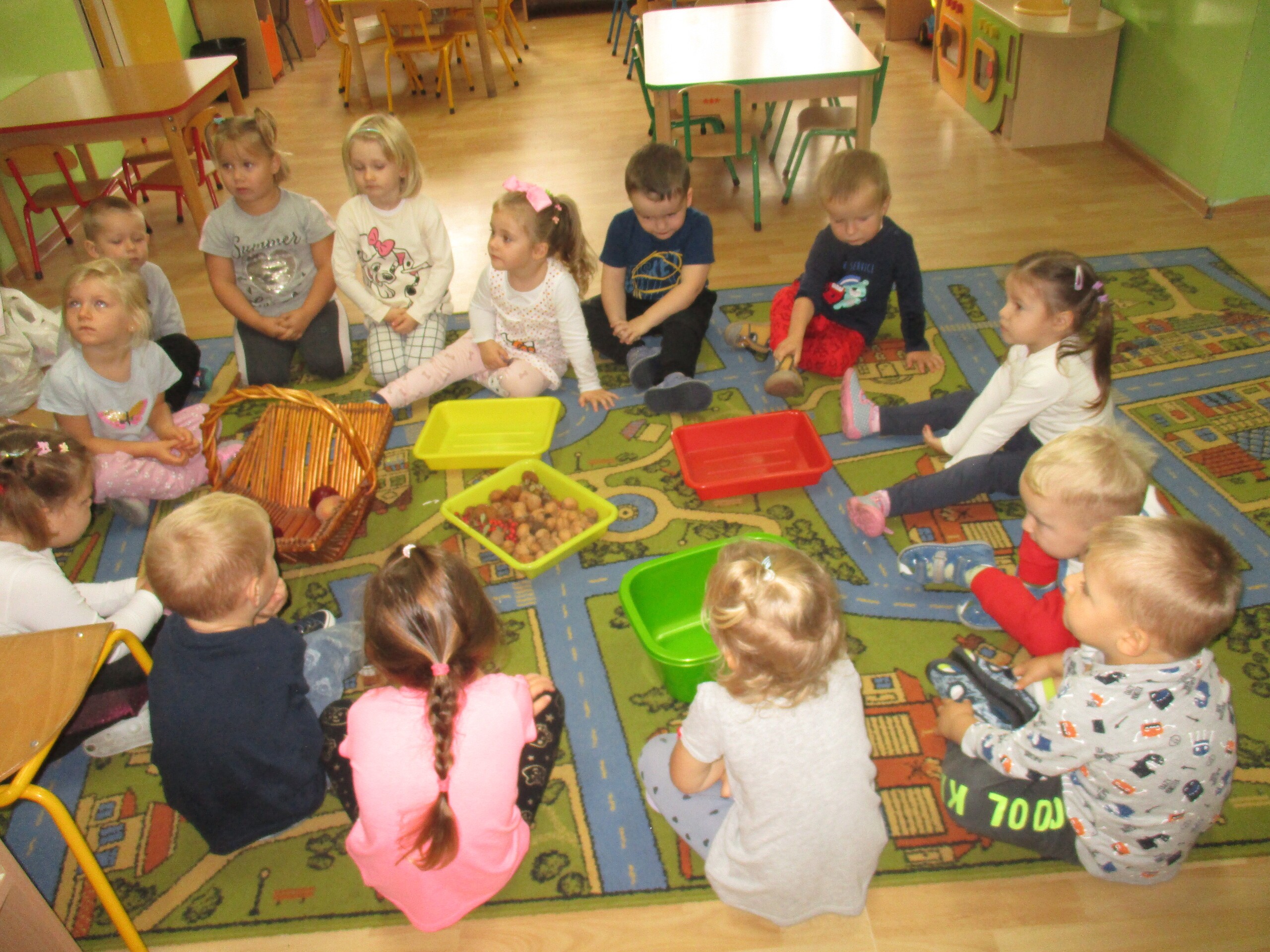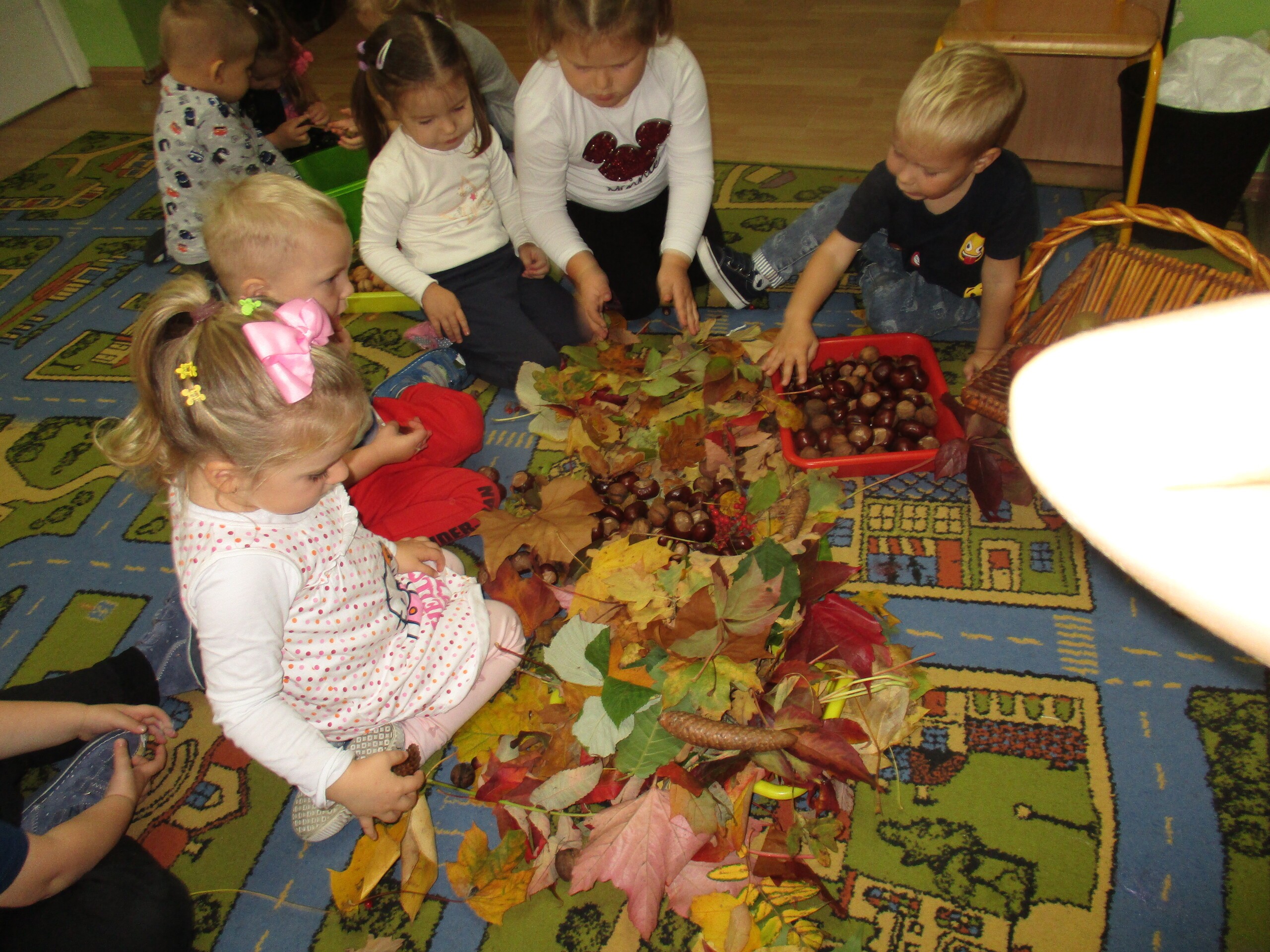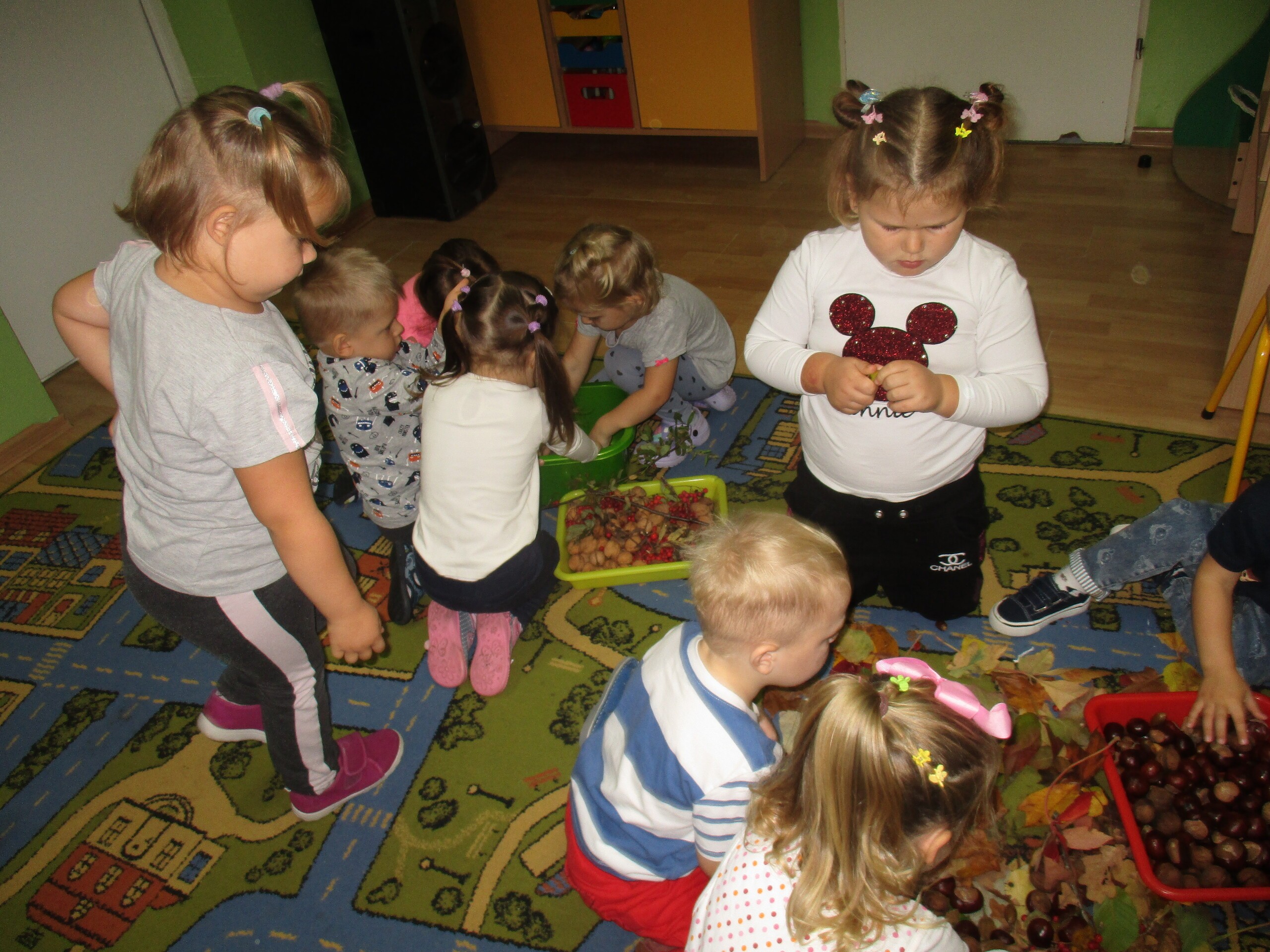 Przez dwa dni Maluchy i Średniaki pracowały z darami Jesieni, które przyniosły do przedszkola. Wszystkie dzieci segregowały przyniesione dary, przeliczały je oraz omawiały ich wygląd, pochodzenie i przeznaczenie.