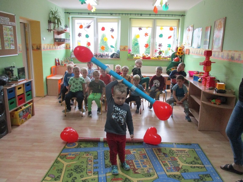 30 września w naszym przedszkolu obchodziliśmy Dzień Chłopaka. Z tej okazji wszyscy chłopcy wzięli udział w różnych konkurencjach: najszybsze liczenie sztang, slalom między pachołkami, celne oko, mistrz samochodowej kierownicy oraz sprawdzali swoją siłę podnosząc sztangi. Dziewczynki wręczyły specjalne krawaty dla Super Chłopaka. Na koniec wspólne pamiątkowe zdjęcie i tańce. Wszystkim chłopcom życzymy dużo uśmiechu i radości.