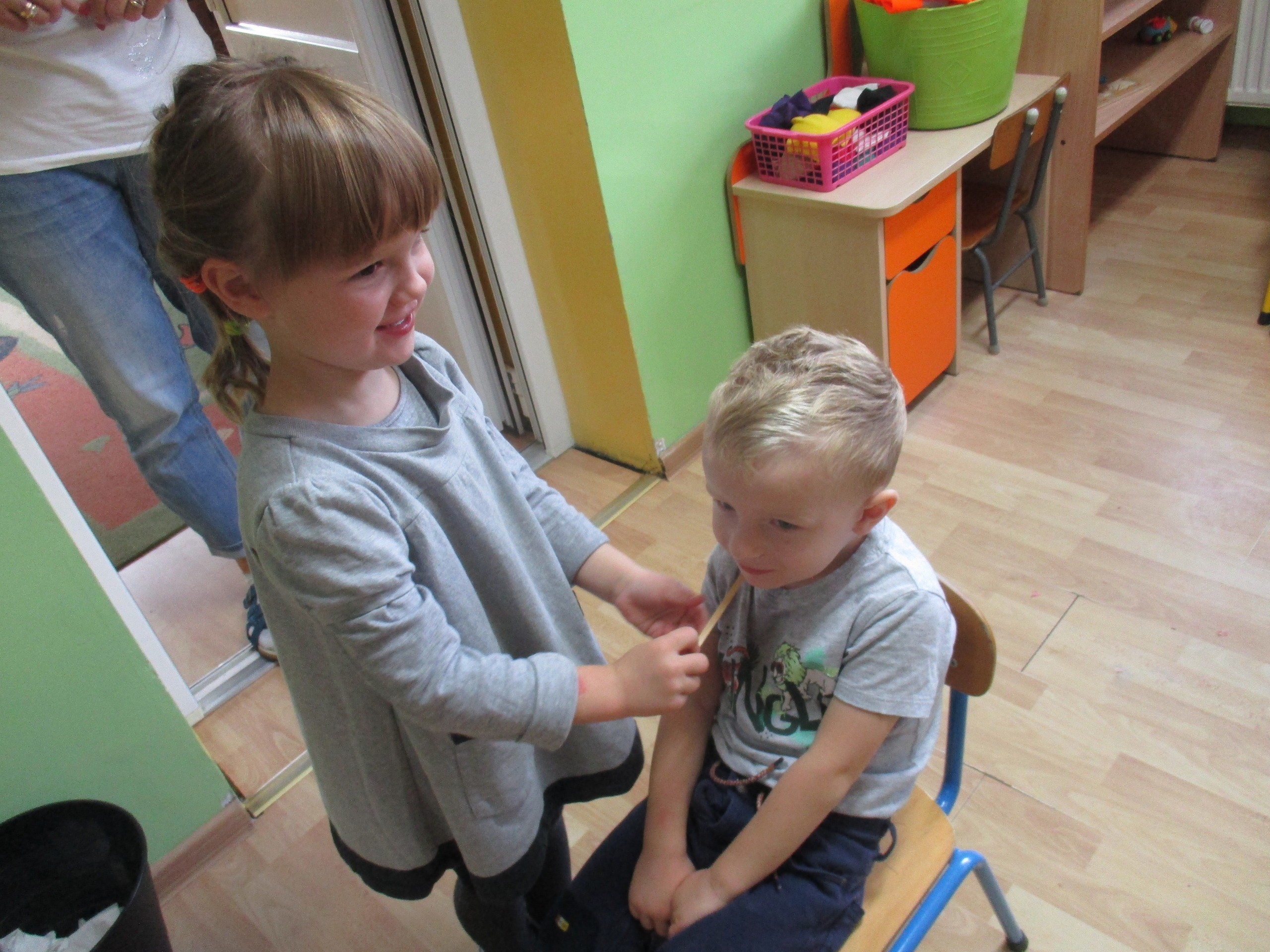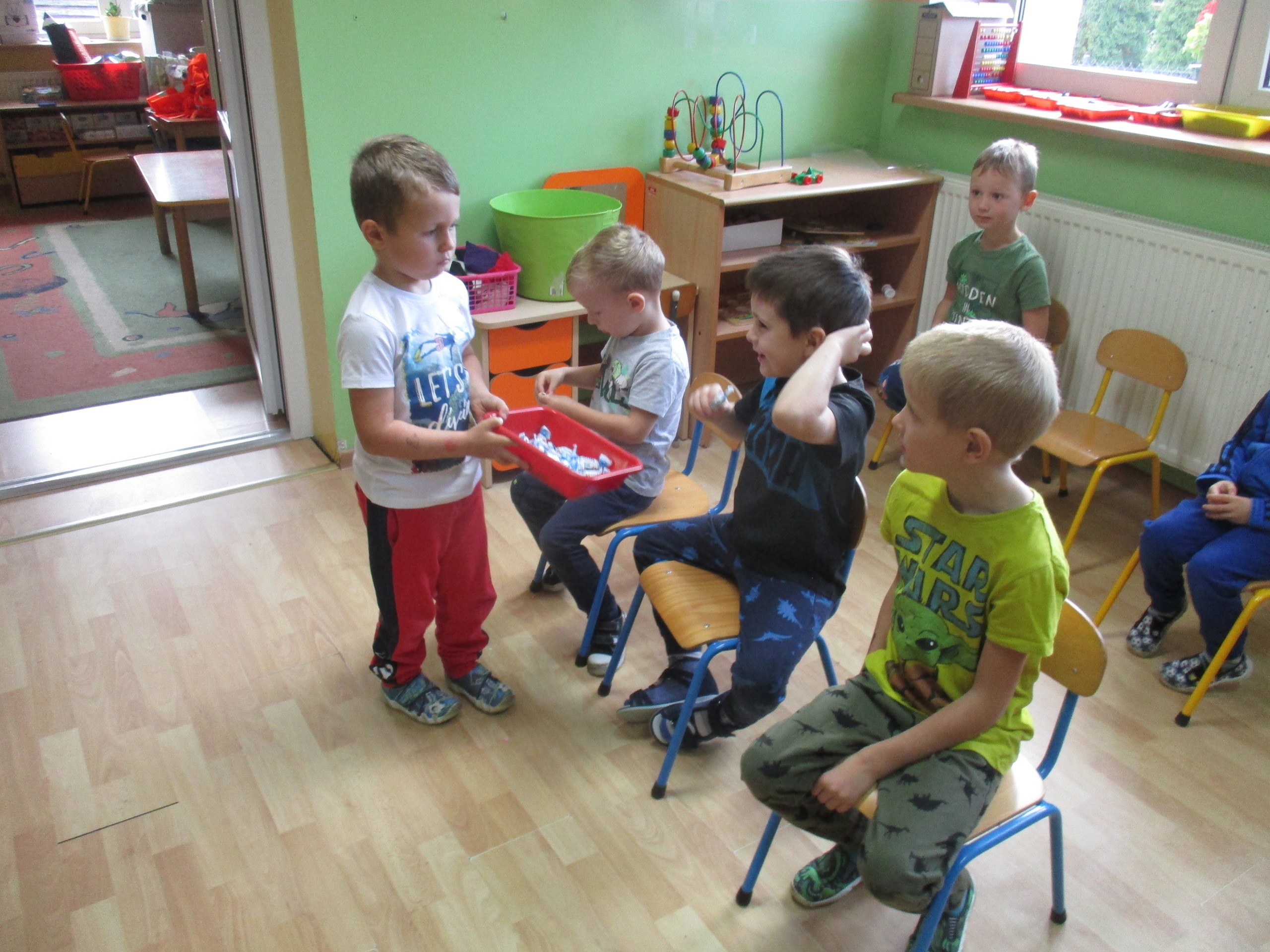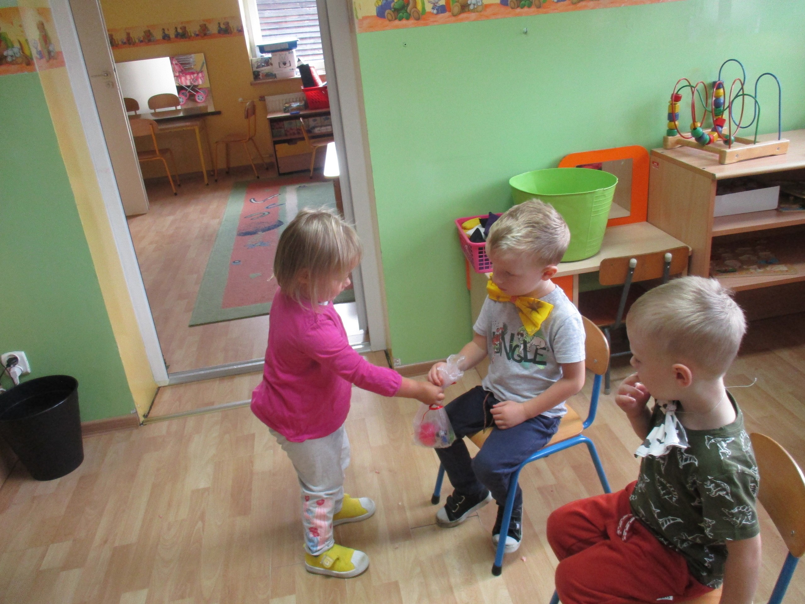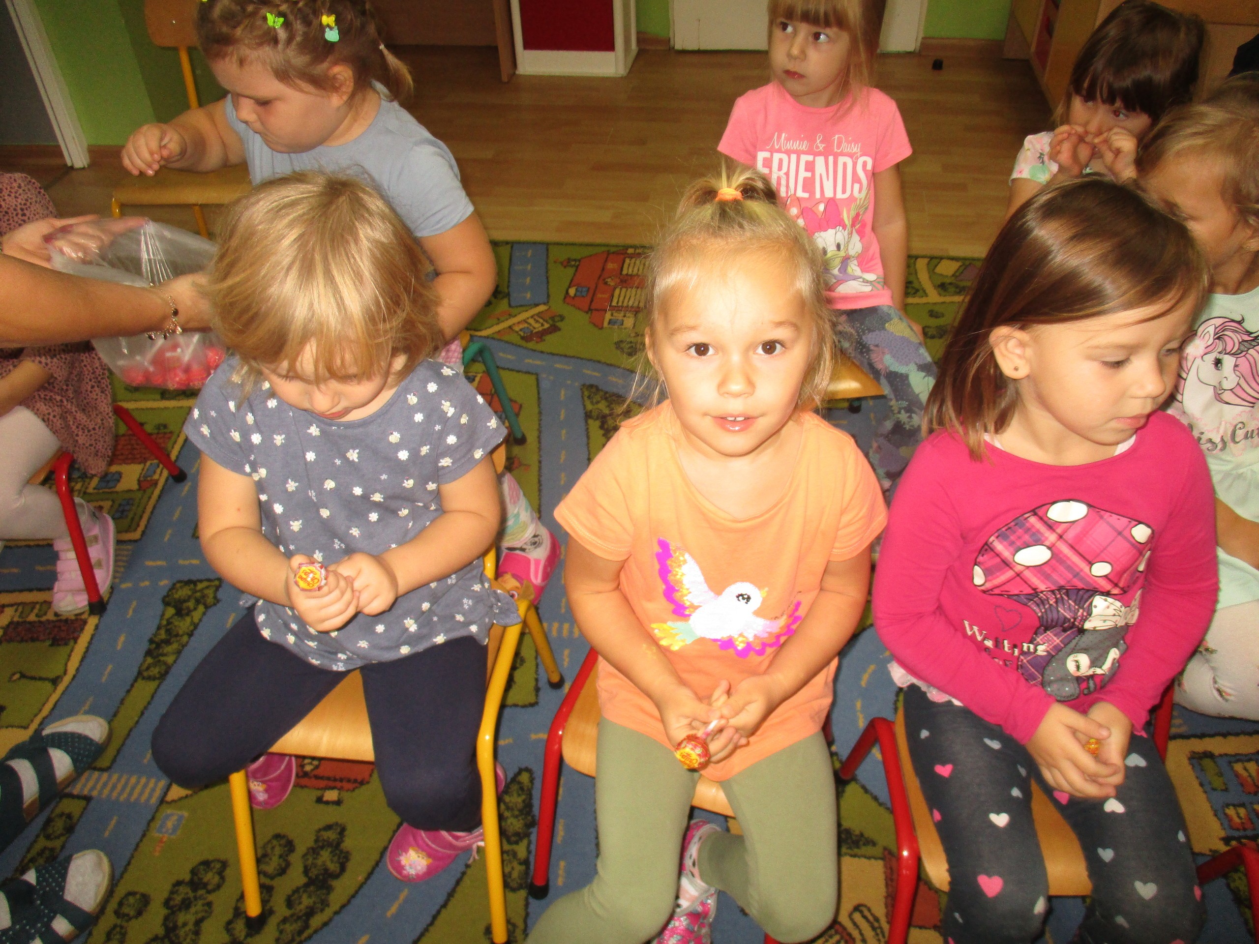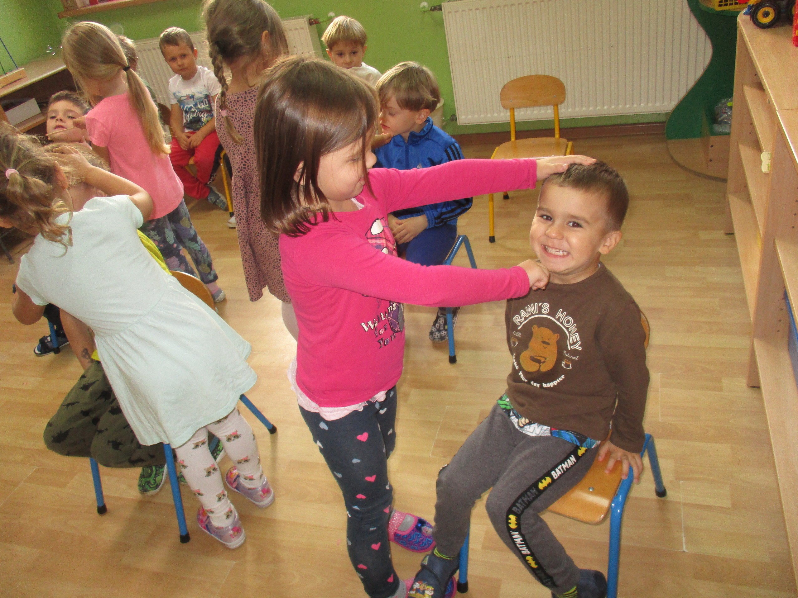 30 września chłopcy z naszego przedszkola udowodnili, że są prawdziwymi dżentelmenami. Na pewno mają bystre oko rzucając celnie do kosza, są wysportowani robiąc przysiady, potrafią się elegancko ubrać, znają tytuły bajek oraz fantastycznie potrafią tańczyć. Dlatego każdy dżentelmen otrzymał muszkę oraz upominki, które wręczyły chłopcom nasze dziewczynki. Słodką niespodziankę dla wszystkich dzieci przyniósł Kajtuś. Dziękujemy bardzo. Wszystkim chłopcom życzymy dużo uśmiechu, radości i wspaniałych przyjaciół.