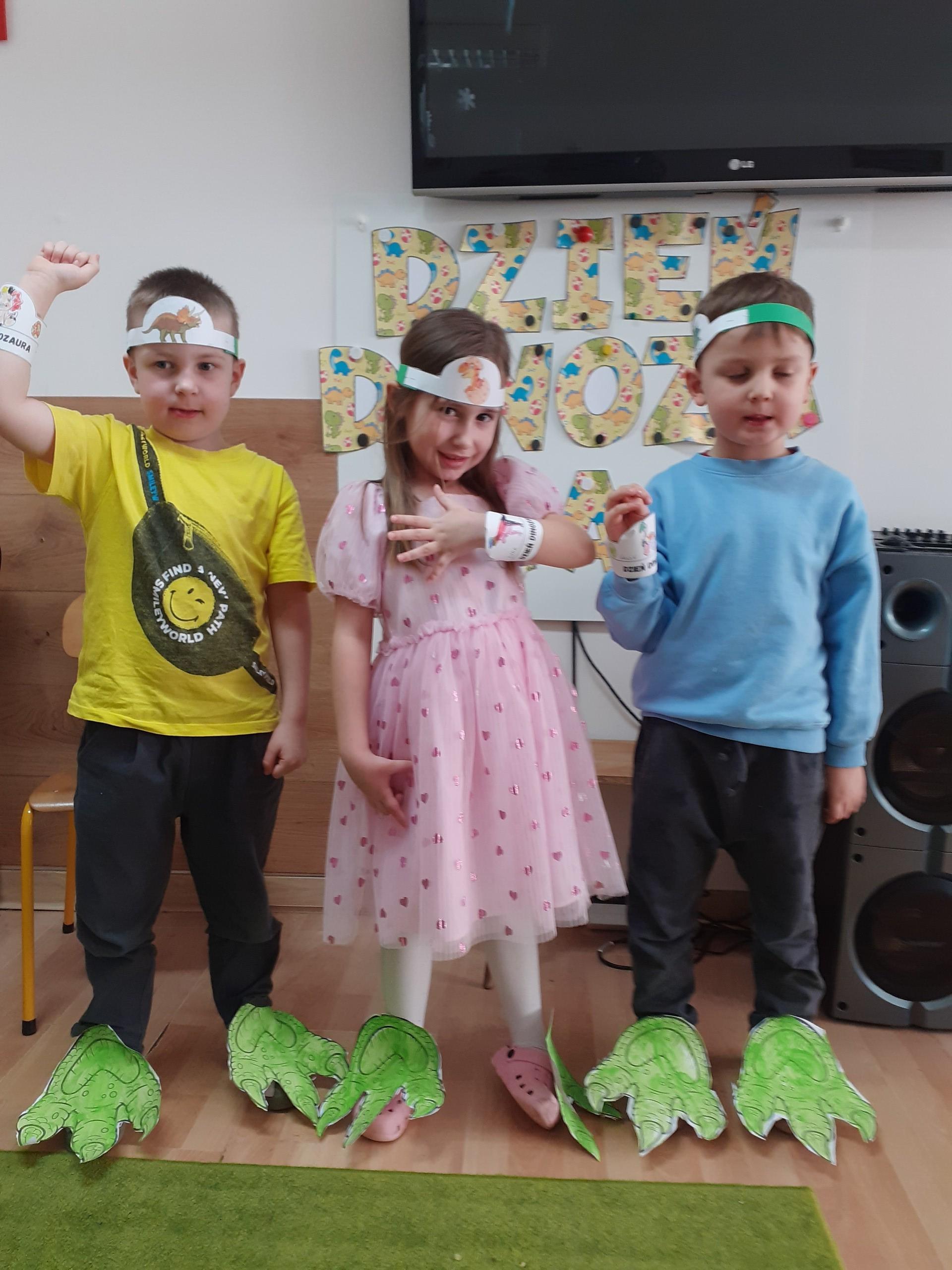 Dzisiaj w naszym przedszkolu obchodziliśmy Dzień Dinozaura. Dinozaury to stworzenia, które od dawna niezwykle fascynują dzieci a szczególnie najmłodszych. Nie tylko zaskakują swoim wyglądem i wielkością, ale też kryją wiele tajemnic. Zorganizowane zajecia wprowadziły dzieci w prehistoryczny świat i przybliżyły im życie tych wyjątkowych gadów. Dzieci brały udział w wielu ciekawych aktywnościach. Dzień Dinozaura upłynął wszystkim w miłej i radosnej atmosferze.