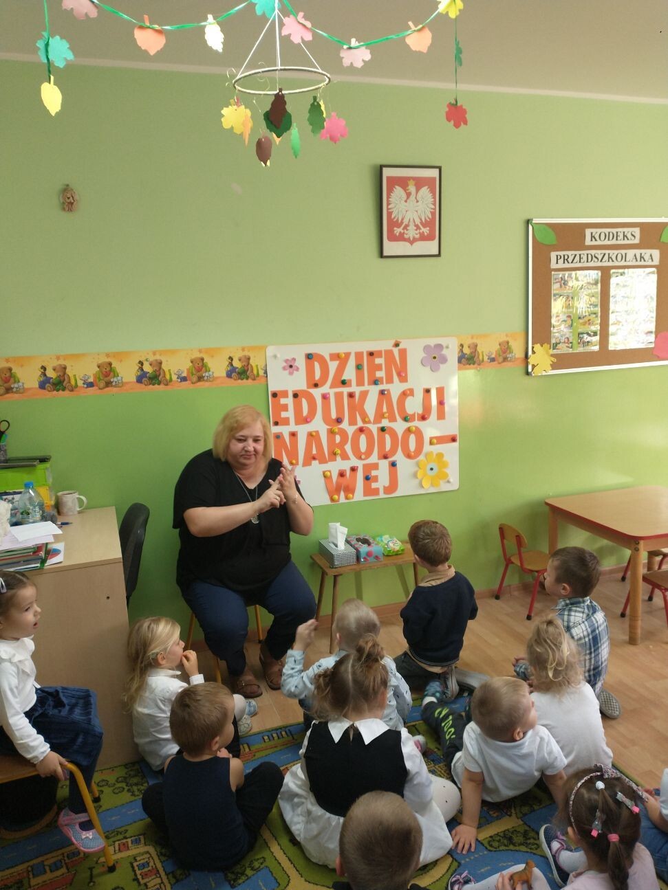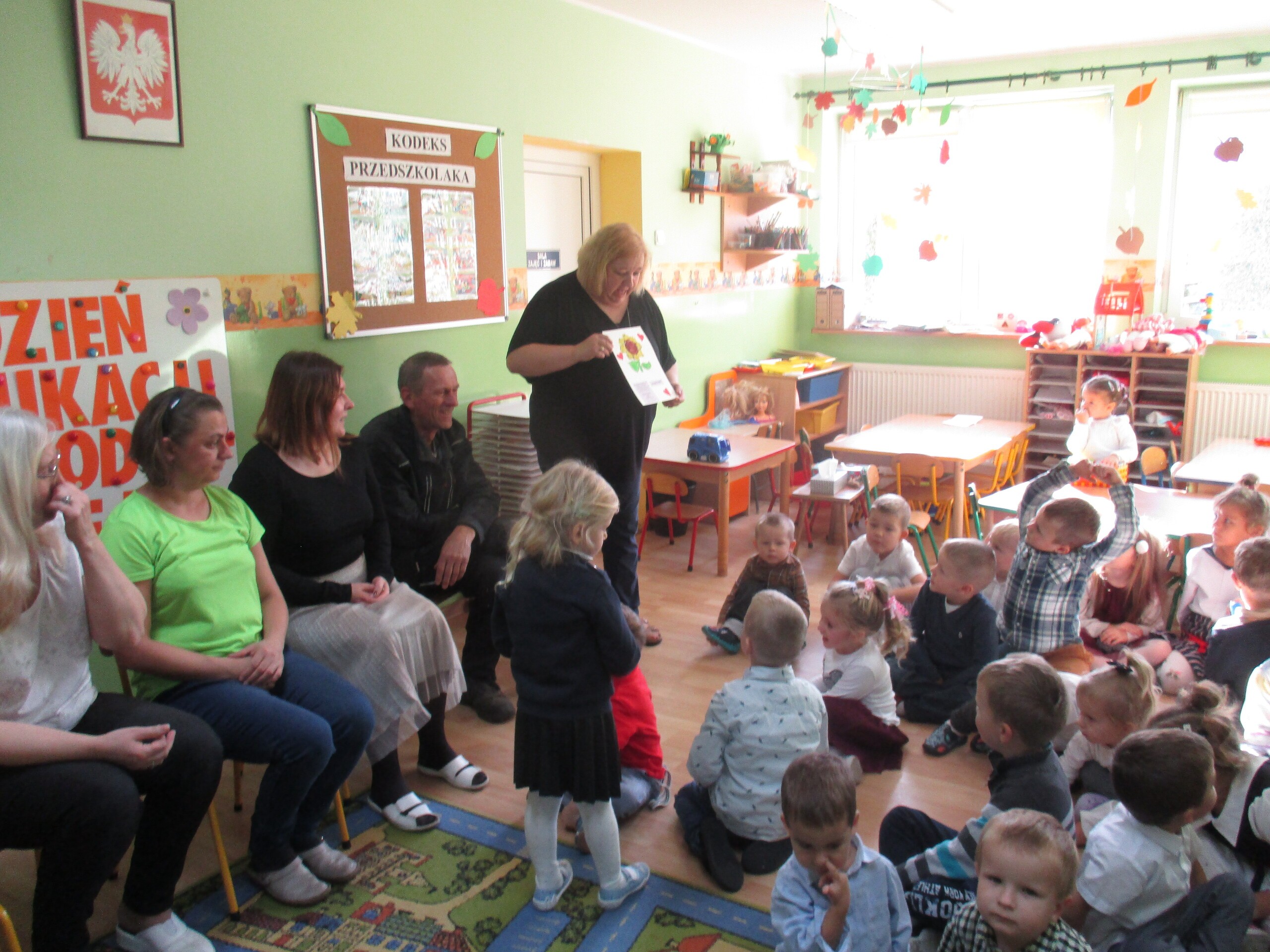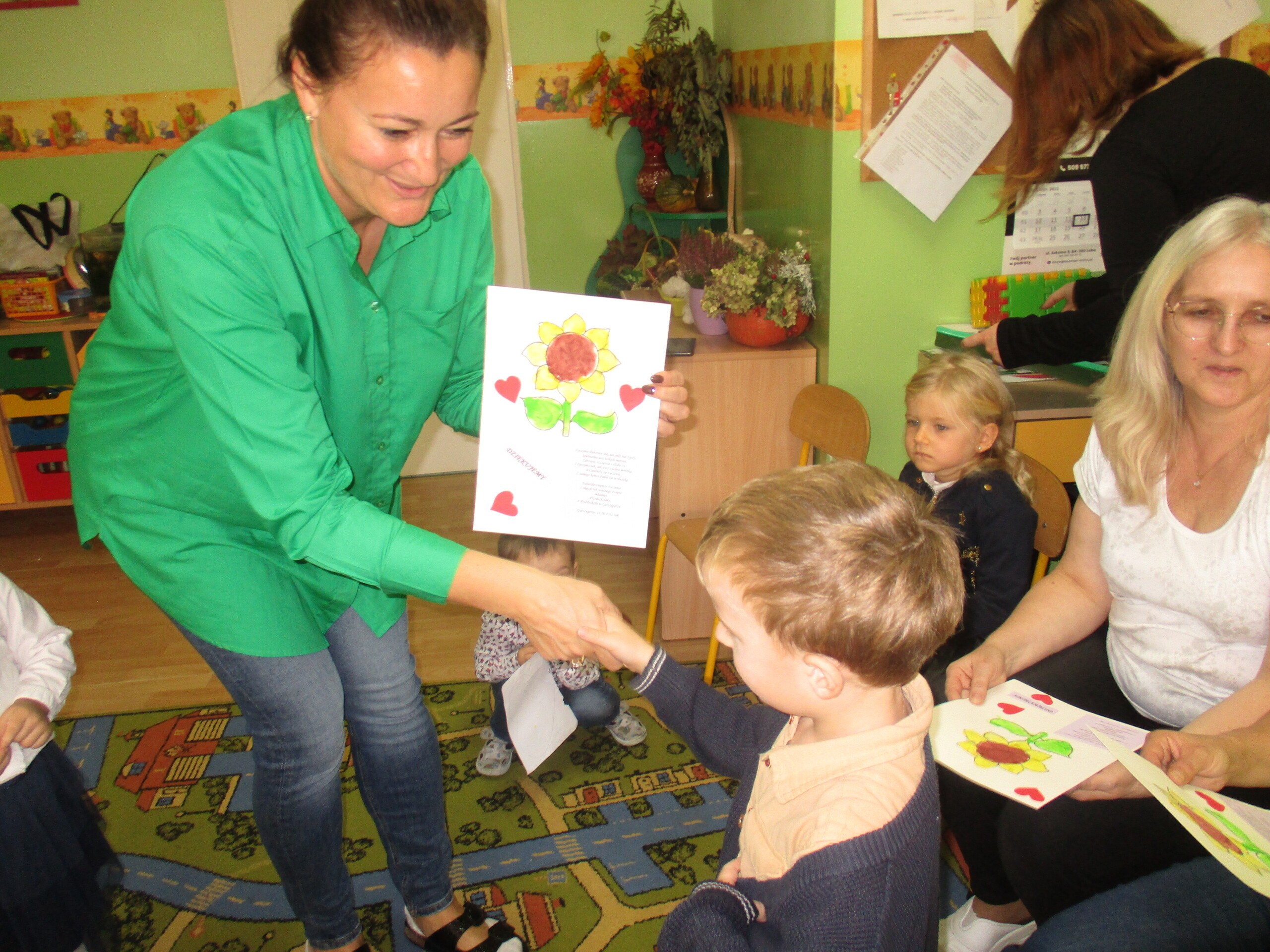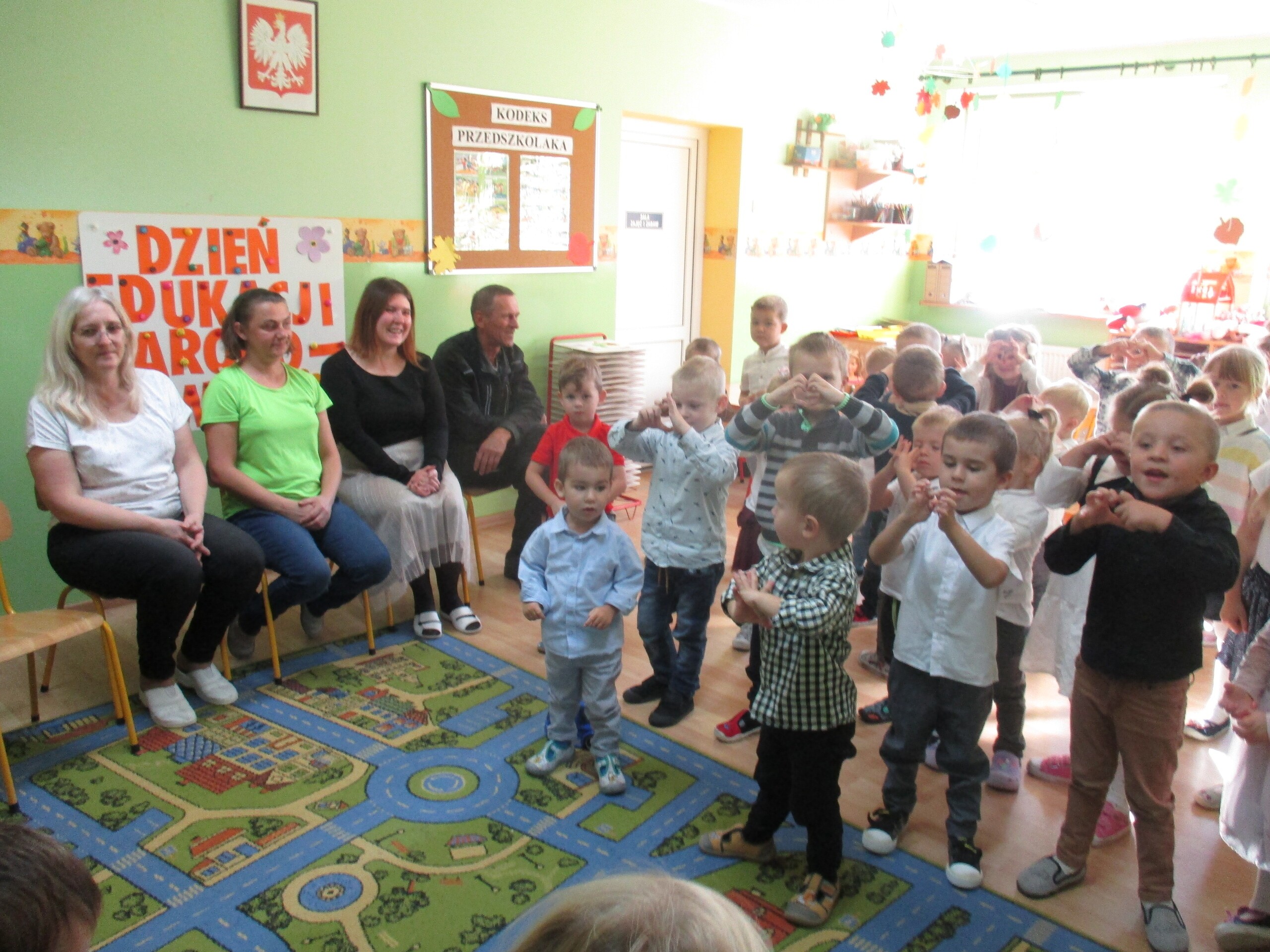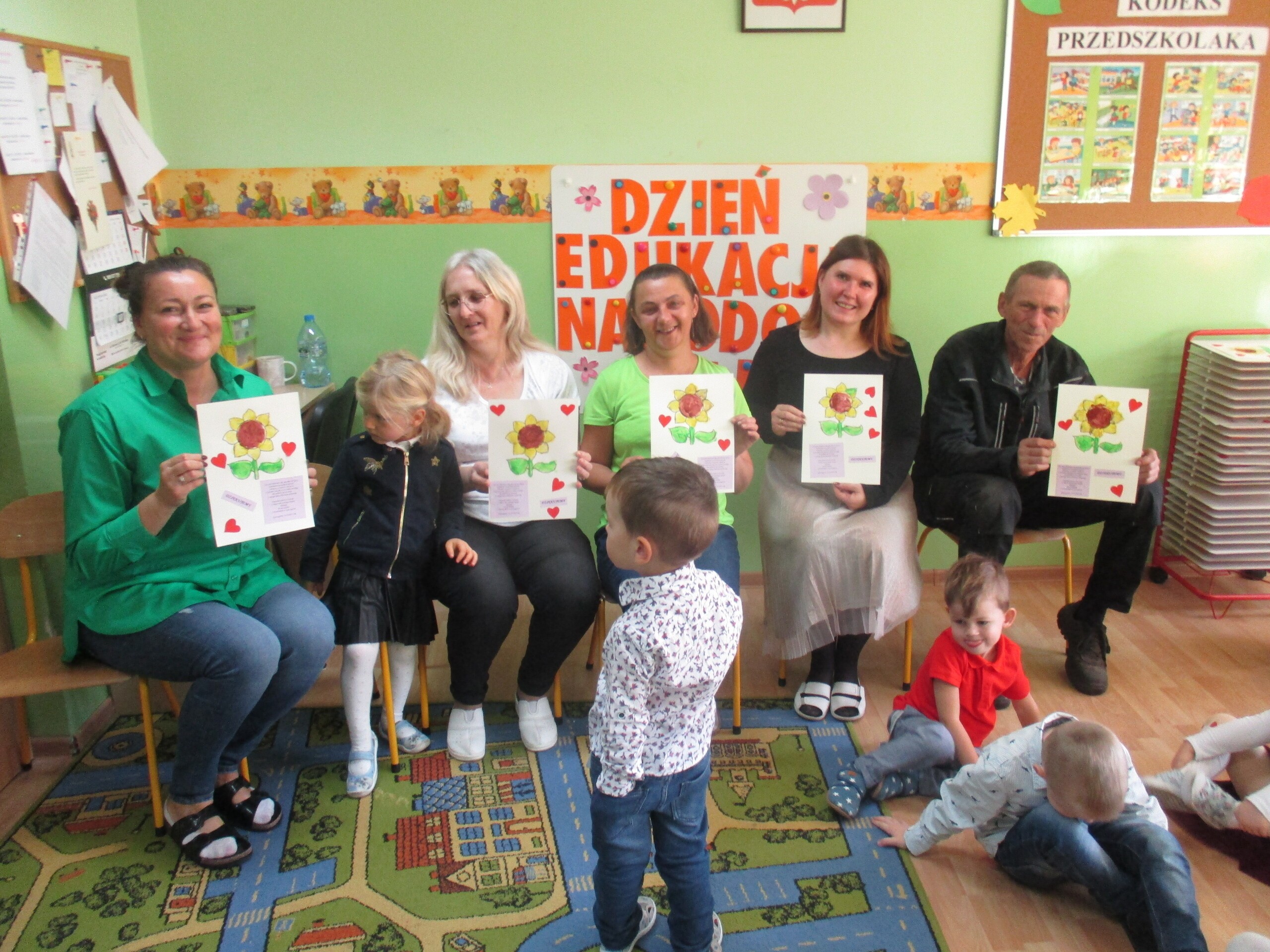 Dzień Edukacji Narodowej to święto wszystkich nauczycieli i pracowników przedszkola. W tym roku postanowiliśmy obchodzić go inaczej niż zwykle. W tym dniu wszystkie dzieci przyszły odświętnie ubrane. Przedszkolaki wspólnie przygotowały laurki dla dyrekcji, nauczycielek i personelu przedszkola. Dzieci zaśpiewały wszystkim gościom piosenkę oraz wręczyły przygotowane przez siebie laurki.