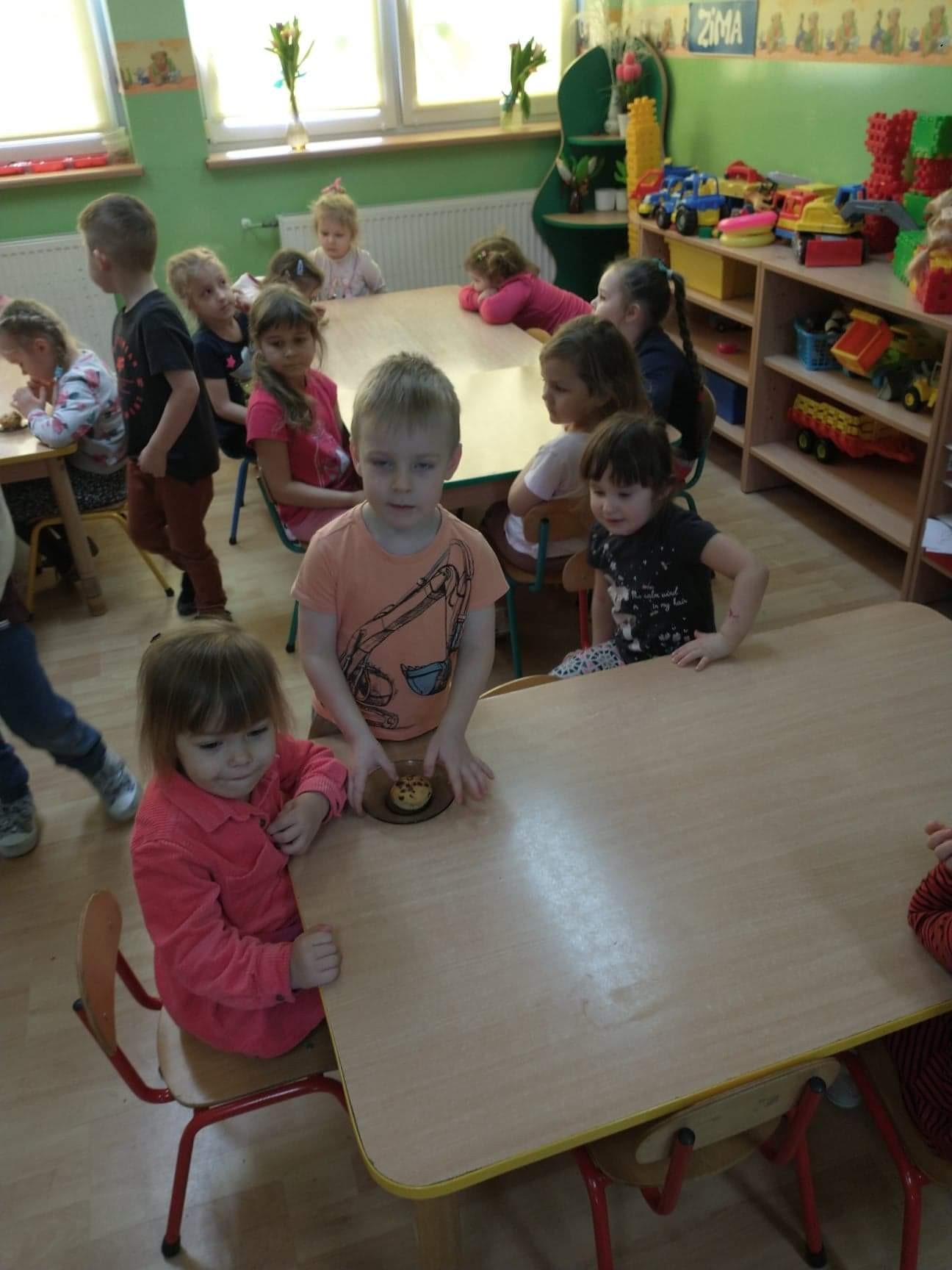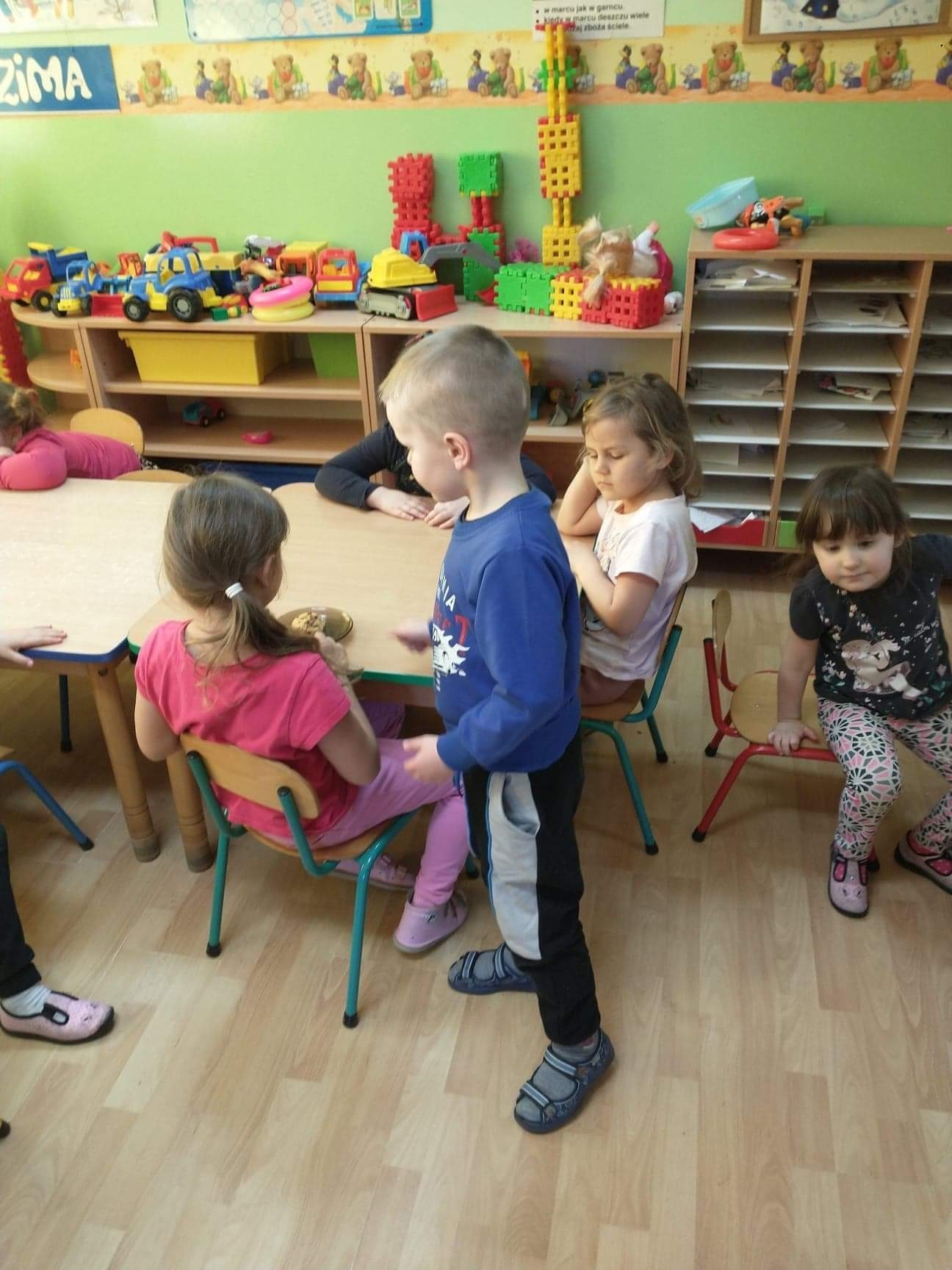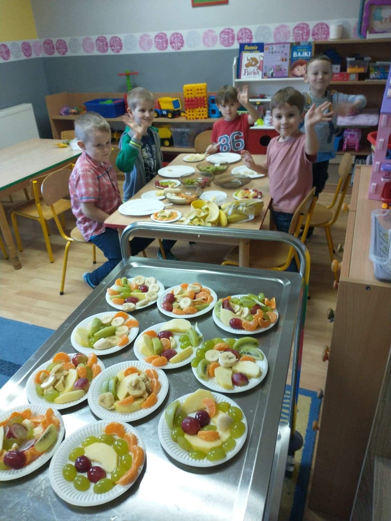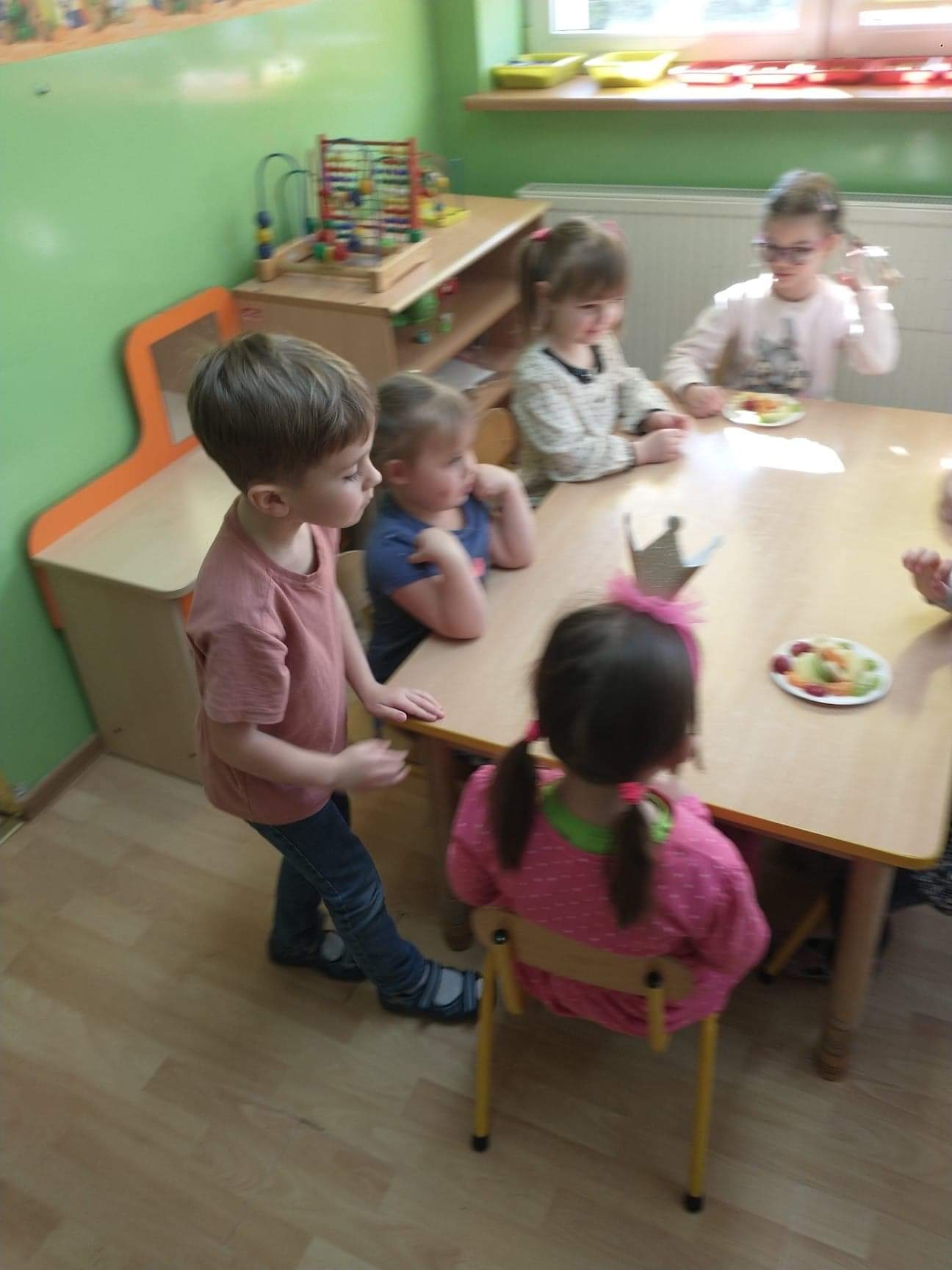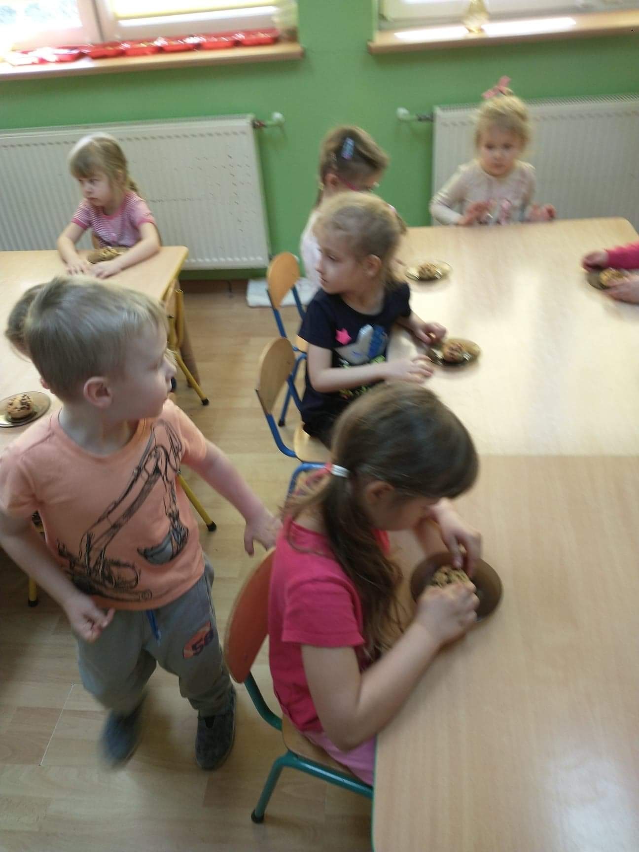 W tym szczególnym dniu wszyscy chłopcy przygotowali dla dziewczyn pyszną niespodziankę. Starszaki zrobili sałatkę owocową, a chłopcy z grupy młodszej upiekli z panią babeczki. Oczywiście zaśpiewali sto lat i obdarowali dziewczynki słodkim kwiatkiem i niespodzianką. Chłopcy tego dnia zachowywali się jak prawdziwi gentelmani, wyręczali dziewczynki w codziennych obowiązkach między innymi porządkowaniu sali po zabawie, byli przemili i sympatyczni. Dziewczynki za tak miłą i słodką niespodziankę poczęstowały chłopców lizakami. Wszystkie Panie i dziewczynki dziękują chłopcom za życzenia i niespodzianki.
