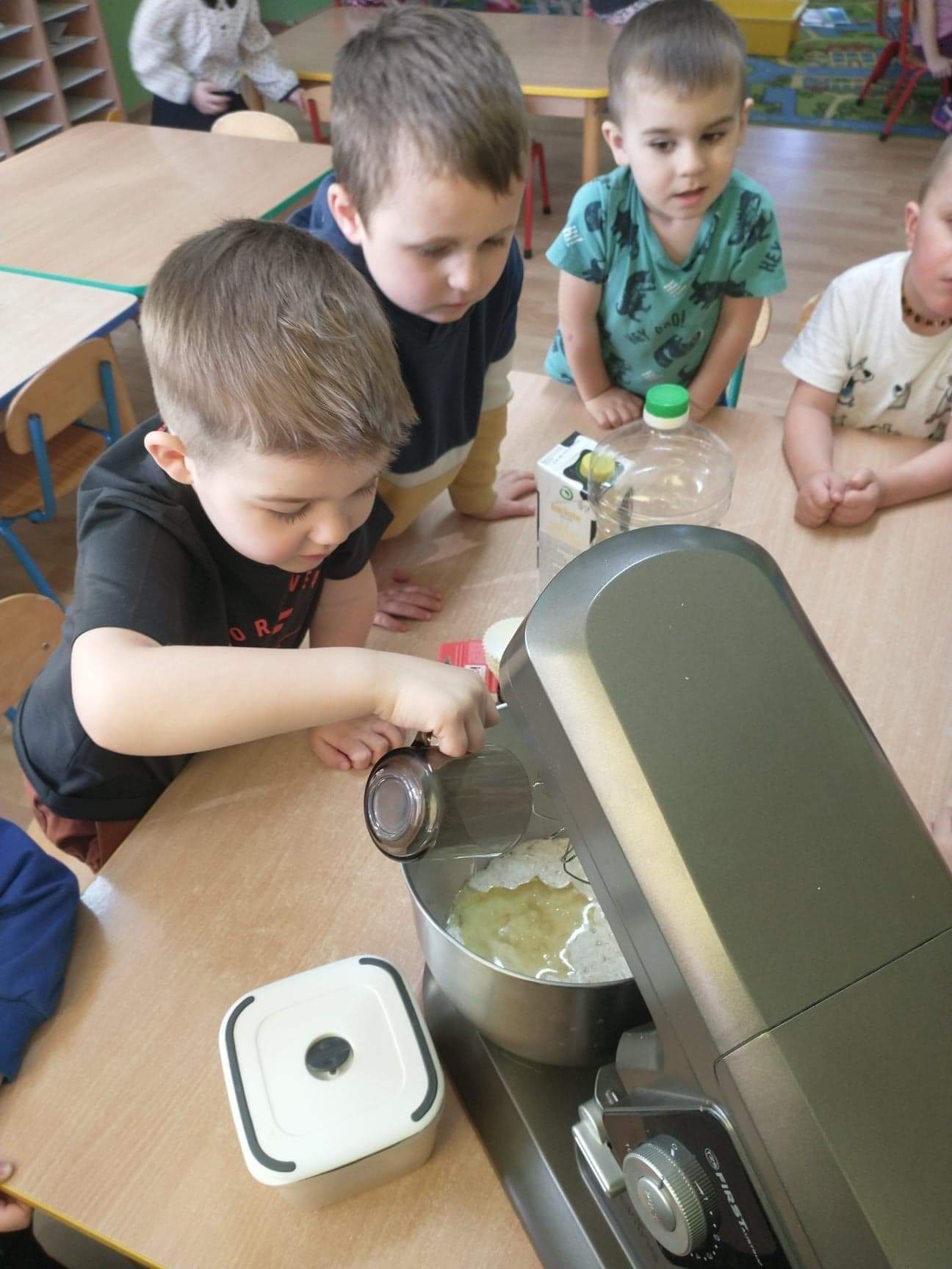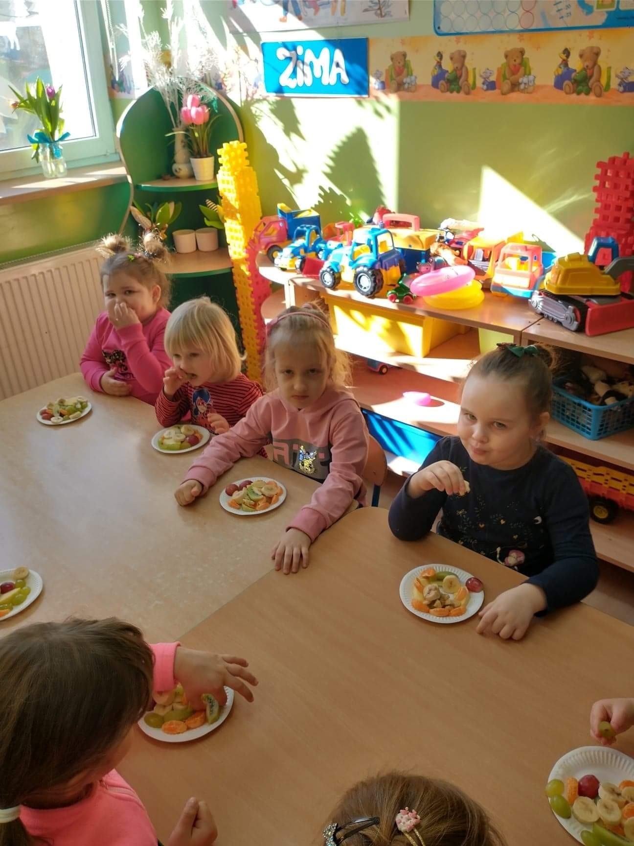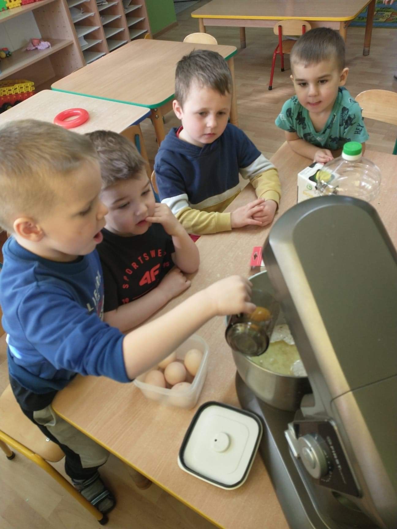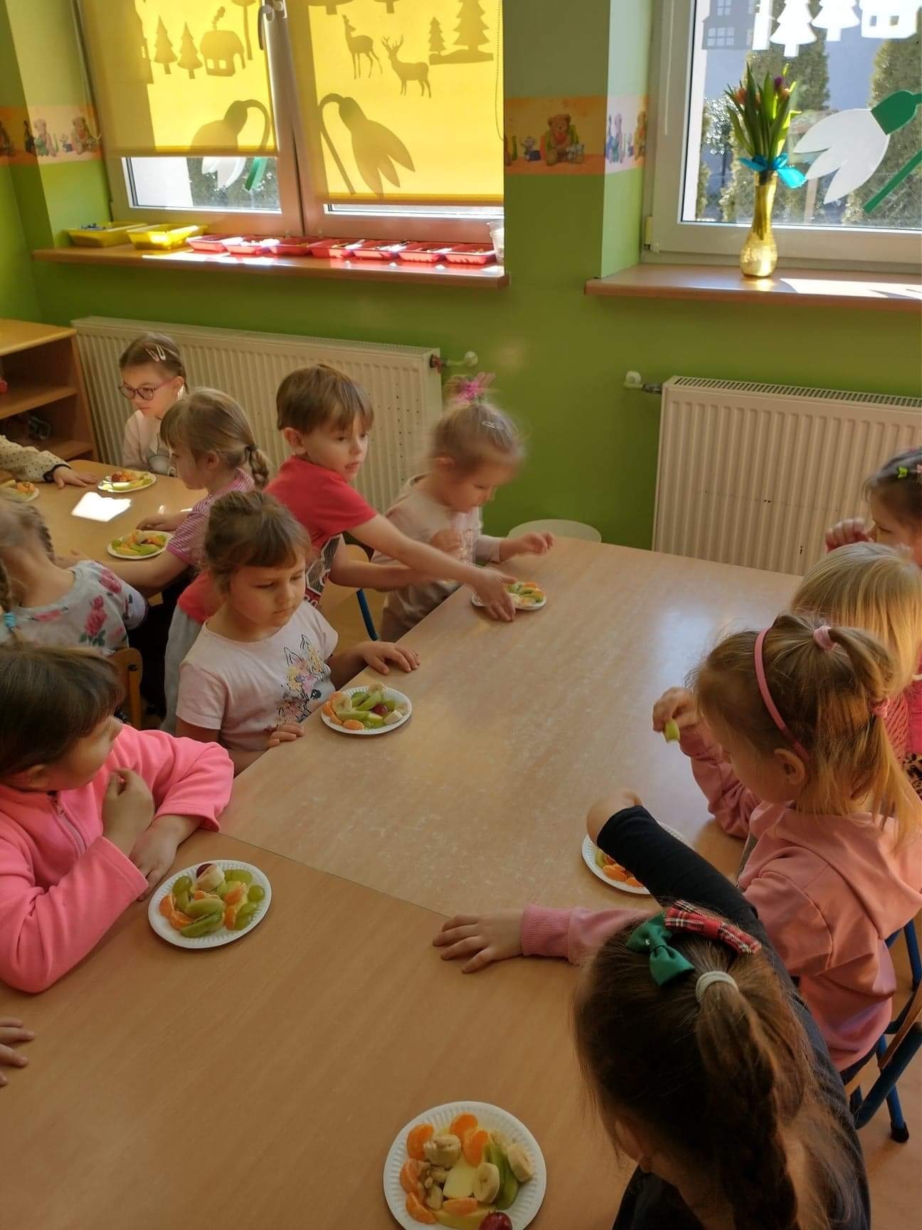 W tym szczególnym dniu wszyscy chłopcy przygotowali dla dziewczyn pyszną niespodziankę. Starszaki zrobili sałatkę owocową, a chłopcy z grupy młodszej upiekli z panią babeczki. Oczywiście zaśpiewali sto lat i obdarowali dziewczynki słodkim kwiatkiem i niespodzianką. Chłopcy tego dnia zachowywali się jak prawdziwi gentelmani, wyręczali dziewczynki w codziennych obowiązkach między innymi porządkowaniu sali po zabawie, byli przemili i sympatyczni. Dziewczynki za tak miłą i słodką niespodziankę poczęstowały chłopców lizakami. Wszystkie Panie i dziewczynki dziękują chłopcom za życzenia i niespodzianki.