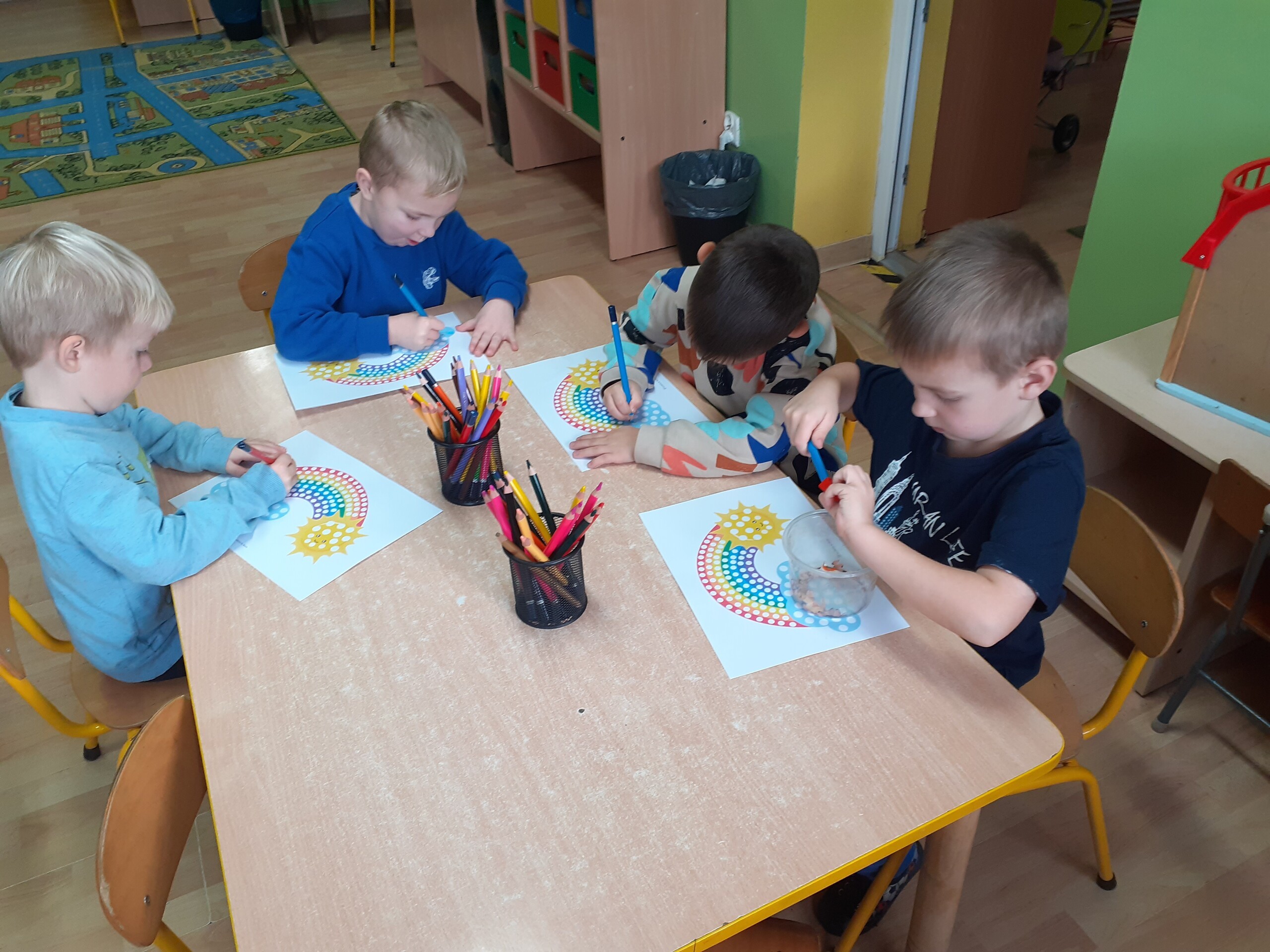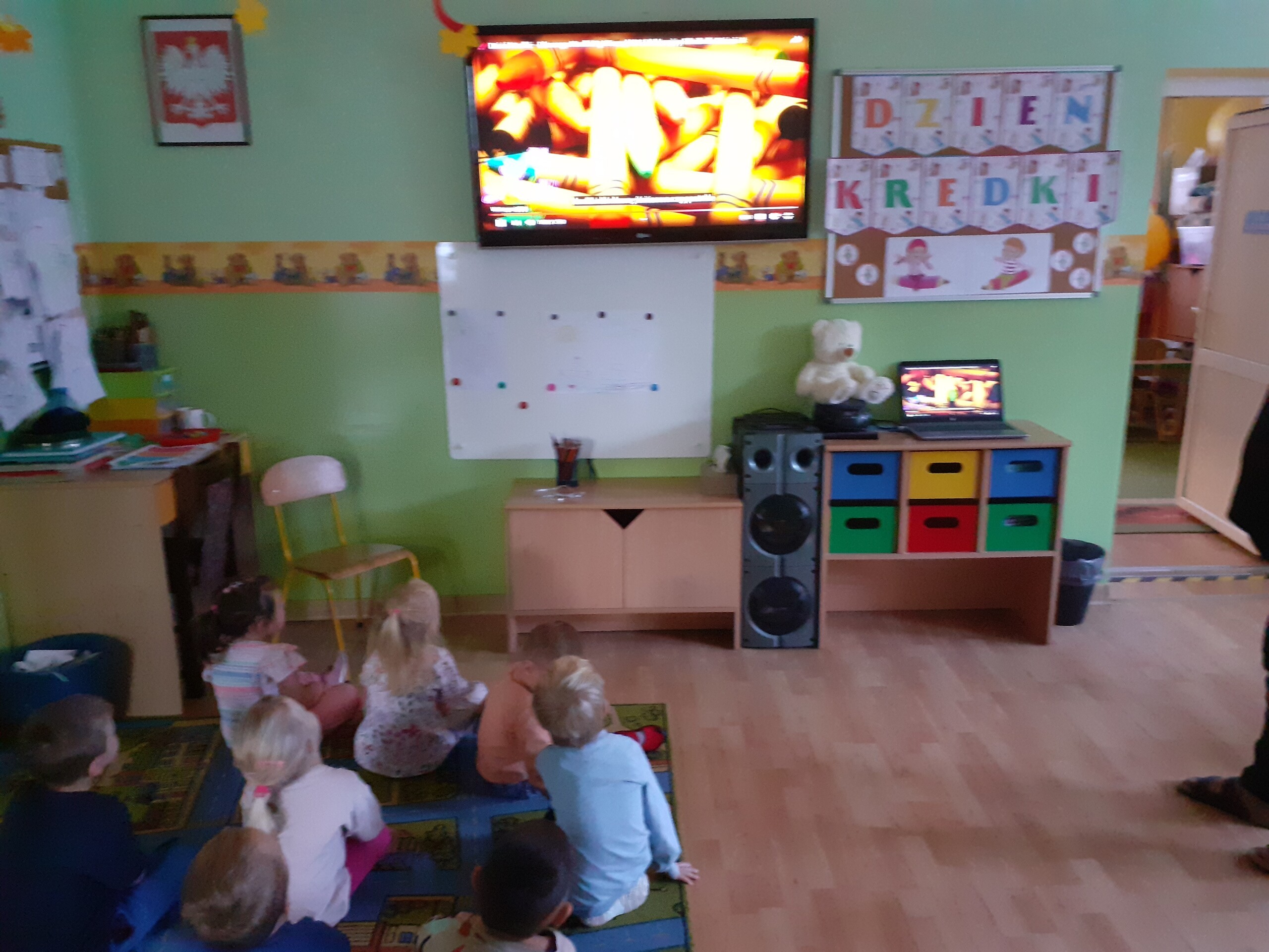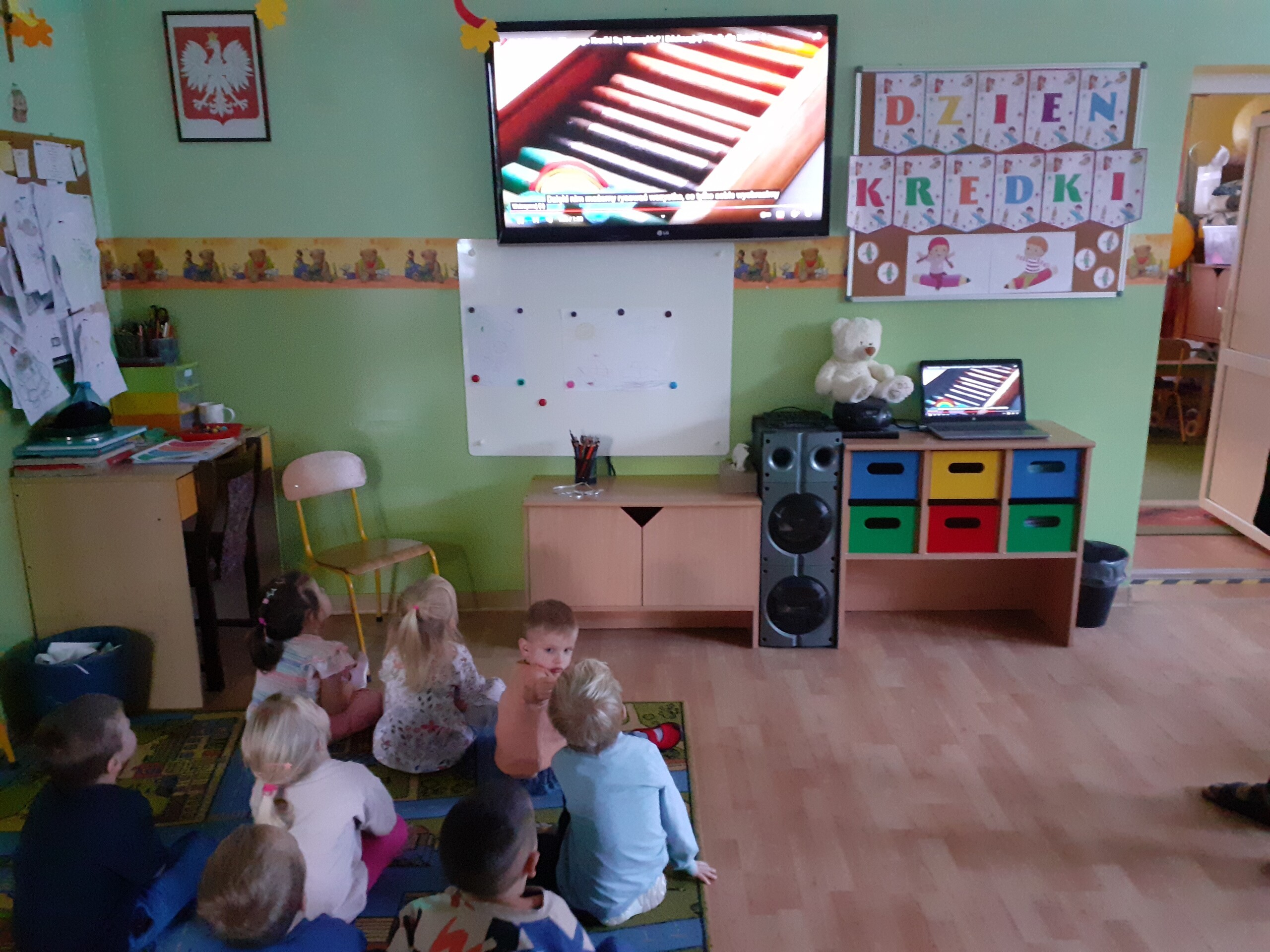Z okazji Dnia Kredki Maluchy i Średniaki bawiły się kolorami. Dowiedziały się, Ze za pomocą kredek można wyczarować to, co sobie wymarzymy.