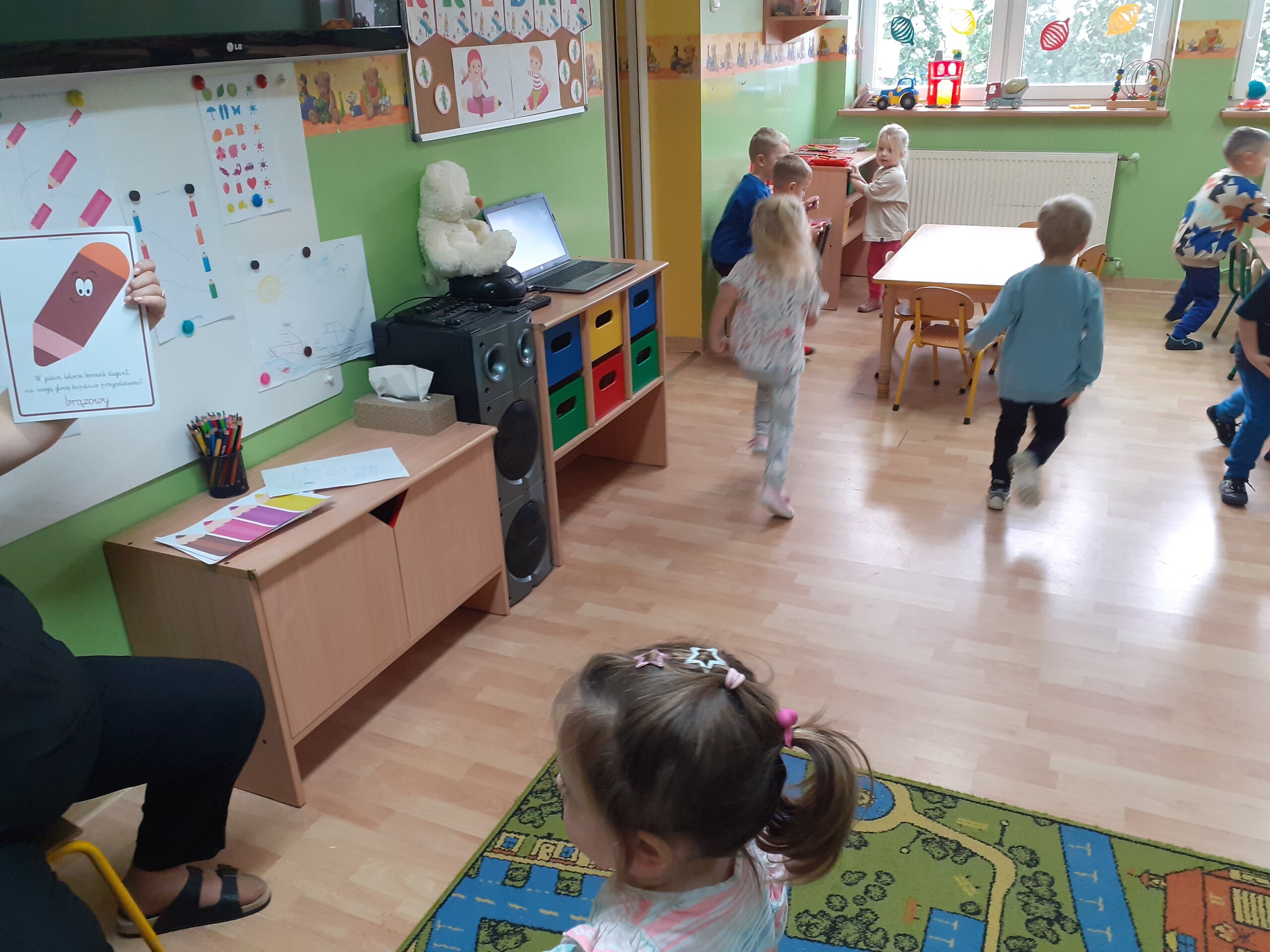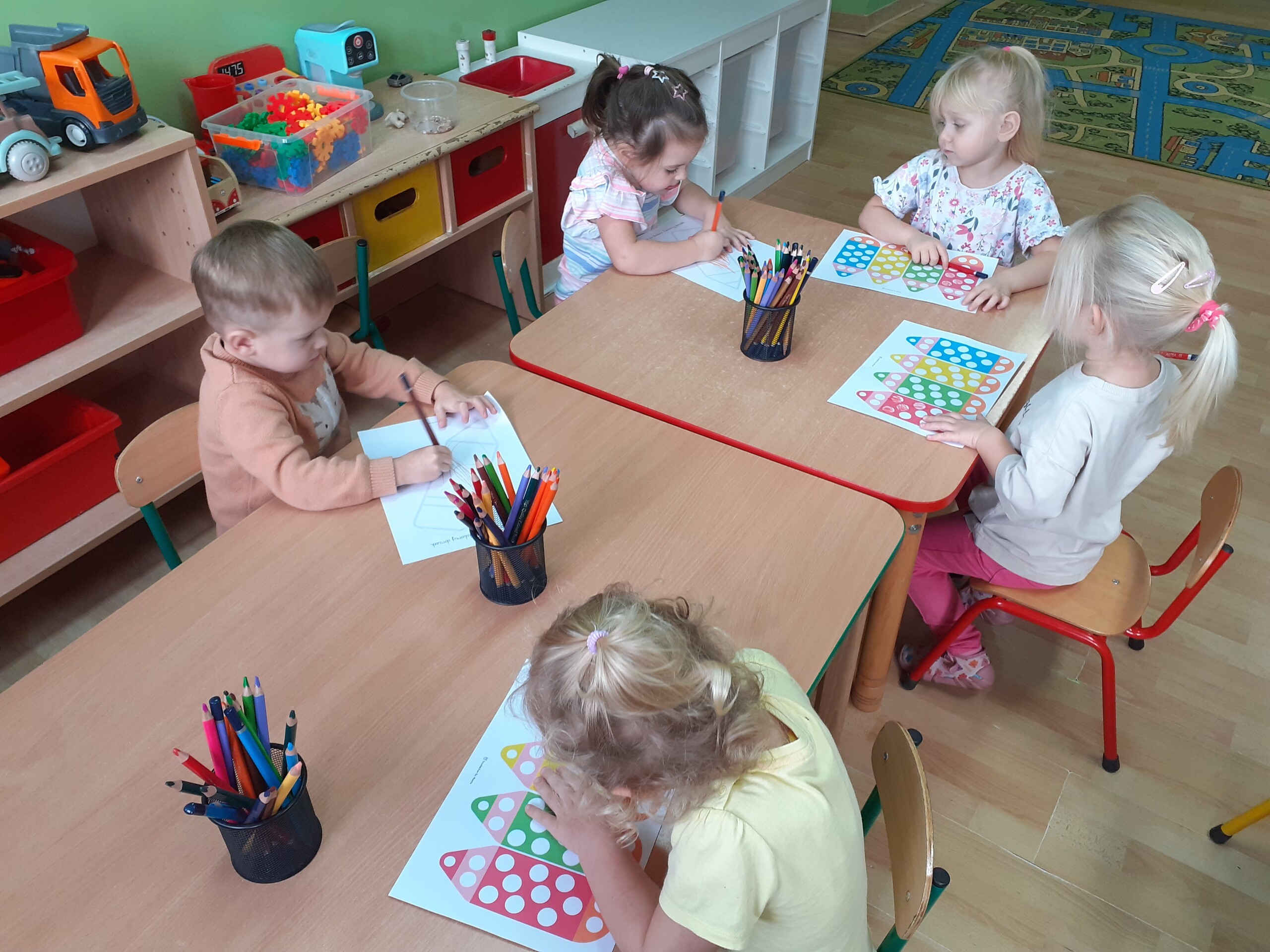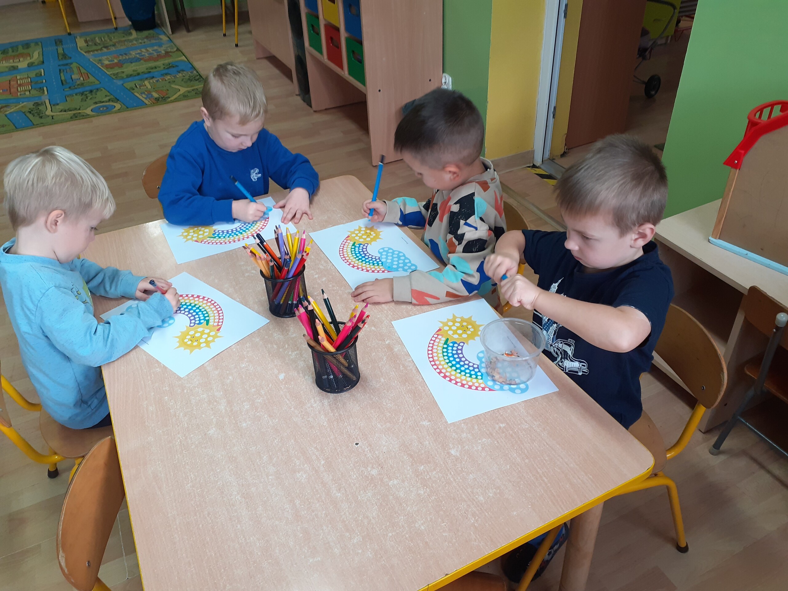 Z okazji Dnia Kredki Maluchy i Średniaki bawiły się kolorami. Dowiedziały się, Ze za pomocą kredek można wyczarować to, co sobie wymarzymy.
