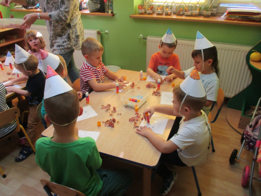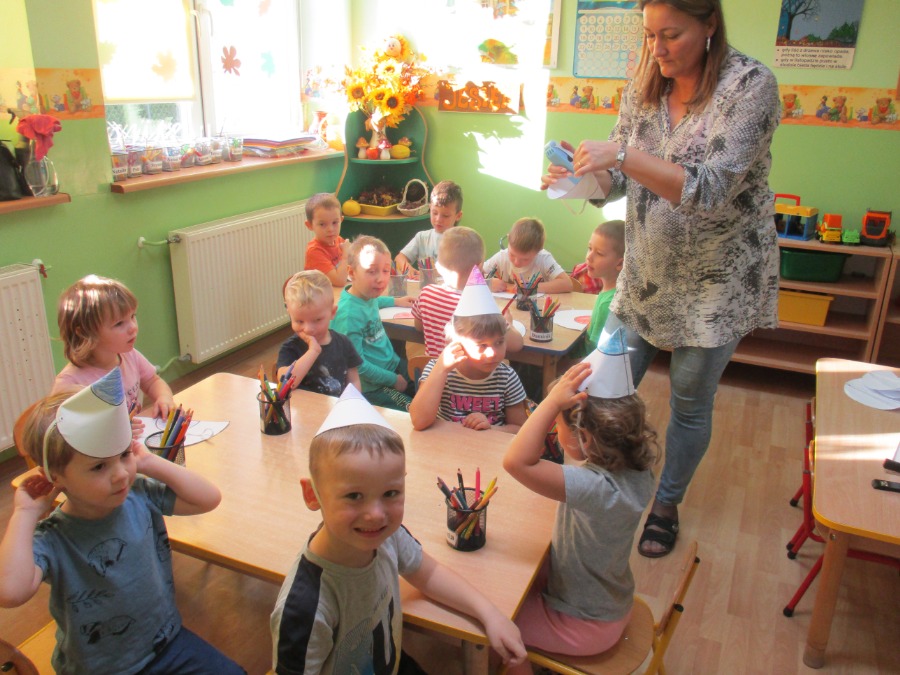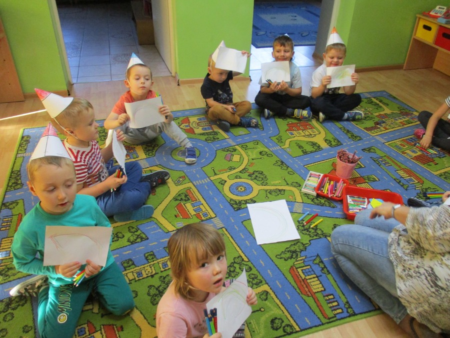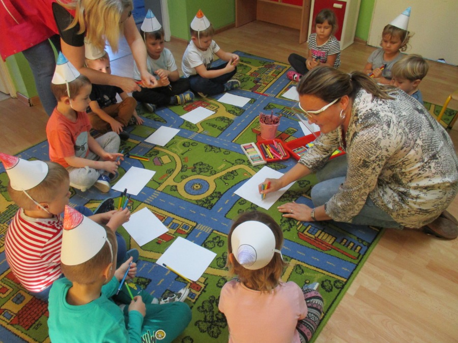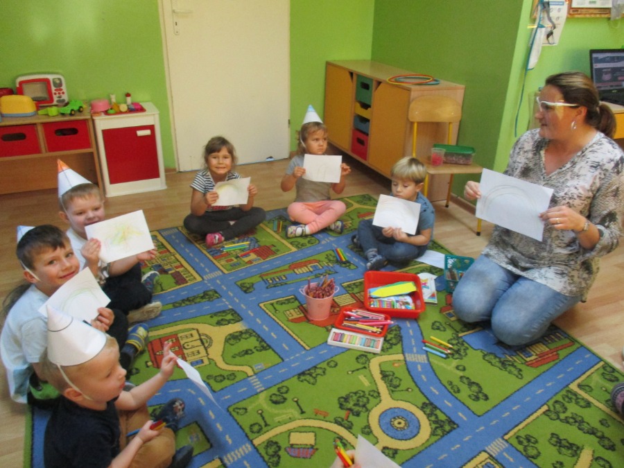 W piątek 20 listopada przedszkolaki wspólnie świętowały „Dzień Kredki”. Celem zabawy było zapoznanie i utrwalenie kolorów, integracja grup, kształcenie sprawności manualnych oraz doskonalenie umiejętności liczenia. Przedszkolaki wykonały kredkowe czapeczki, poznały różne rodzaje kredek, określały kolory i przeliczały, wykleiły ostrużynami kredek szablon jeżyka, dowiedziały się jak można wykorzystać połamane kredki świecowe do kolejnego kolorowania, wysłuchały piosenki pt.” Kolorowe kredki”. Na koniec dzieci otrzymały odznaki. Był to bardzo wesoły i kolorowy dzień!