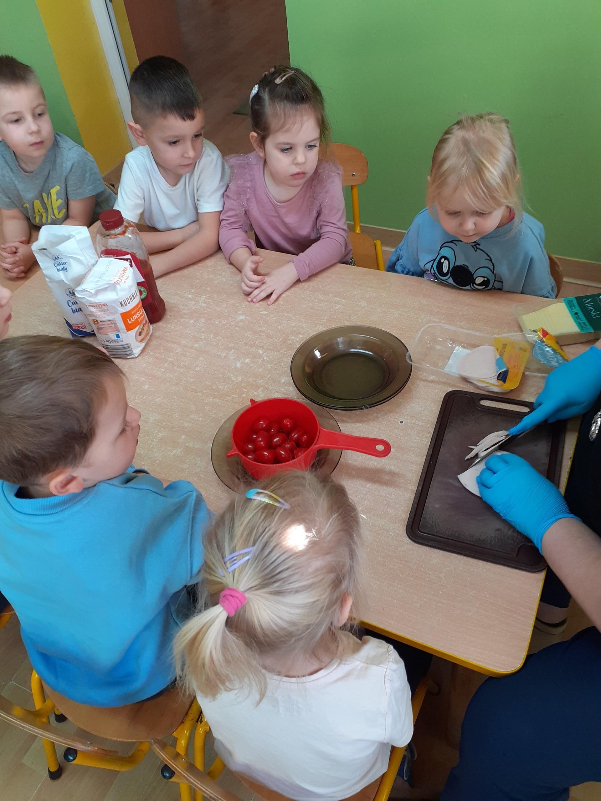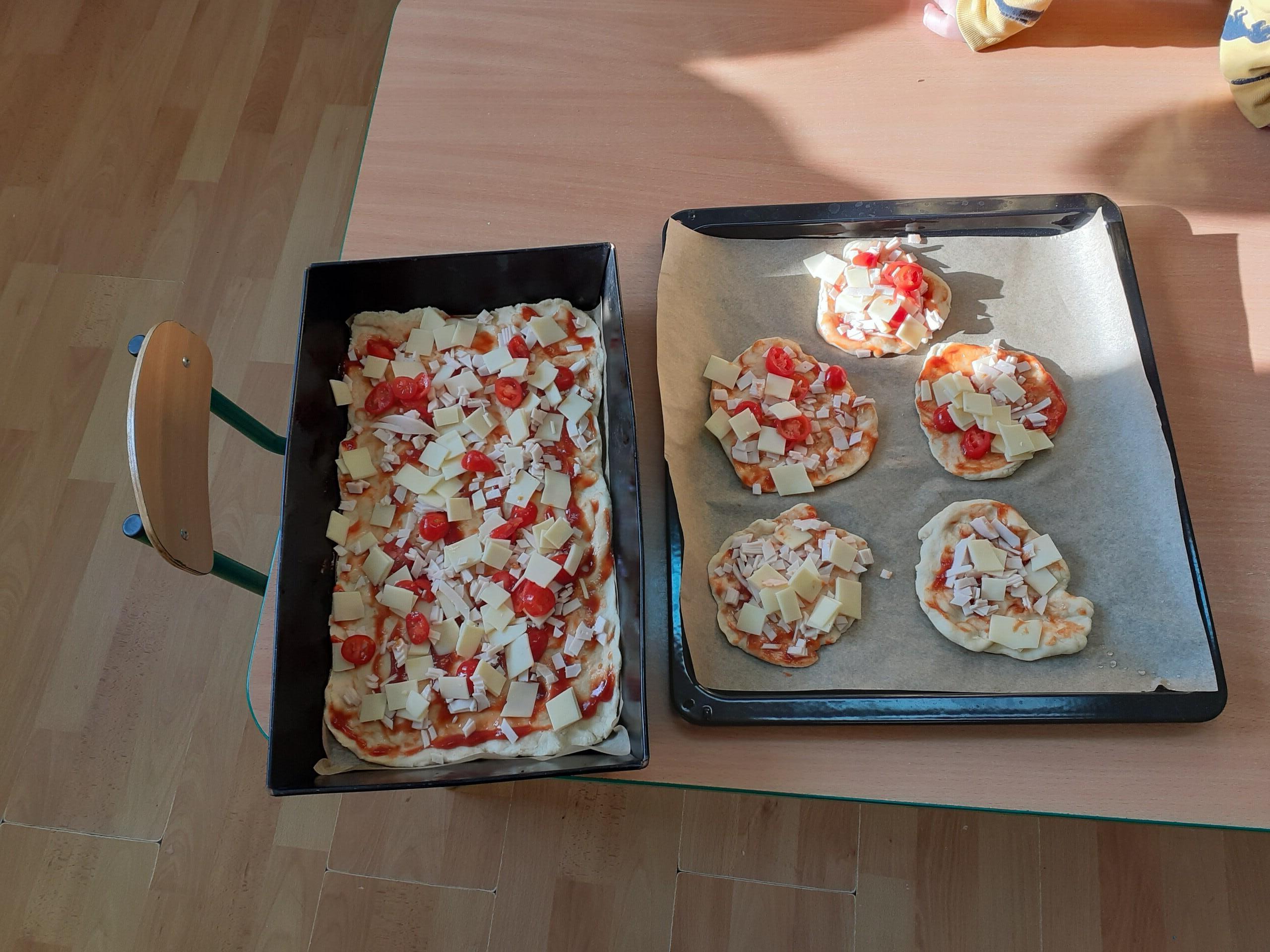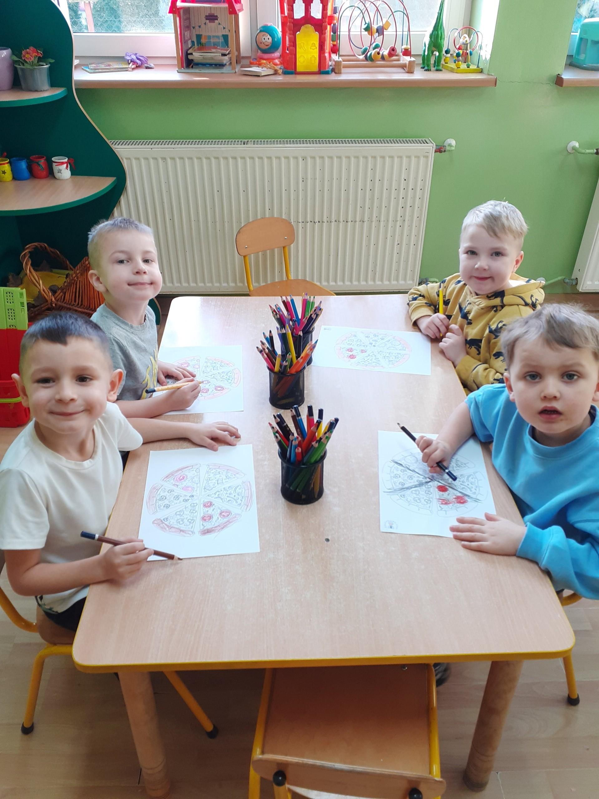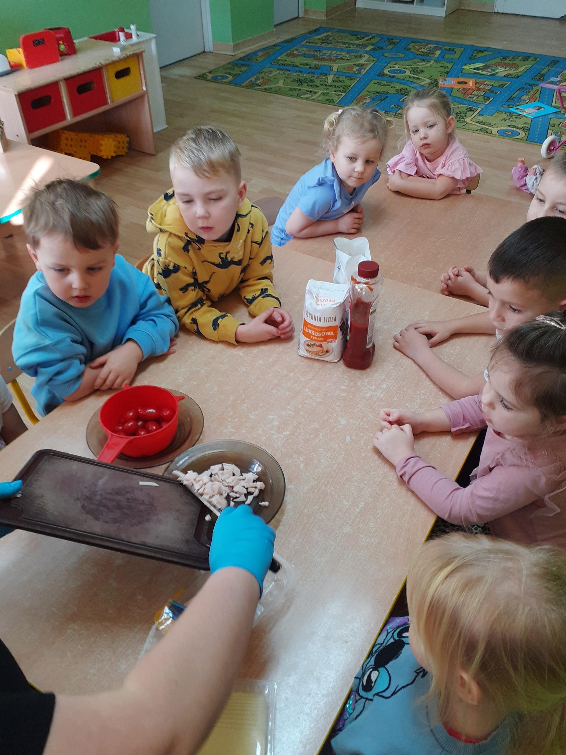 Dzisiaj dzieci z młodszej grupy obchodziły Dzień Pizzy. Dzieciaki spędziły dzień w „Pizzerii MUCHOMORKI”, przygotowując pizzę z ulubionymi składnikami: szynką, serem i pomidorkami. Było pysznie…, mniam, mniam, mniam…