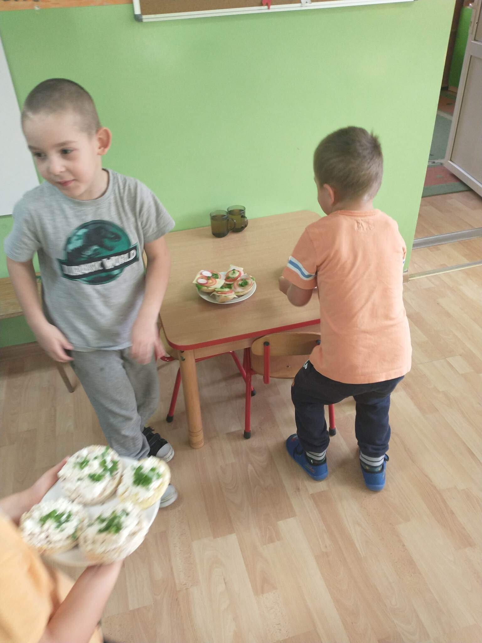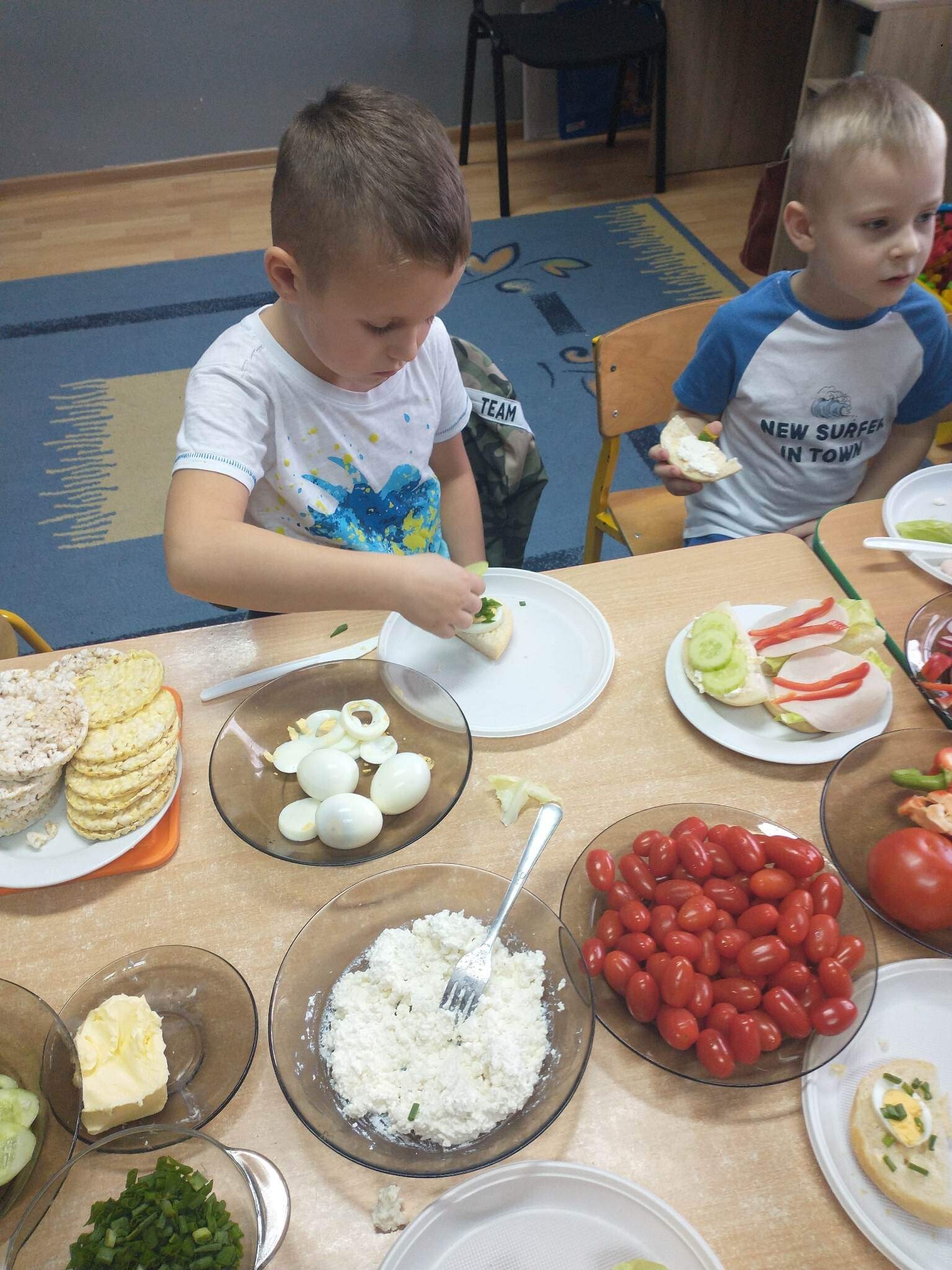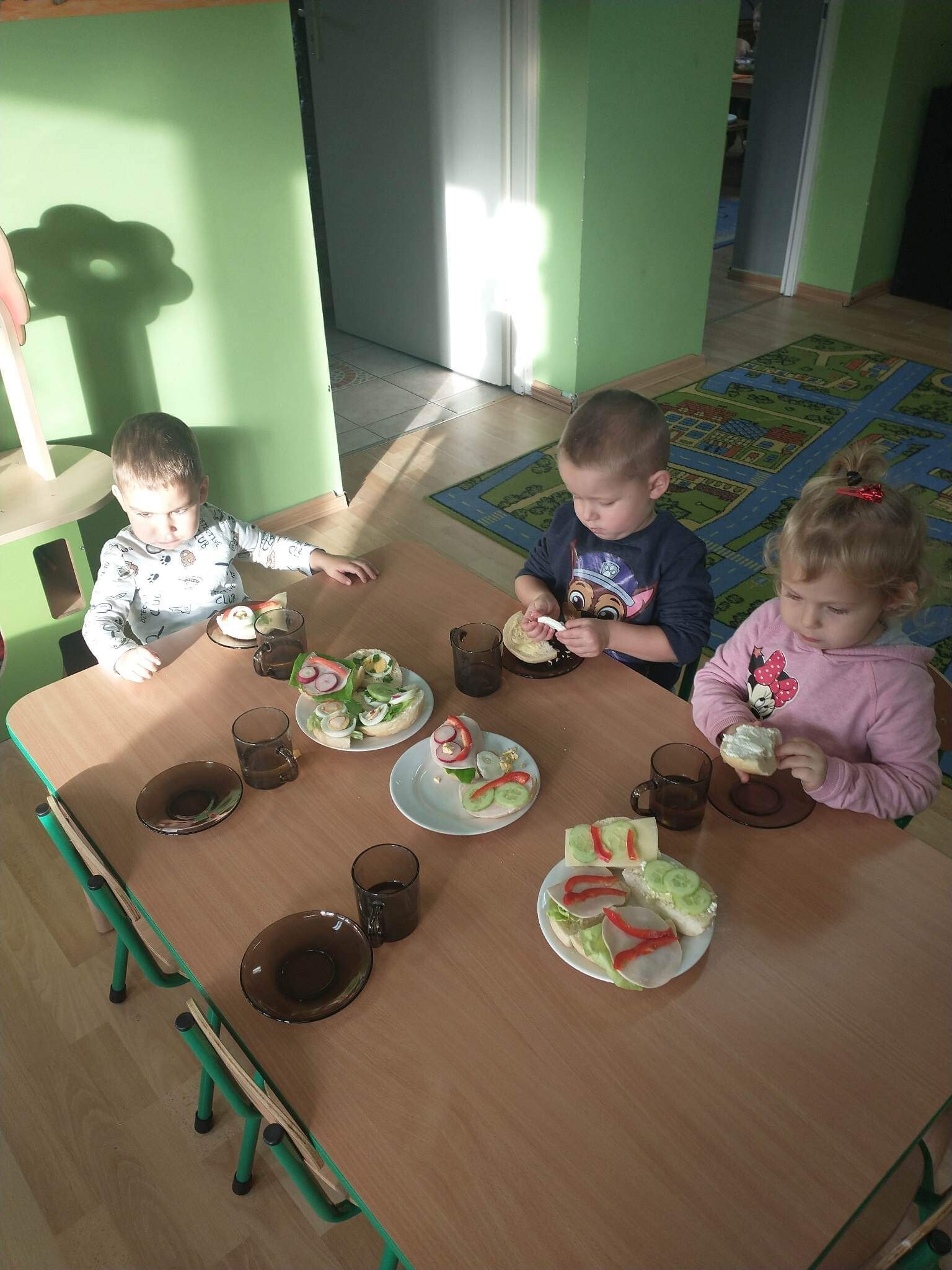 Dzisiaj w naszym przedszkolu był Dzień Zdrowego Śniadania. Starszaki przygotowały śniadanko dla wszystkich dzieci w przedszkolu. Samodzielnie smarowały bułeczki, i układały na nich wybrane przez siebie produkty. Okazało się, że dzieci jednak lubią warzywa, a najlepiej smakują im kanapki zrobione własnoręcznie.