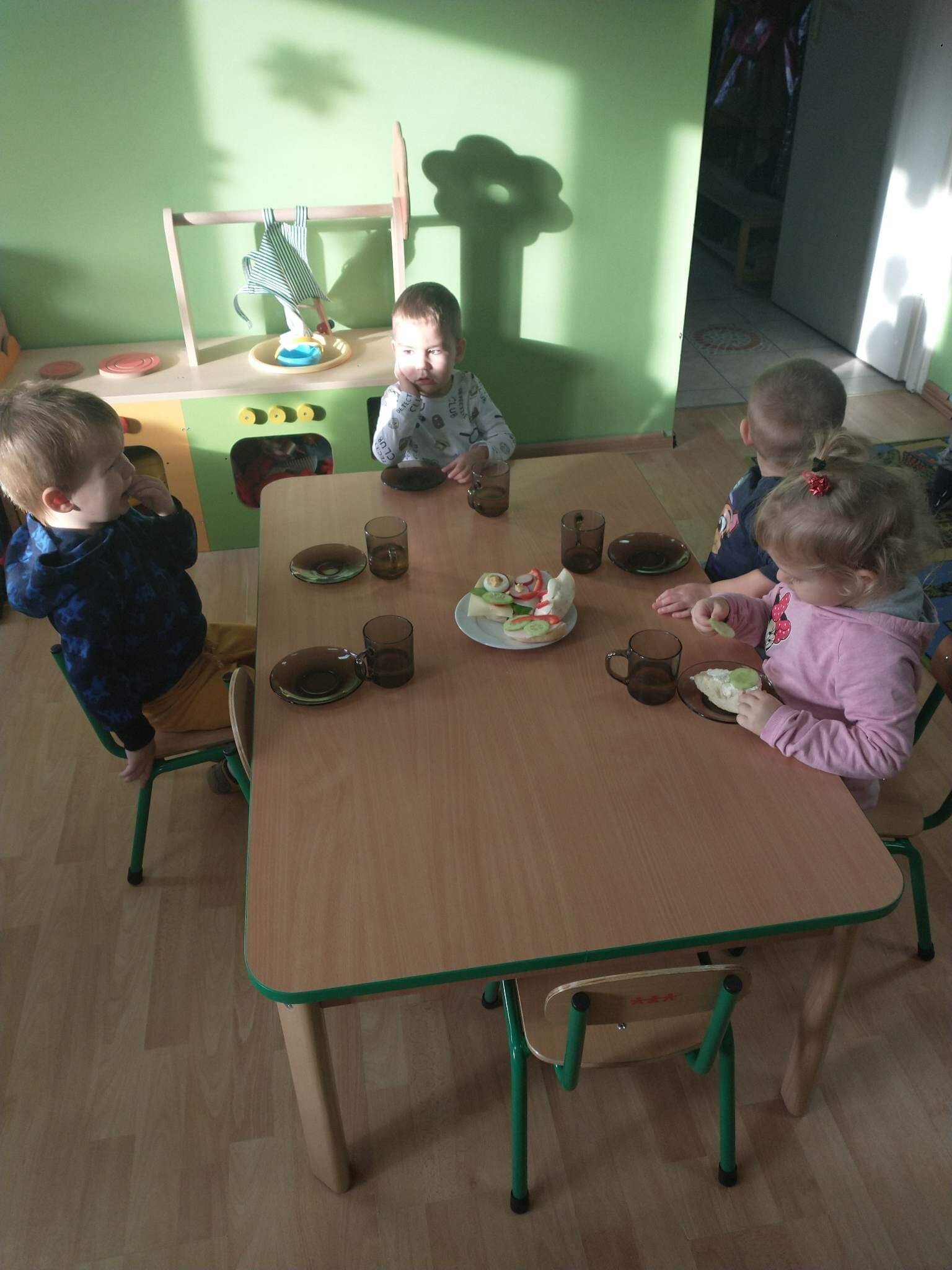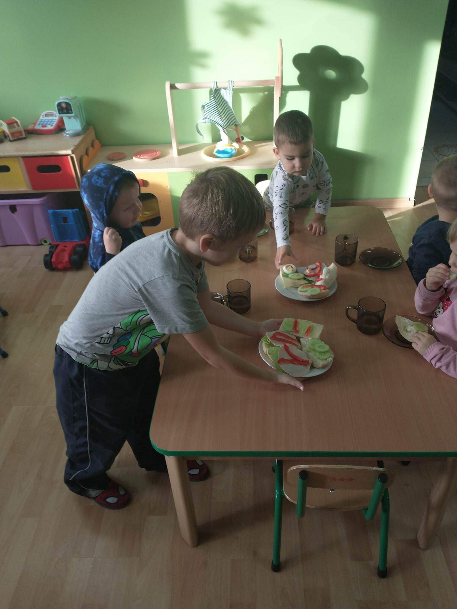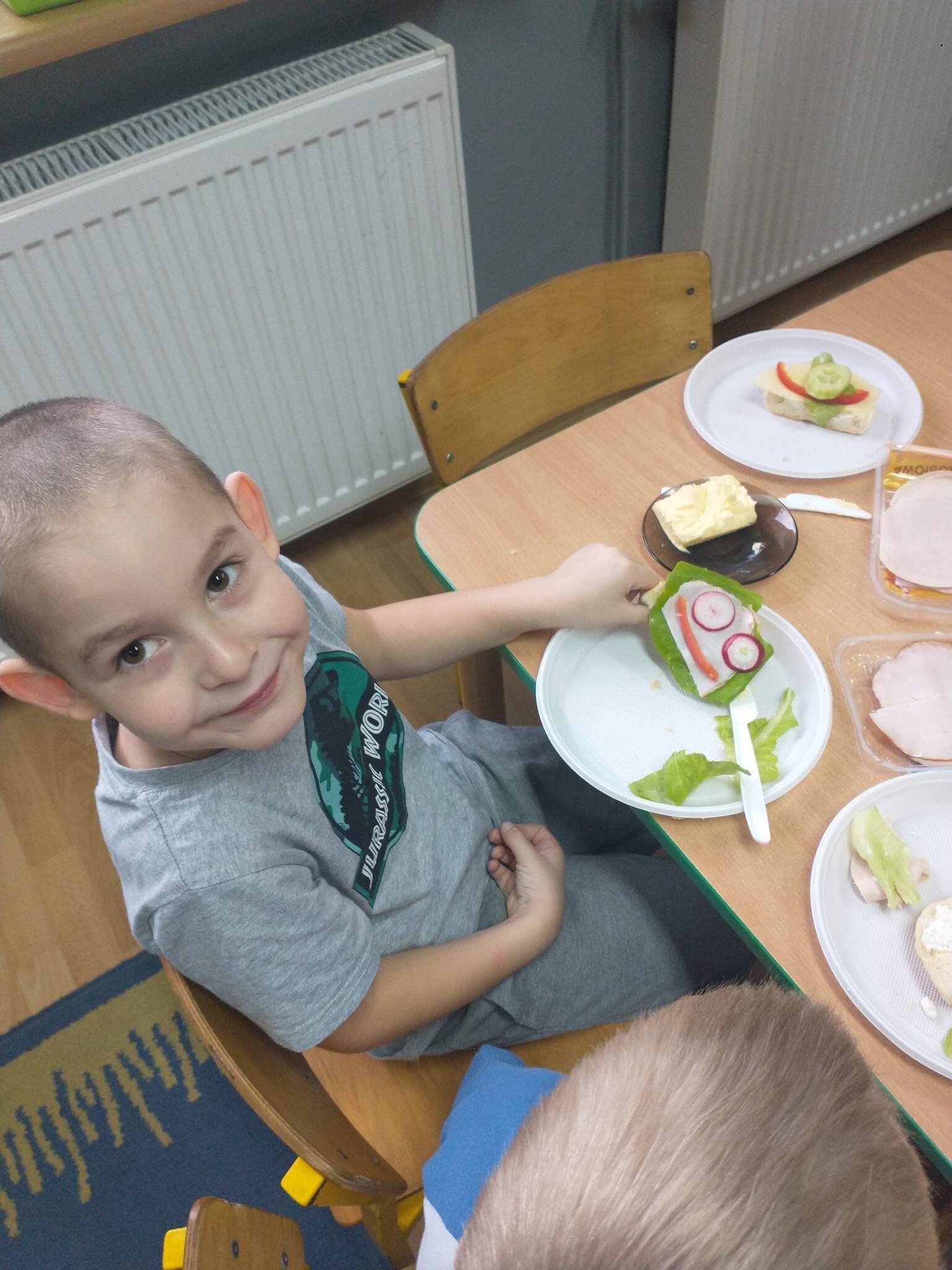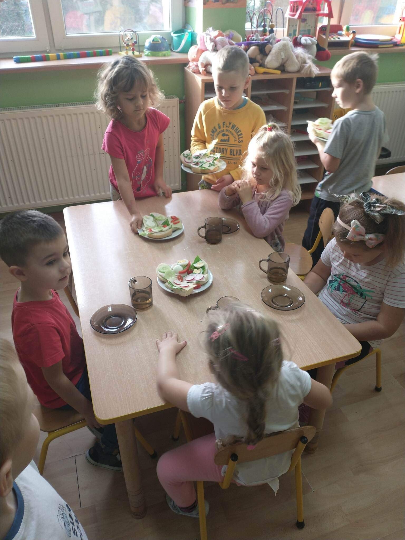 Dzisiaj w naszym przedszkolu był Dzień Zdrowego Śniadania. Starszaki przygotowały śniadanko dla wszystkich dzieci w przedszkolu. Samodzielnie smarowały bułeczki, i układały na nich wybrane przez siebie produkty. Okazało się, że dzieci jednak lubią warzywa, a najlepiej smakują im kanapki zrobione własnoręcznie.