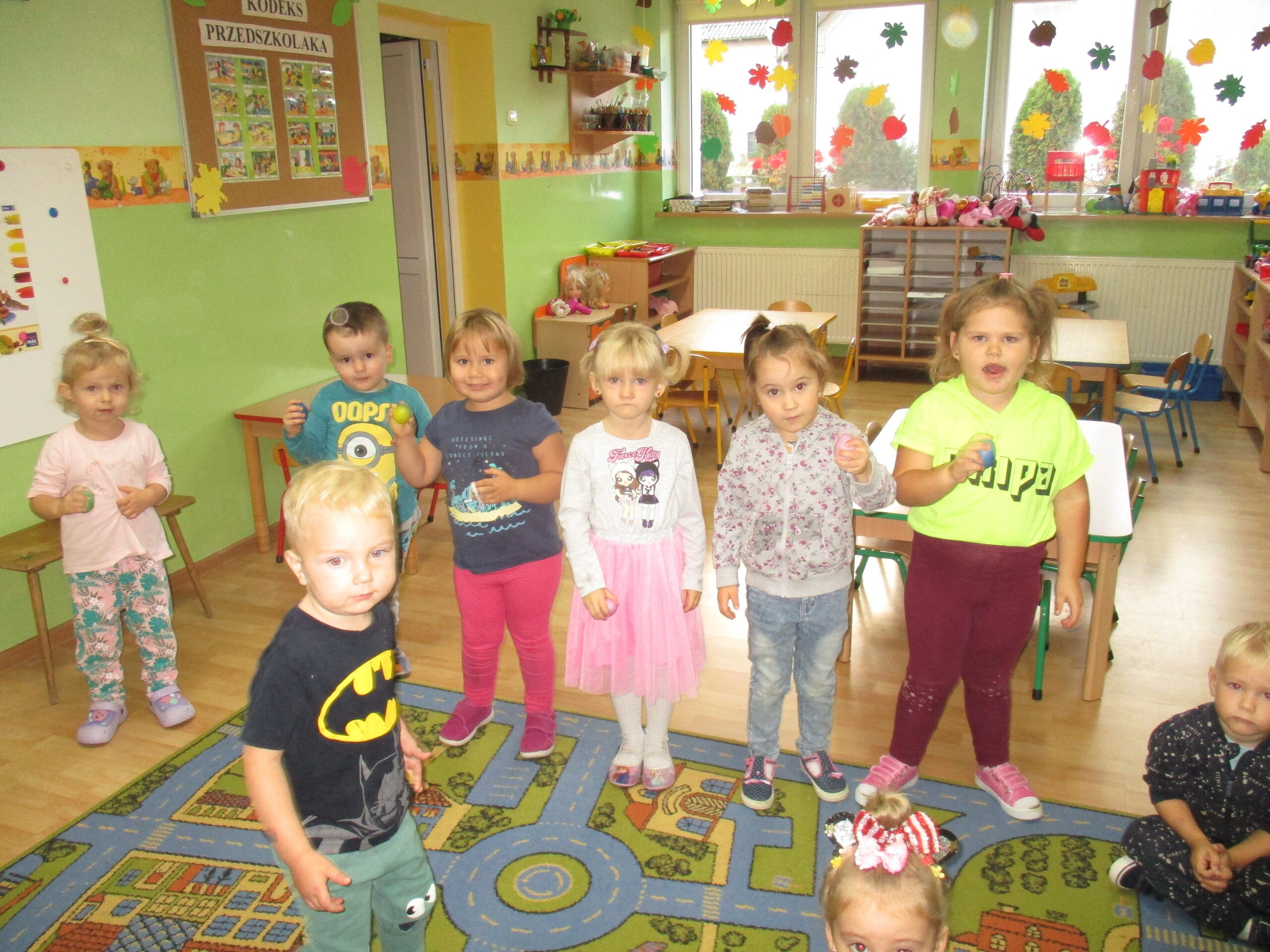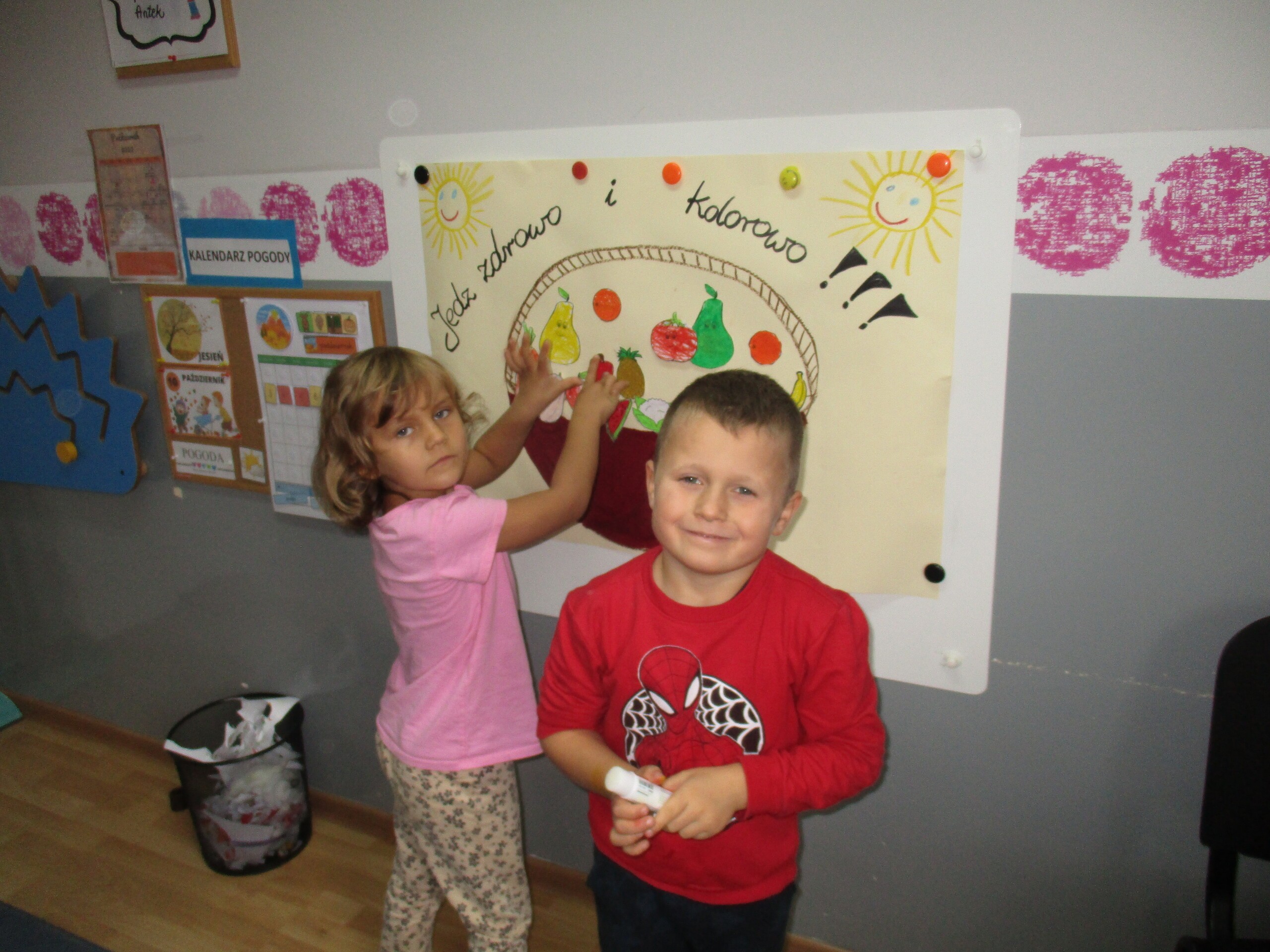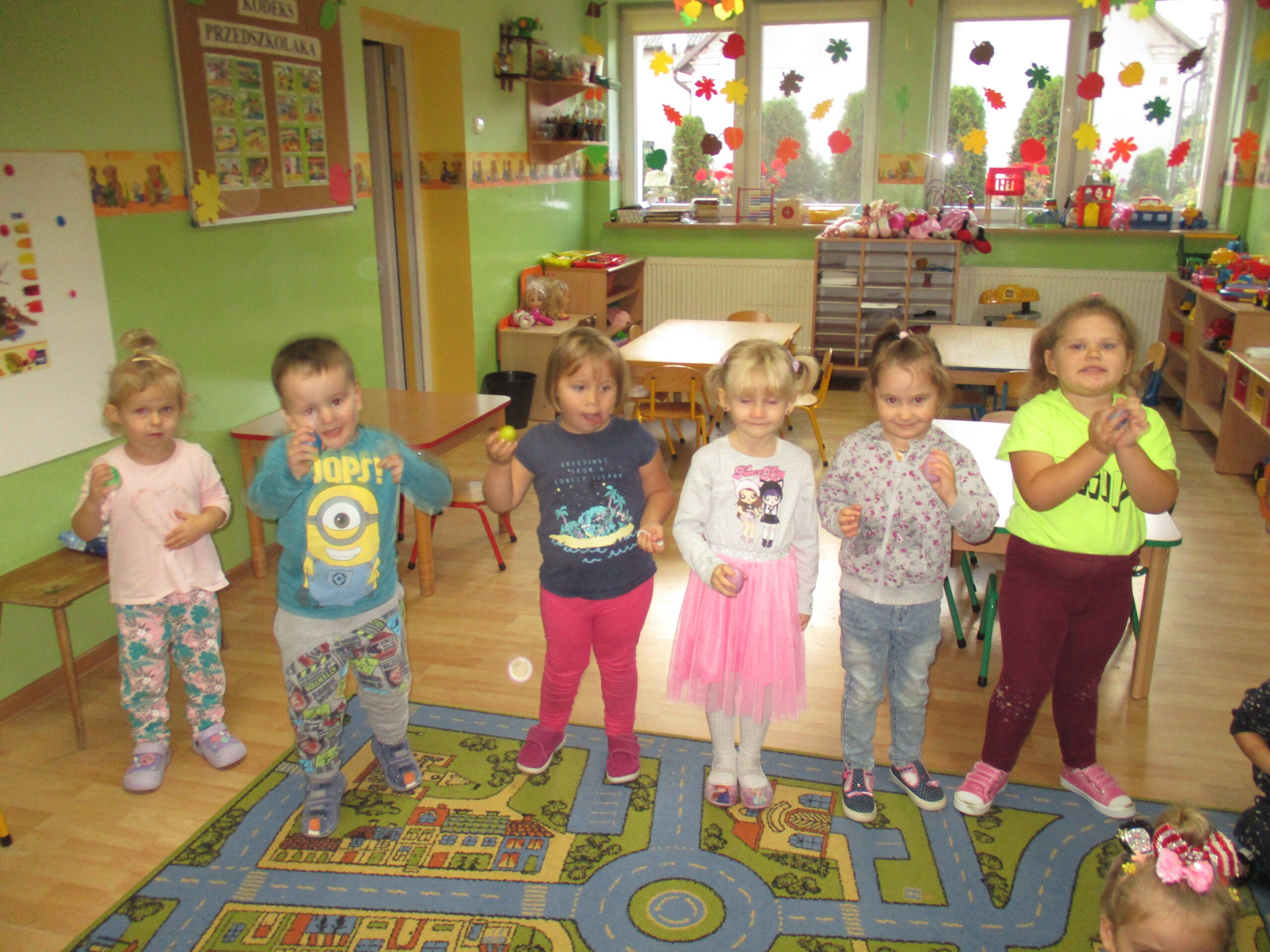 W tym tygodniu młodsza grupa poznawała dary jesieni. Starszaki rozmawiały o sposobach dbania jesienią o zdrowie.