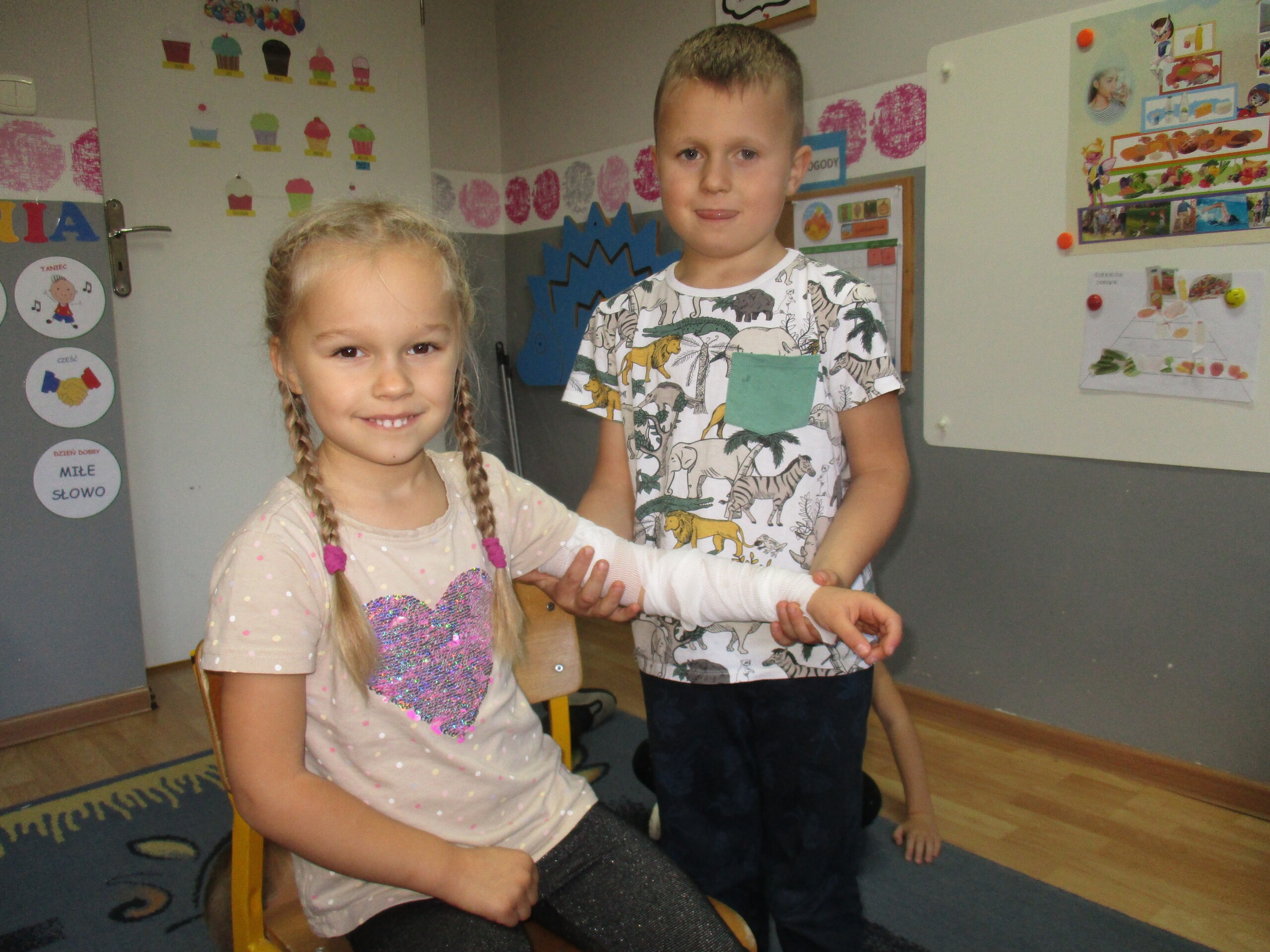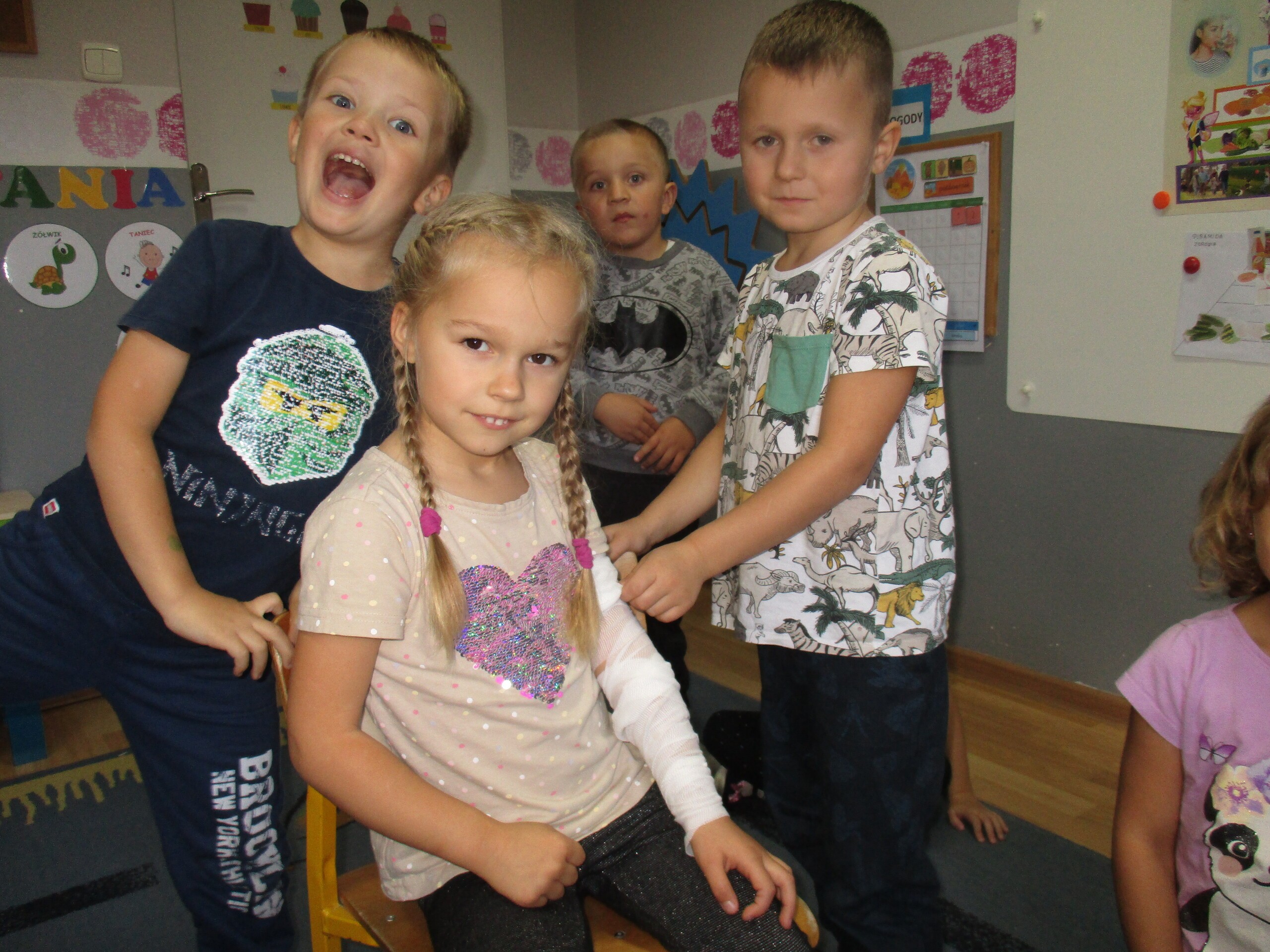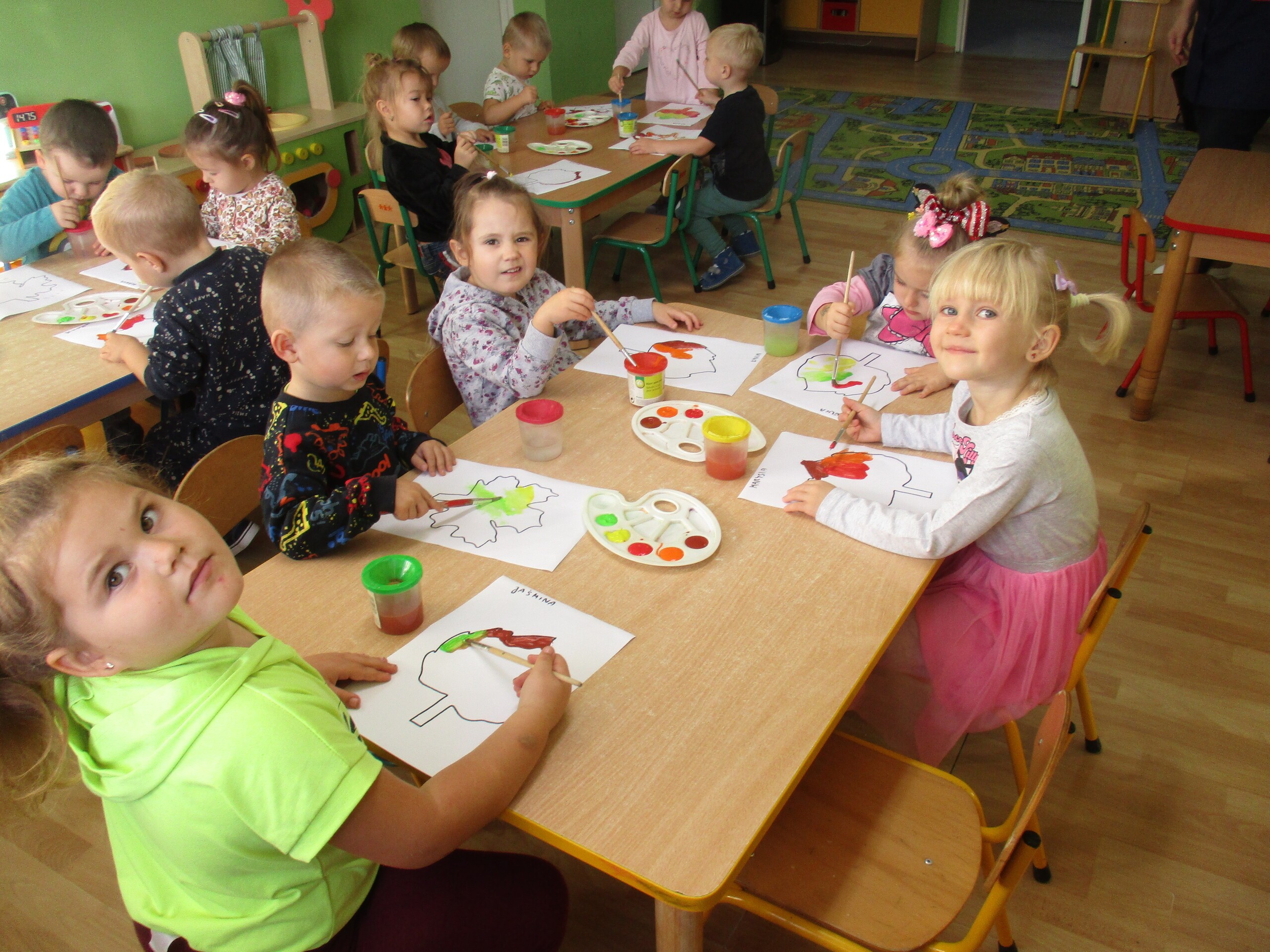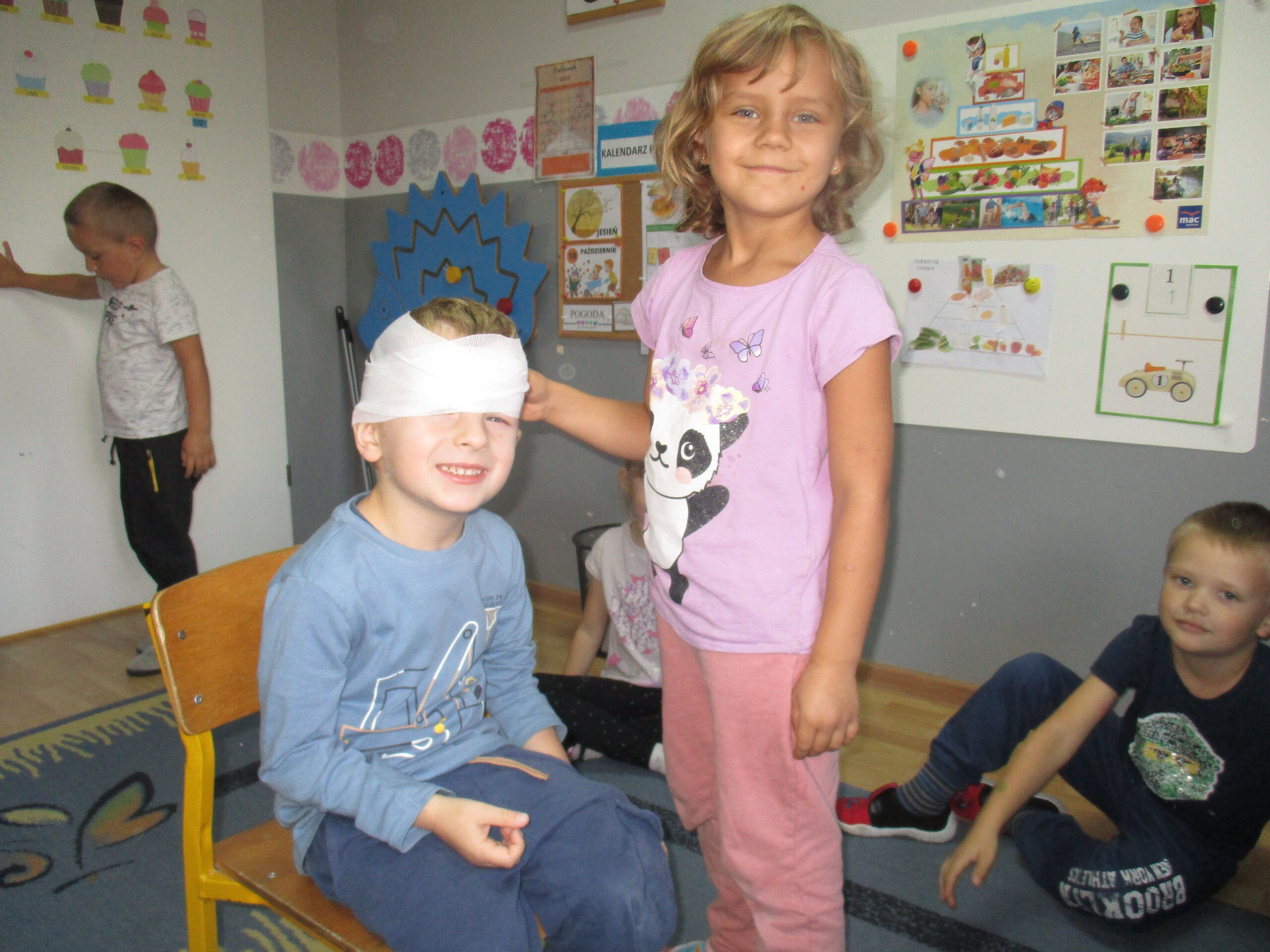 W tym tygodniu młodsza grupa poznawała dary jesieni. Starszaki rozmawiały o sposobach dbania jesienią o zdrowie.
