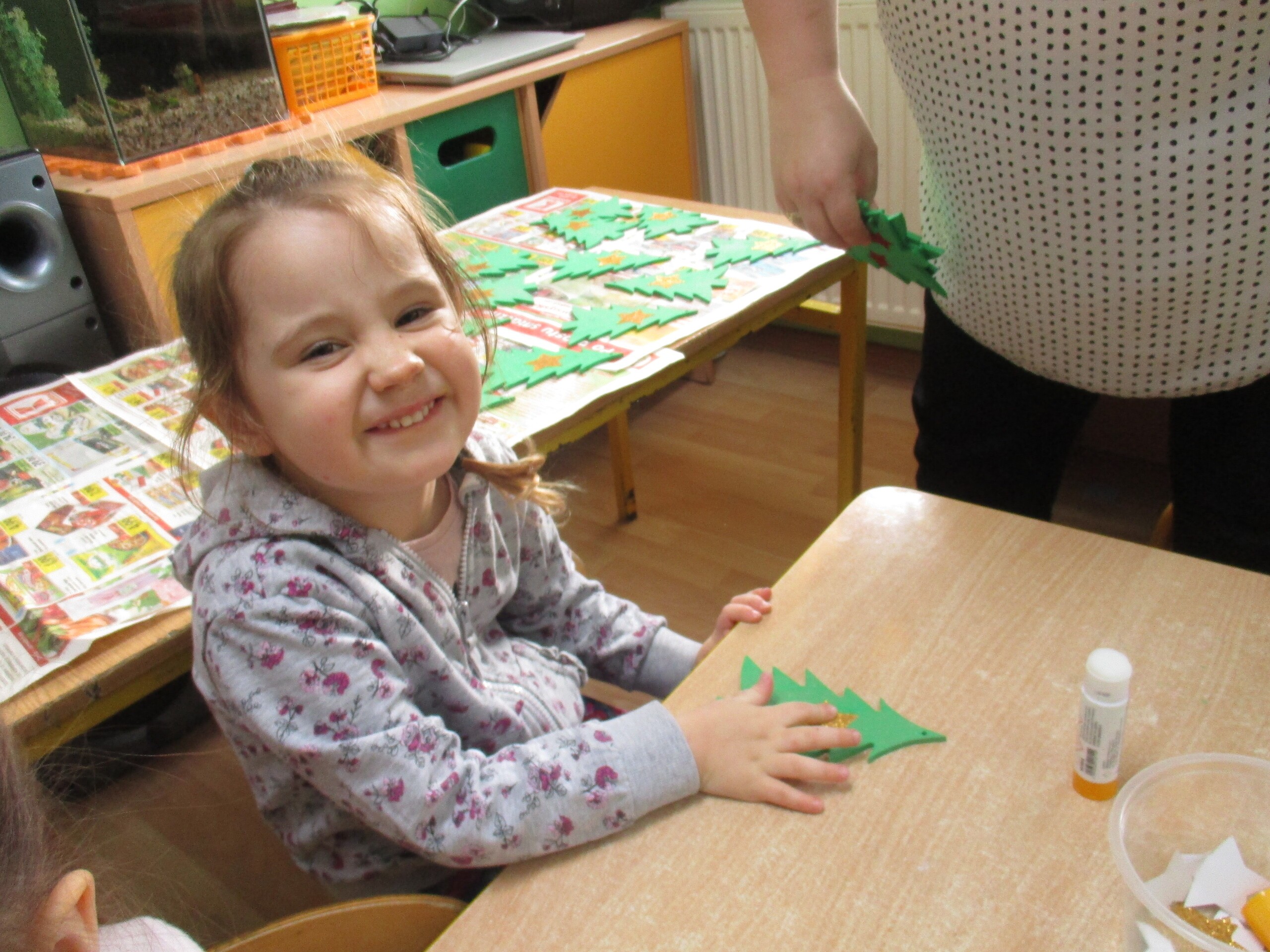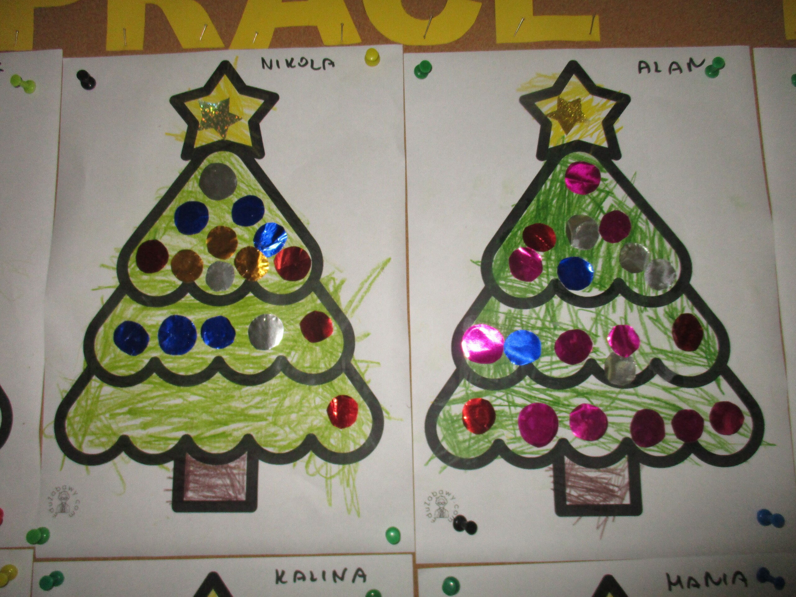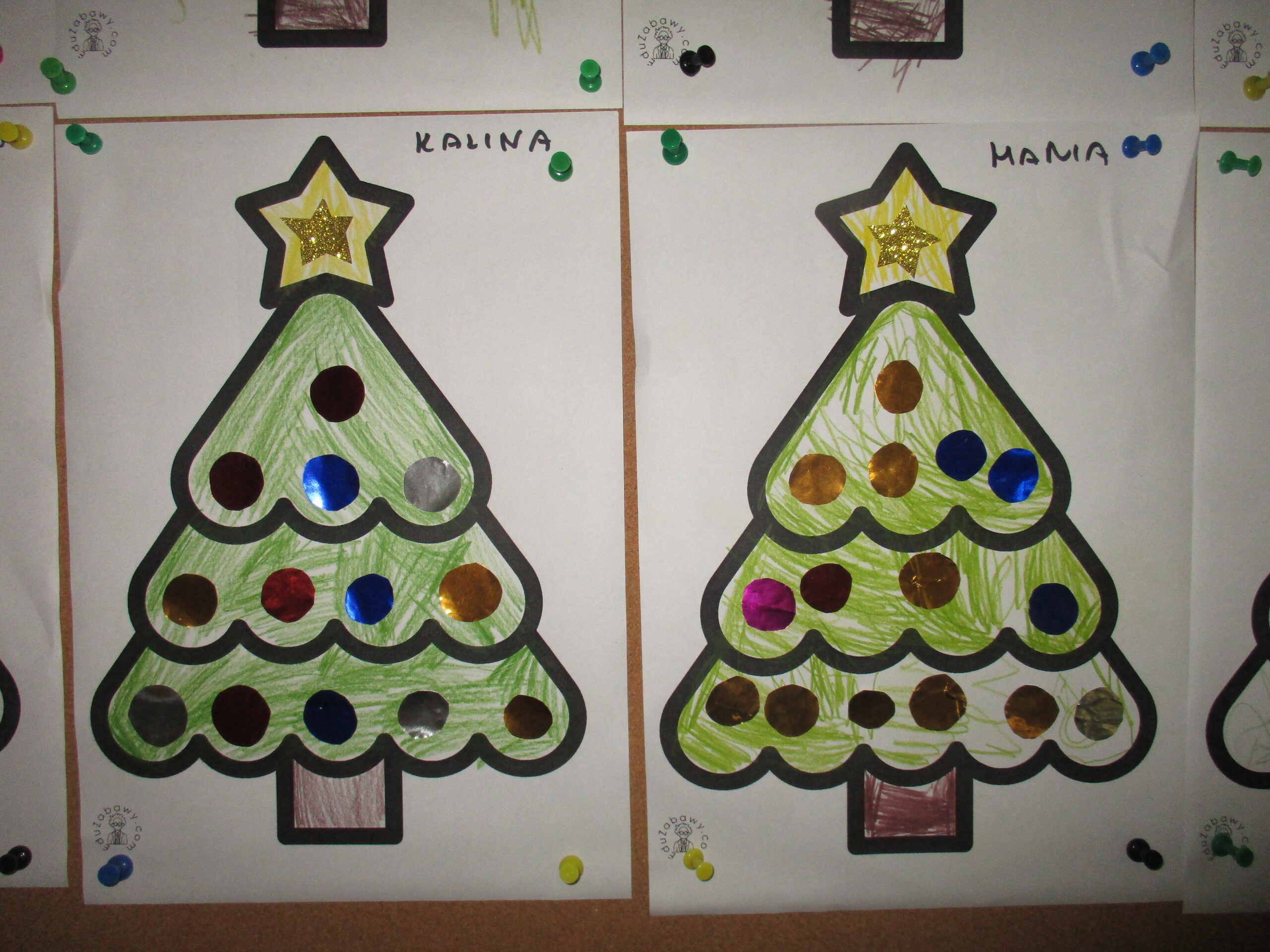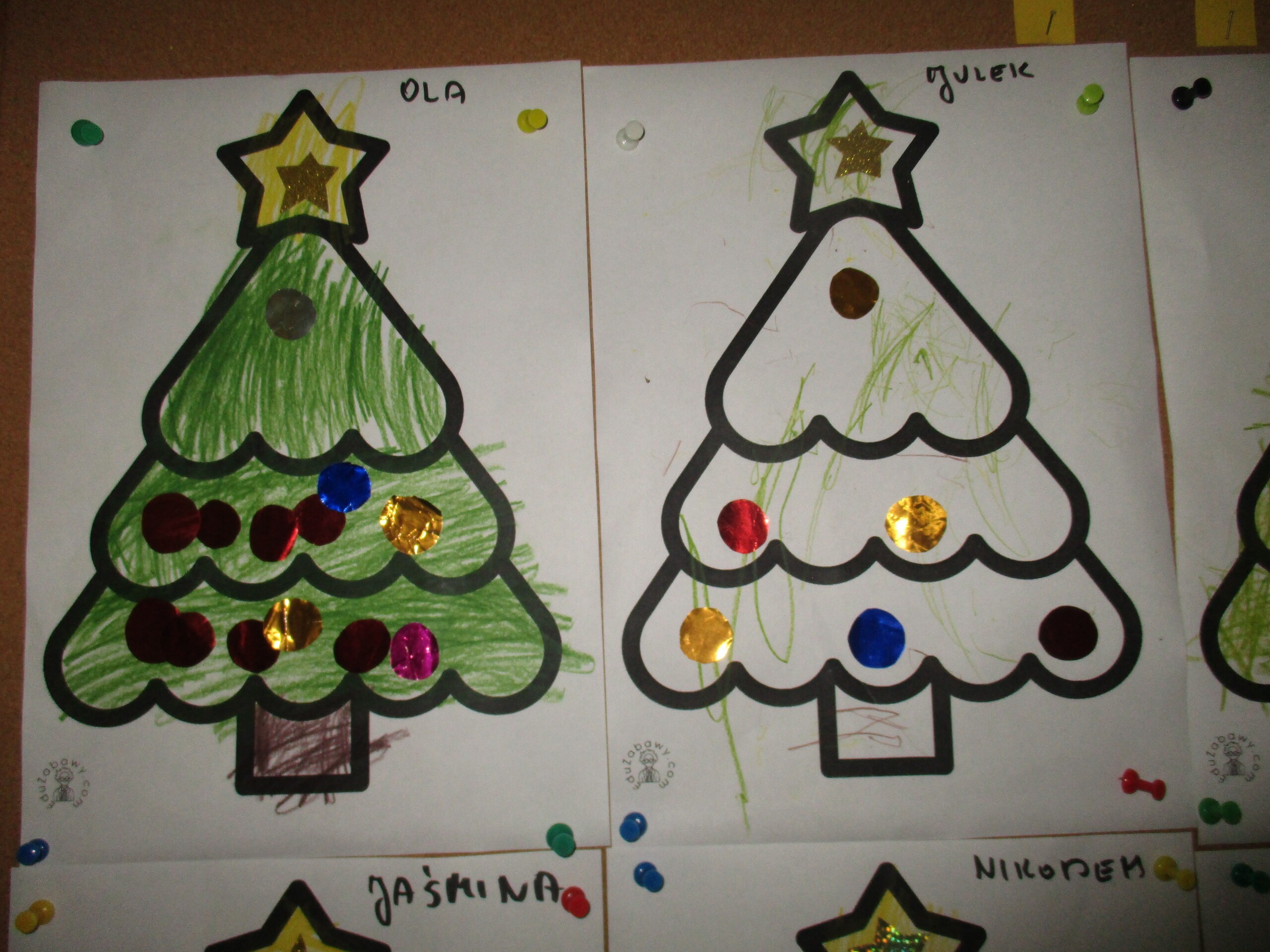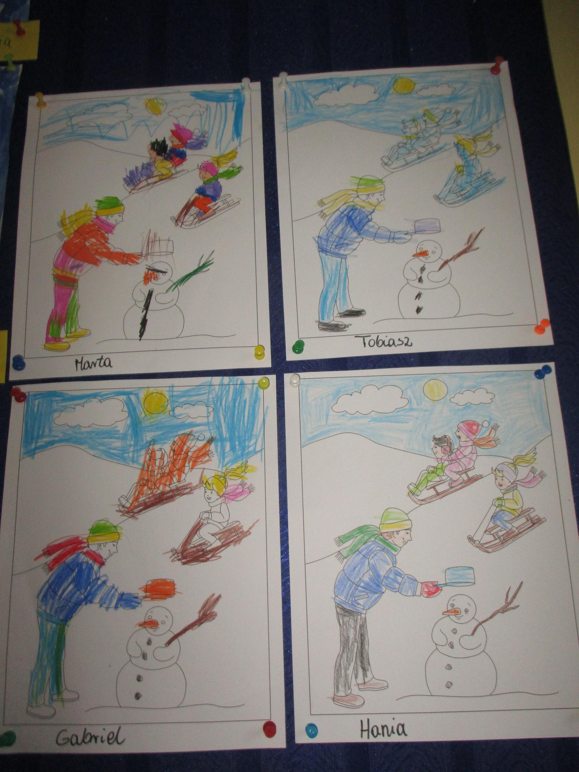 W poprzednim tygodniu rozmawialiśmy o świętach oraz o zabawach zimowych. Dzieci przygotowywały swoje choinki na piątkowy kiermasz.