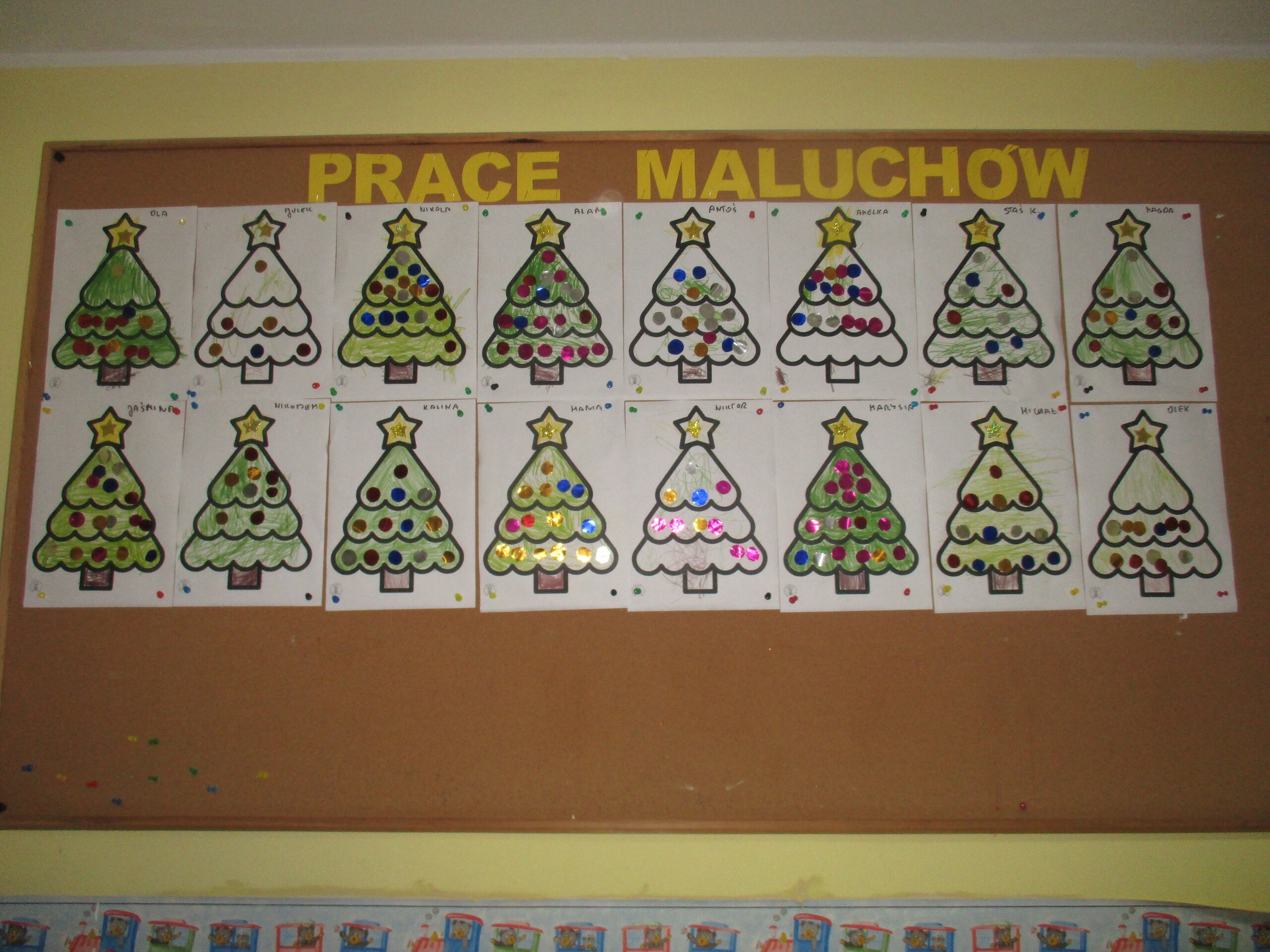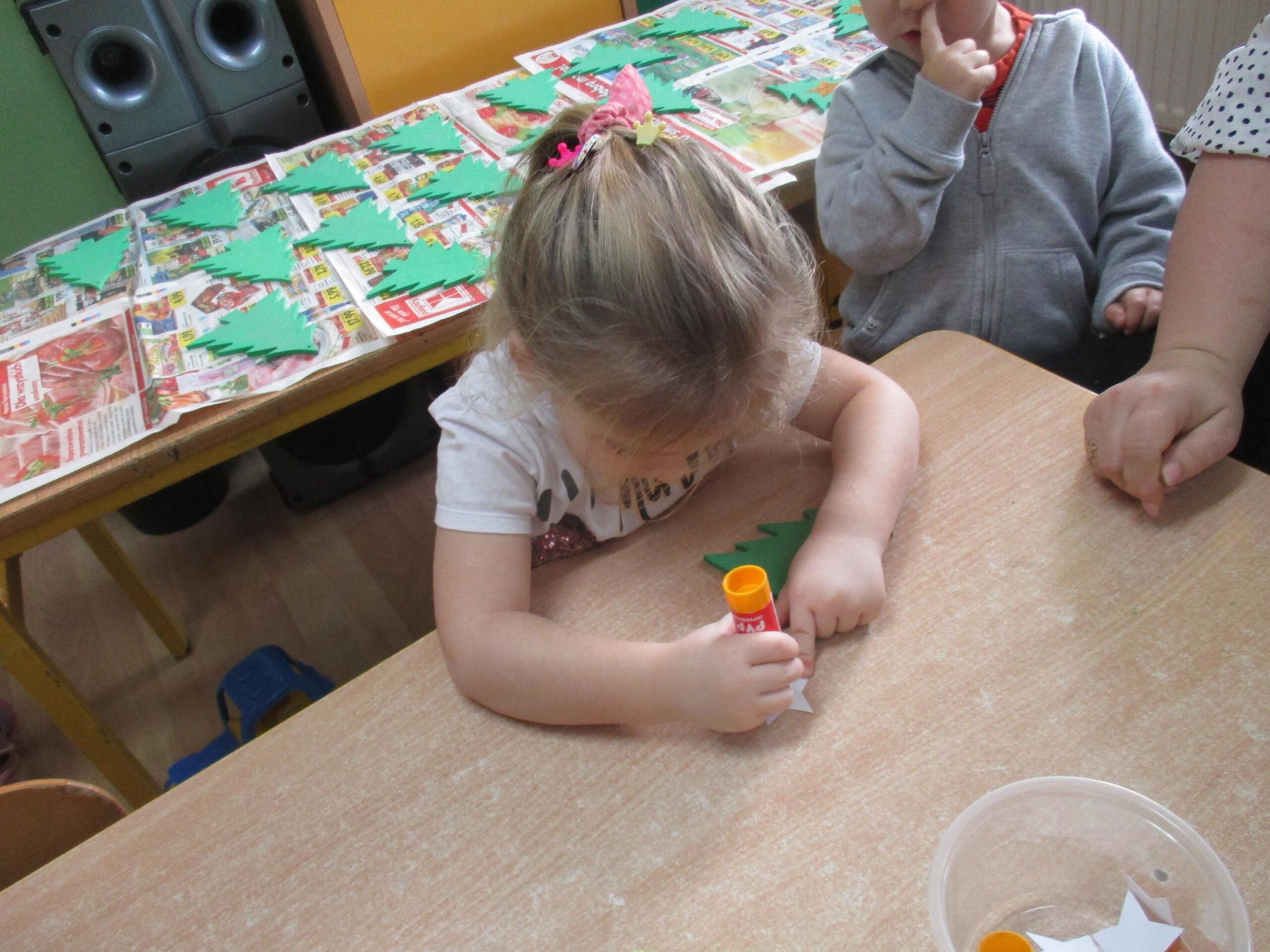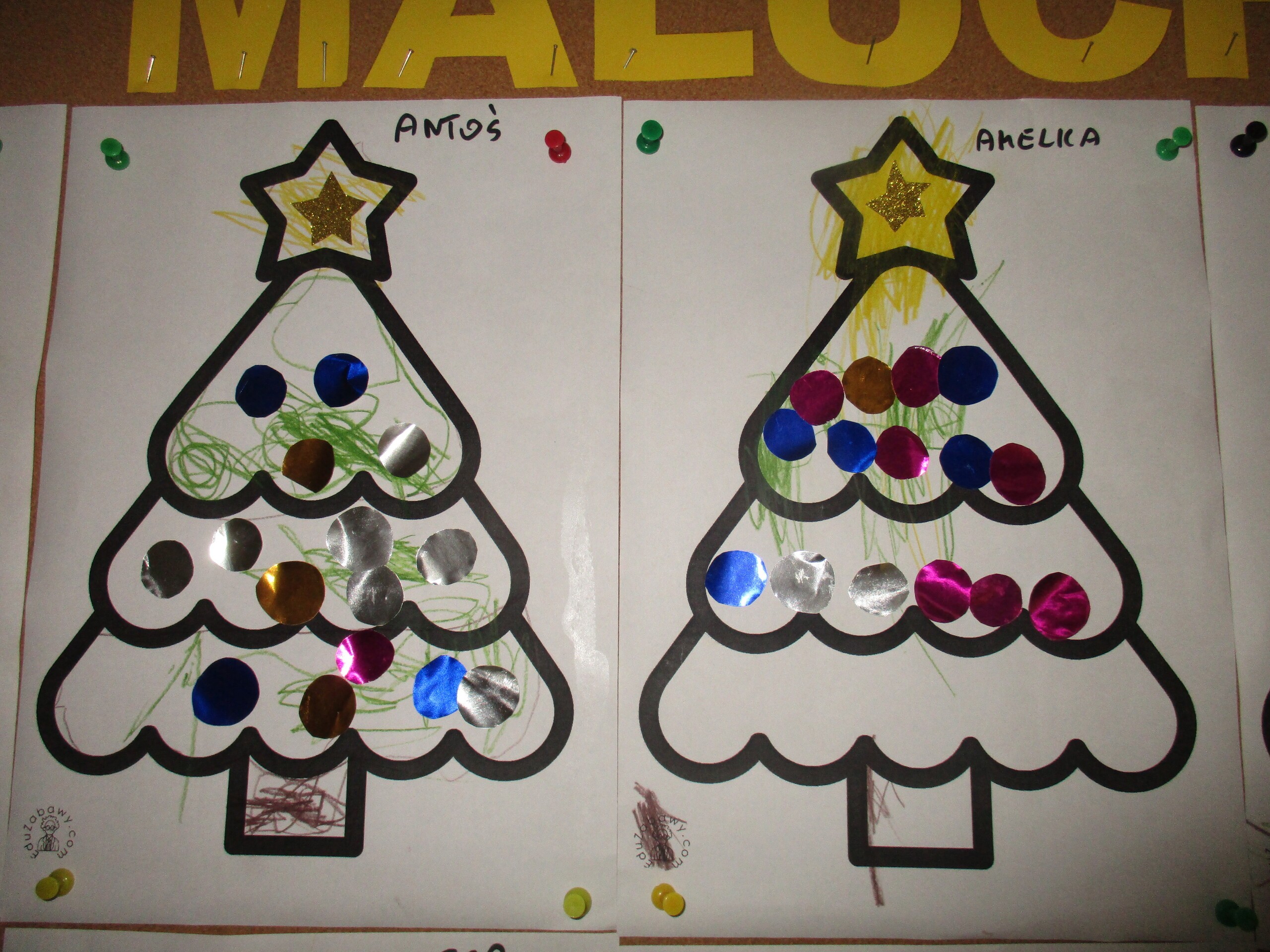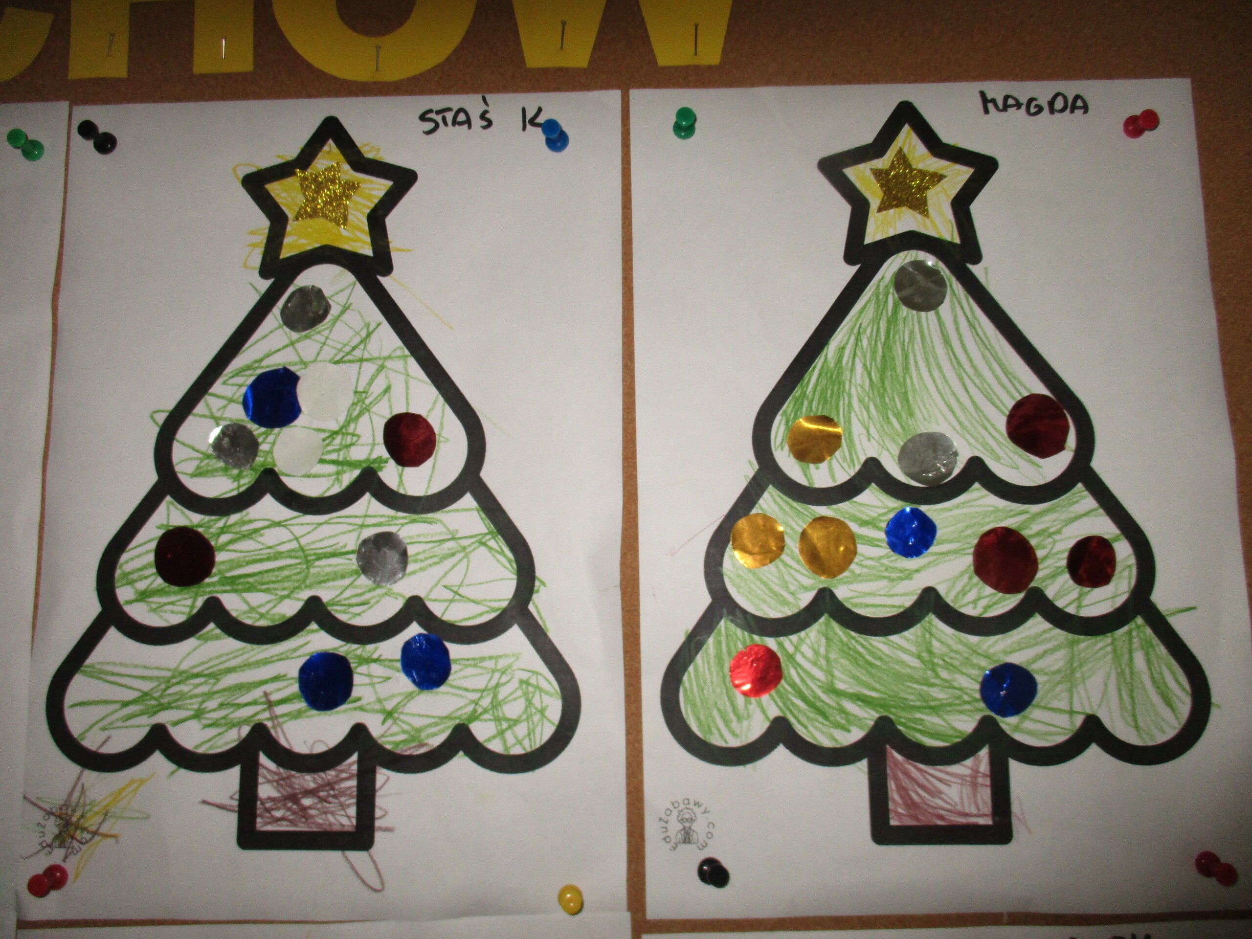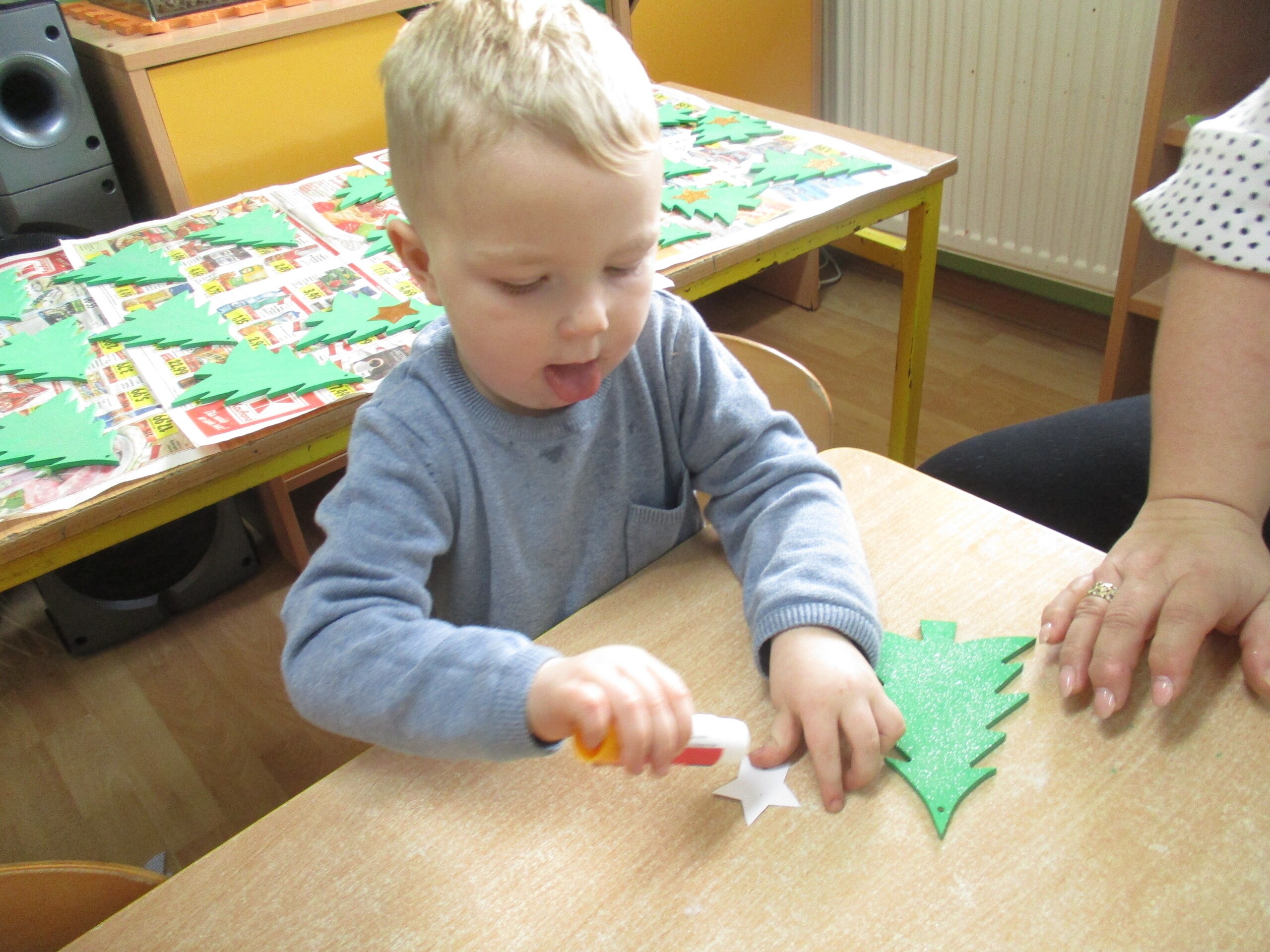 W poprzednim tygodniu rozmawialiśmy o świętach oraz o zabawach zimowych. Dzieci przygotowywały swoje choinki na piątkowy kiermasz.