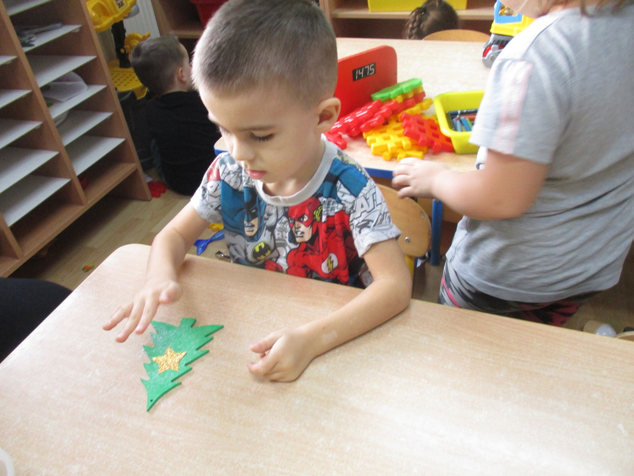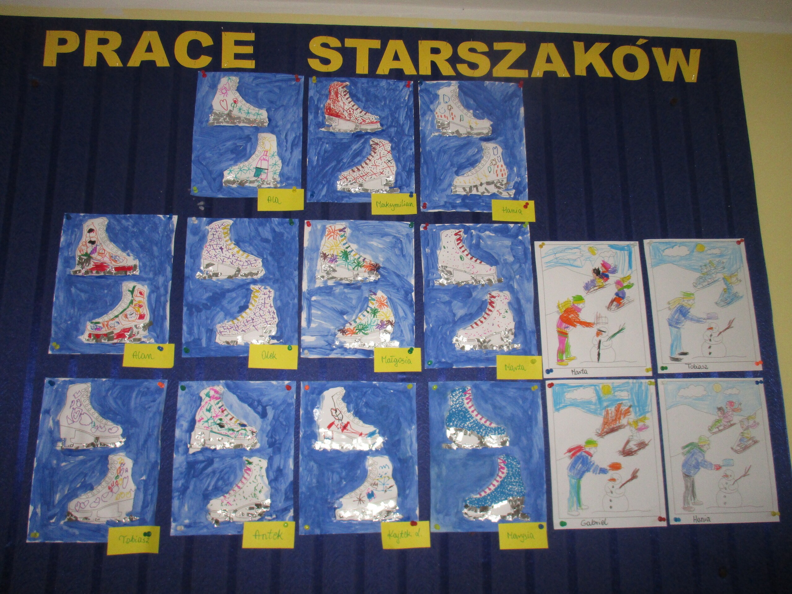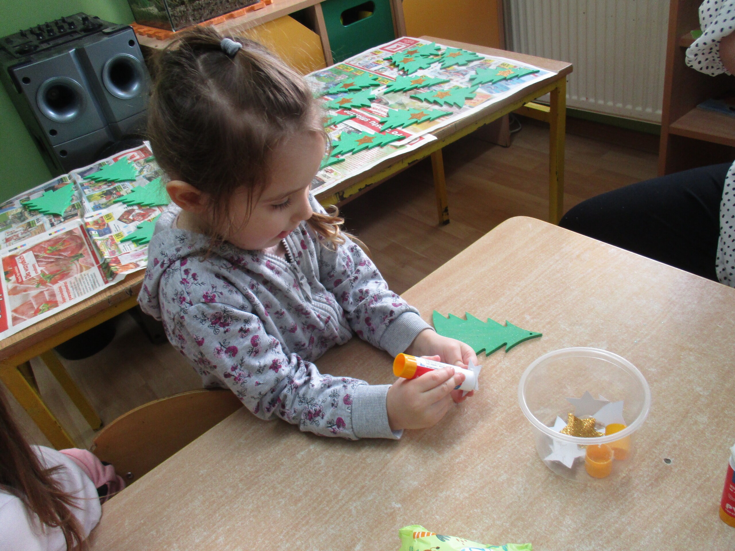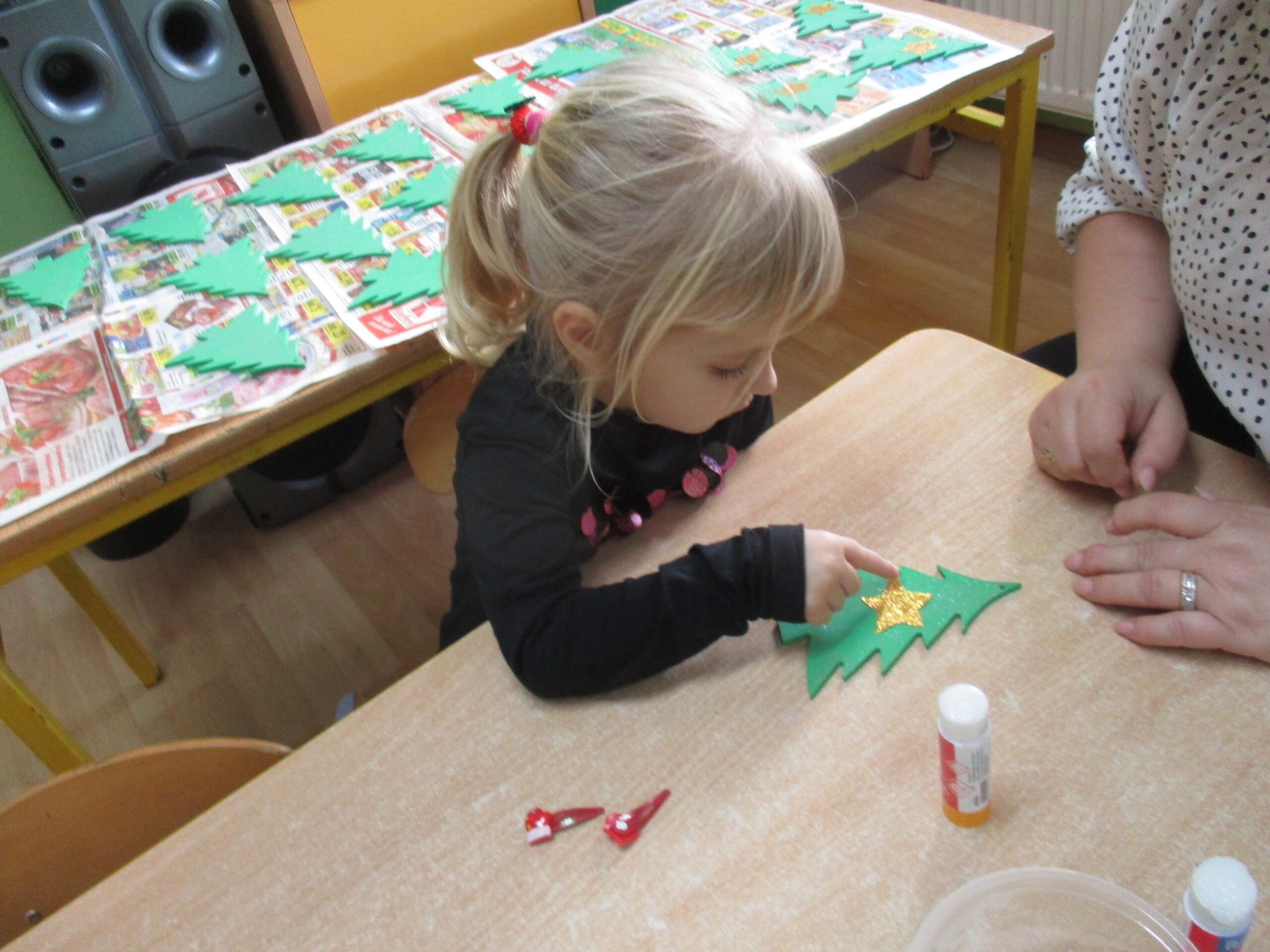 W poprzednim tygodniu rozmawialiśmy o świętach oraz o zabawach zimowych. Dzieci przygotowywały swoje choinki na piątkowy kiermasz.