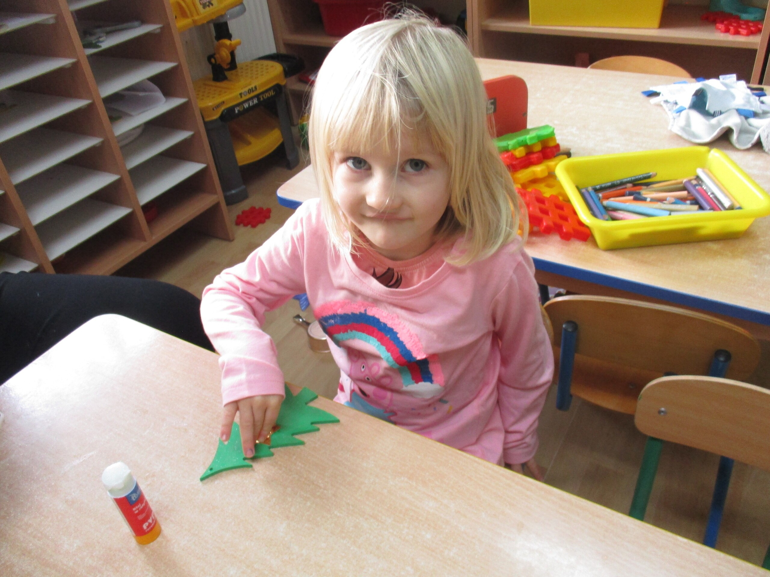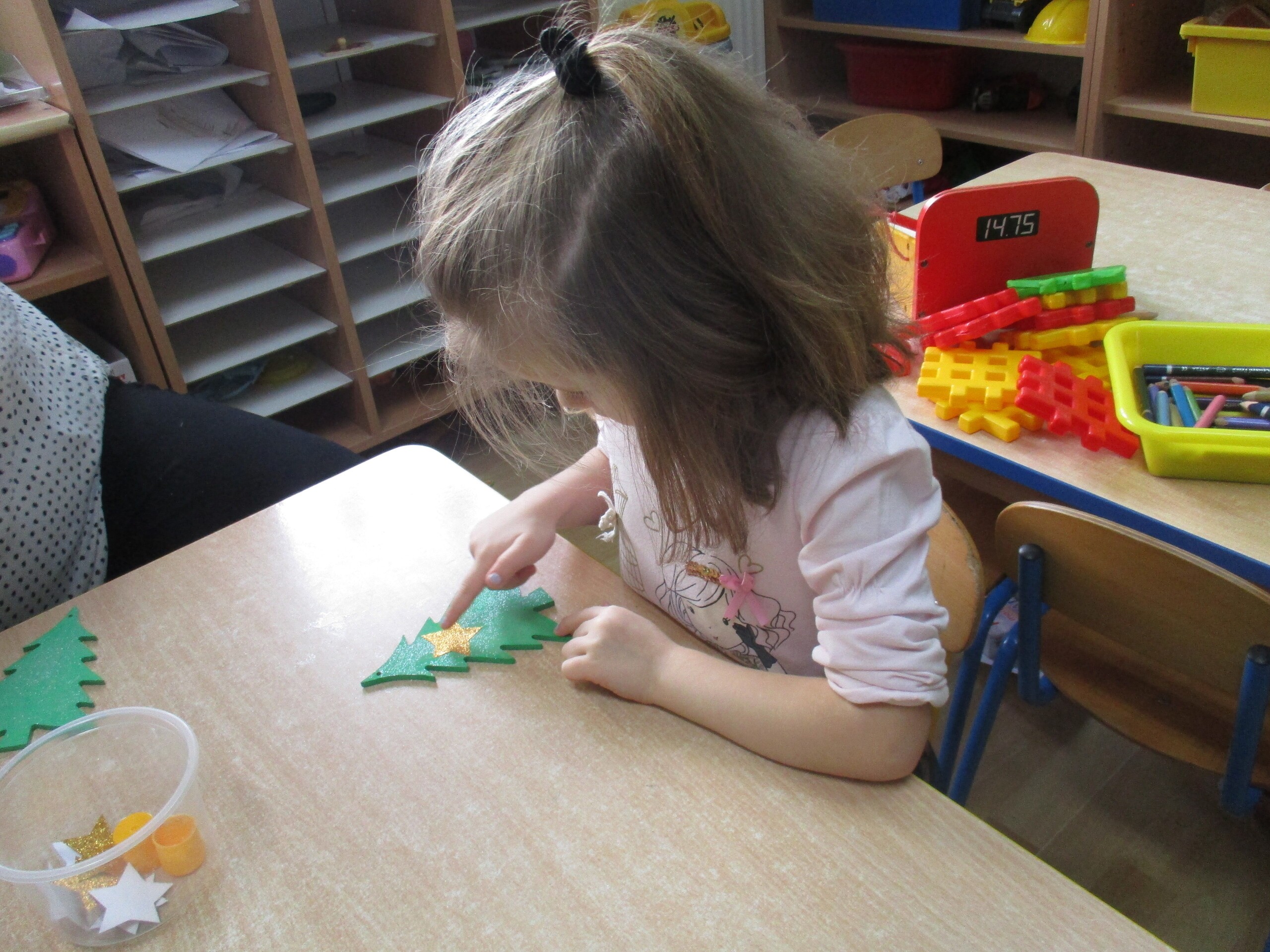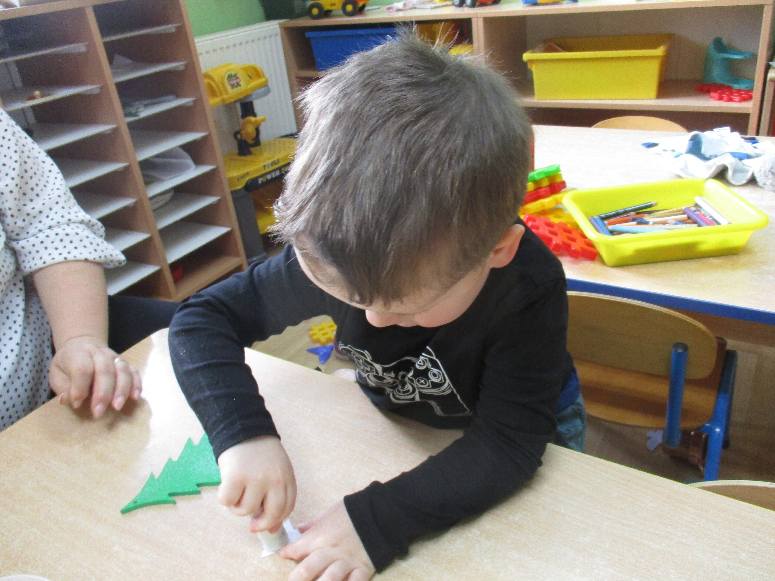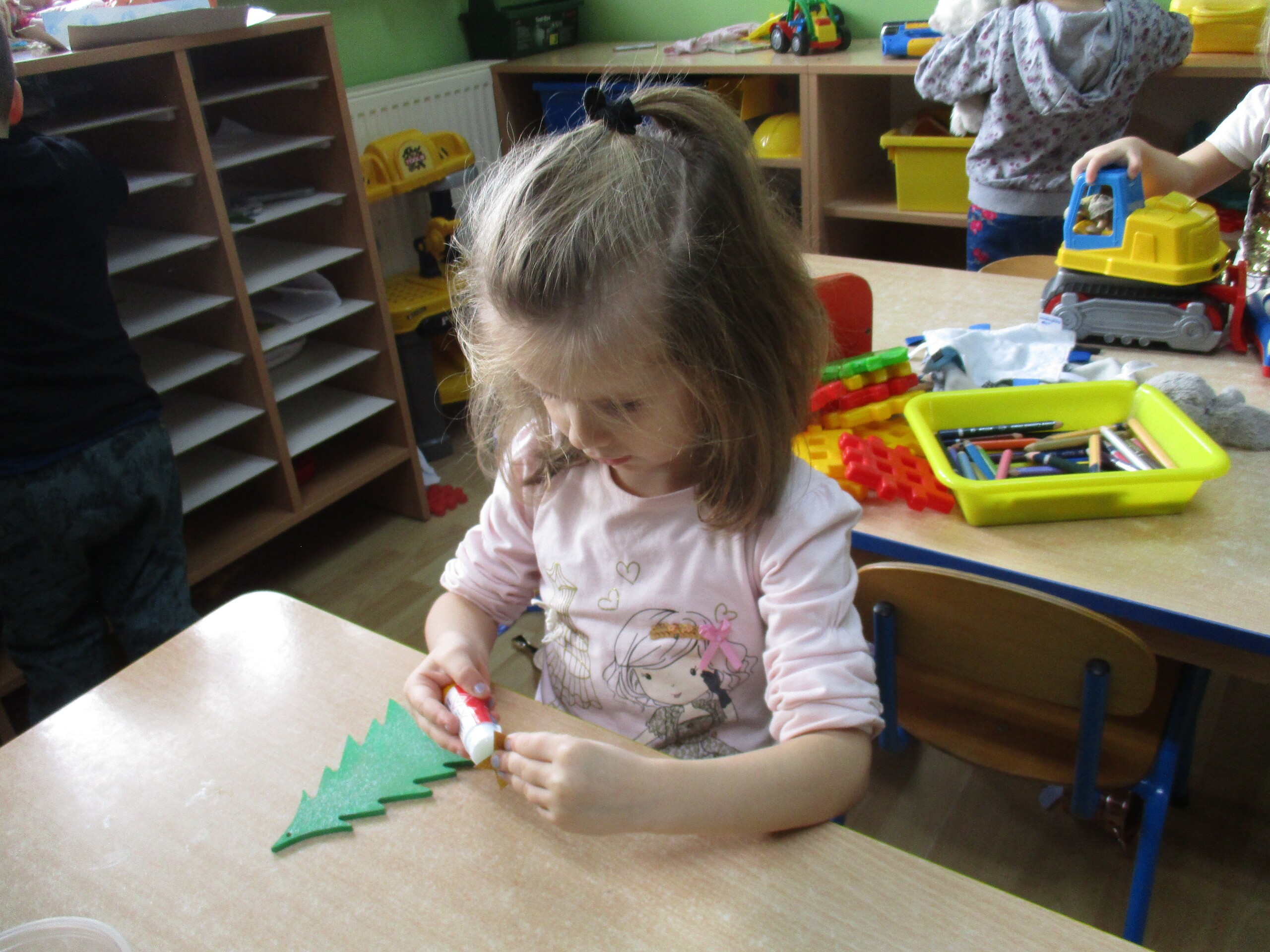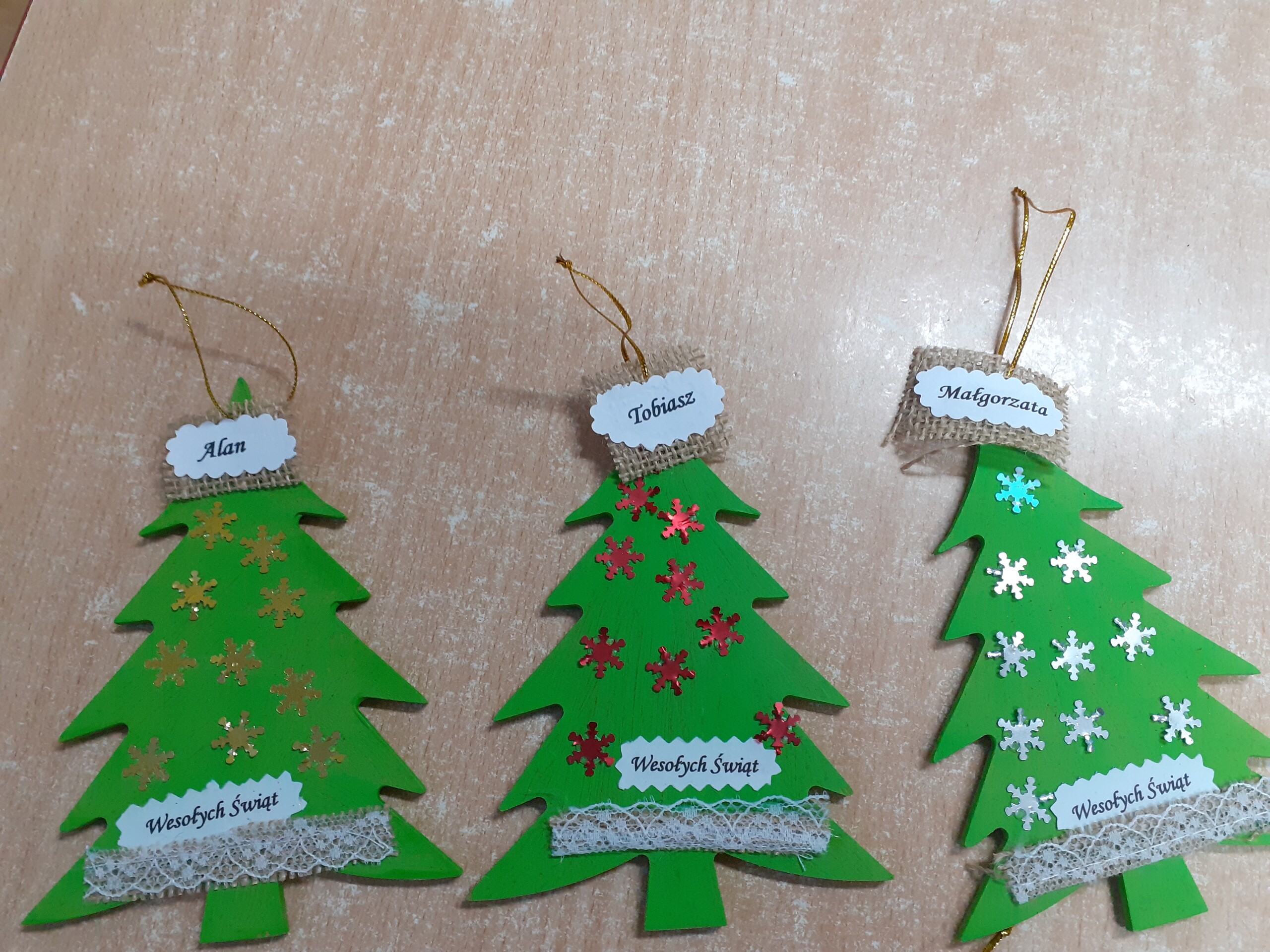 W poprzednim tygodniu rozmawialiśmy o świętach oraz o zabawach zimowych. Dzieci przygotowywały swoje choinki na piątkowy kiermasz.