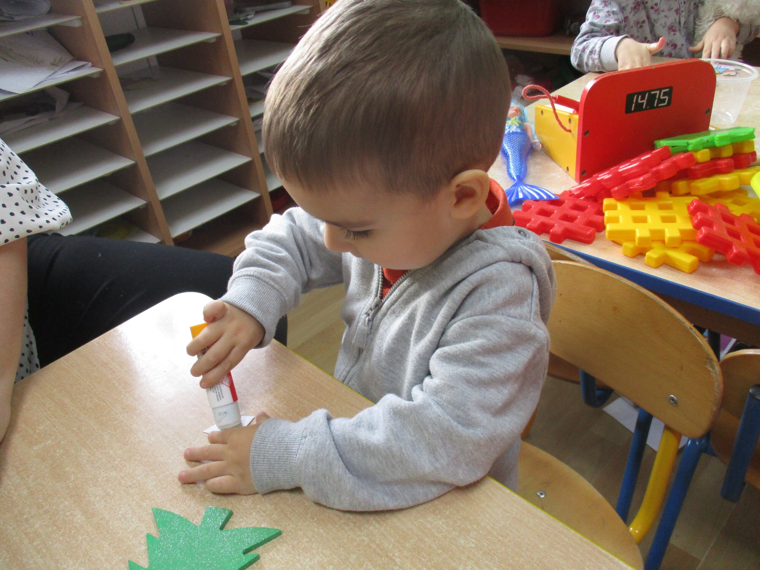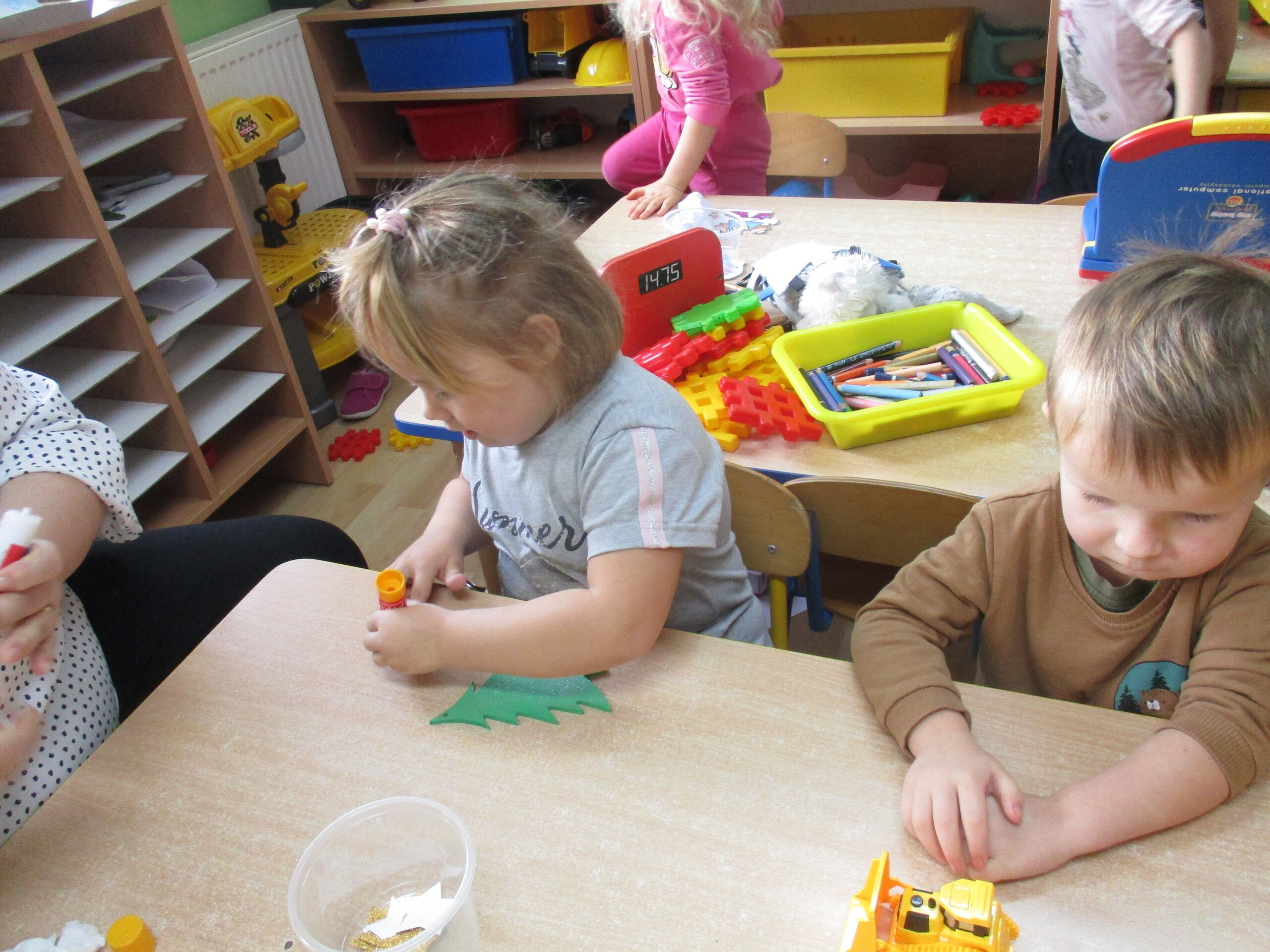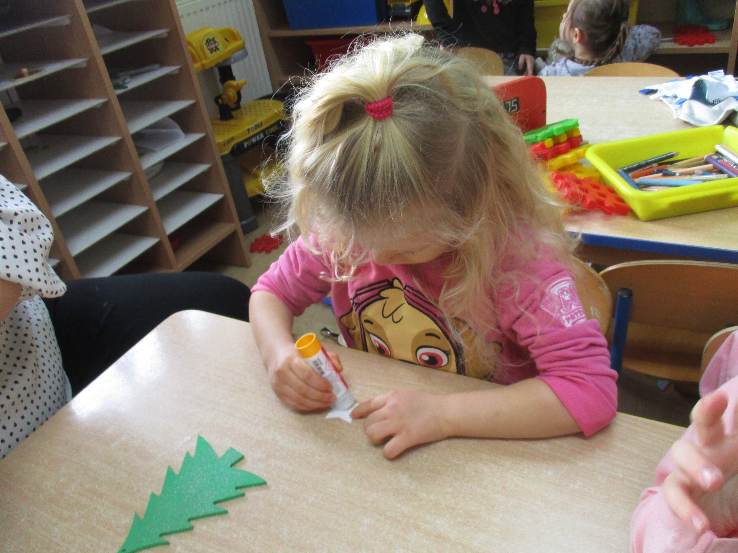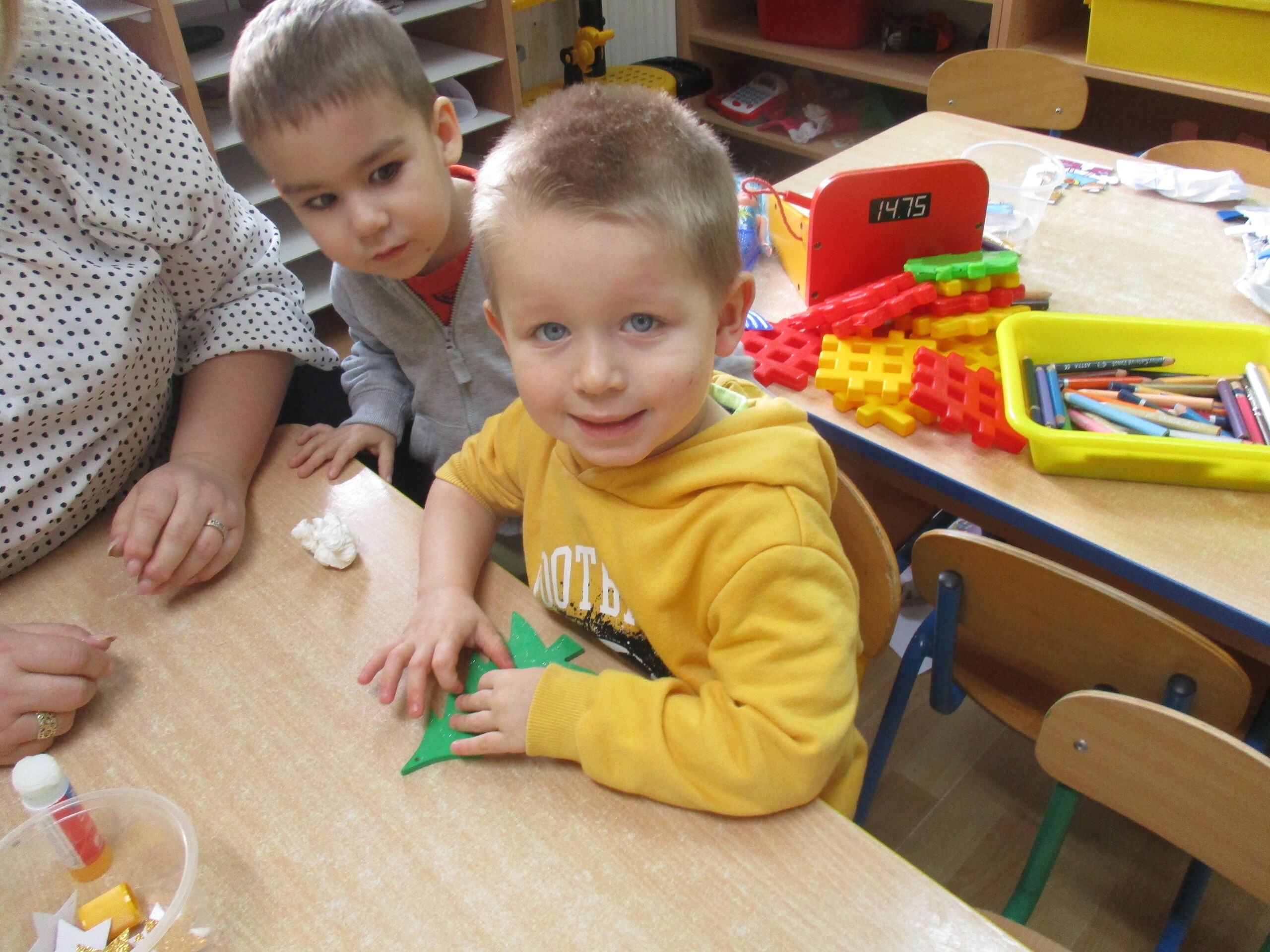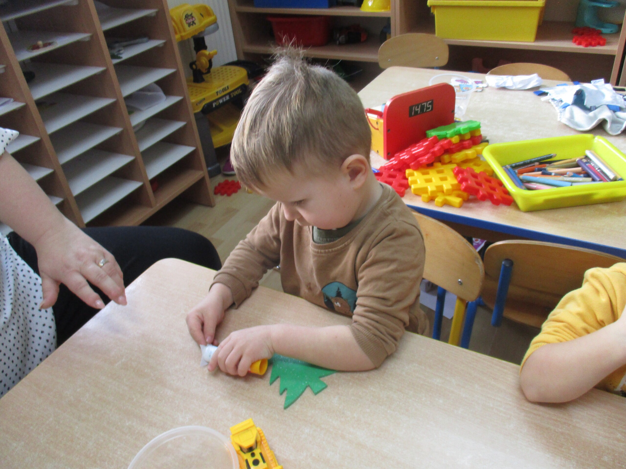 W poprzednim tygodniu rozmawialiśmy o świętach oraz o zabawach zimowych. Dzieci przygotowywały swoje choinki na piątkowy kiermasz.