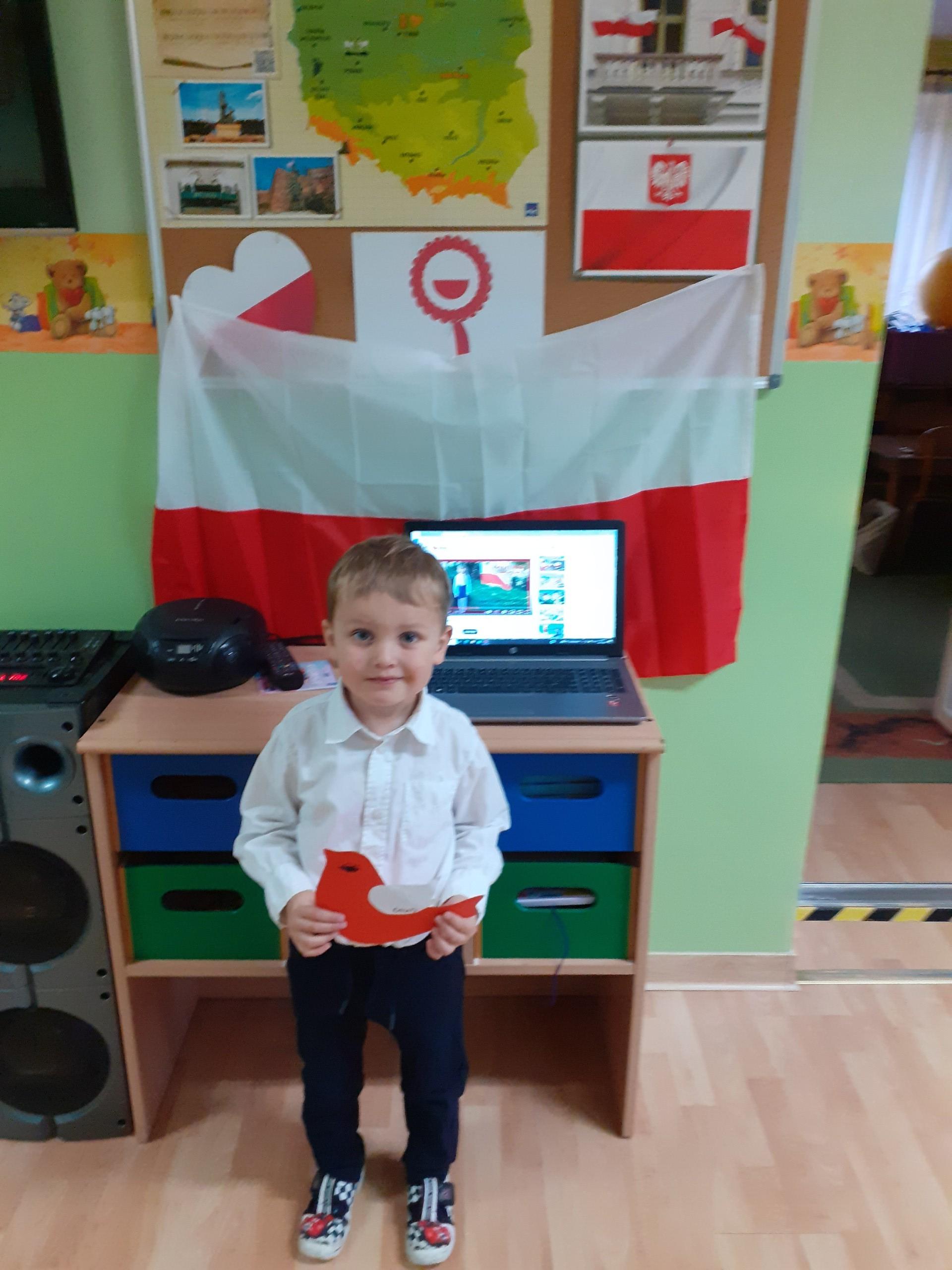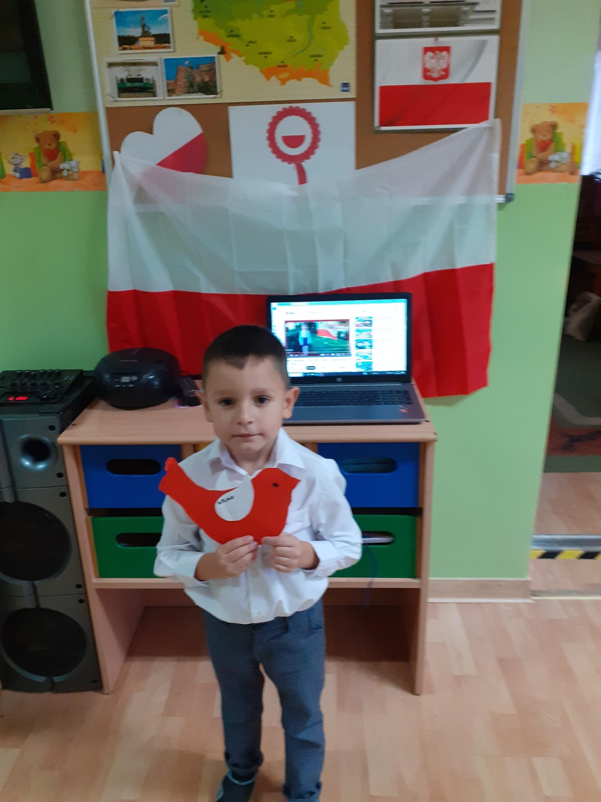 W tym tygodniu poznawaliśmy symbole narodowe i wysłuchaliśmy hymnu Polski. Rozmawialiśmy też o tym, jak obchodzimy Narodowe Święto Niepodległośći.
