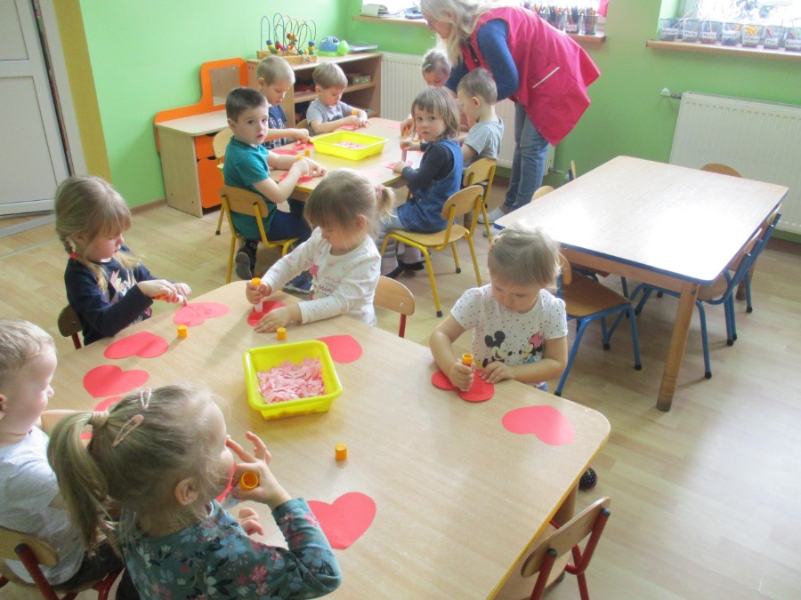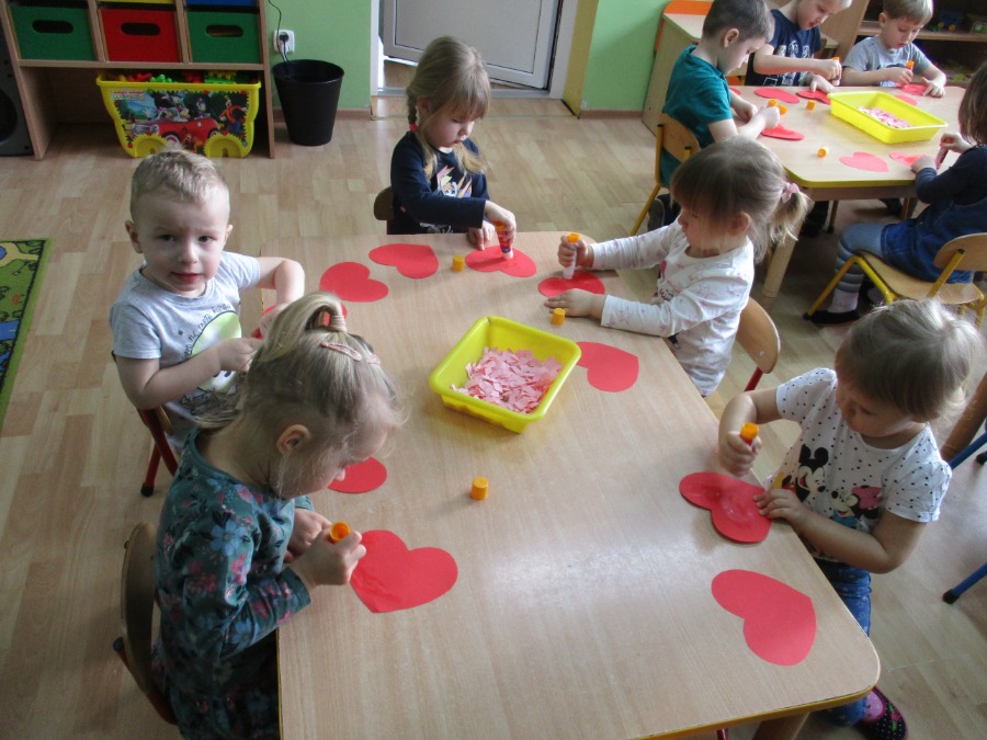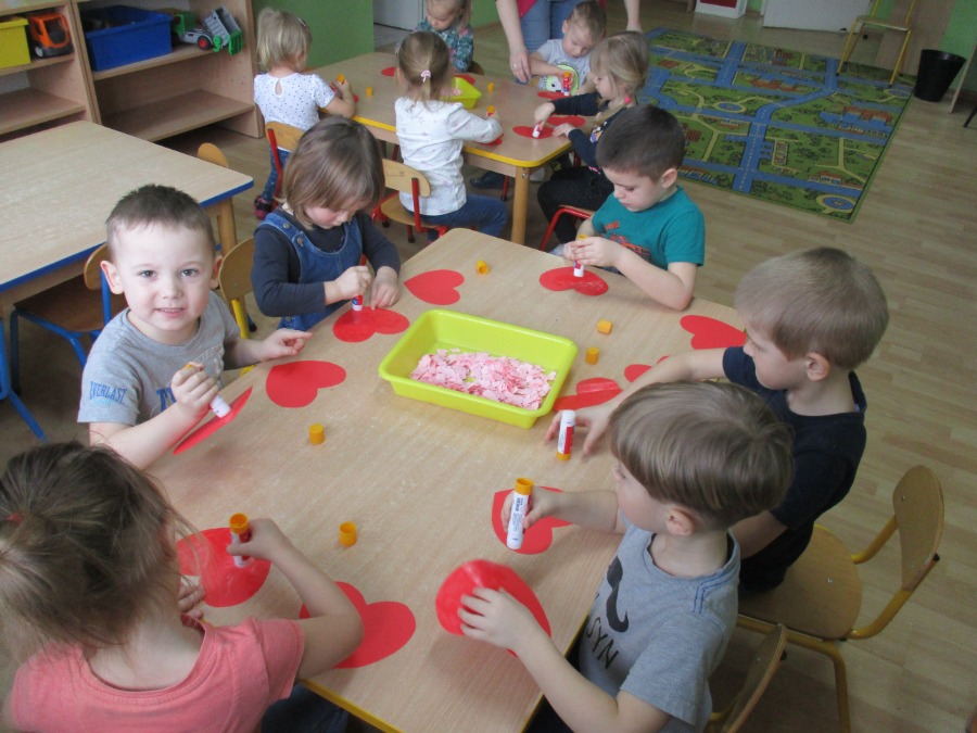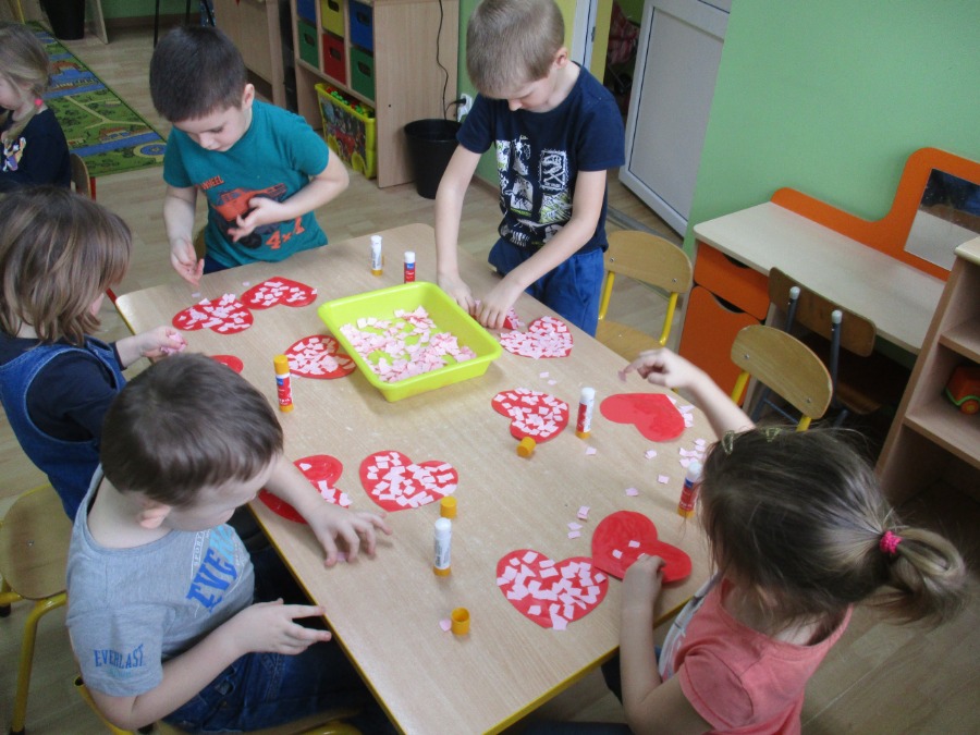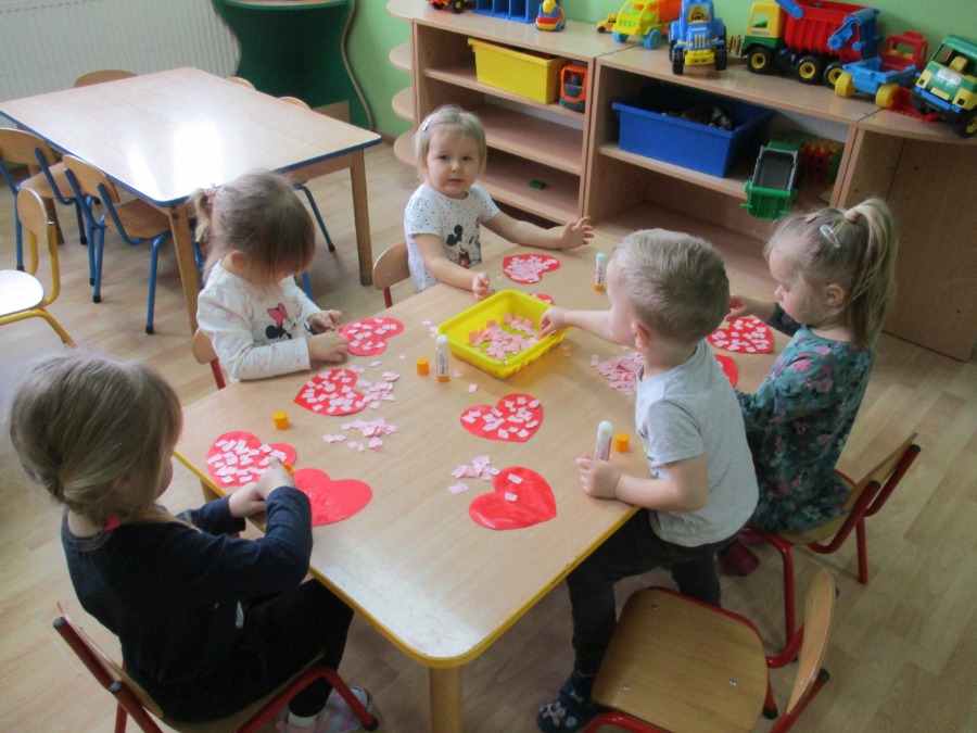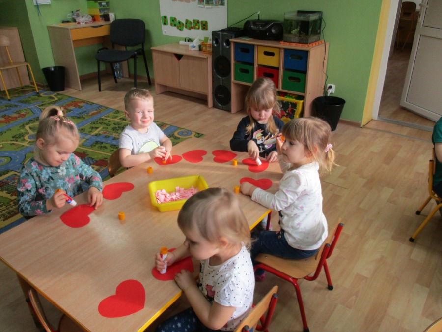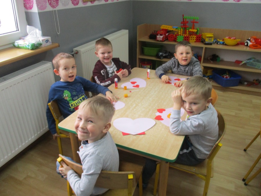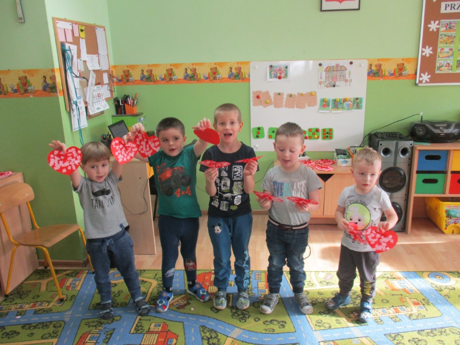 Nie od dziś wiadomo, że bajki nie tylko powinny umilać dzieciom czas, ale także uczyć i pokazywać sytuacje, z którymi mamy do czynienia na co dzień. Dzięki bajkom, dziecko może wczuć się w sytuację głównego bohatera, zobaczyć jak radzi sobie z problemami, przeanalizować jego postępowanie i wyciągnąć wnioski na przyszłość. Temu też służyły tygodniowe zajęcia w przedszkolu. Dzieci w tym tygodniu wykonywały prace plastyczne tematycznie związane z bajkami. W piątek dzieci rozmawiały o Walentynkach. Maluchy i Średniaki wykonały serca dla mamy i taty.