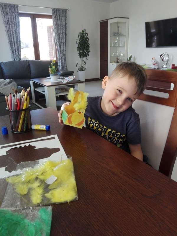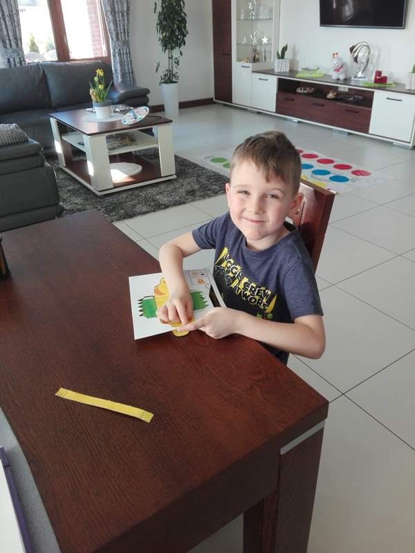 Dzisiaj umieszczamy na stronie przedszkola zdjęcia przedszkolaków z grupy starszej oraz wykonane przez dzieci prace. Swoją działalnością pochwalą się: Filip, Michał, Borys, Aleksander, Franek oraz Antosia Żuchowska. Olaf z grupy młodszej też ciężko pracuje.
