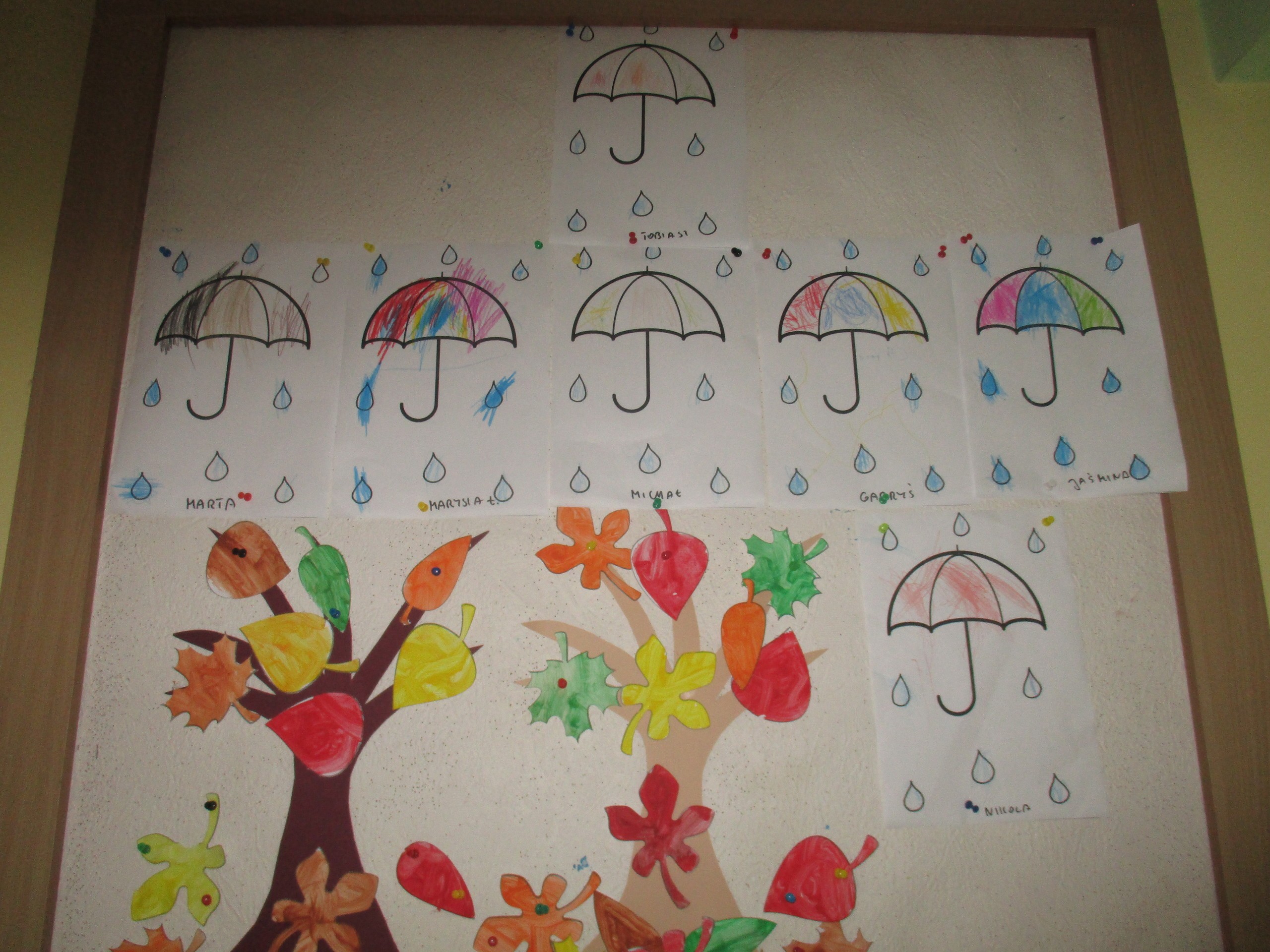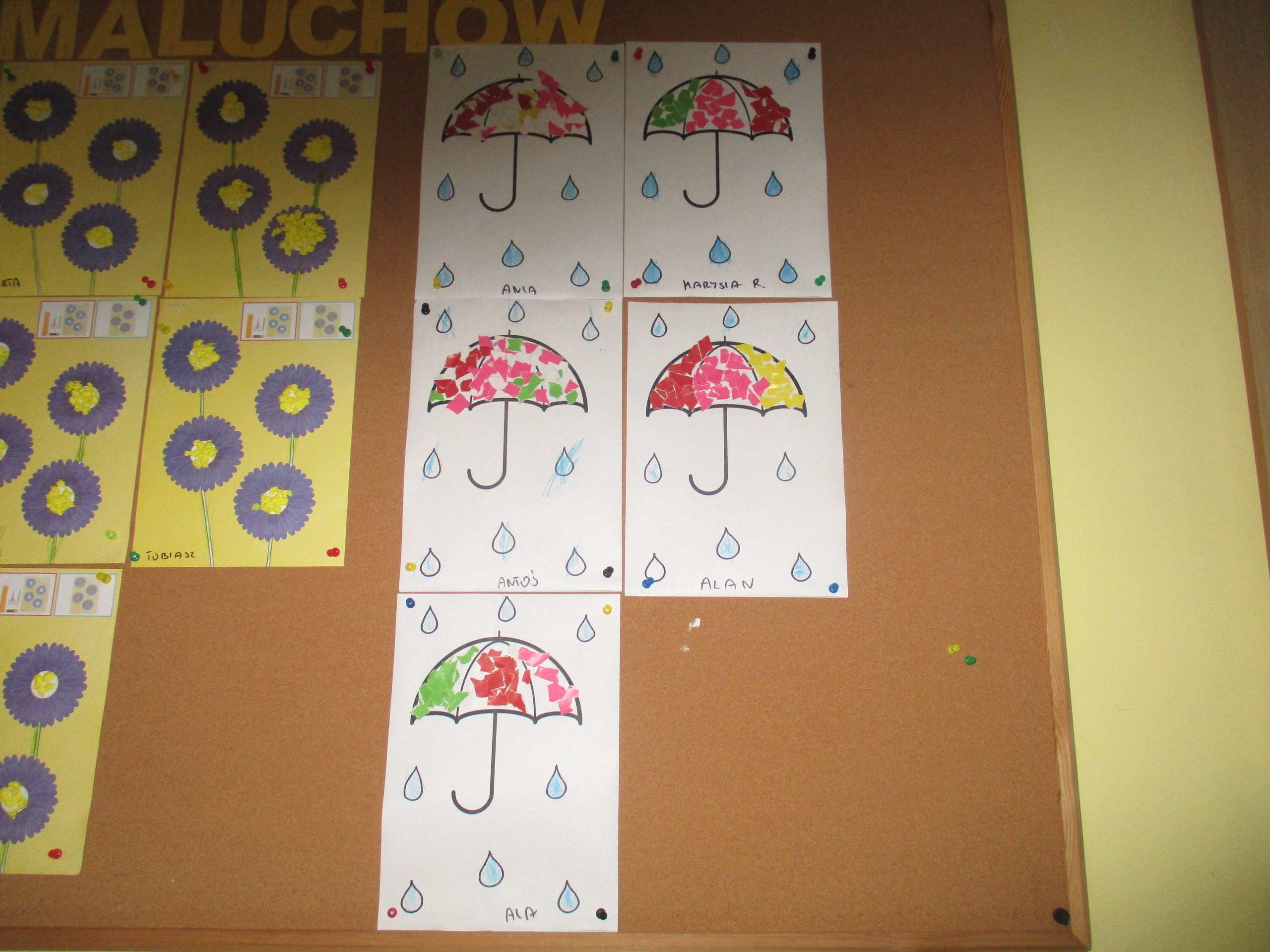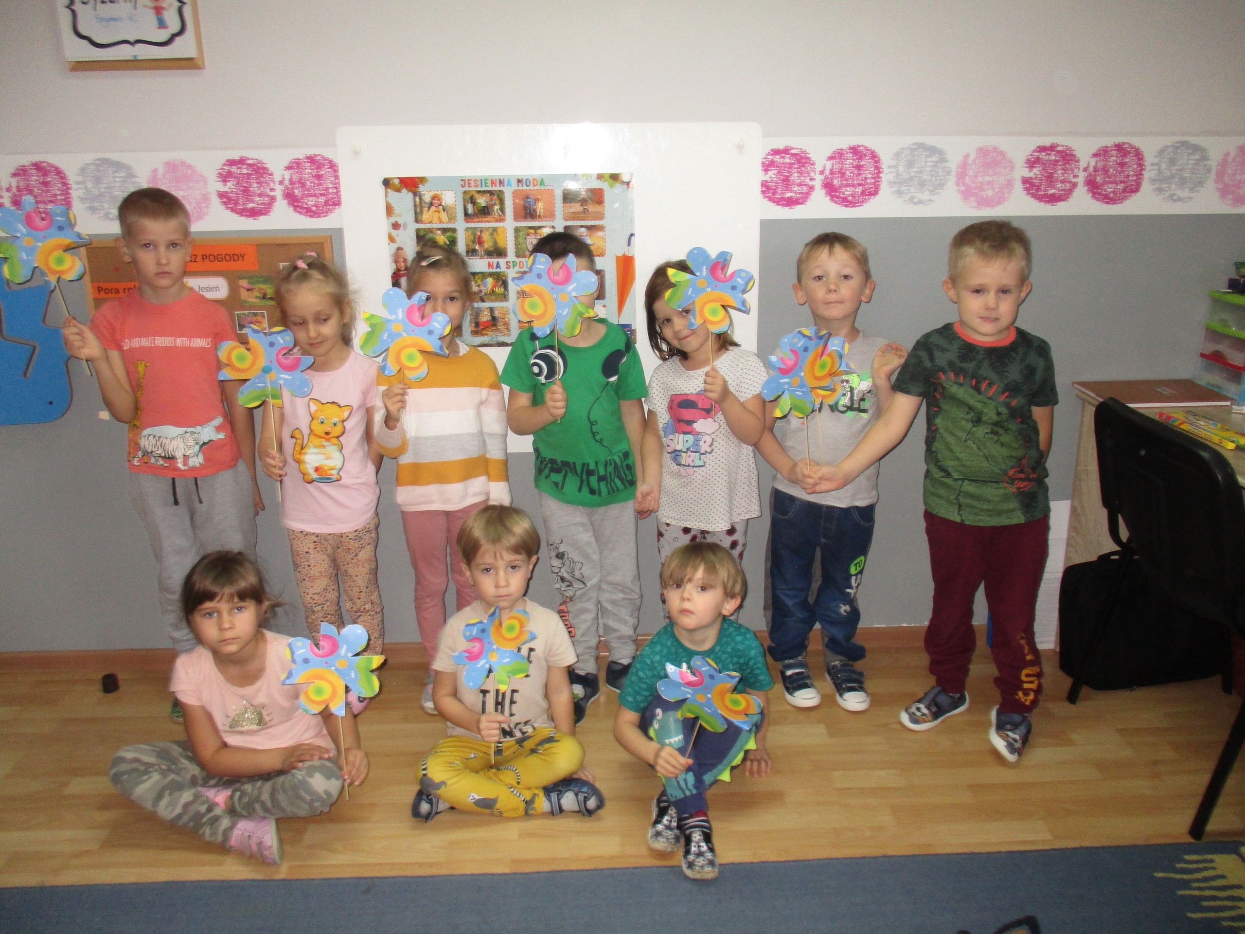 Dzisiaj pokazujemy prace związane z jesienną pogodą. Starszaki poznawały zjawisko pogodowe jakim jest wiatr. Uczyły się, jaką rolę wiatr spełnia w przyrodzie. Młodsza grupa poznawała zjawiska pogodowe charakterystyczne dla obecnej pory roku czyli deszcz, wiatr i szarugę jesienną.