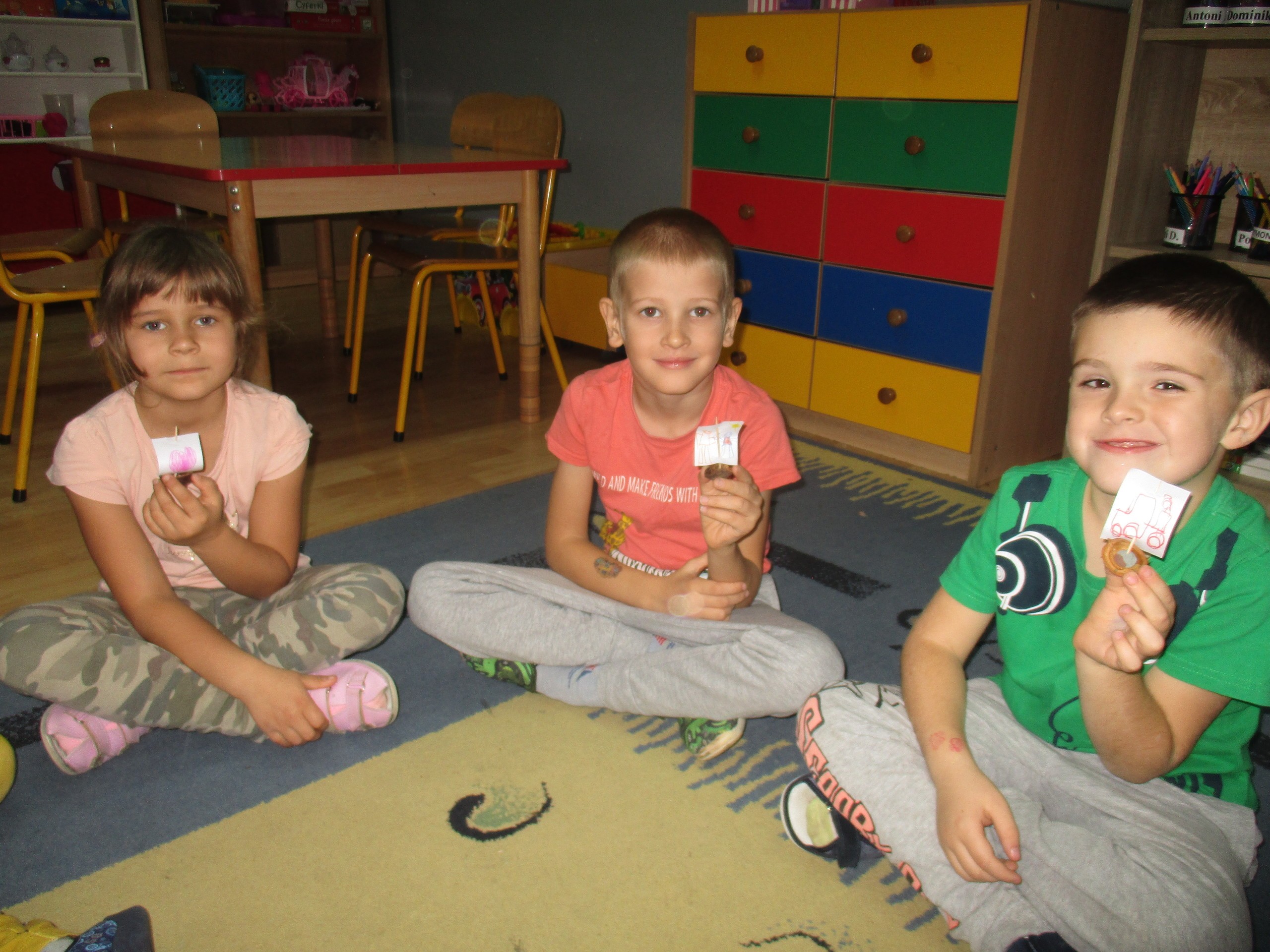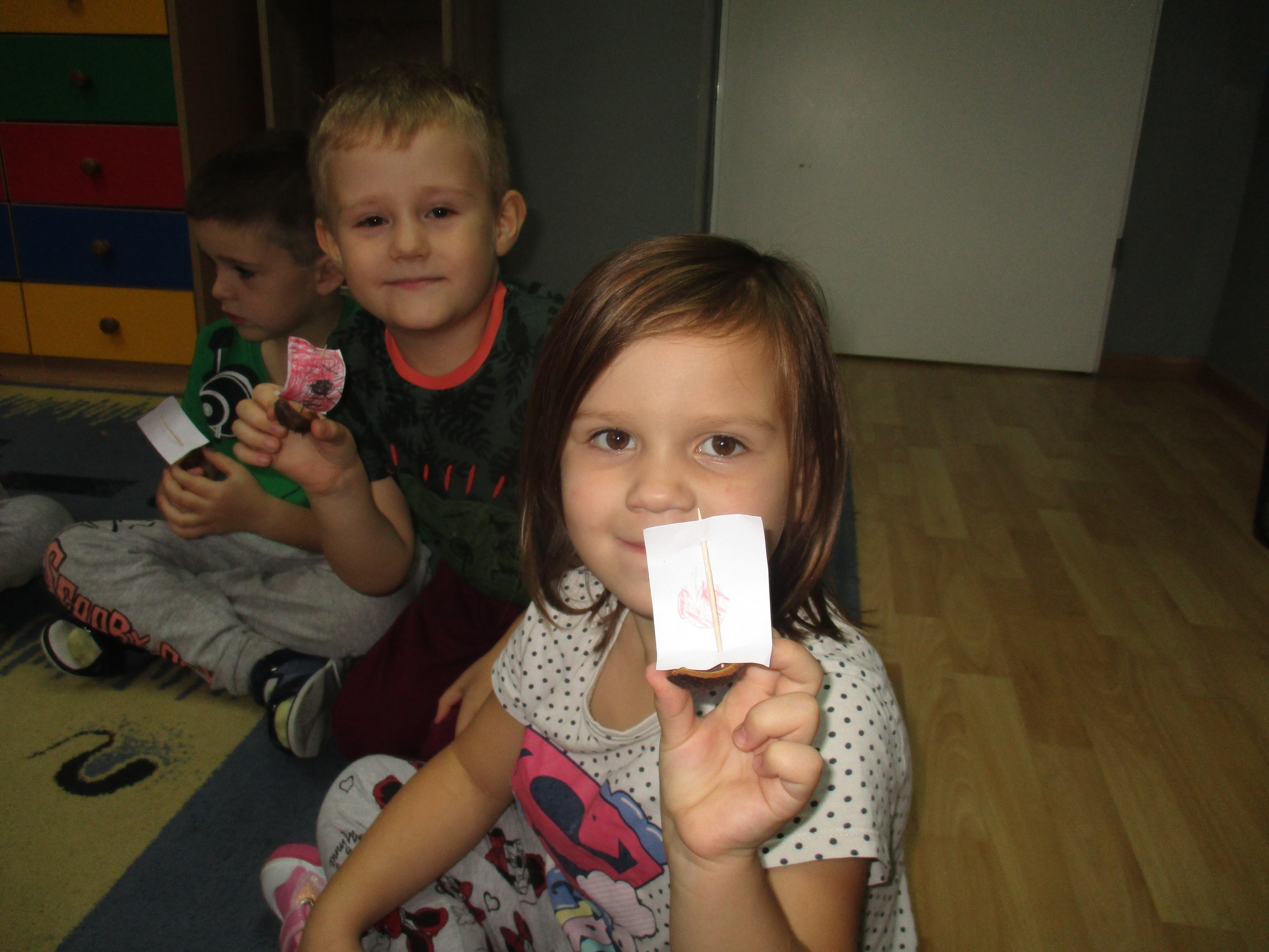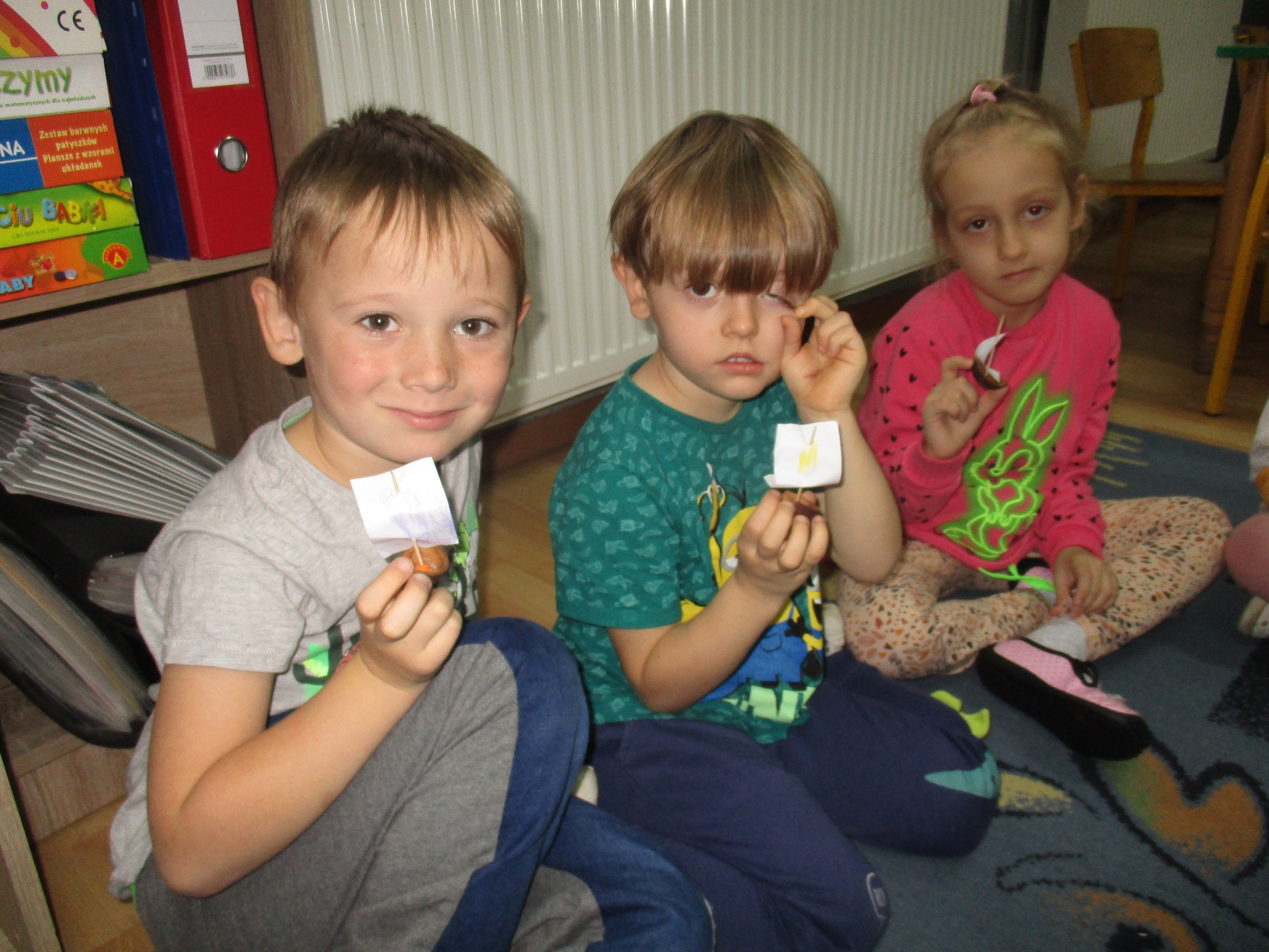 Dzisiaj pokazujemy prace związane z jesienną pogodą. Starszaki poznawały zjawisko pogodowe jakim jest wiatr. Uczyły się, jaką rolę wiatr spełnia w przyrodzie. Młodsza grupa poznawała zjawiska pogodowe charakterystyczne dla obecnej pory roku czyli deszcz, wiatr i szarugę jesienną.