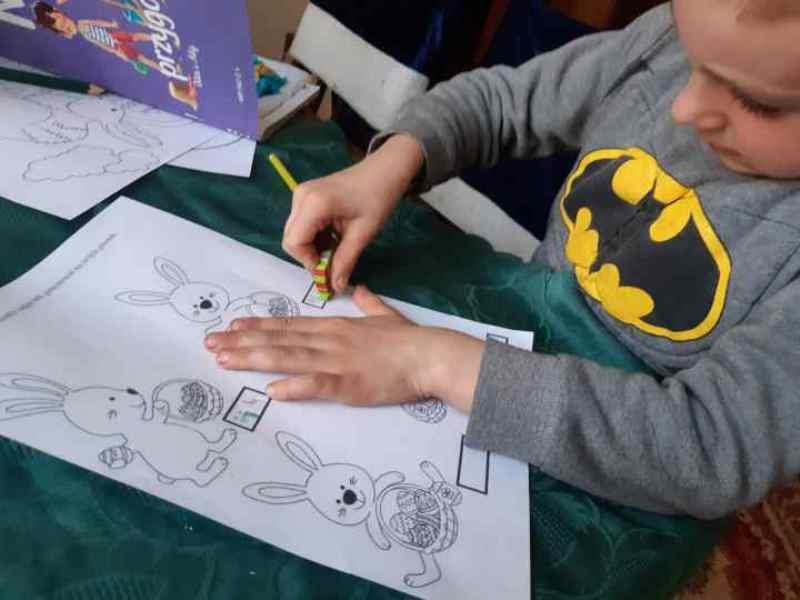 Prace o tematyce wielkanocnej Tosi, Macieja, Nikodema i Olafa oraz film przedstawiający Olafa przy pracy. Cz. II