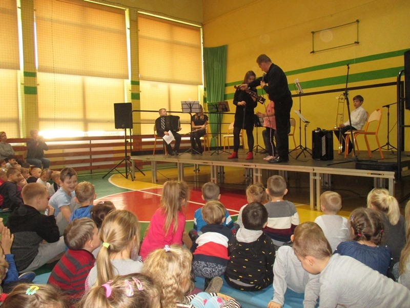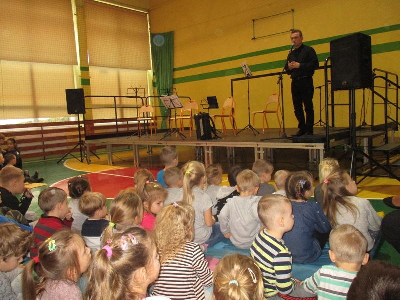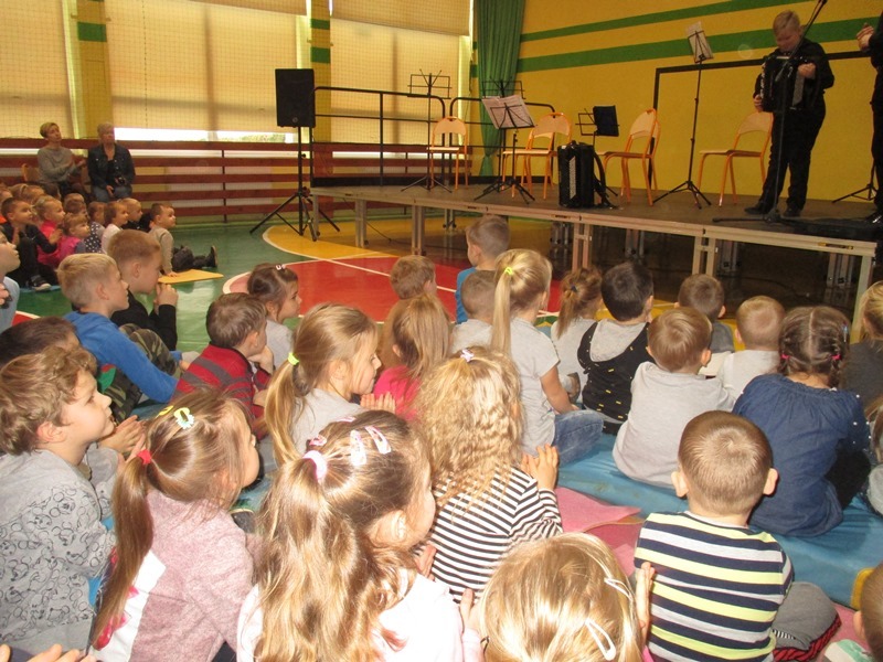W naszej szkole odbył się koncert przygotowany przez dzieci ze szkoły muzycznej z Wejherowa pod kierunkiem Pana Andrzeja Formeli. Pan Andrzej, który prowadzi zajęcia z rytmiki w naszym przedszkolu, serdecznie zaprosił wszystkie dzieci na to wydarzenie.