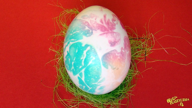 W miskach rozpuszczamy barwniki zgodnie z instrukcją na opakowaniu. Ugotowane jajko owijamy ręcznikiem papierowym. Ręcznik możemy przedtem zmiąć. Za pomocą łyżeczki nasączamy ręcznik barwnikami. Gdy jest już mocno nasączony odkładamy jajko na około 2-3 godziny. Ściągamy ręcznik z jajka i przecieramy je nowym kawałkiem ręcznika nasączonym olejem. Tak przygotowane jajko ma niecodzienny wygląd, a także interesujące kolory. Farby na ręczniku zmieszały się ze sobą dając specyficzny efekt. Każde jajko będzie inne i jedyne w swoim rodzaju.