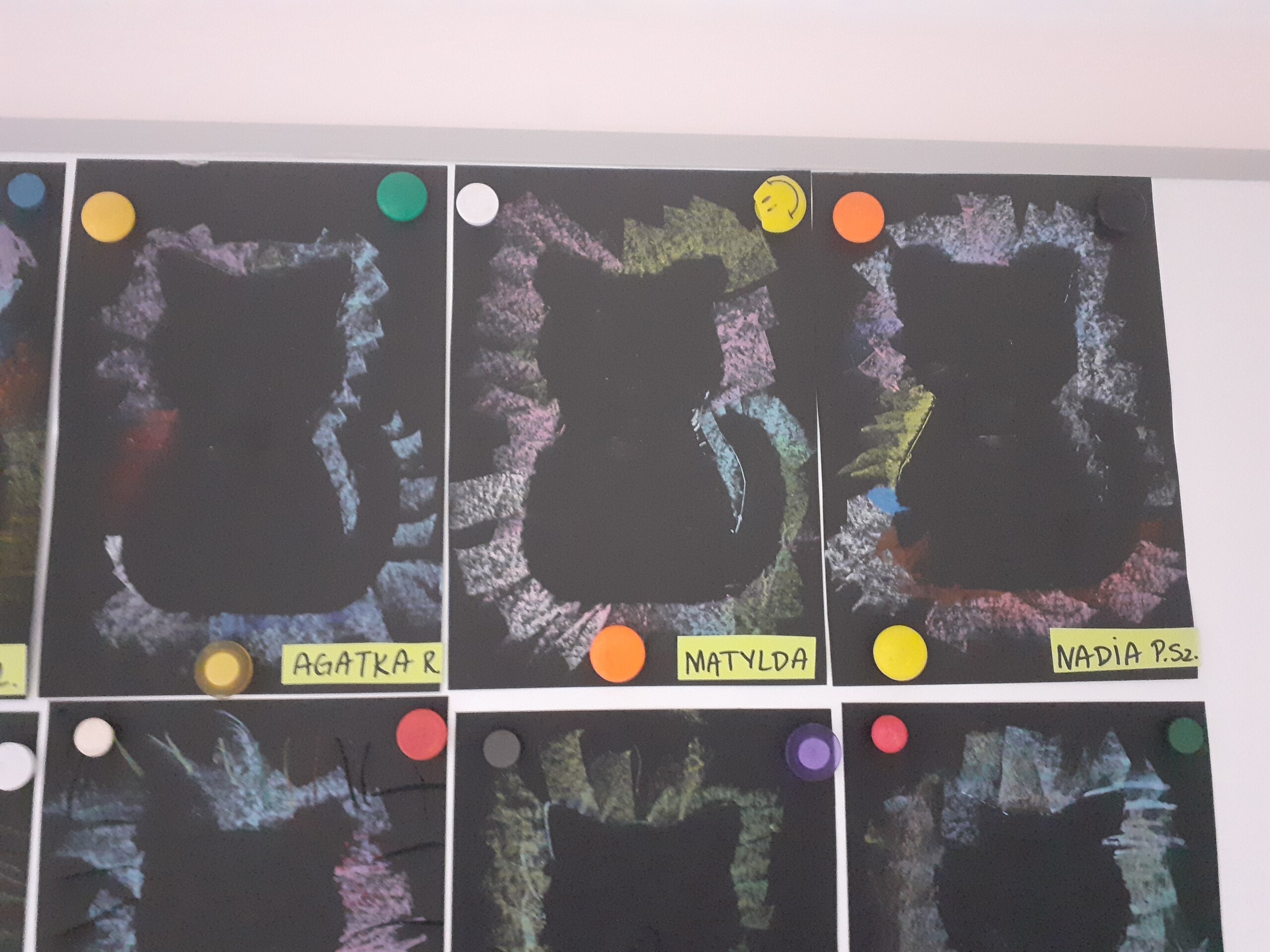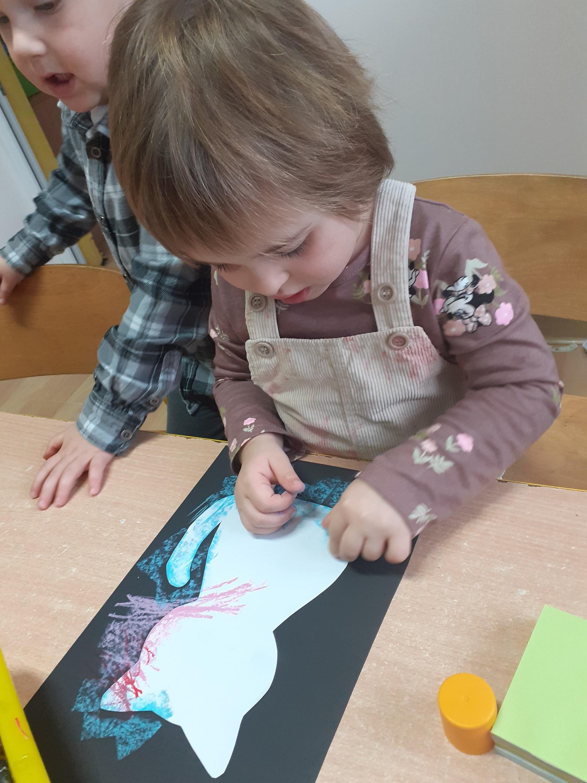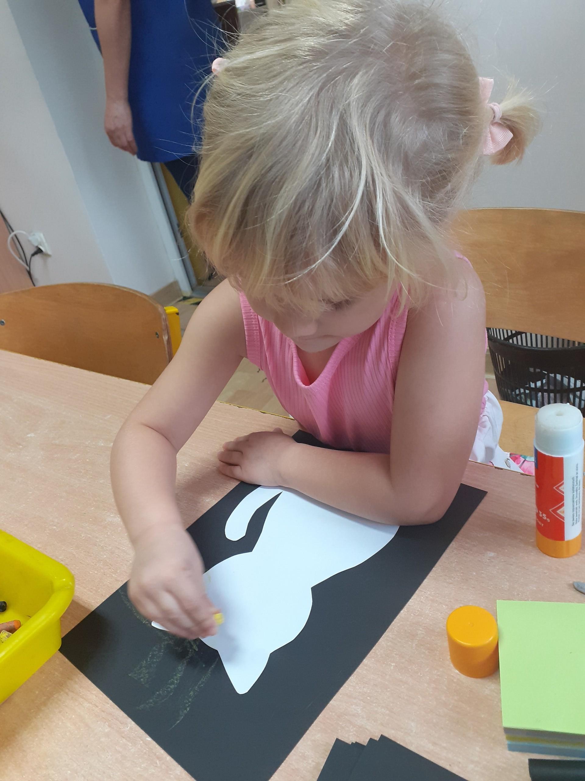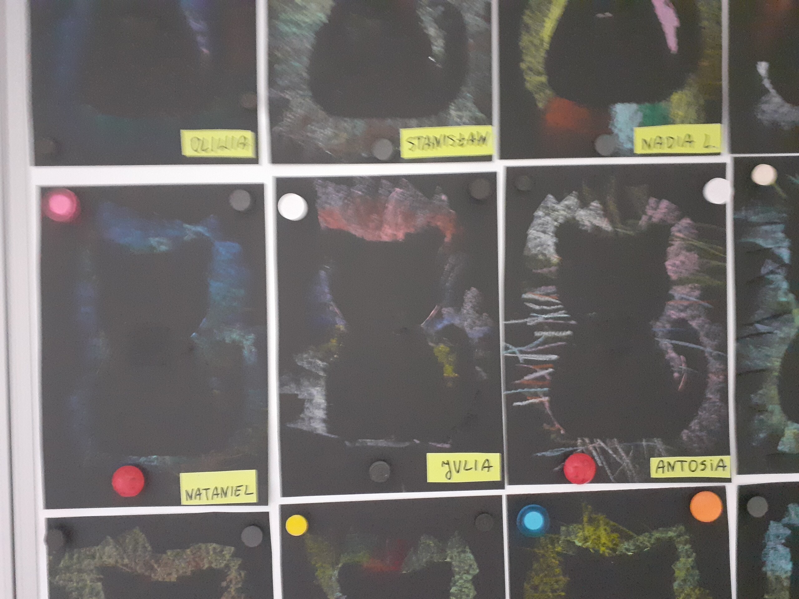 Praca plastyczna wykonana przy pomocy kredek pastelowych.