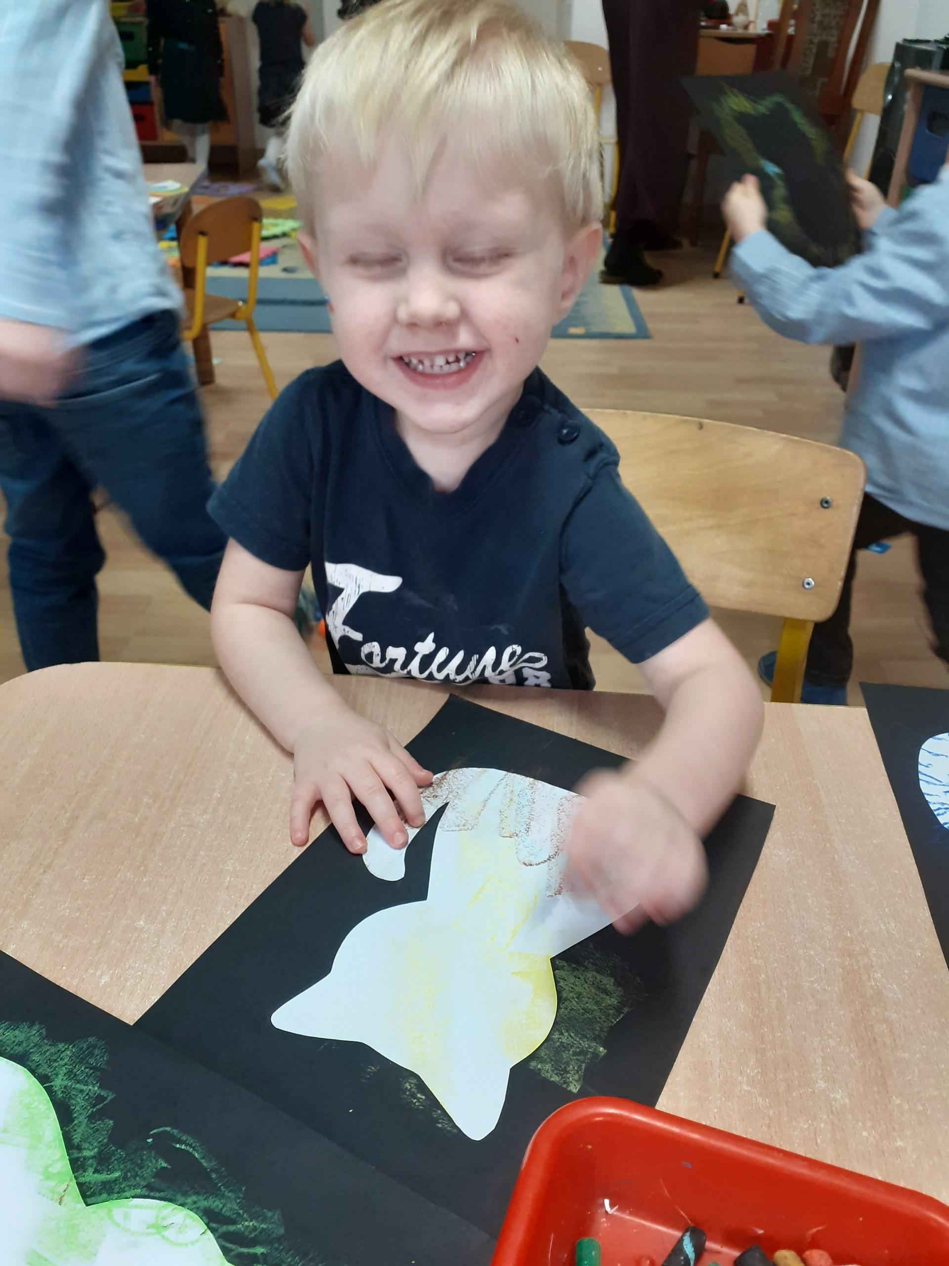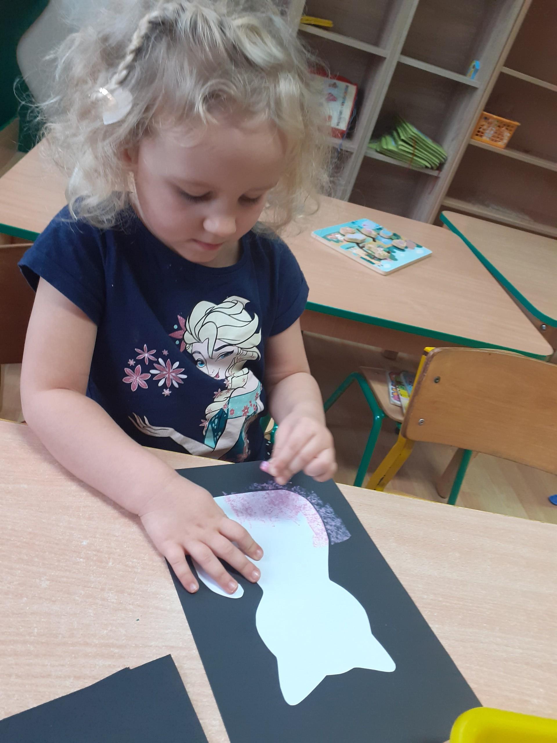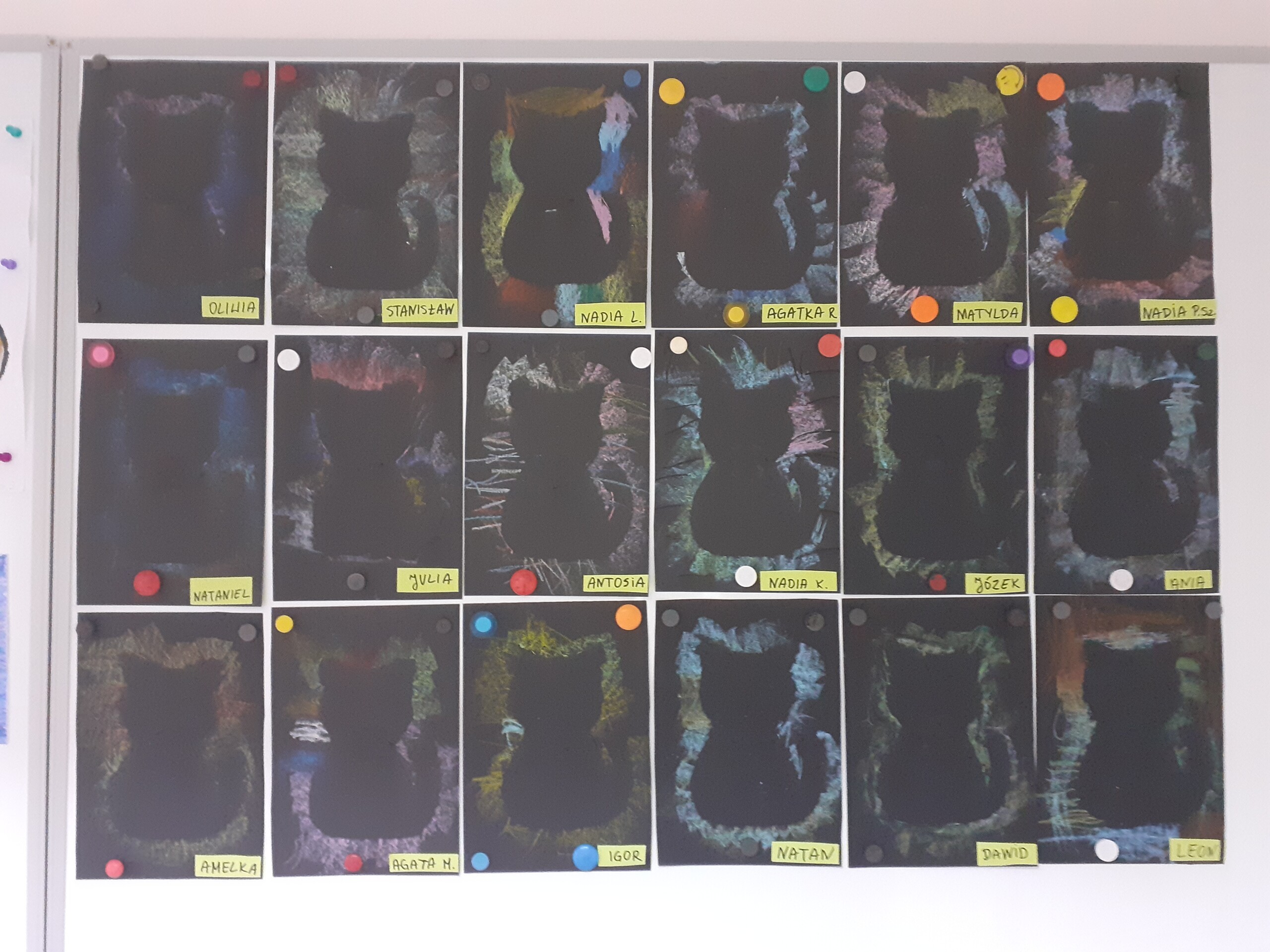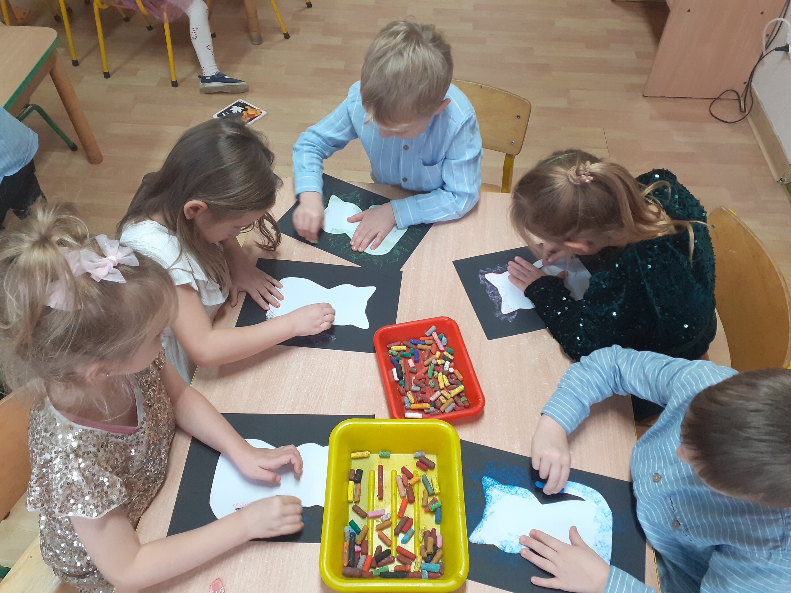 Praca plastyczna wykonana przy pomocy kredek pastelowych.