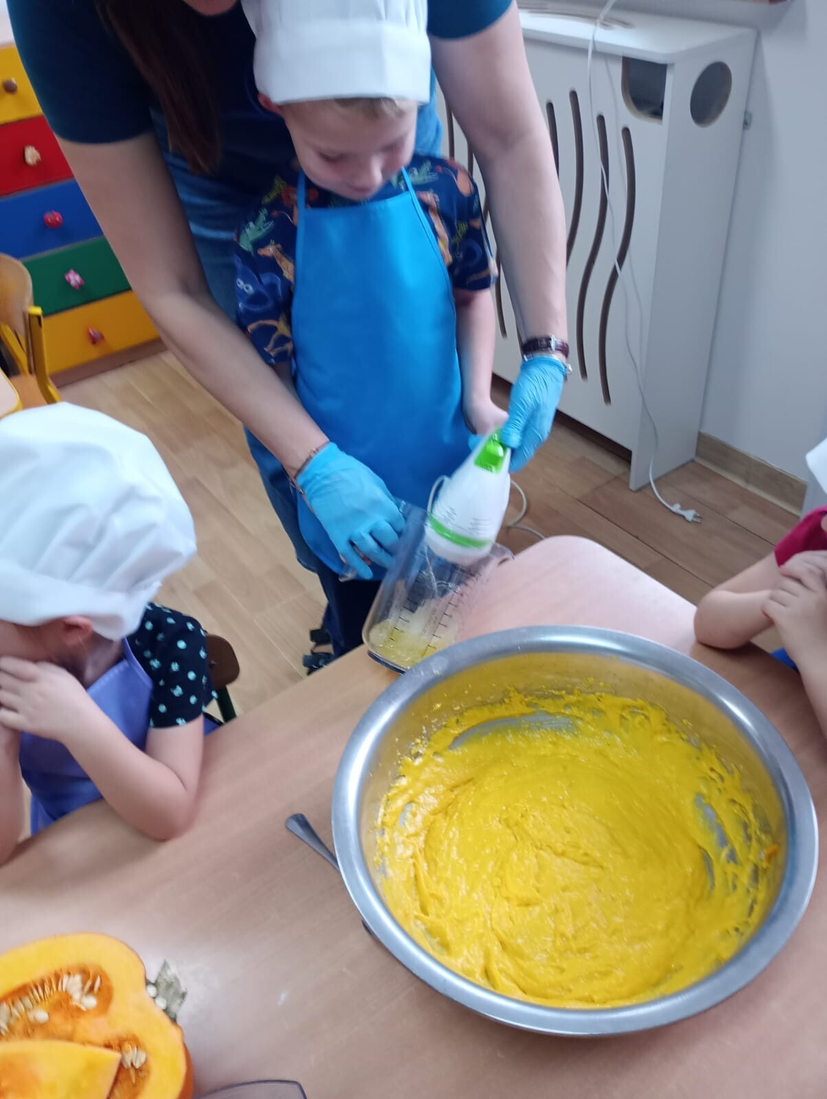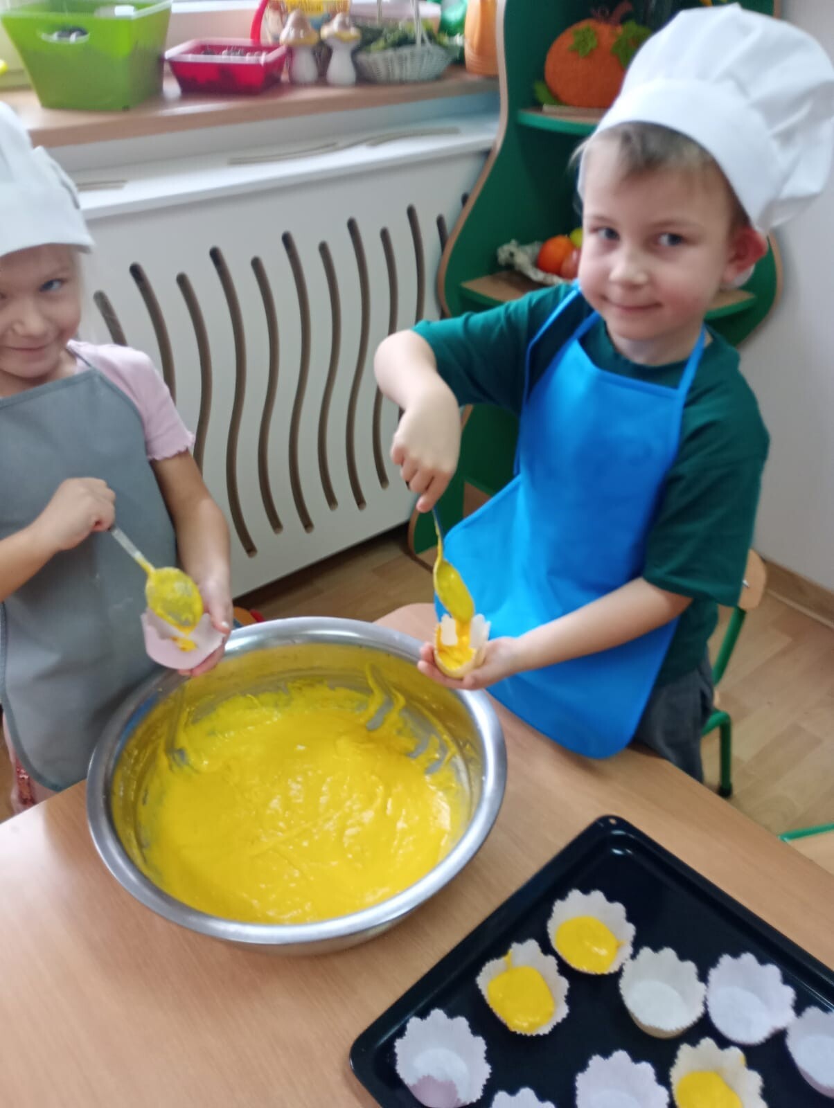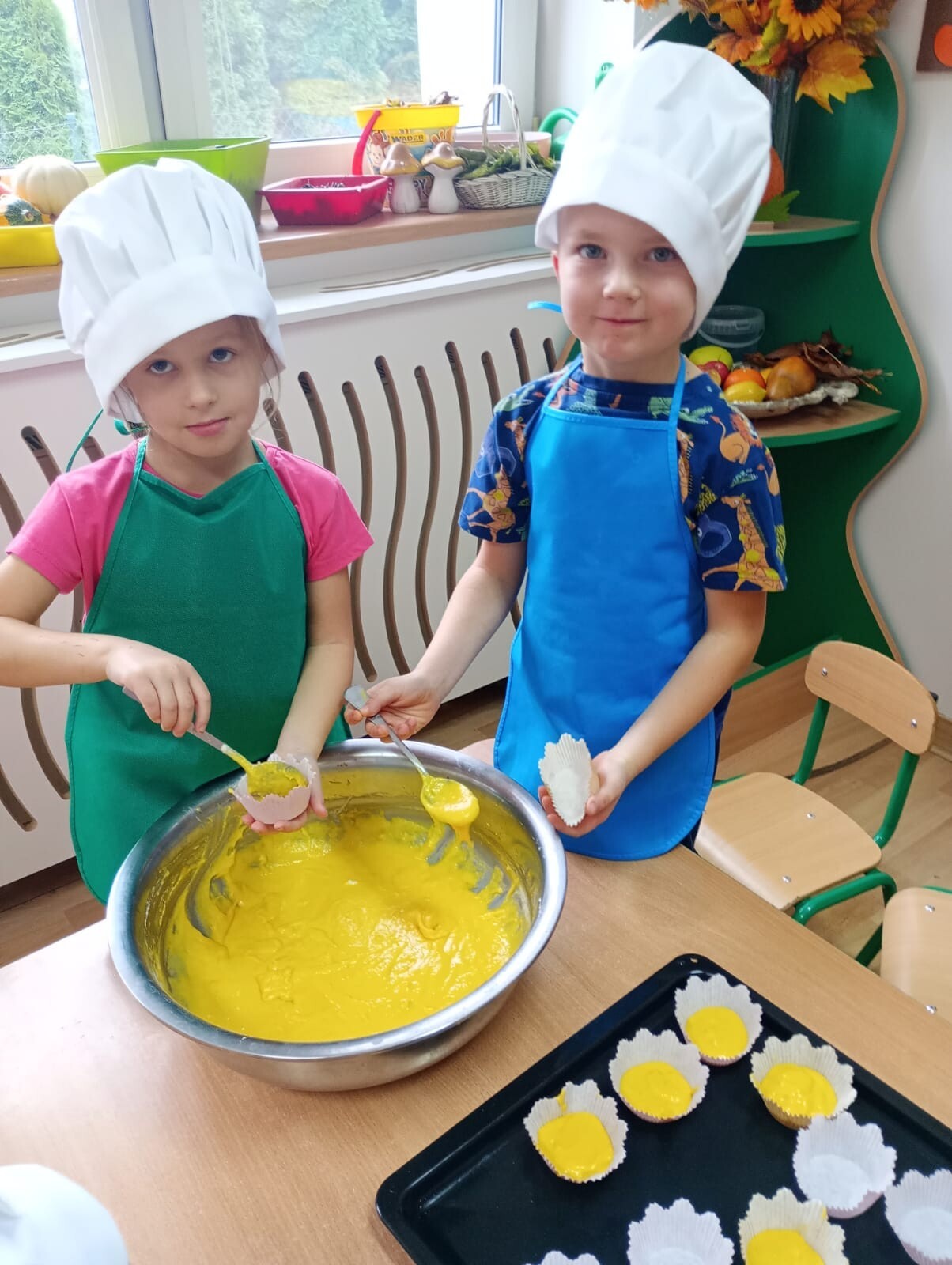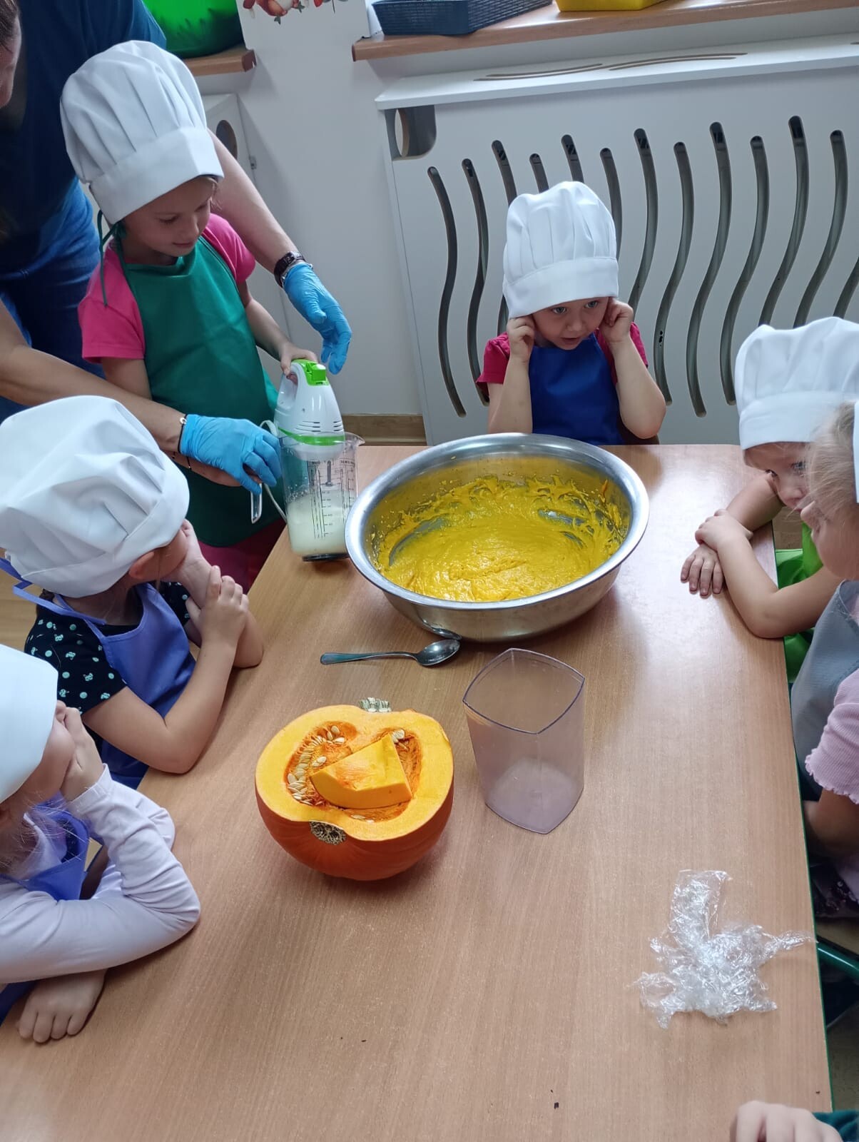 Nasze przedszkolaki przygotowały dzisiaj zdrowy koktajl bananowy oraz muffinki dyniowe. Dzieci były prawdziwymi MaserChefami. Było smacznie i zdrowo.