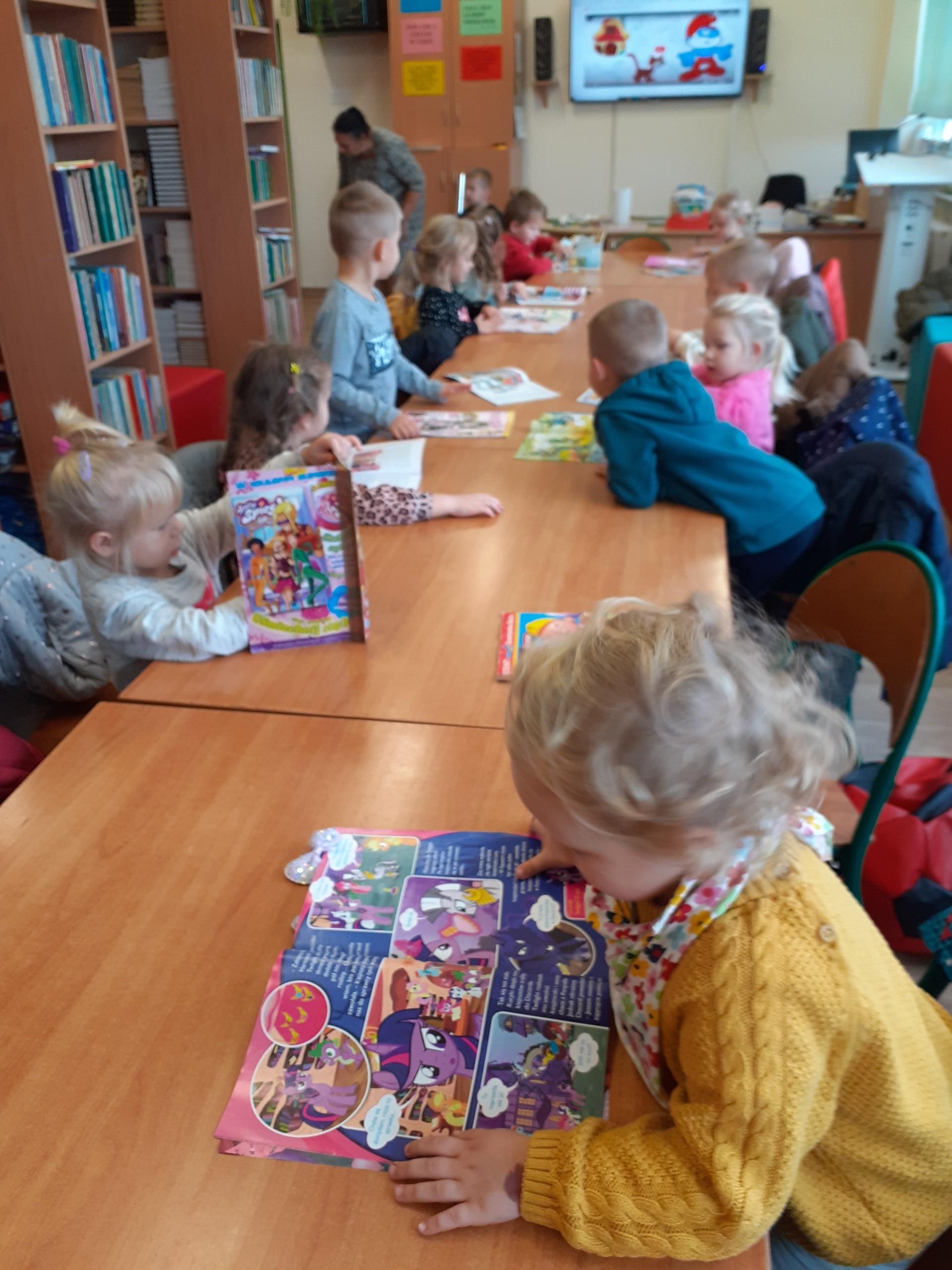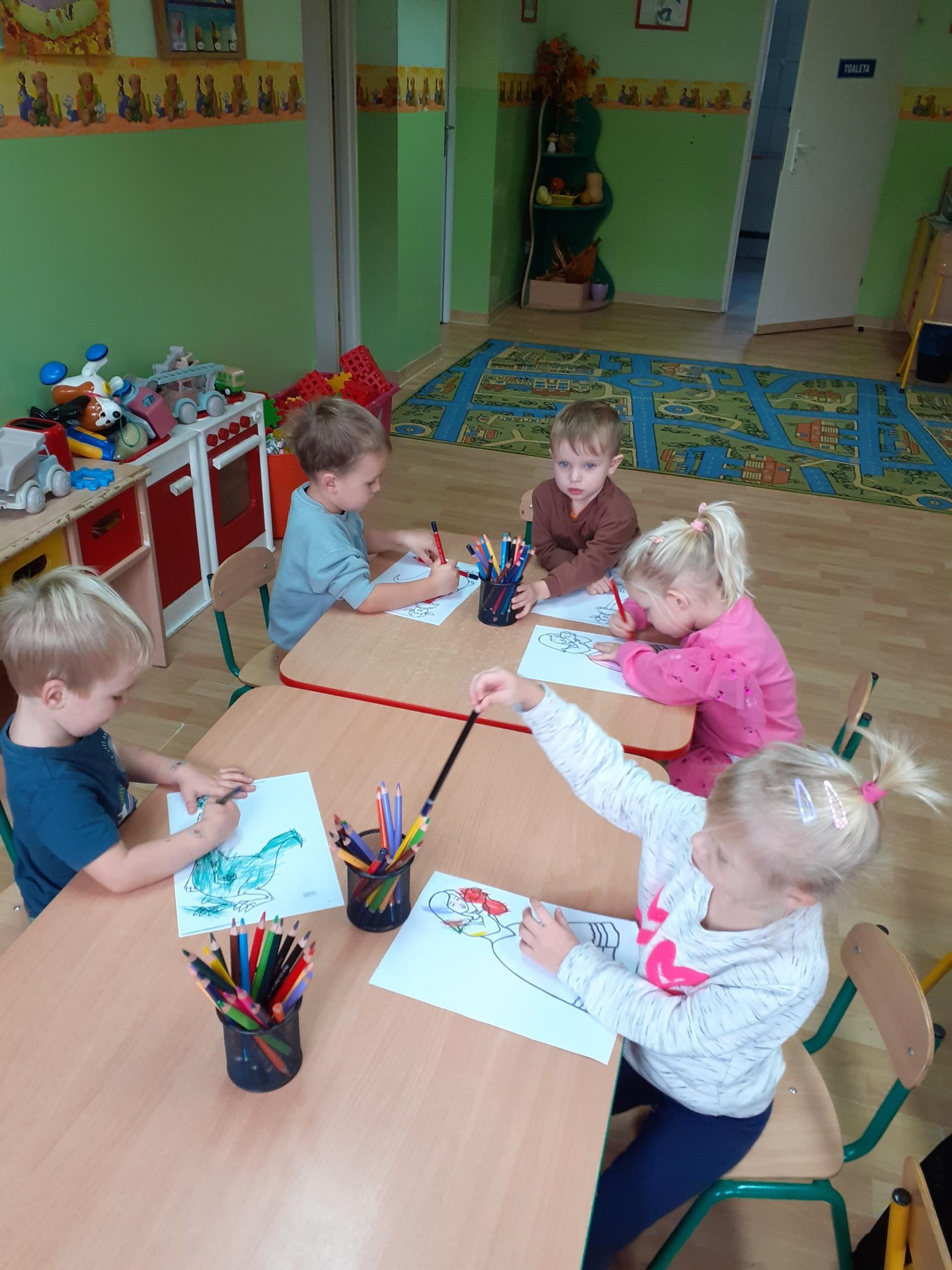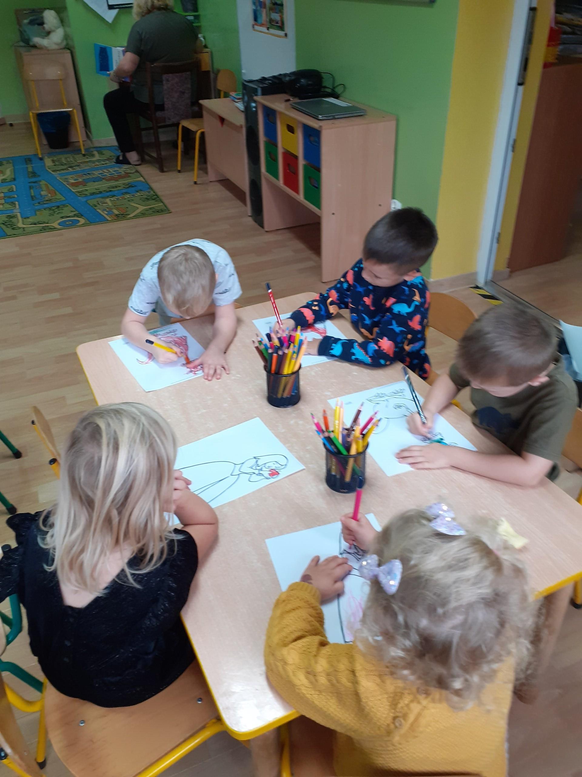 Bajki towarzyszą nam od najmłodszych lat, rozweselają nas, wzruszają, bawią ale także przekazują ważne prawdy życiowe. 5 listopada na całym świecie obchodzony jest Międzynarodowy Dzień Postaci z Bajek. Z tej okazji, 5 listopada dzieci z naszego Przedszkola wyruszyły w podróż do krainy bajek. Słuchały fragmentów bajek, oglądały ilustracje przedstawiające postacie z bajek, odgadywały zagadki. Dzieci z młodszej grupy kolorowały wybrane przez siebie sylwety ze znanych sobie bajek. Niektóre przedszkolaki przyniosły do przedszkola swoje ulubione bajki. Wszystkie przedszkolaki udały się do szkolnej biblioteki, gdzie Pani Bożena przeczytała fragmenty książek oraz zagadki tematycznie związane ze światem bajek. Celem dzisiejszego spotkania z bajką było utrwalenie oraz wzbogacenie dziecięcej wiedzy na temat znanych i lubianych bajek.