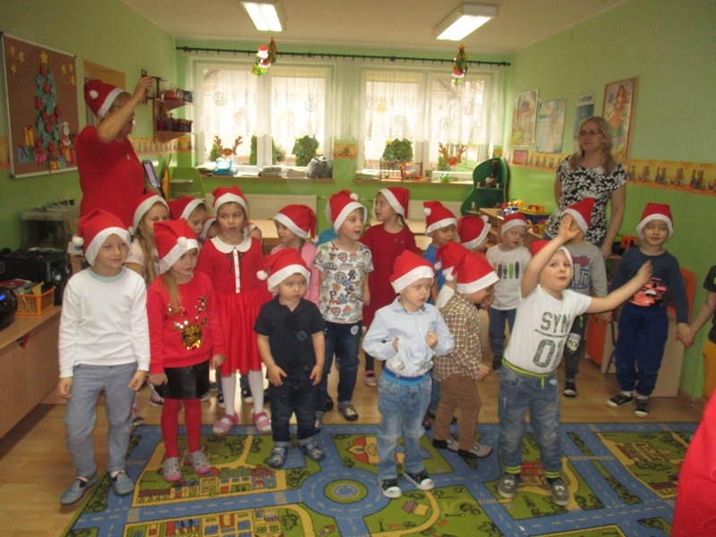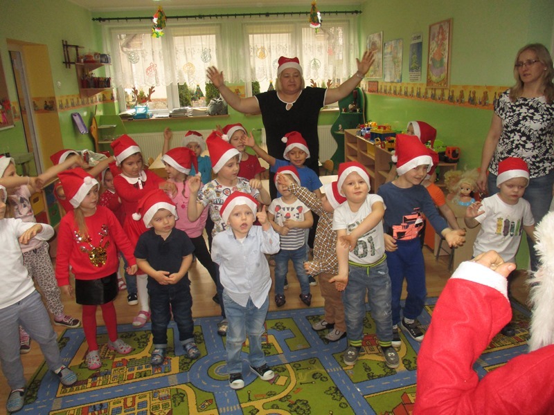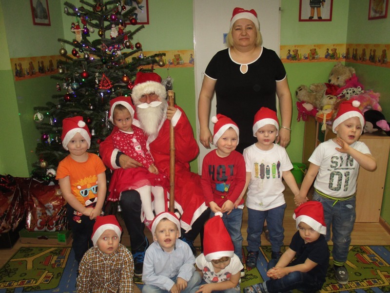 6 grudnia do przedszkola zawitał Św. Mikołaj z workiem prezentów. Dzieci przywitały gościa bardzo serdecznie oraz zaprosiły do wspólnego tańca. Po rozdaniu podarków, w ramach podziękowania, przedszkolaki zaśpiewały Mikołajowi świąteczną piosenkę.