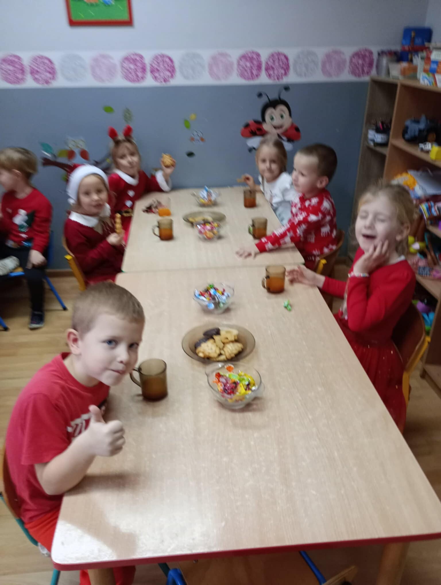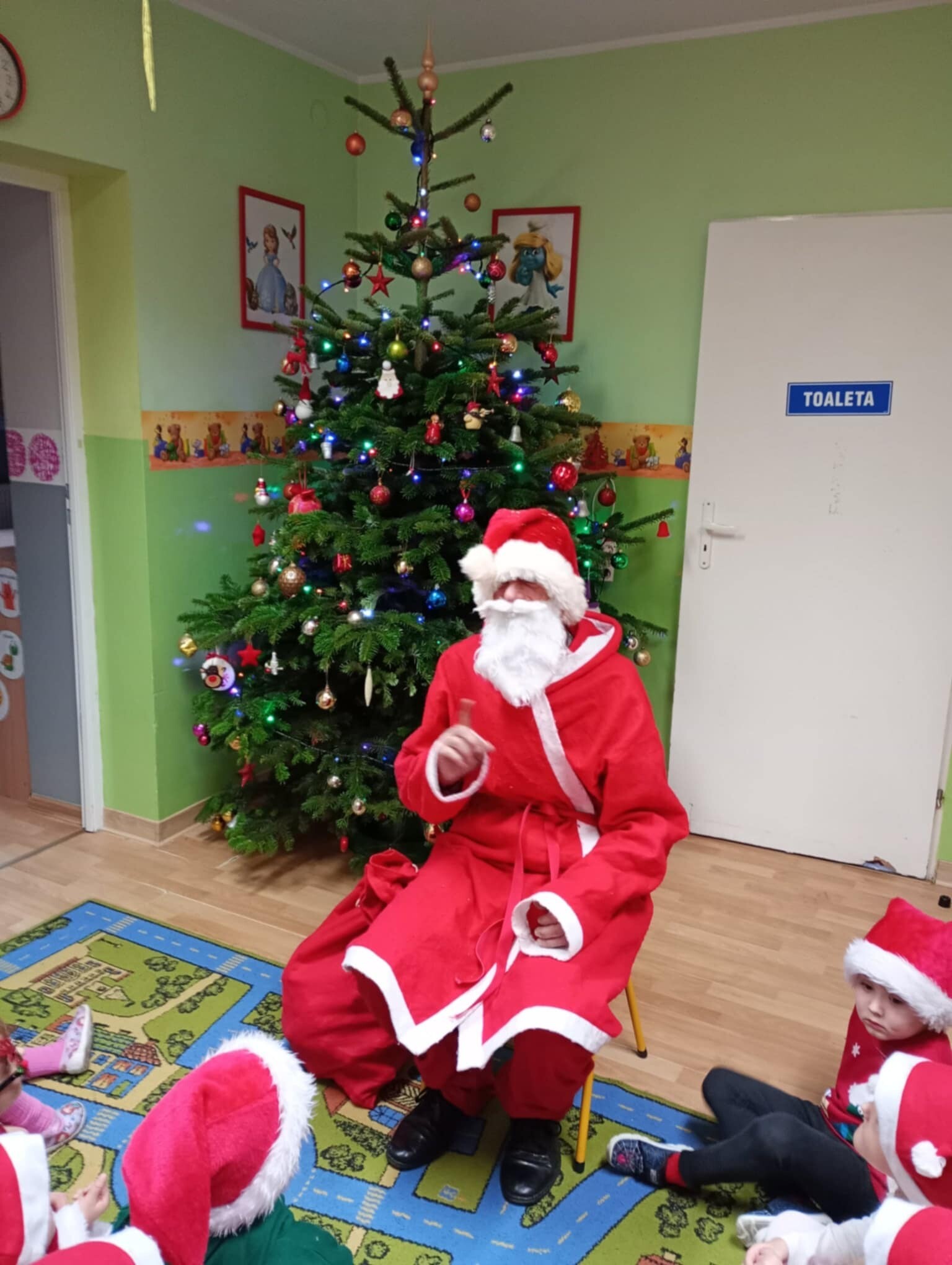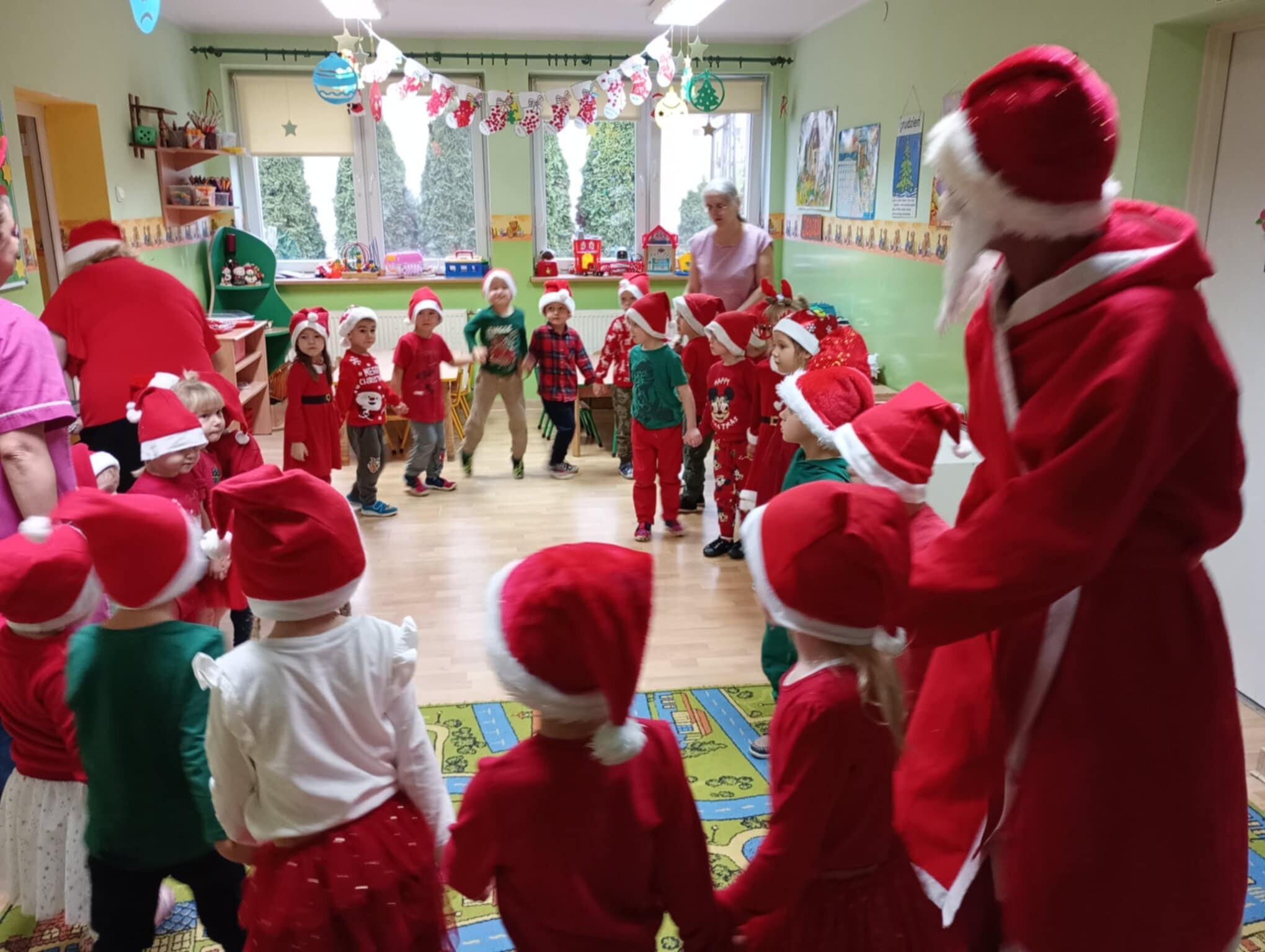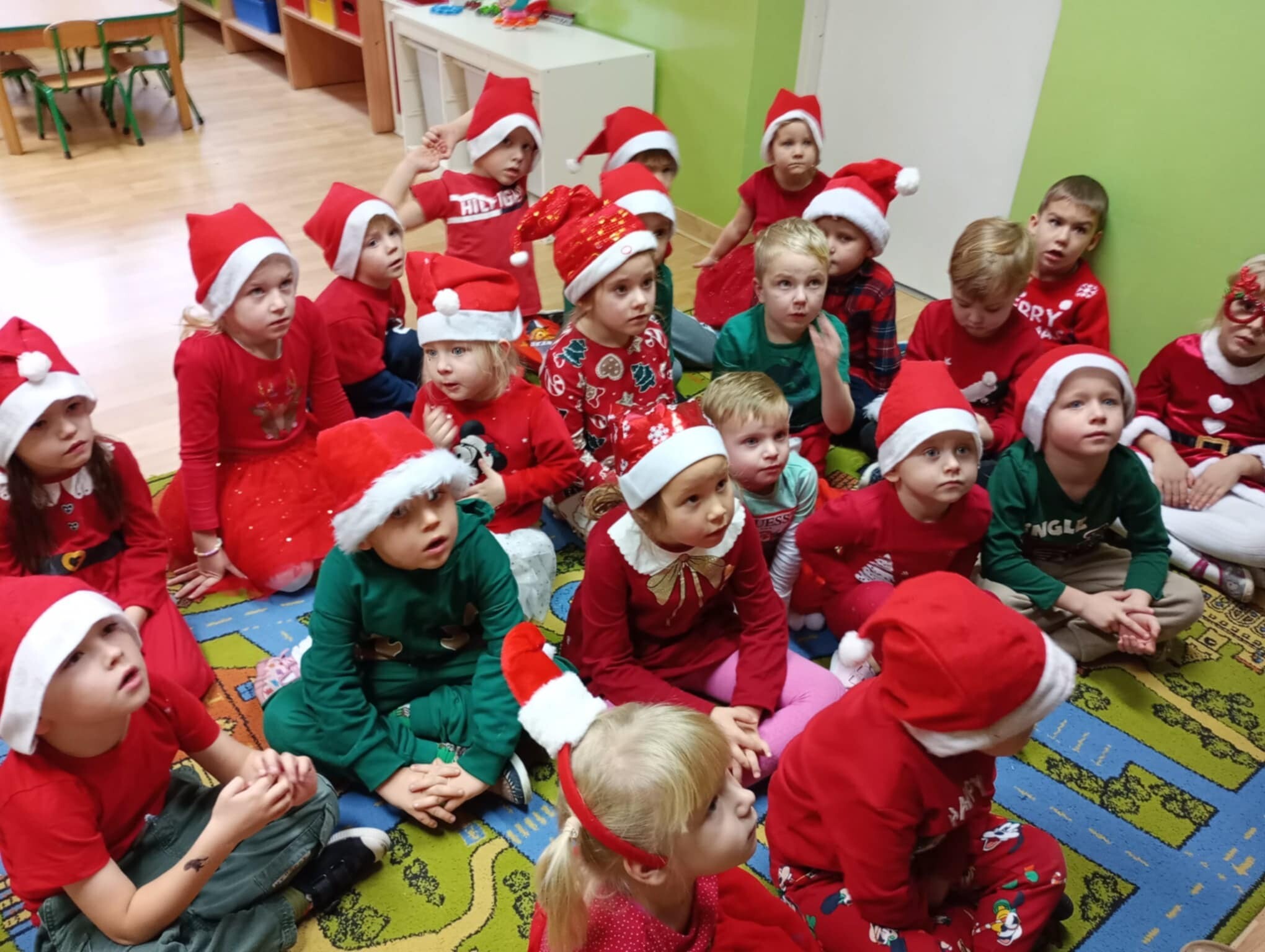 6 grudnia od samego rana w placówce panowała radość i poruszenie. Dzieciaki z wielką niecierpliwością oczekiwały przyjścia niezwykłego gościa. Cały czas nasłuchiwały dzwonków. Aby podkreślić wyjątkowy charakter tego wydarzenia wszystkie dzieci były odświętnie ubrane i miały czerwone mikołajowe czapeczki.
