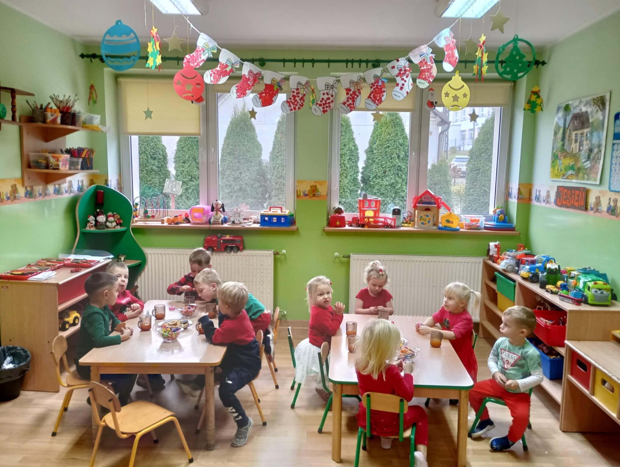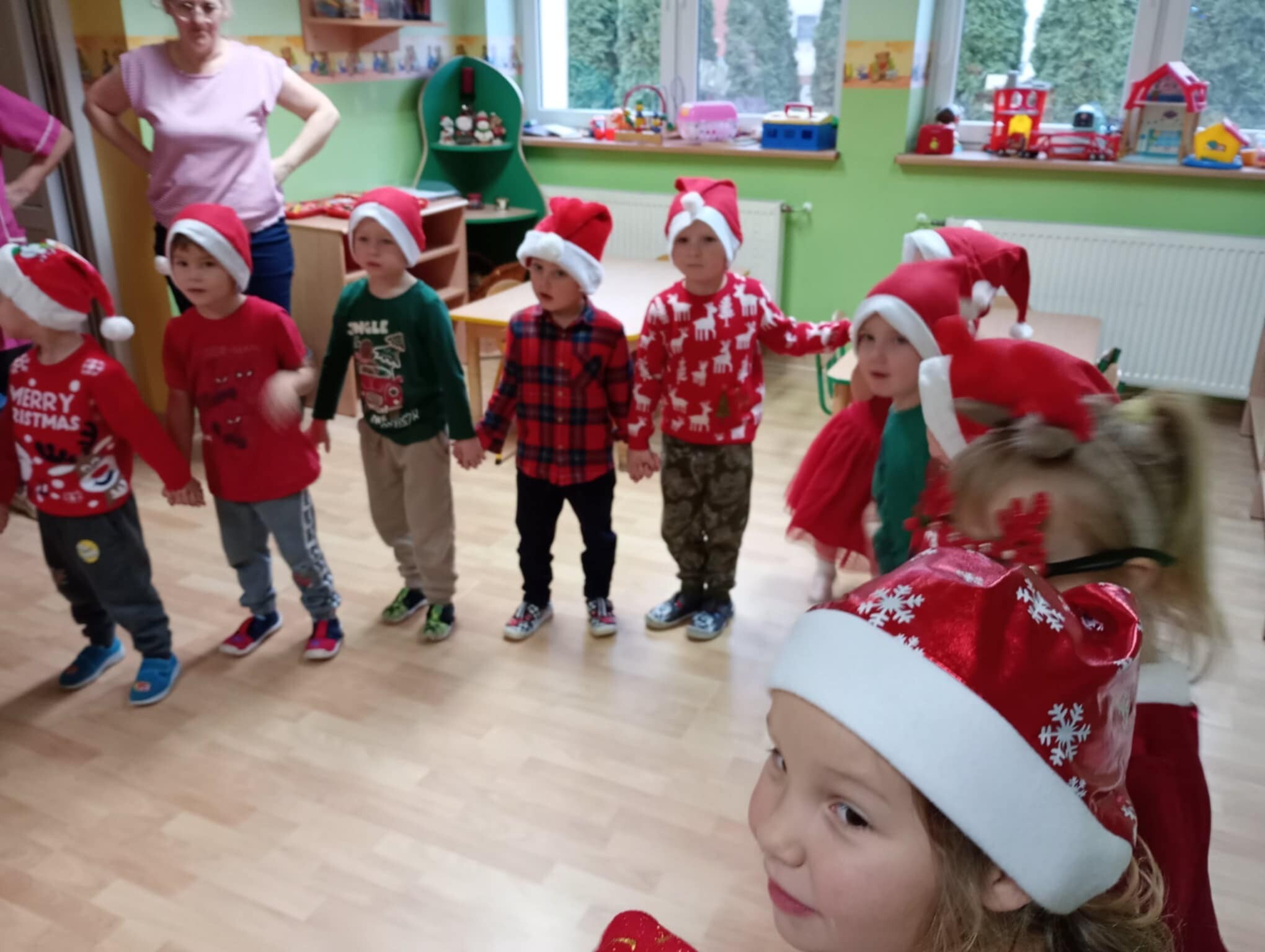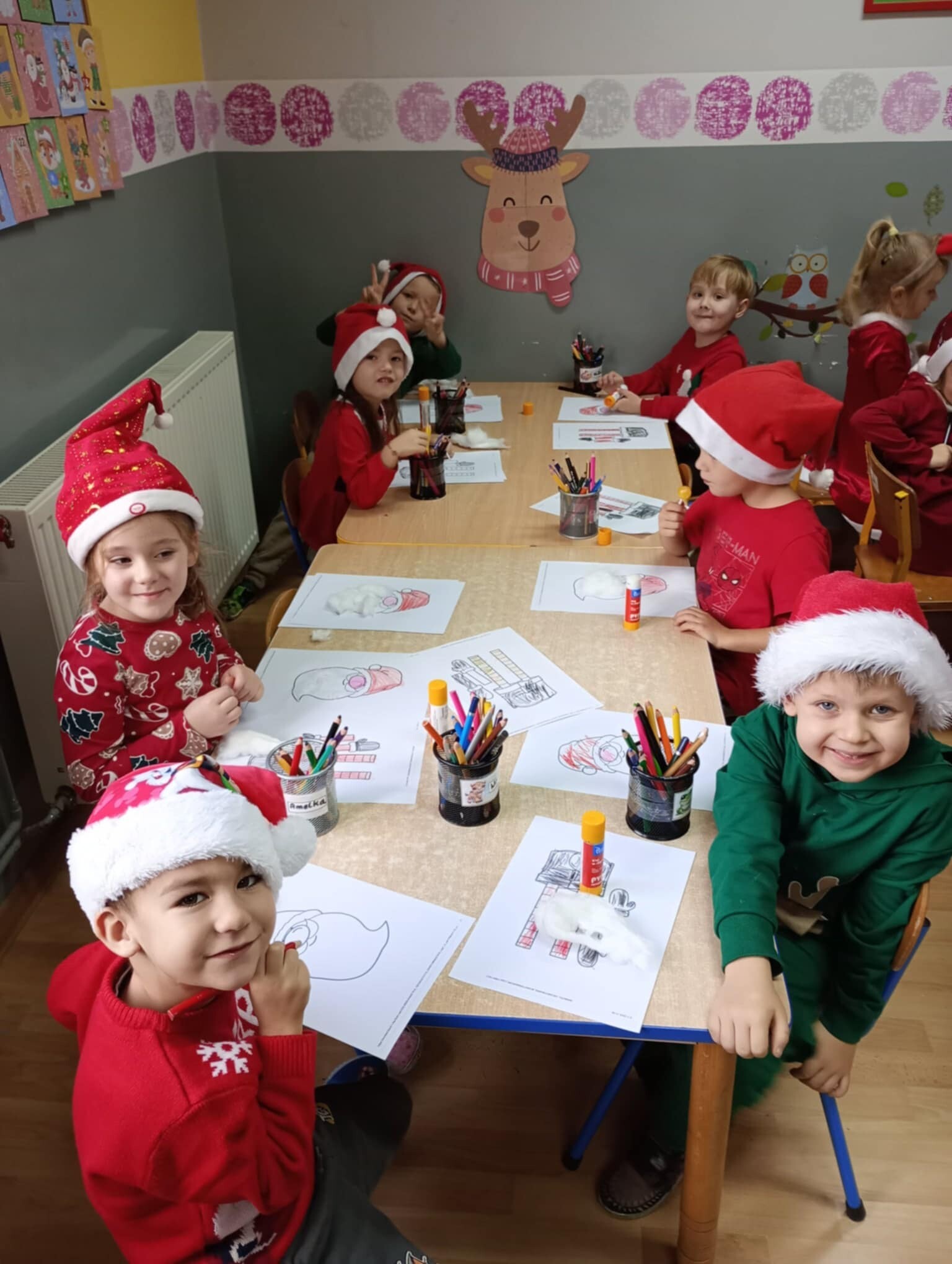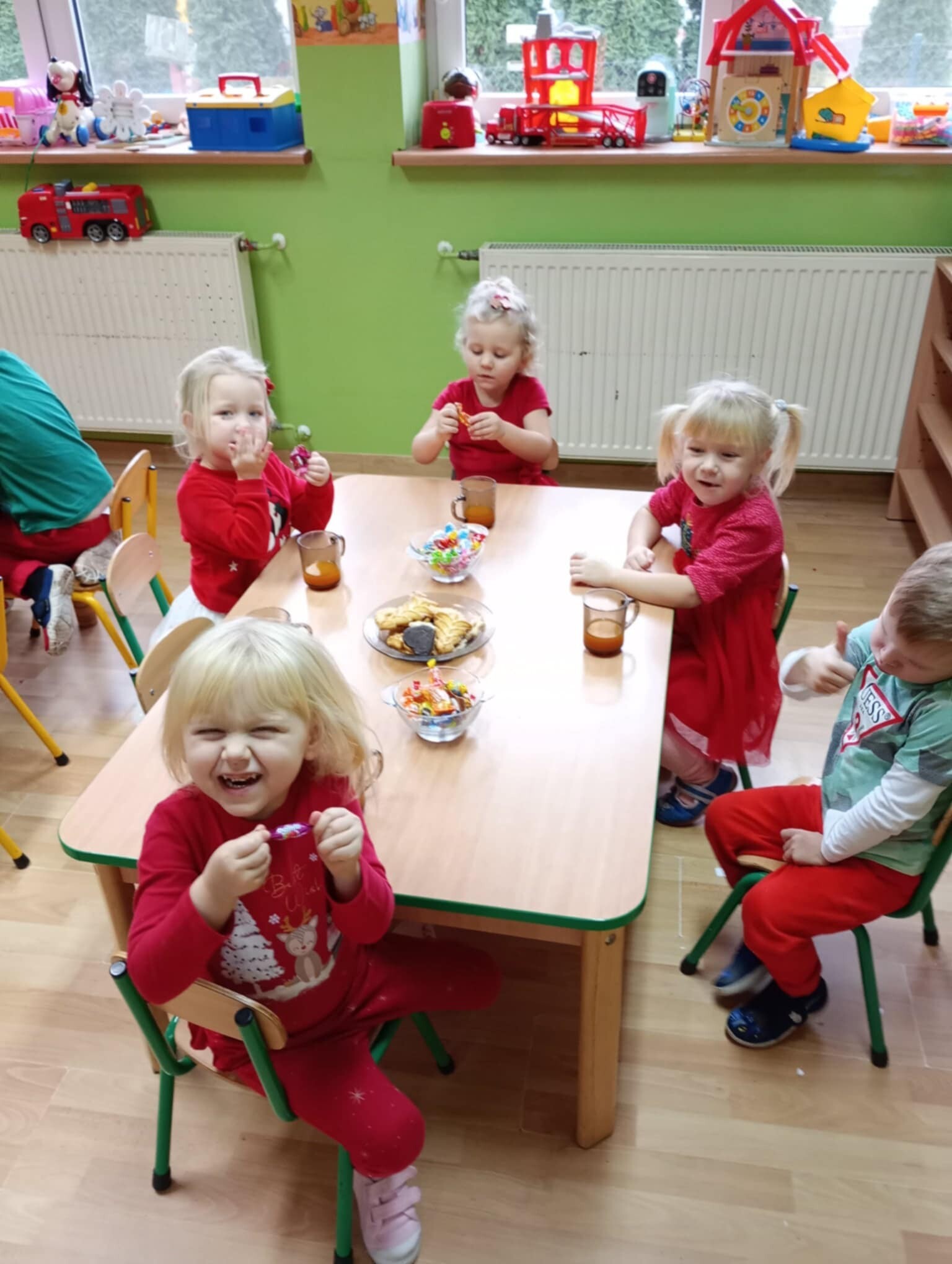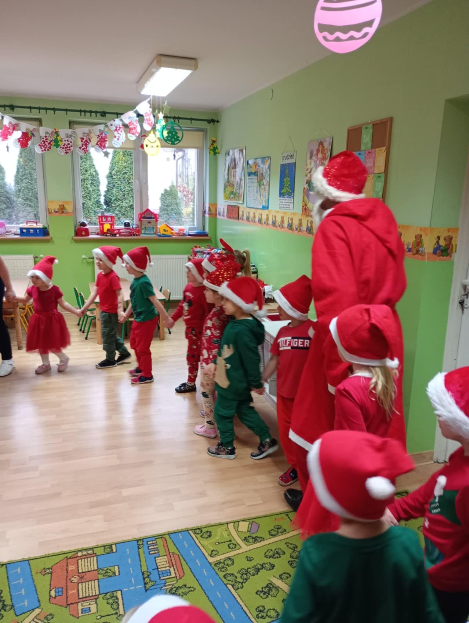 6 grudnia od samego rana w placówce panowała radość i poruszenie. Dzieciaki z wielką niecierpliwością oczekiwały przyjścia niezwykłego gościa. Cały czas nasłuchiwały dzwonków. Aby podkreślić wyjątkowy charakter tego wydarzenia wszystkie dzieci były odświętnie ubrane i miały czerwone mikołajowe czapeczki.