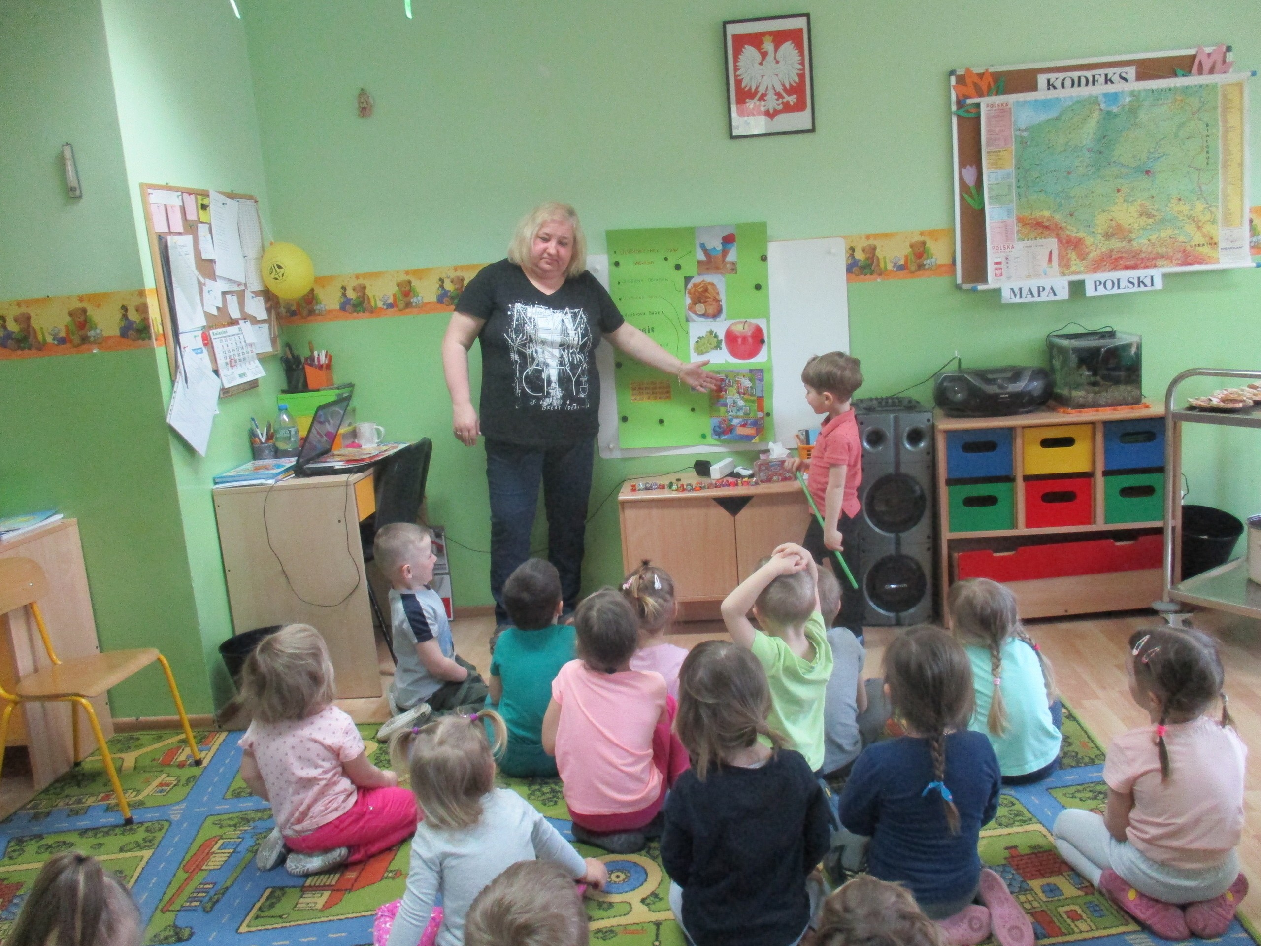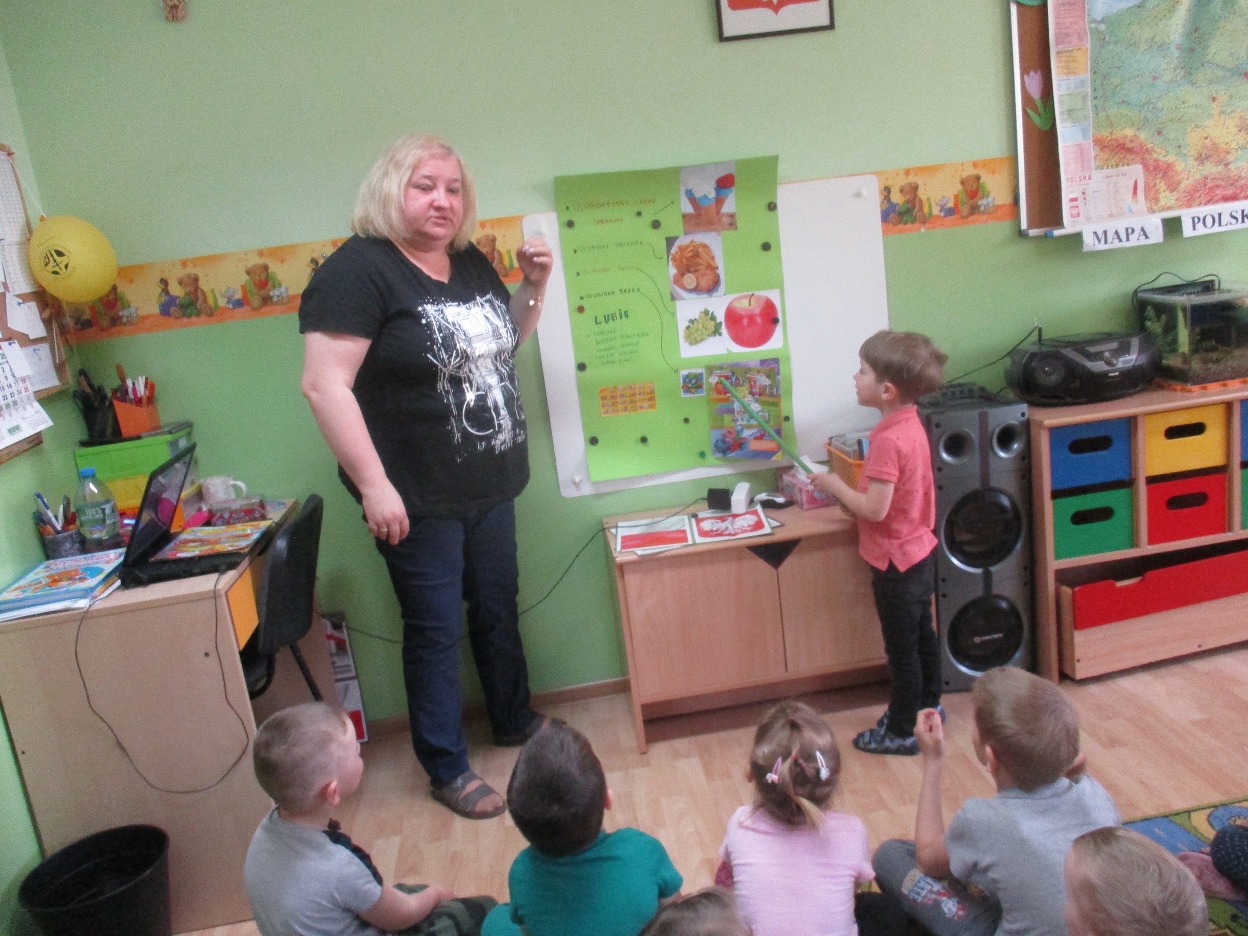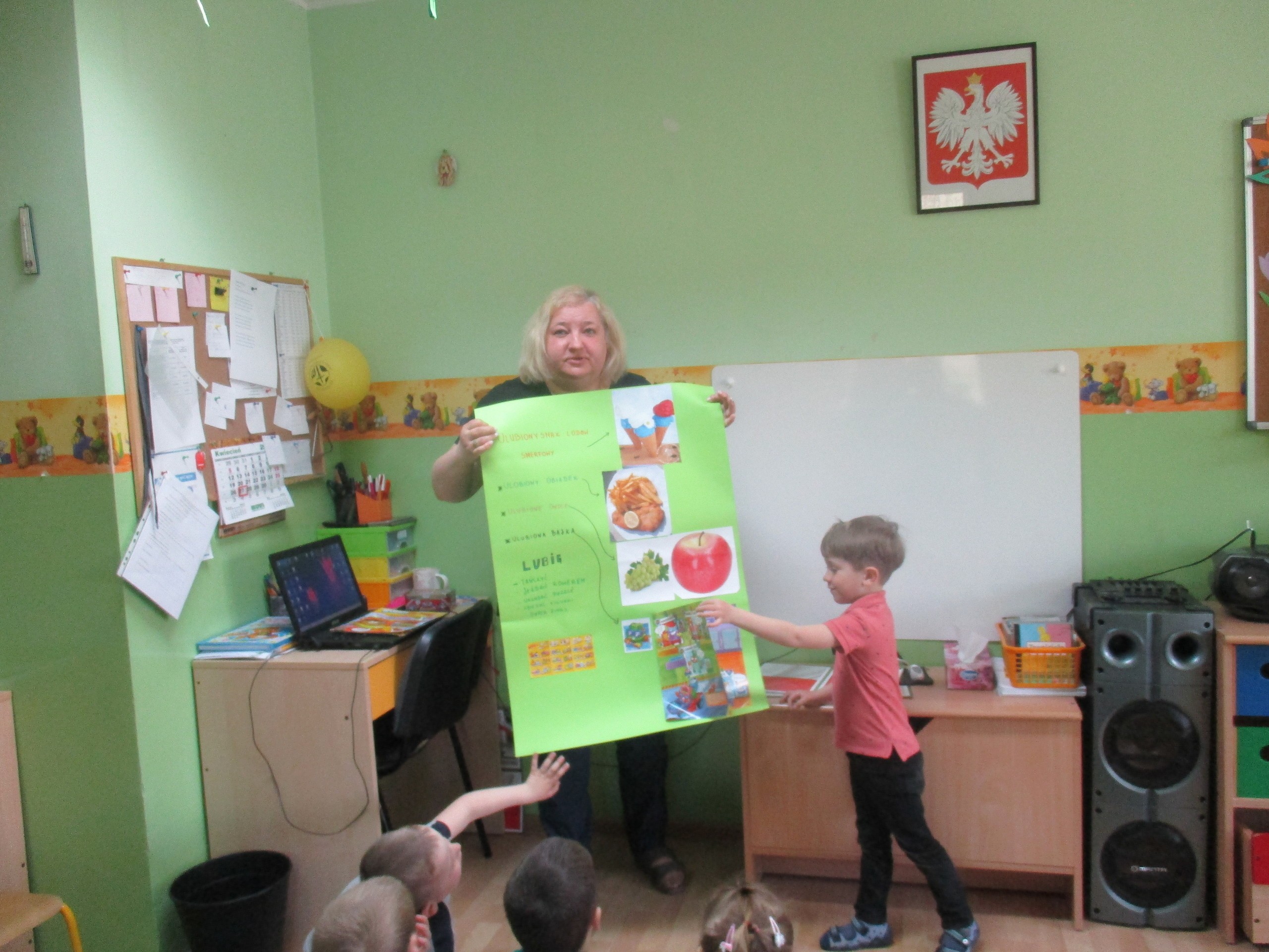 Dzisiaj do przedszkola swoją prezentację przyniósł Antoś Drużyński. Antoś opowiedział dzieciom o swoich zainteresowaniach i sympatiach. Antoś lubi lody smerfowe, a jego ulubionym daniem obiadowym są frytki i kotlet. Antoś uwielbia winogrona i jabłka. Nasz przedszkolak lubi tańczyć, jeździć na rowerze, układać puzzle. Największą pasją Antosia jest zbieranie figurek Super Things oraz gazetek i przedmiotów tematycznie związanych ze swoimi ulubionymi bohaterami. Antoś posiada sporą kolekcję figurek i zna imiona każdej z nich. Antoś pięknie przedstawił prezentację o sobie.