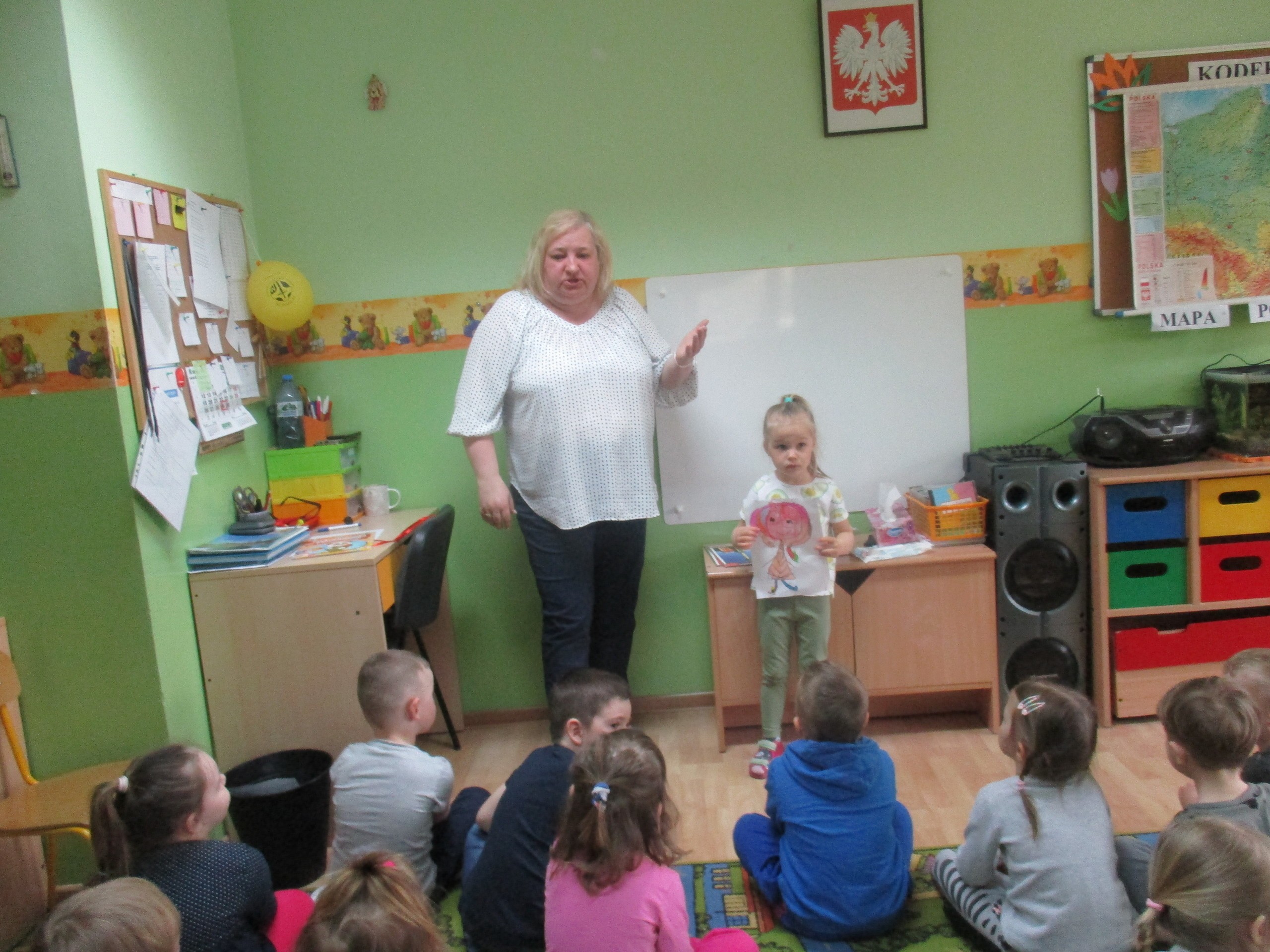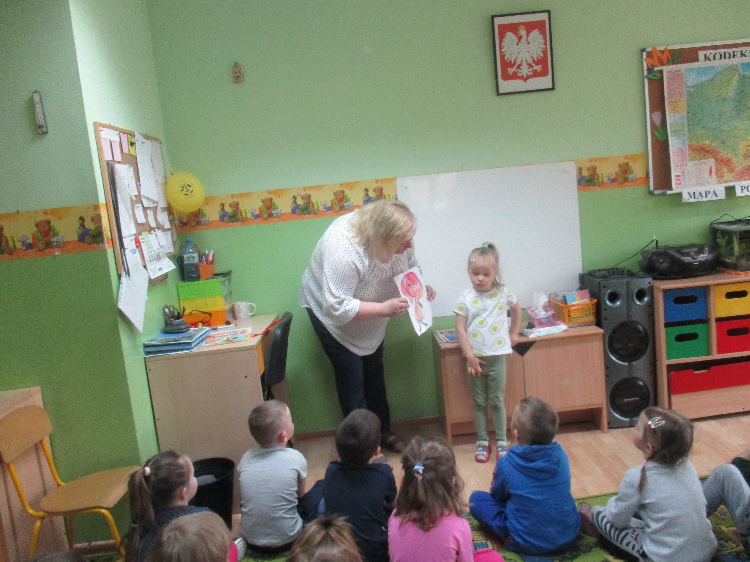 Dzisiejszego poranka swoją prezentację pokazała Marysia. Marysia narysowała lalkę, której nadała imię Zuzia. Lalki to ulubione zabawki Marysi. Marysia opisała wygląd swojej ulubionej zabawki. Za przygotowanie prezentacji Marysia otrzymała Medal Wyjątkowego Przedszkolaka i kolorowankę. Gratulujemy odwagi i zainteresowań!