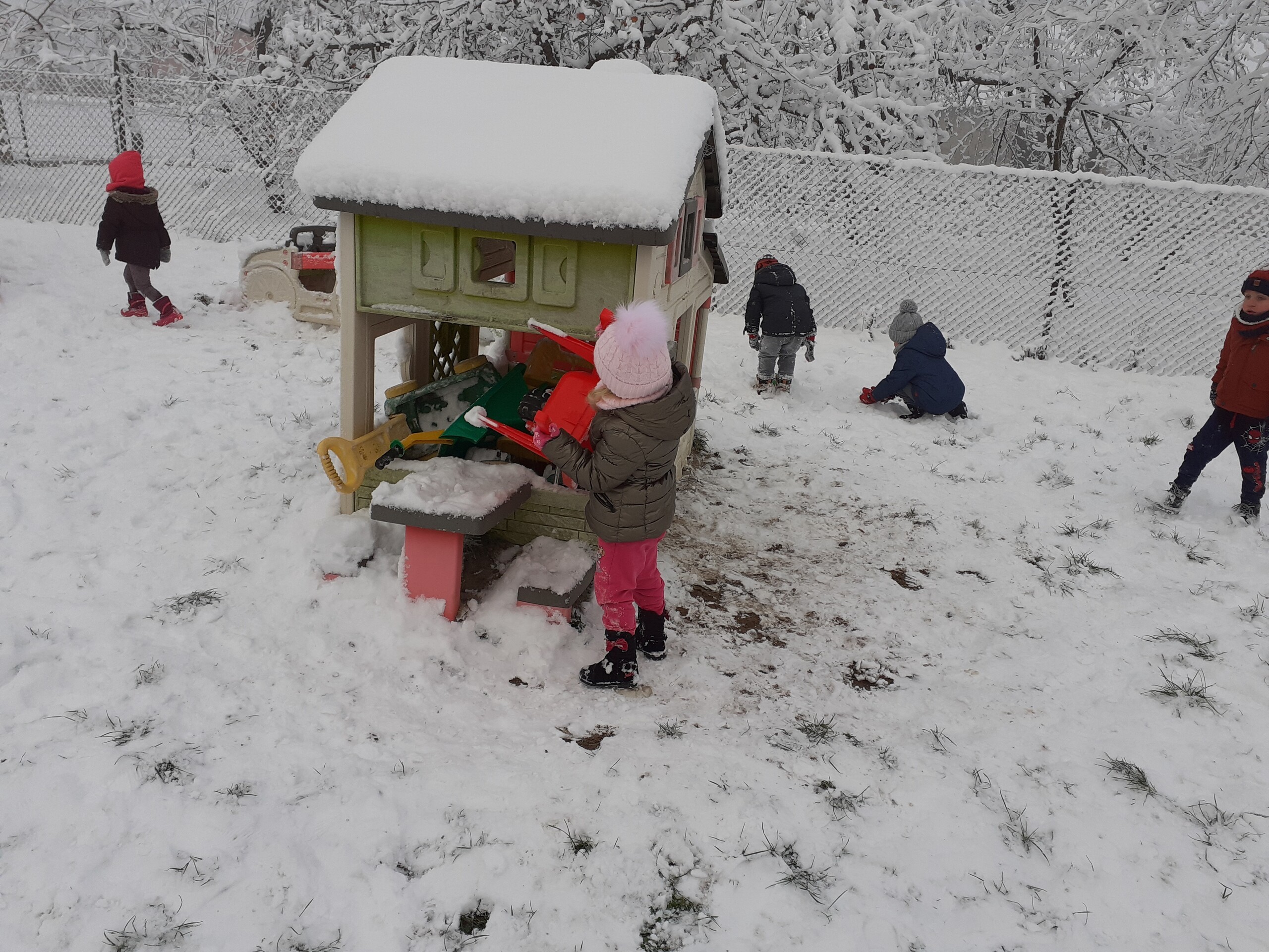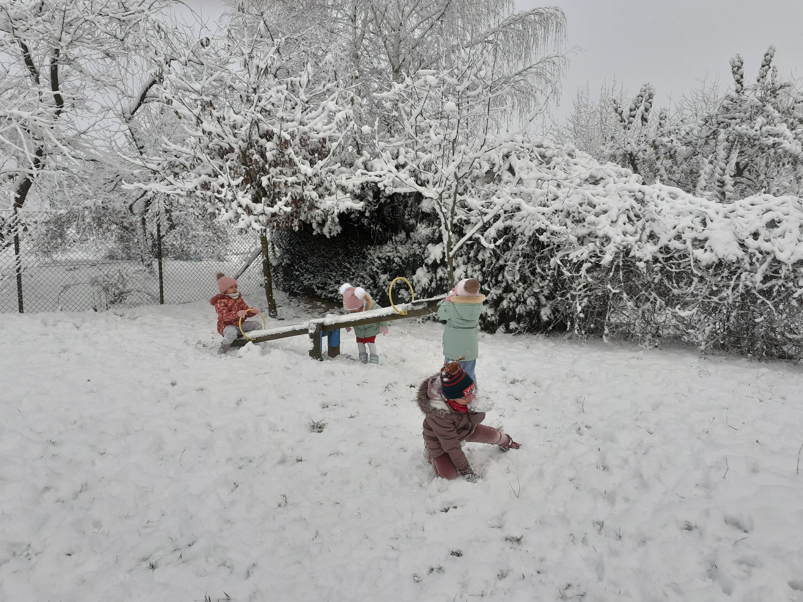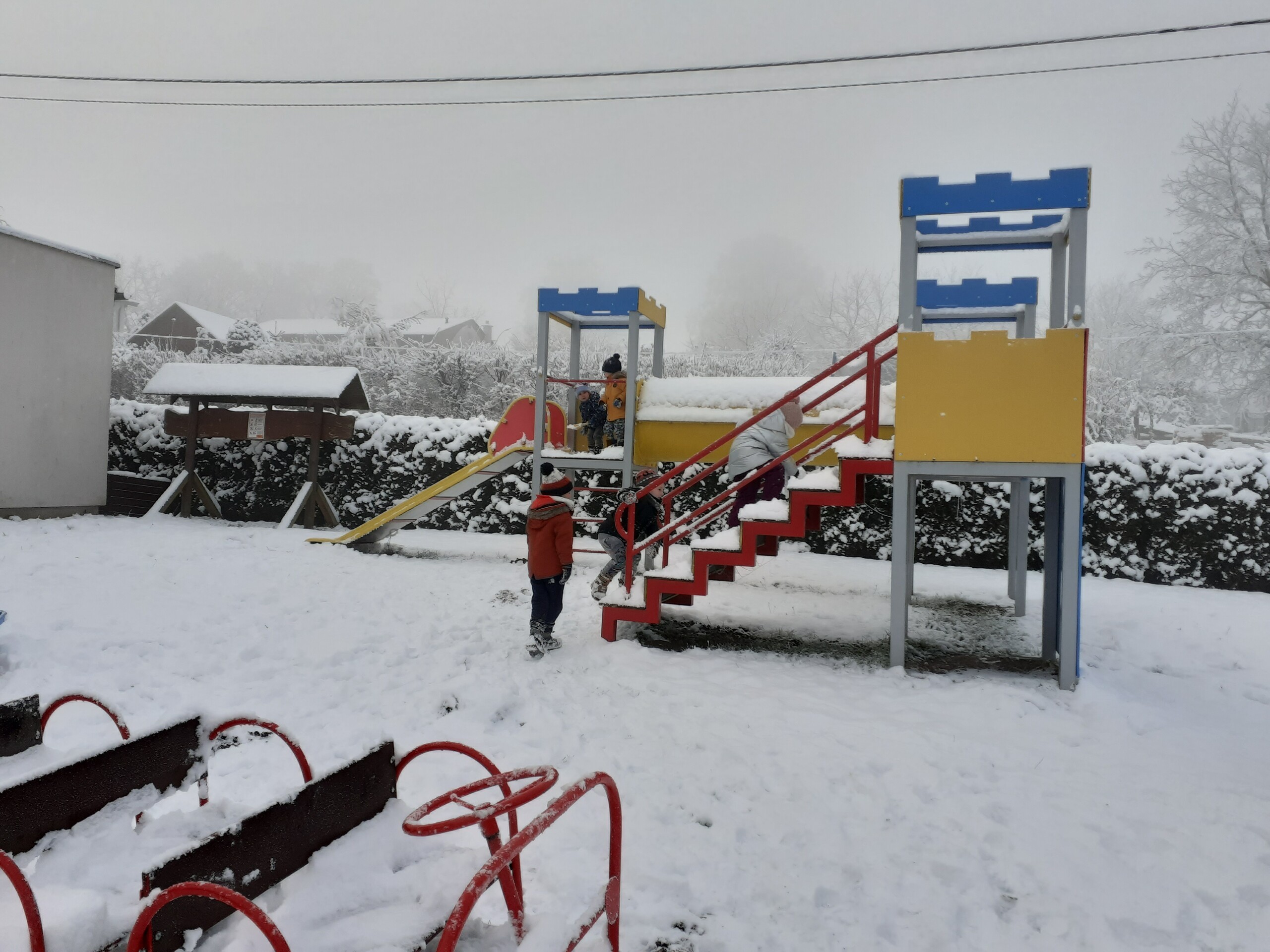 Piękna zima tej jesieni. Przedszkolaki z radością odkrywały uroki zabawy na śniegu...
