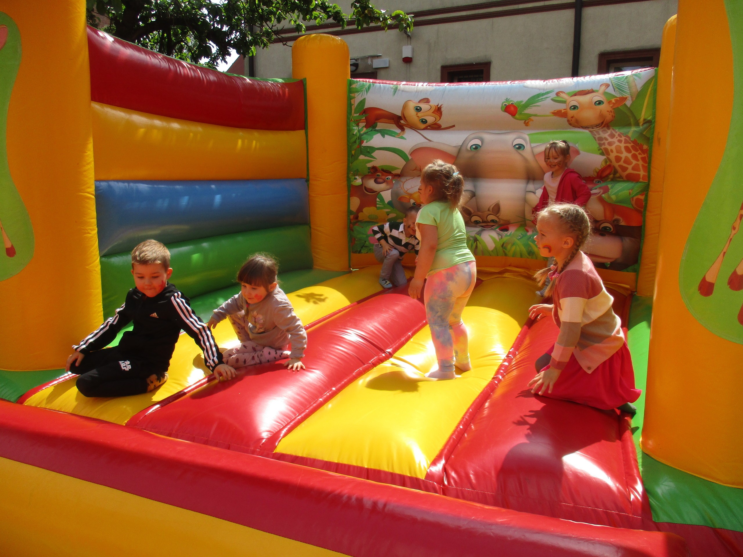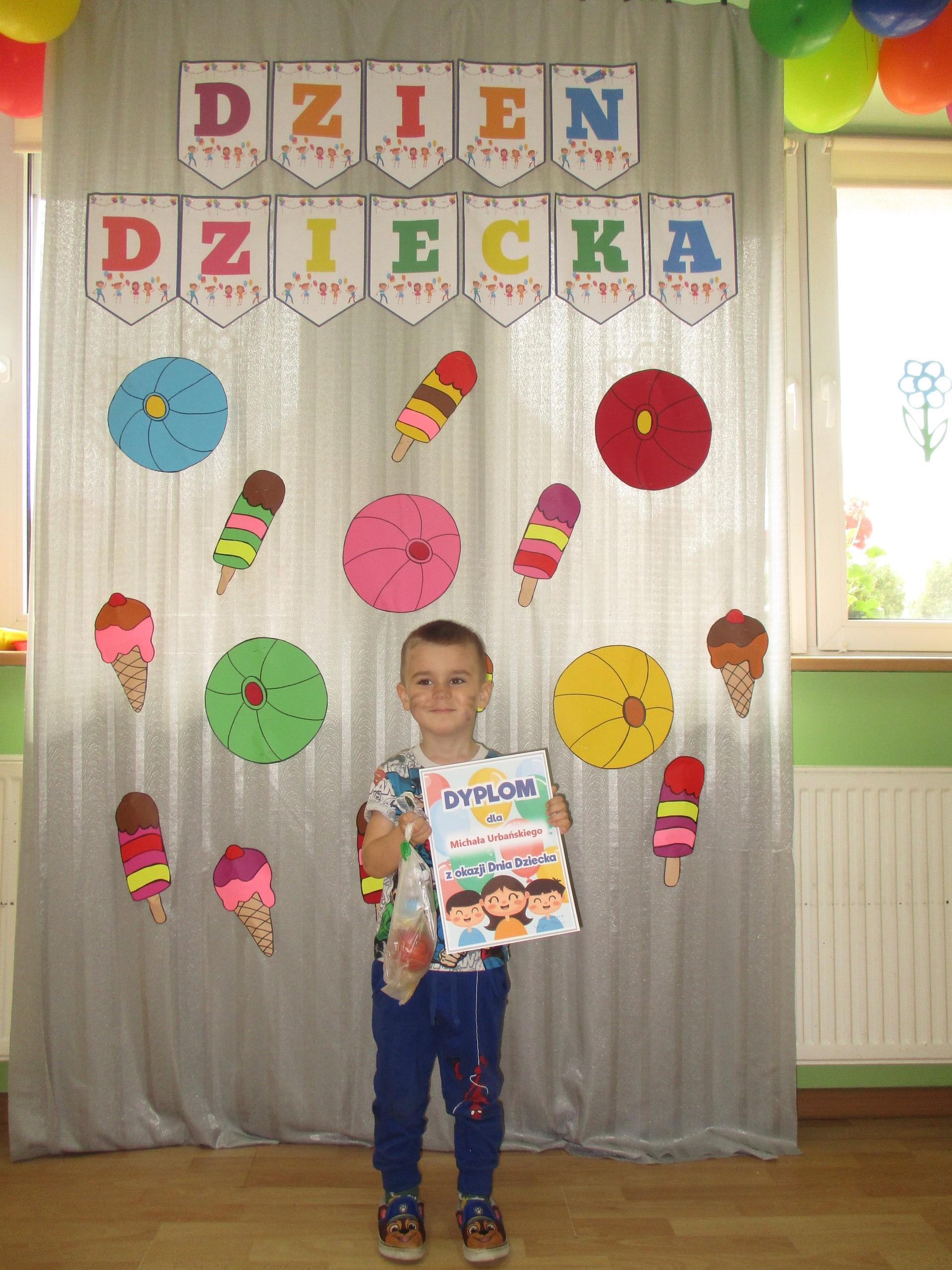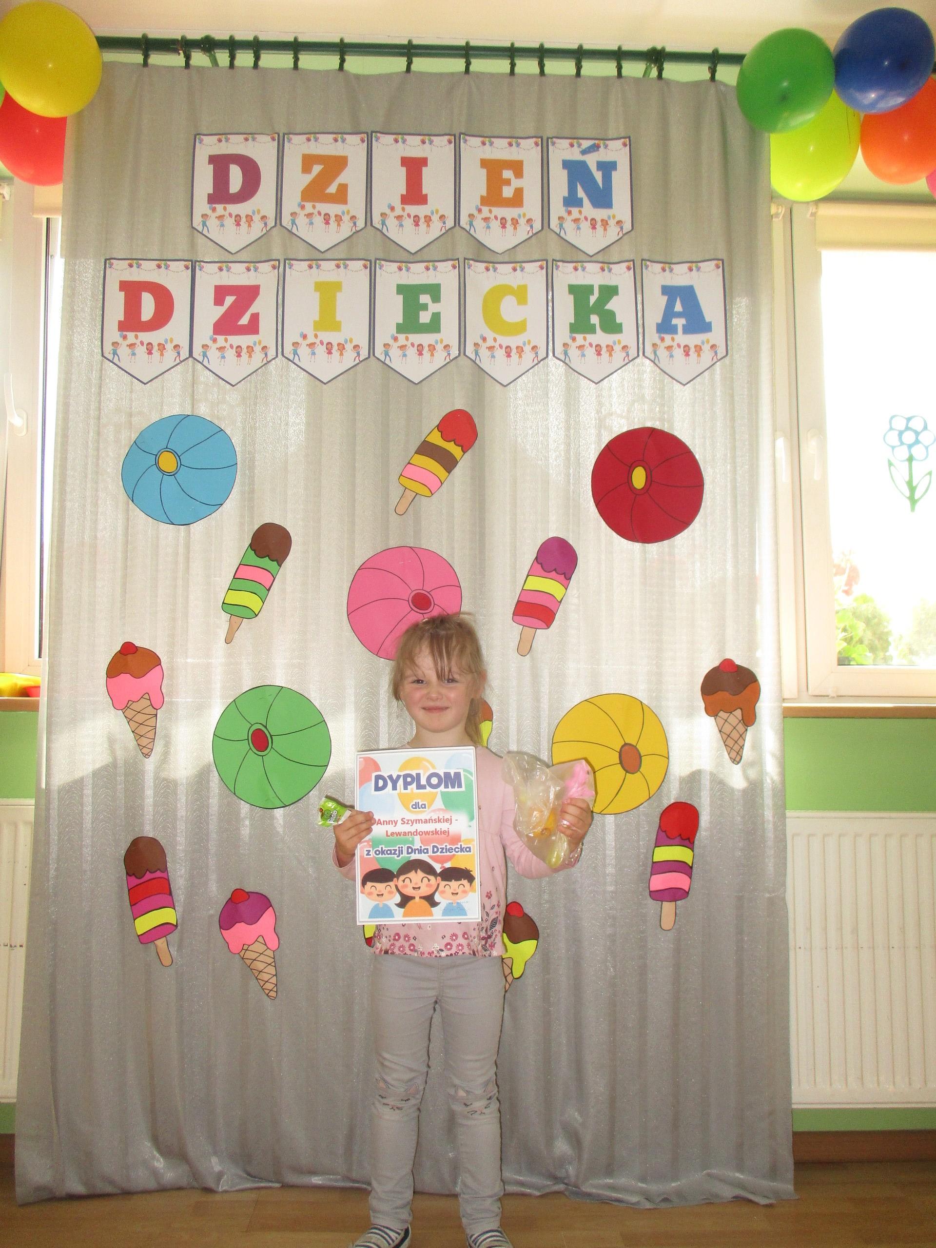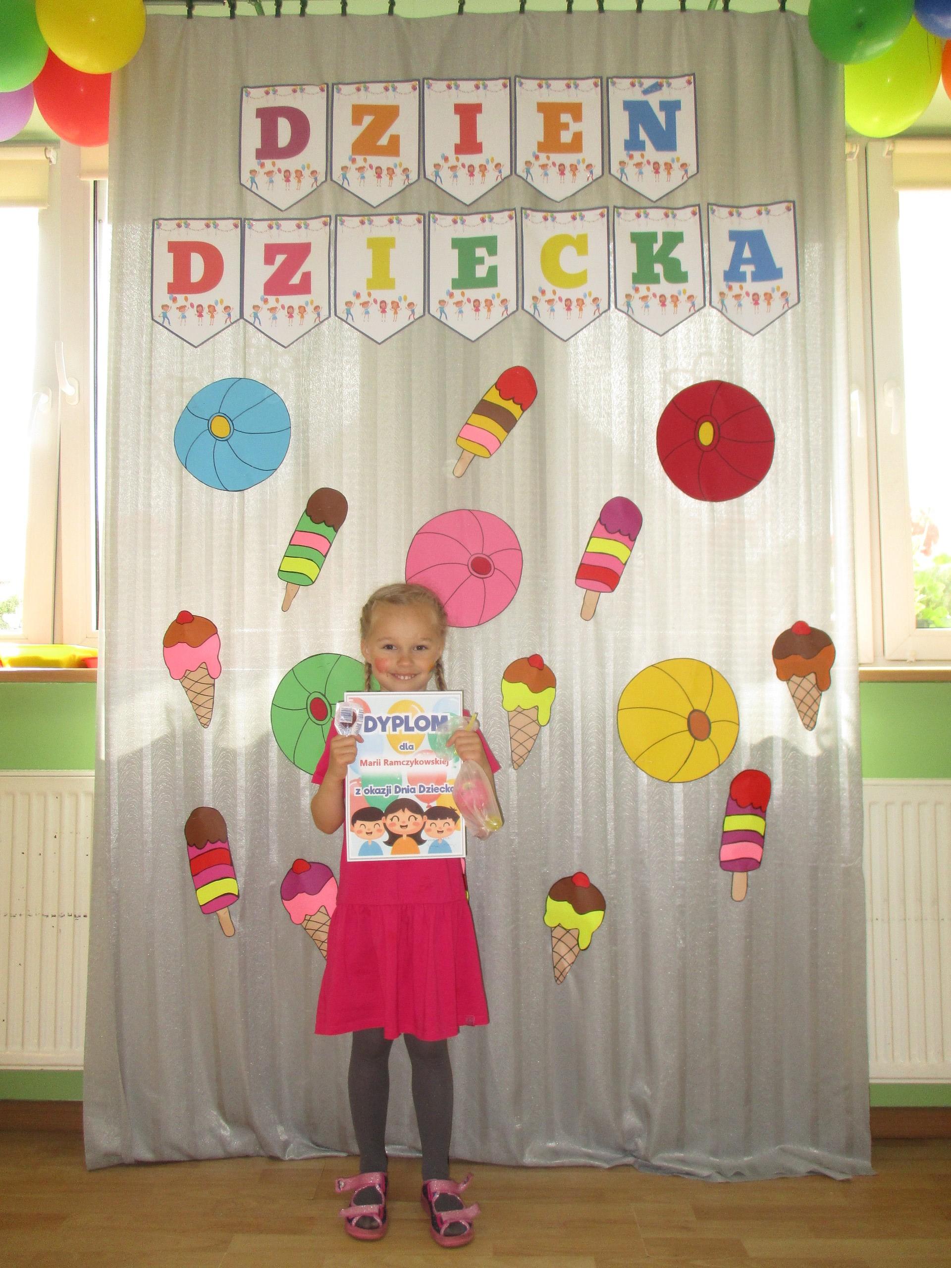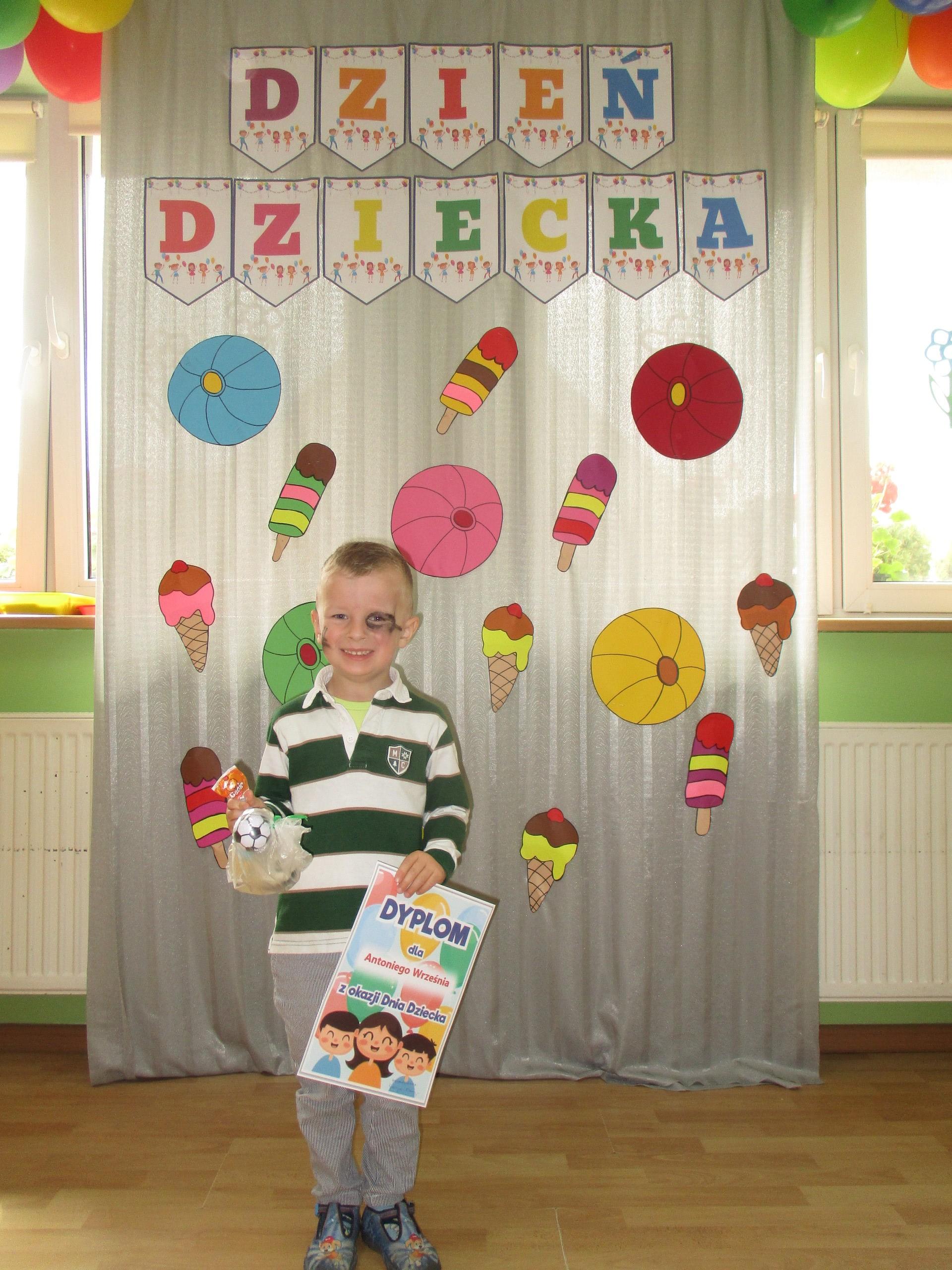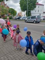 Dzisiaj obchodzimy Międzynarodowy Dzień Dziecka. Z tej okazji pojechaliśmy na wycieczkę do Lęborka. Po długim spacerze zjedliśmy pyszne lody na Placu Pokoju. Potem zostaliśmy zaproszeni do zaprzyjaźnionego Przedszkola Katolickiego im. Aniołów Stróżów w Lęborku na świetną zabawę. Bawiliśmy się skacząc na dmuchańcach. Pani z Przedszkola pomalowała nam twarze. Skorzystaliśmy z uroków placu zabaw. Na koniec spotkania dostaliśmy w prezencie balony i lizaki. Po powrocie z udanego wyjazdu czekały na nas następne niespodzianki: dyplom z okazji Dnia Dziecka, upominki, słodycze i popcorn.