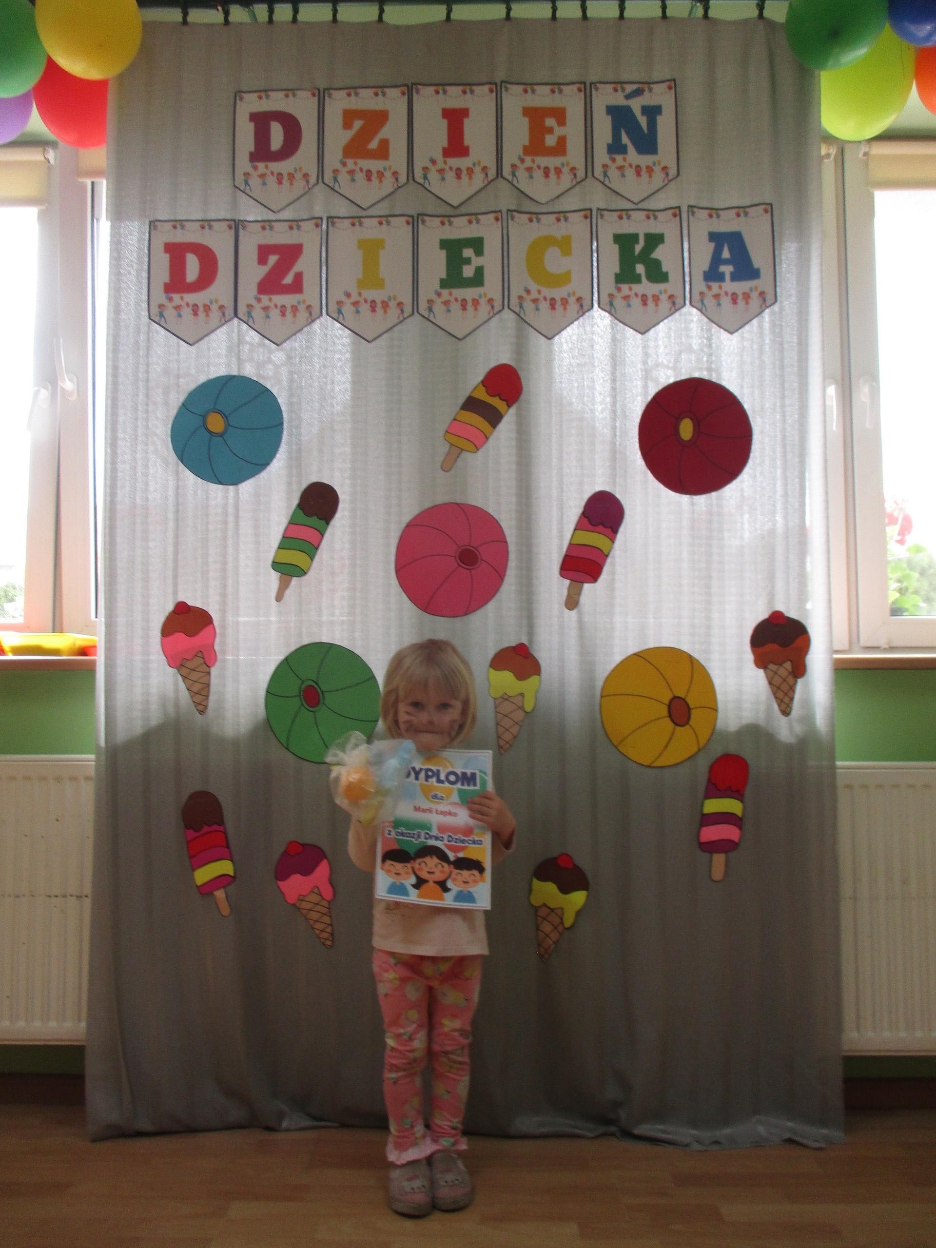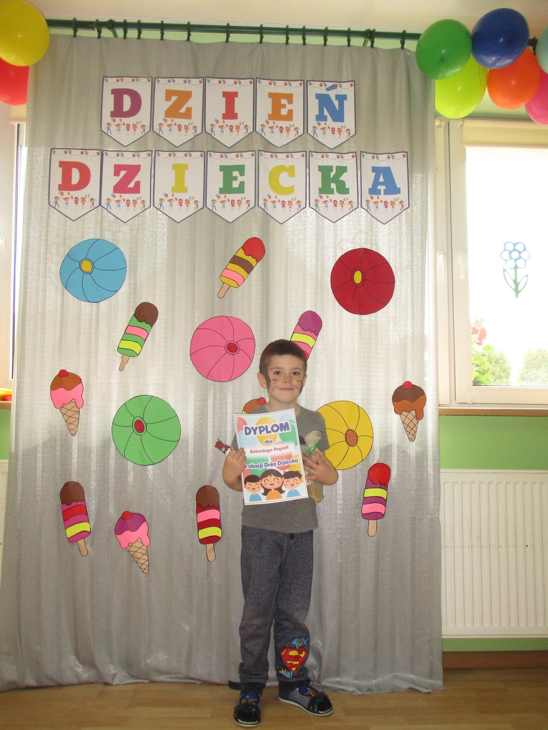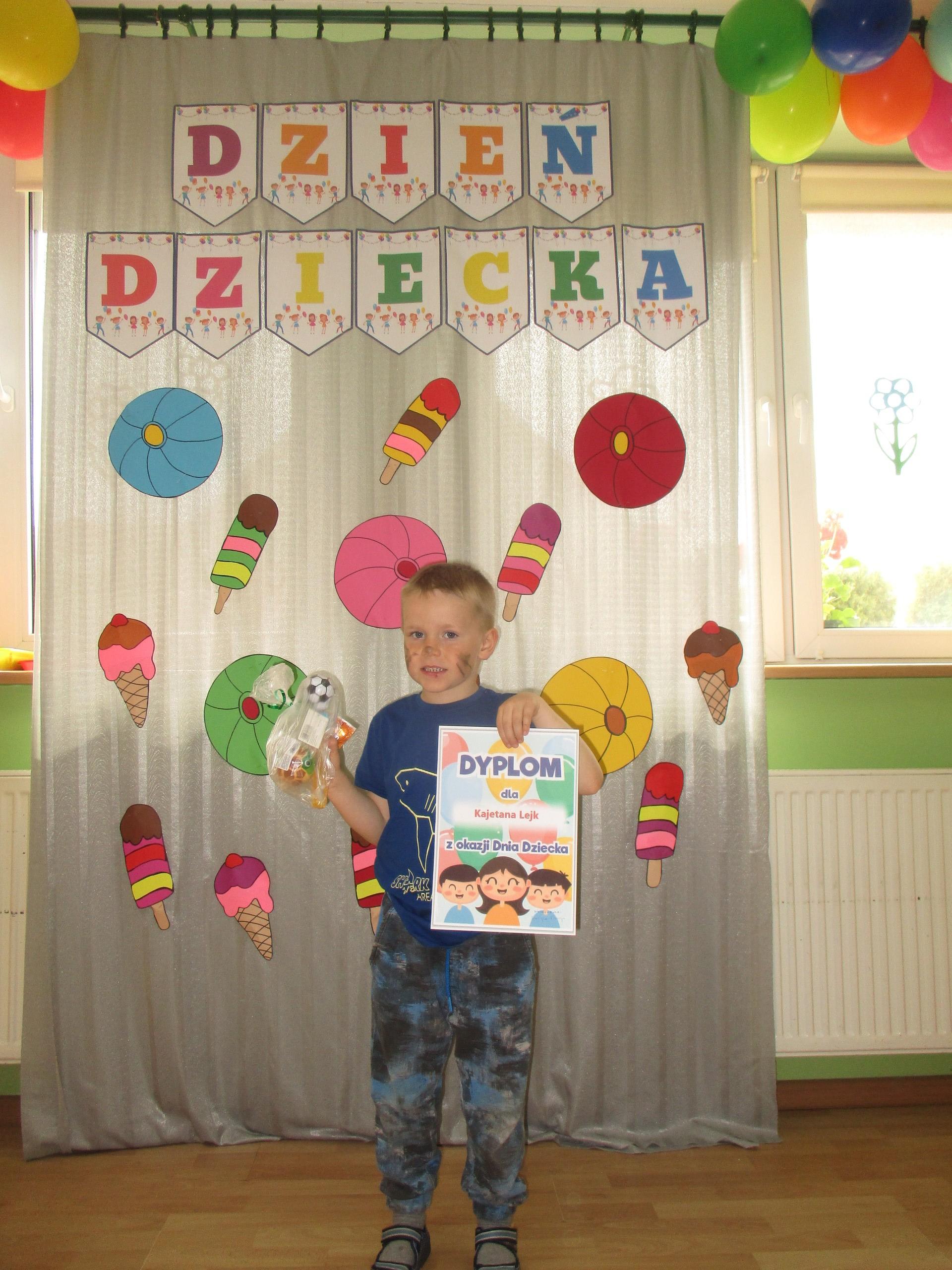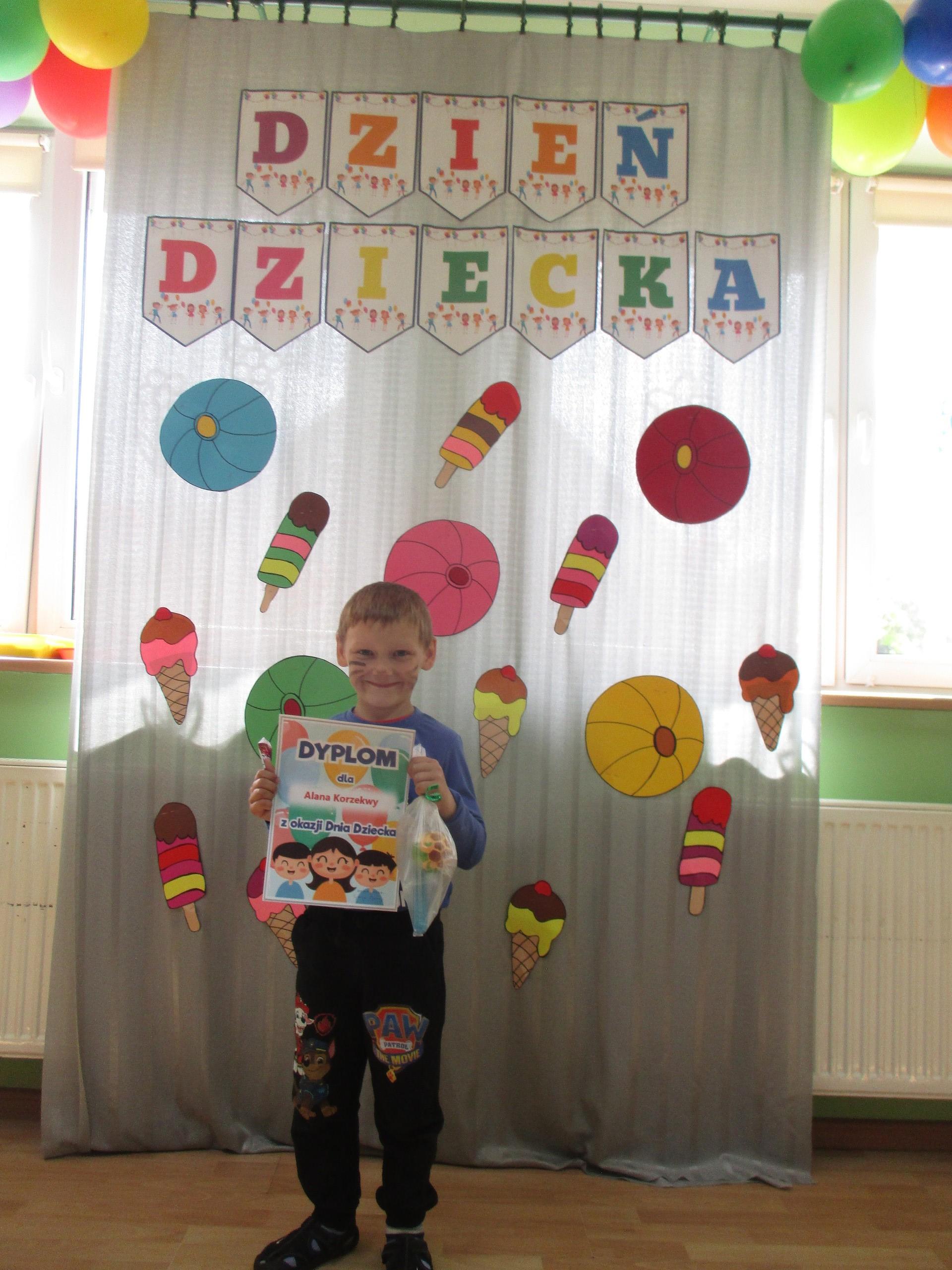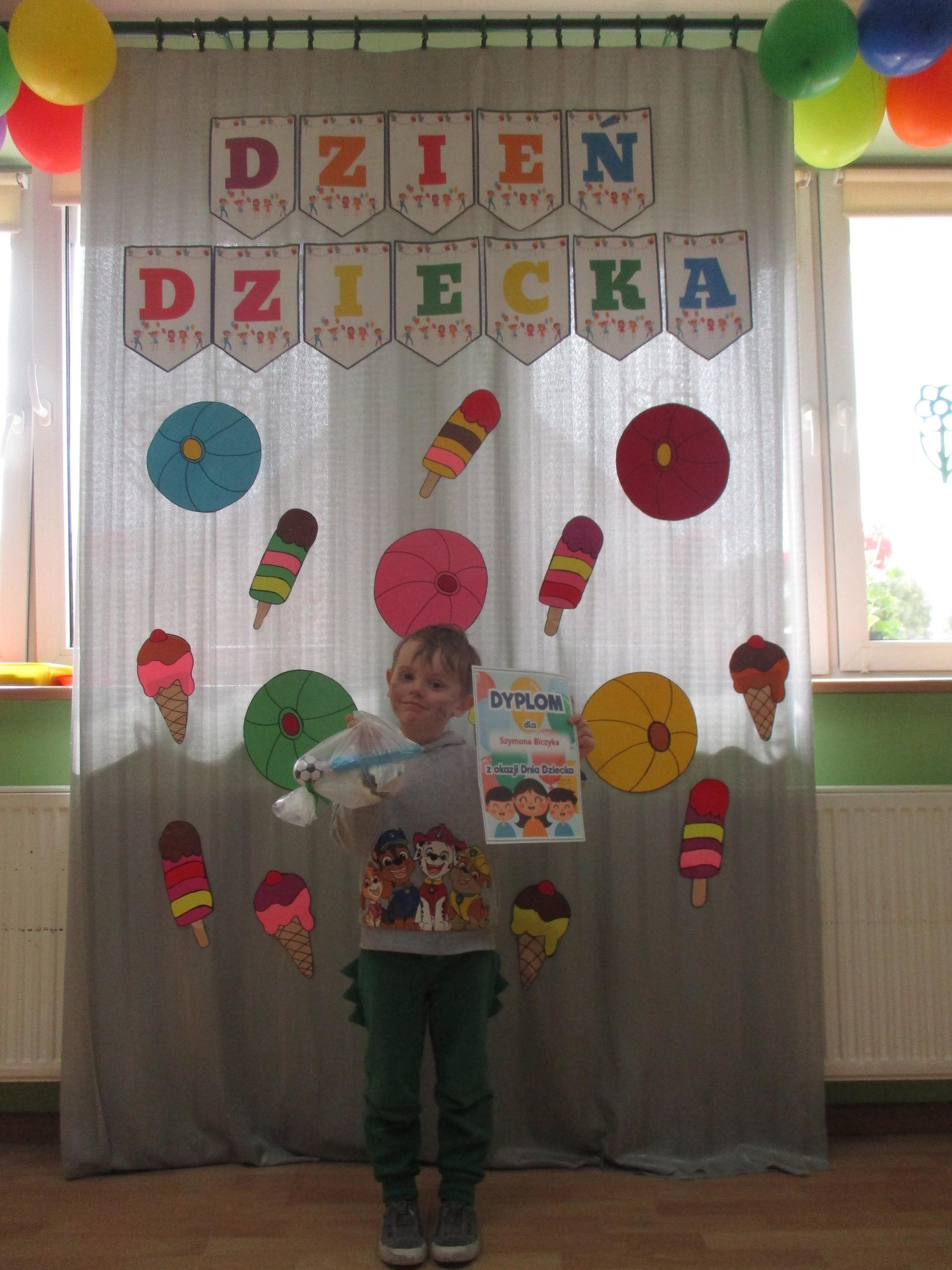 Dzisiaj obchodzimy Międzynarodowy Dzień Dziecka. Z tej okazji pojechaliśmy na wycieczkę do Lęborka. Po długim spacerze zjedliśmy pyszne lody na Placu Pokoju. Potem zostaliśmy zaproszeni do zaprzyjaźnionego Przedszkola Katolickiego im. Aniołów Stróżów w Lęborku na świetną zabawę. Bawiliśmy się skacząc na dmuchańcach. Pani z Przedszkola pomalowała nam twarze. Skorzystaliśmy z uroków placu zabaw. Na koniec spotkania dostaliśmy w prezencie balony i lizaki. Po powrocie z udanego wyjazdu czekały na nas następne niespodzianki: dyplom z okazji Dnia Dziecka, upominki, słodycze i popcorn.