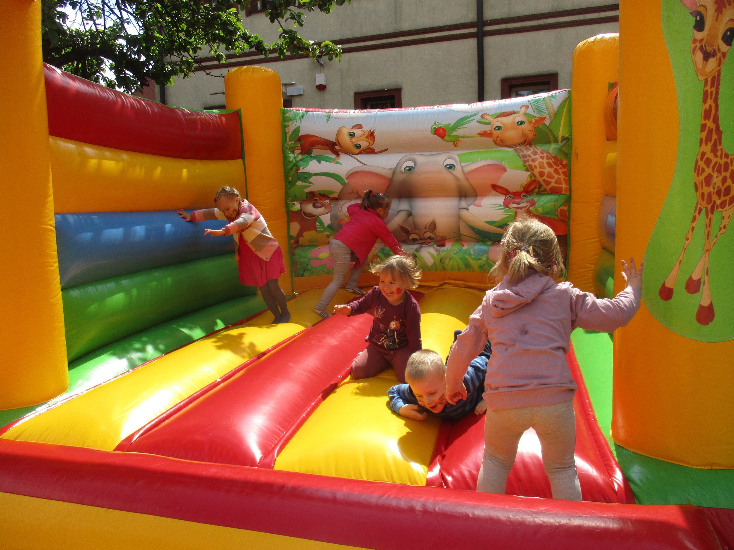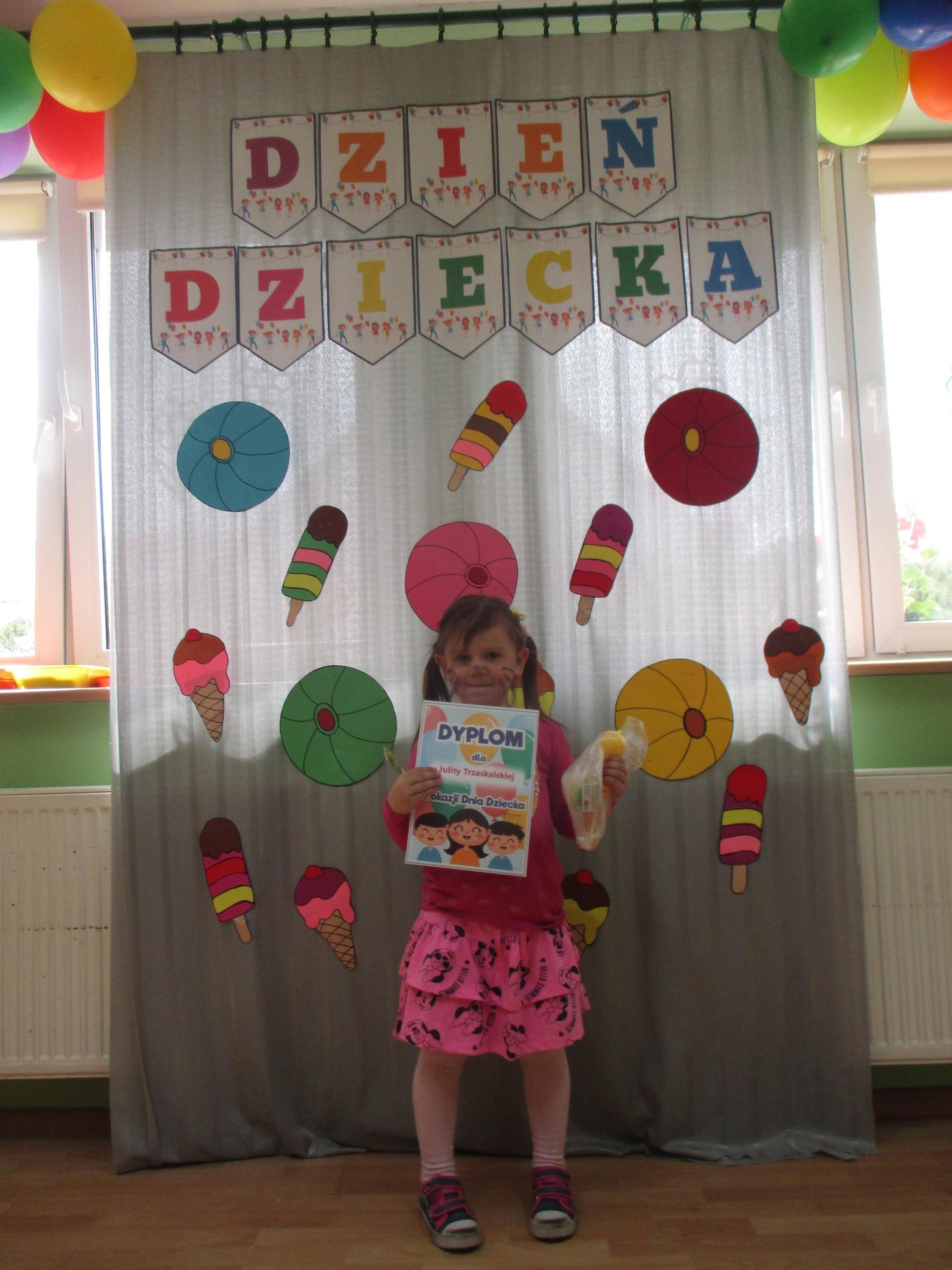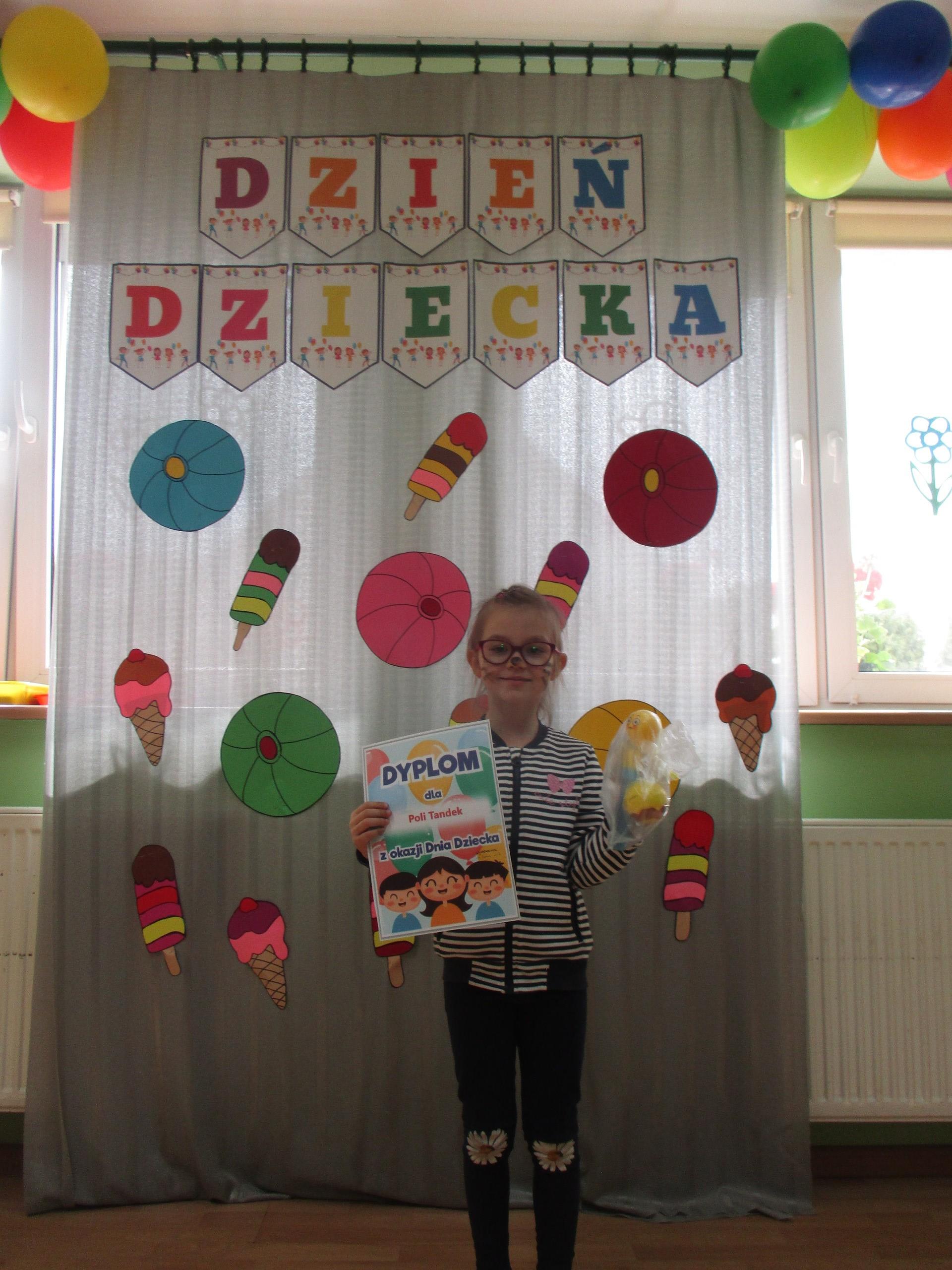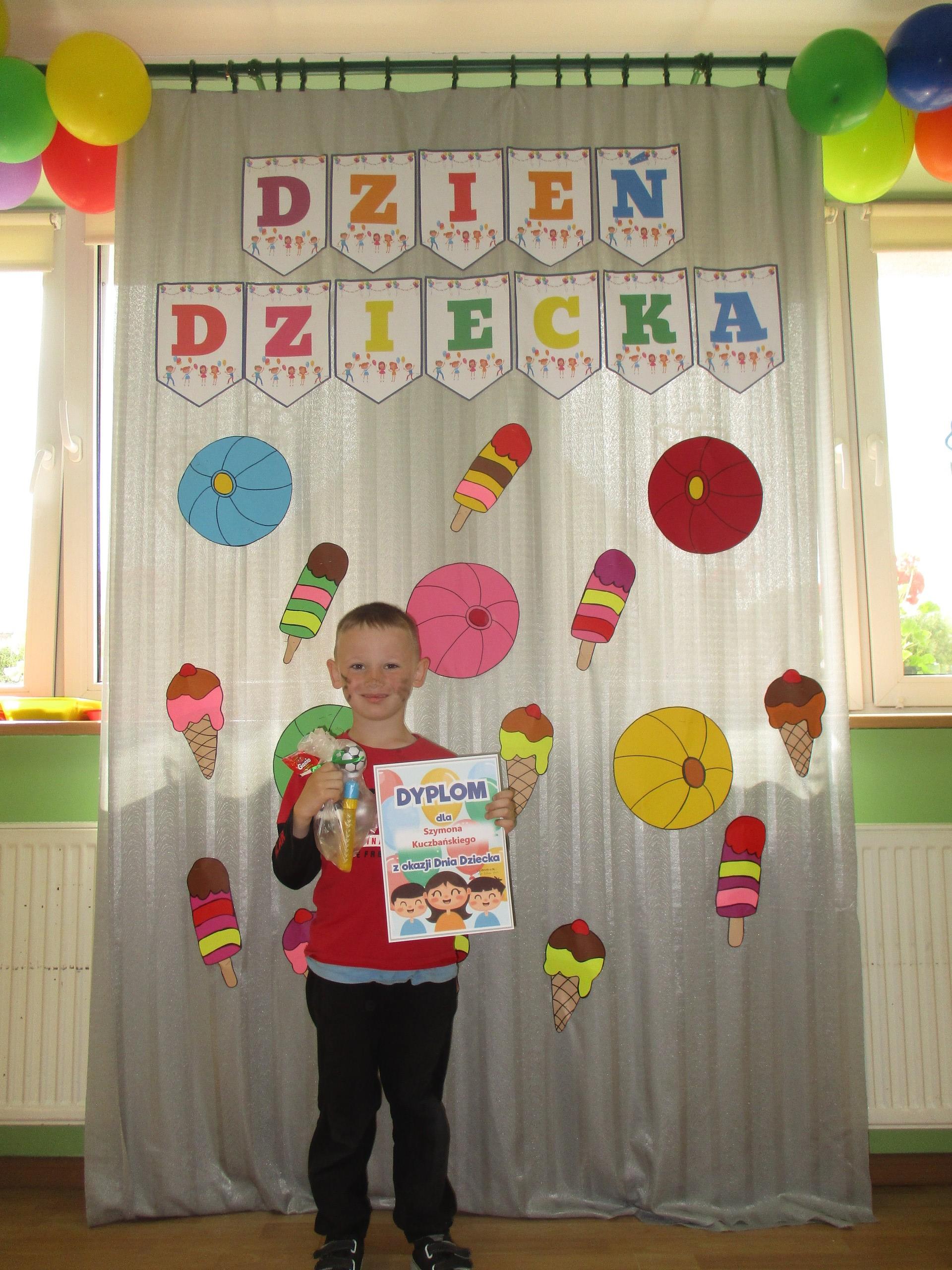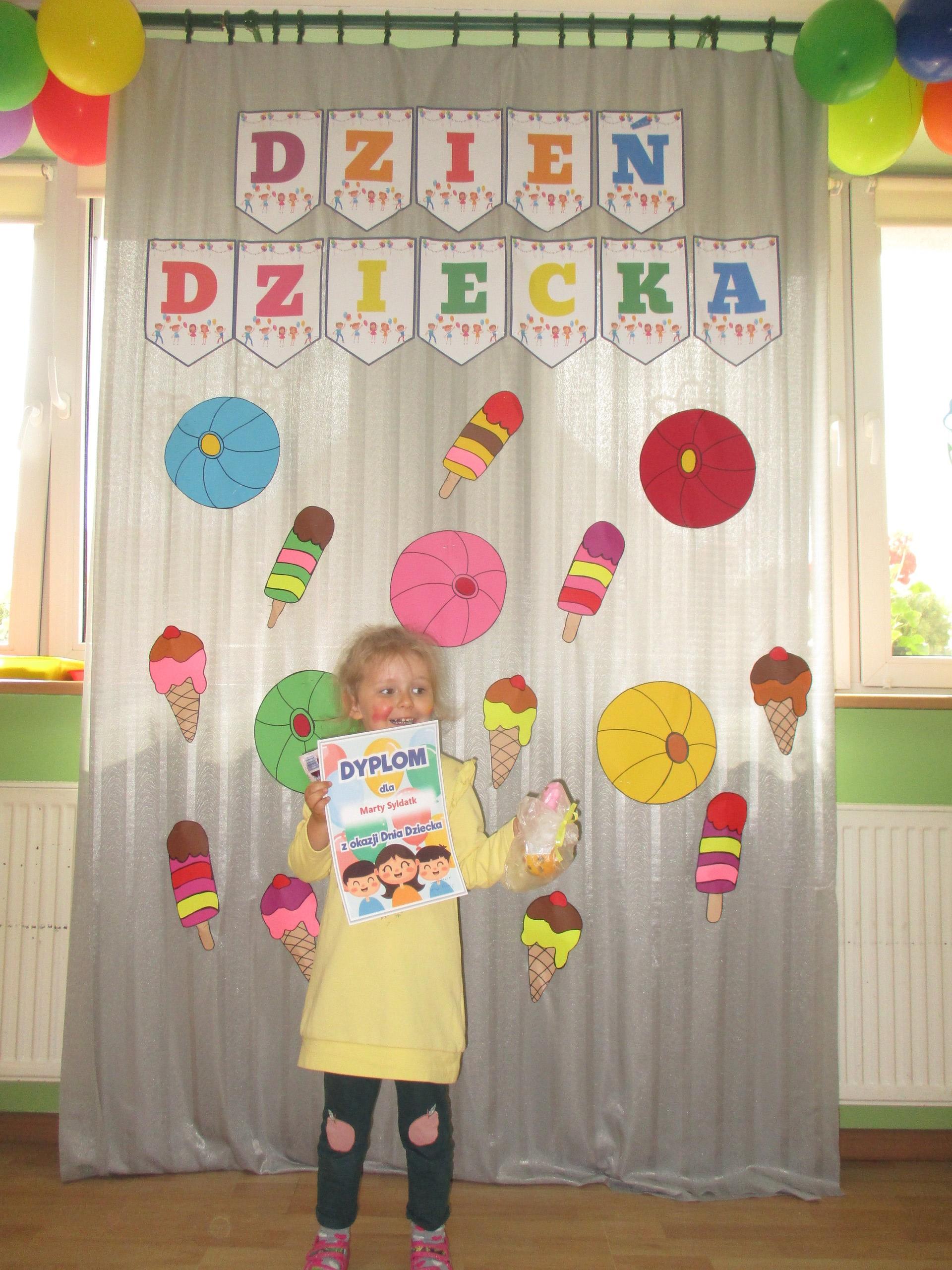 Dzisiaj obchodzimy Międzynarodowy Dzień Dziecka. Z tej okazji pojechaliśmy na wycieczkę do Lęborka. Po długim spacerze zjedliśmy pyszne lody na Placu Pokoju. Potem zostaliśmy zaproszeni do zaprzyjaźnionego Przedszkola Katolickiego im. Aniołów Stróżów w Lęborku na świetną zabawę. Bawiliśmy się skacząc na dmuchańcach. Pani z Przedszkola pomalowała nam twarze. Skorzystaliśmy z uroków placu zabaw. Na koniec spotkania dostaliśmy w prezencie balony i lizaki. Po powrocie z udanego wyjazdu czekały na nas następne niespodzianki: dyplom z okazji Dnia Dziecka, upominki, słodycze i popcorn.