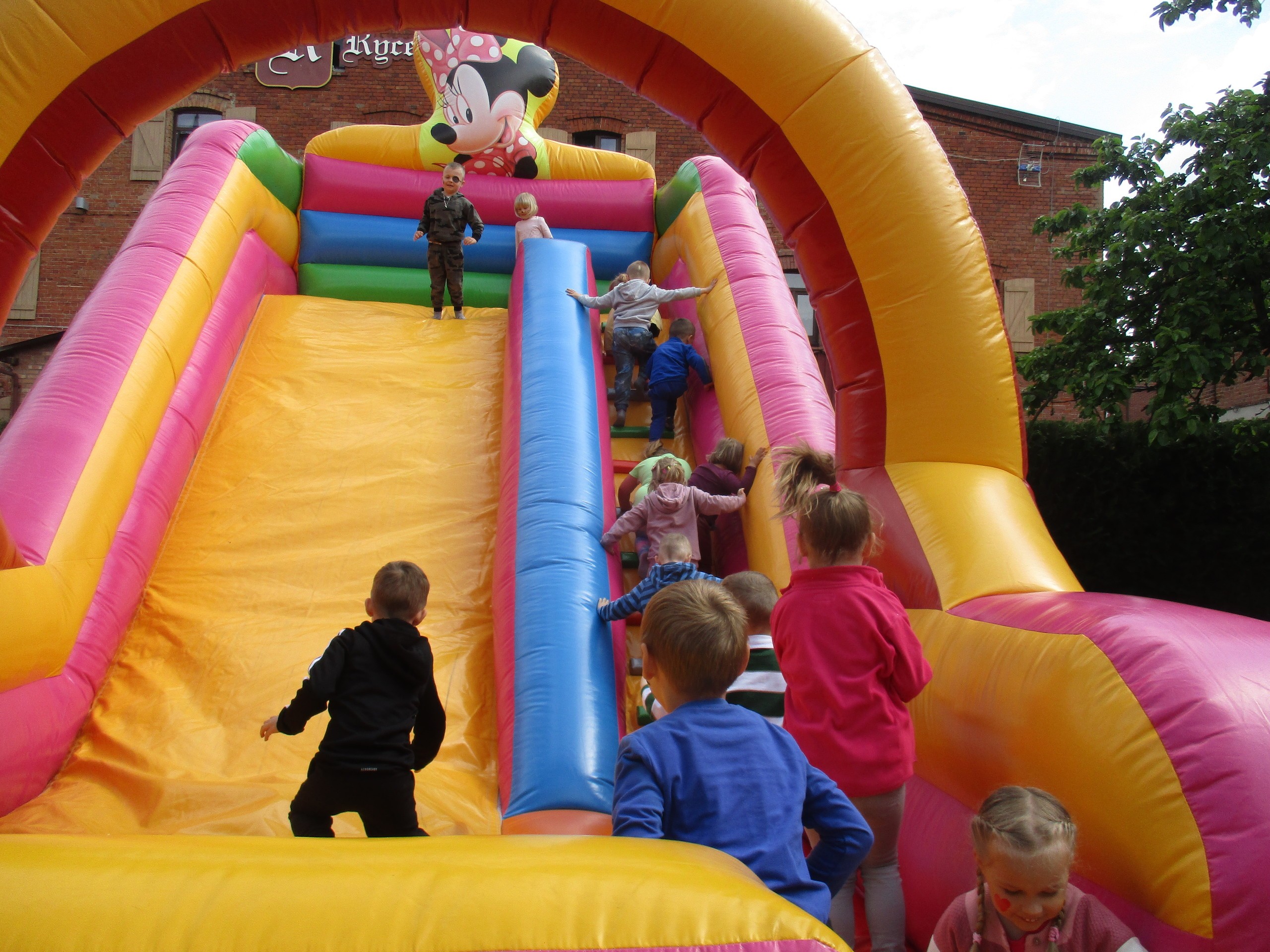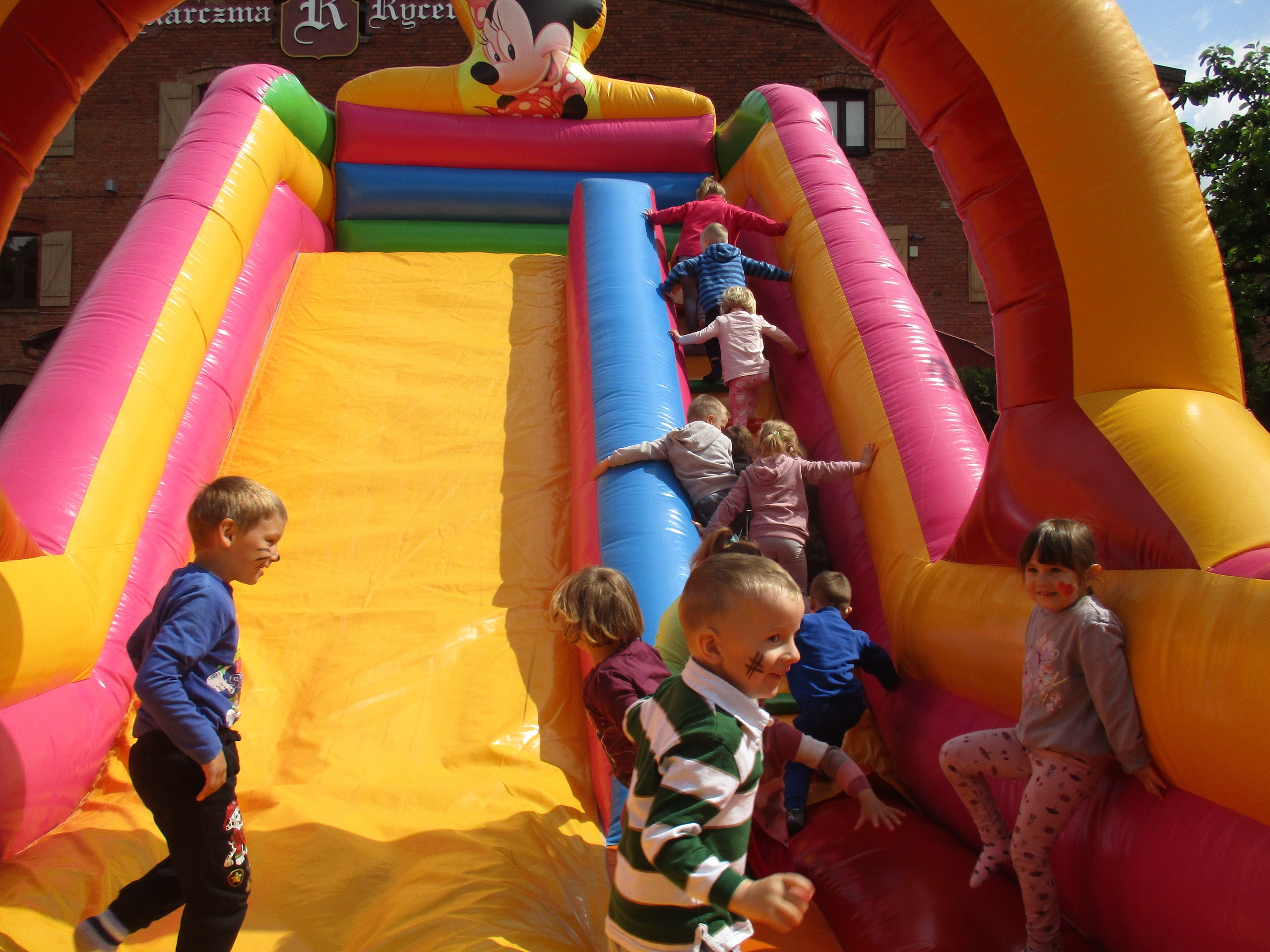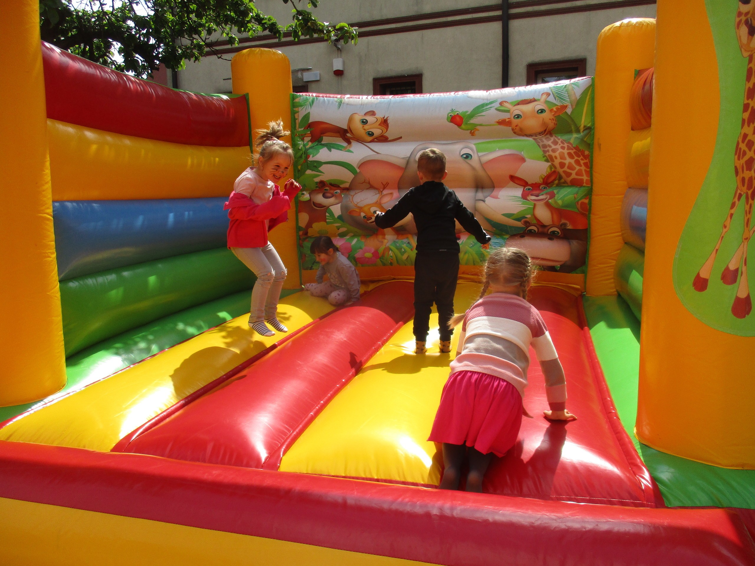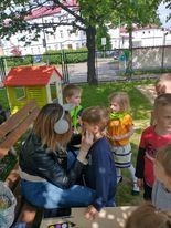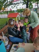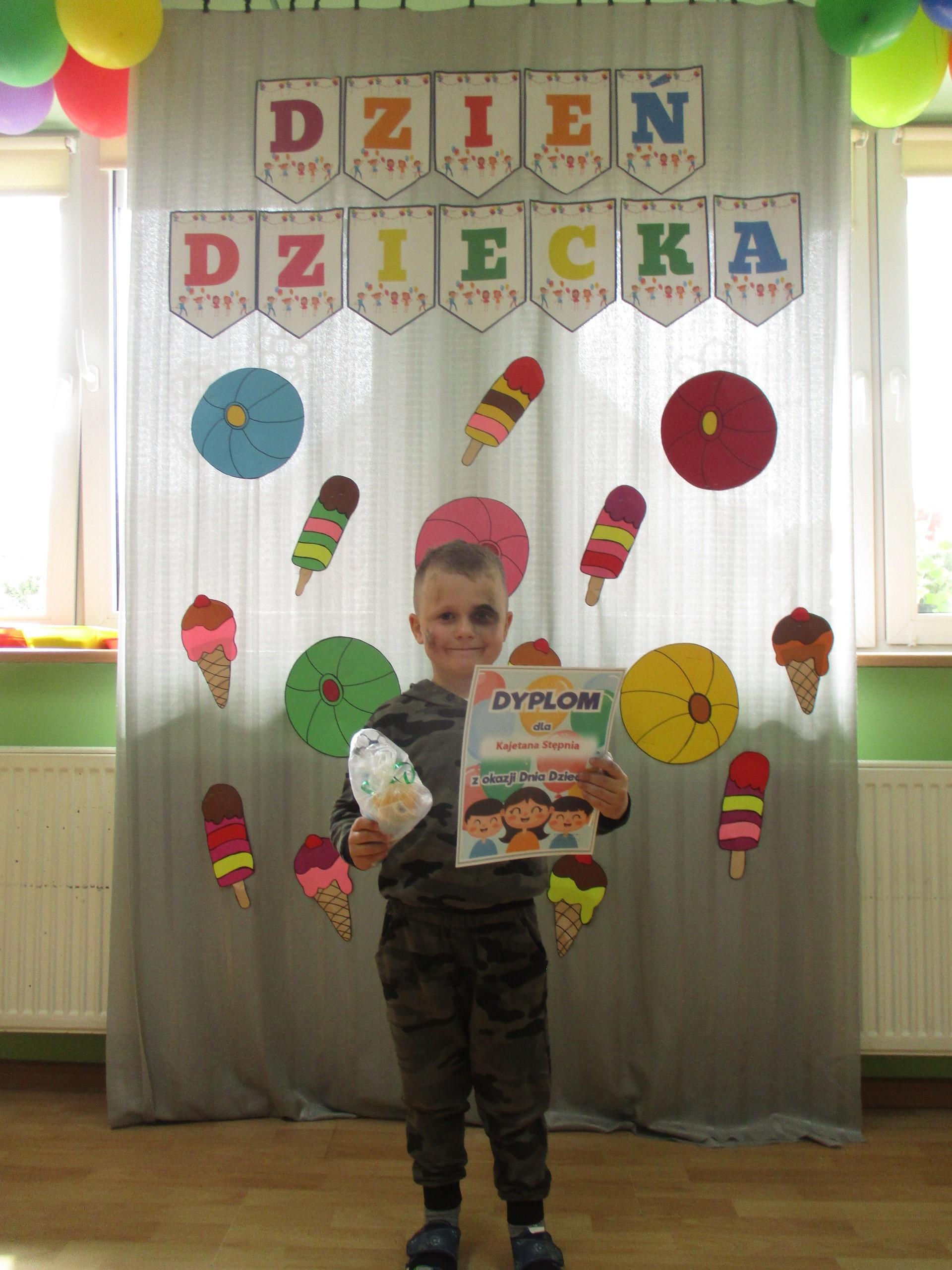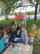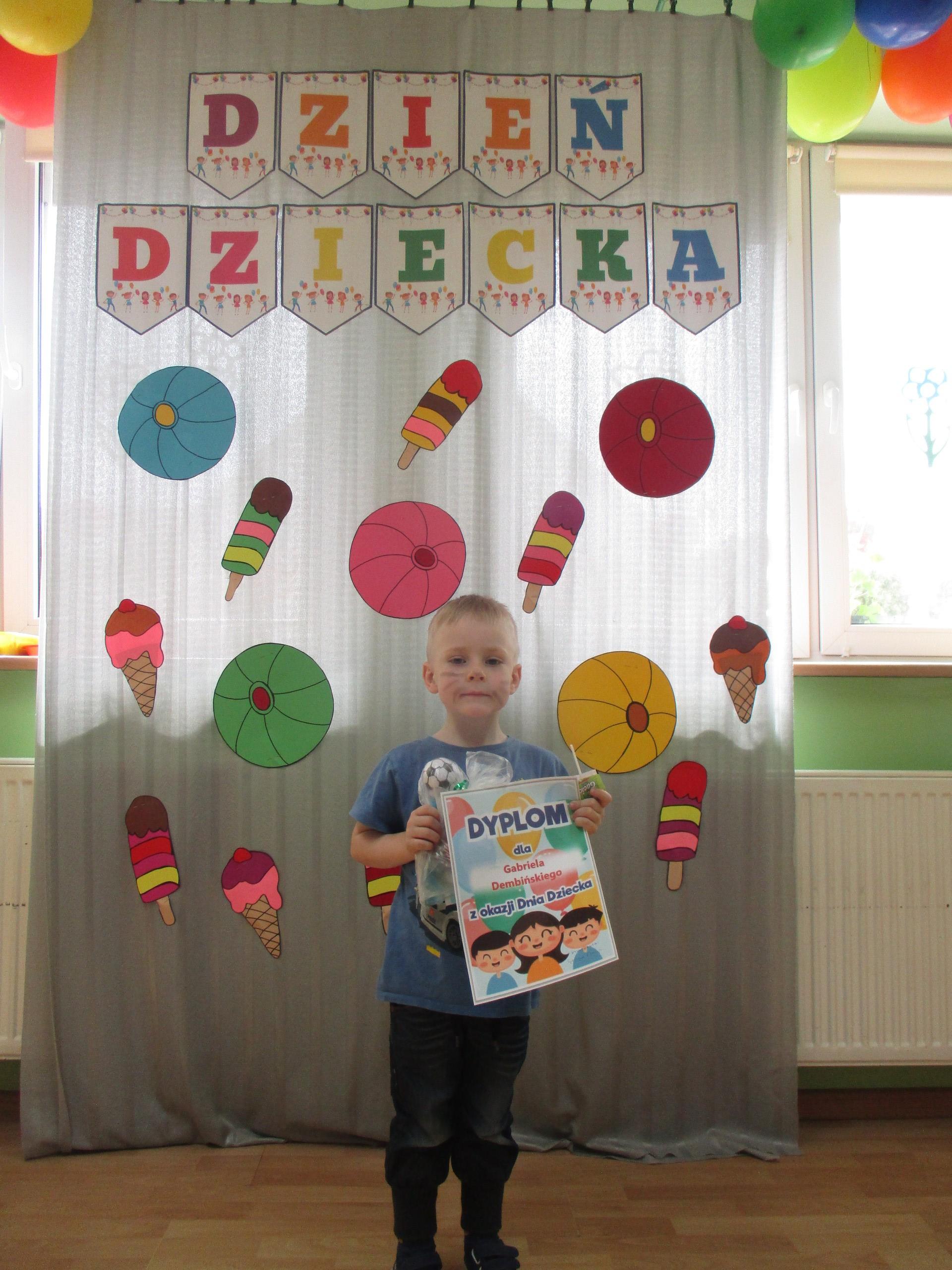Dzisiaj obchodzimy Międzynarodowy Dzień Dziecka. Z tej okazji pojechaliśmy na wycieczkę do Lęborka. Po długim spacerze zjedliśmy pyszne lody na Placu Pokoju. Potem zostaliśmy zaproszeni do zaprzyjaźnionego Przedszkola Katolickiego im. Aniołów Stróżów w Lęborku na świetną zabawę. Bawiliśmy się skacząc na dmuchańcach. Pani z Przedszkola pomalowała nam twarze. Skorzystaliśmy z uroków placu zabaw. Na koniec spotkania dostaliśmy w prezencie balony i lizaki. Po powrocie z udanego wyjazdu czekały na nas następne niespodzianki: dyplom z okazji Dnia Dziecka, upominki, słodycze i popcorn.