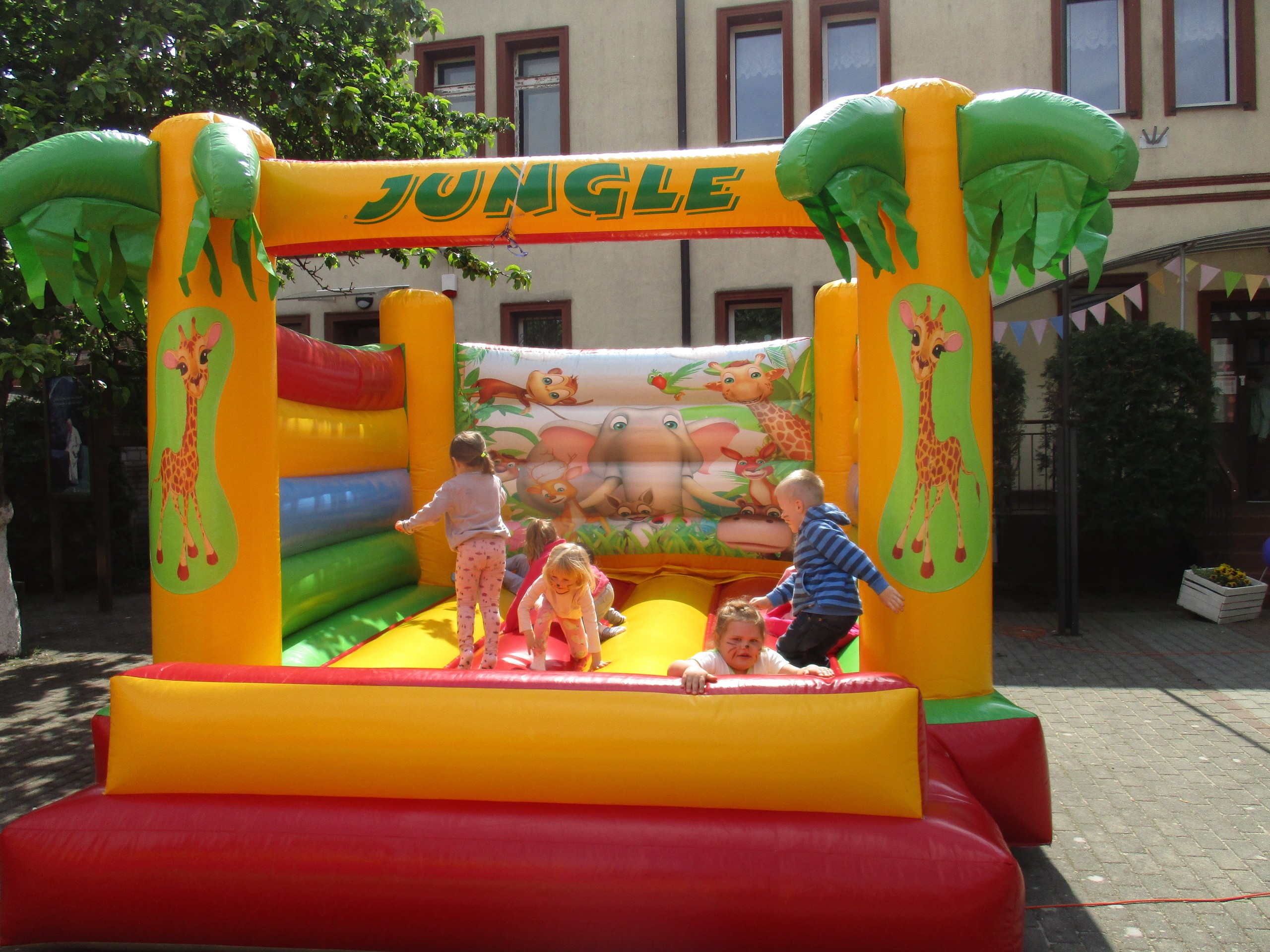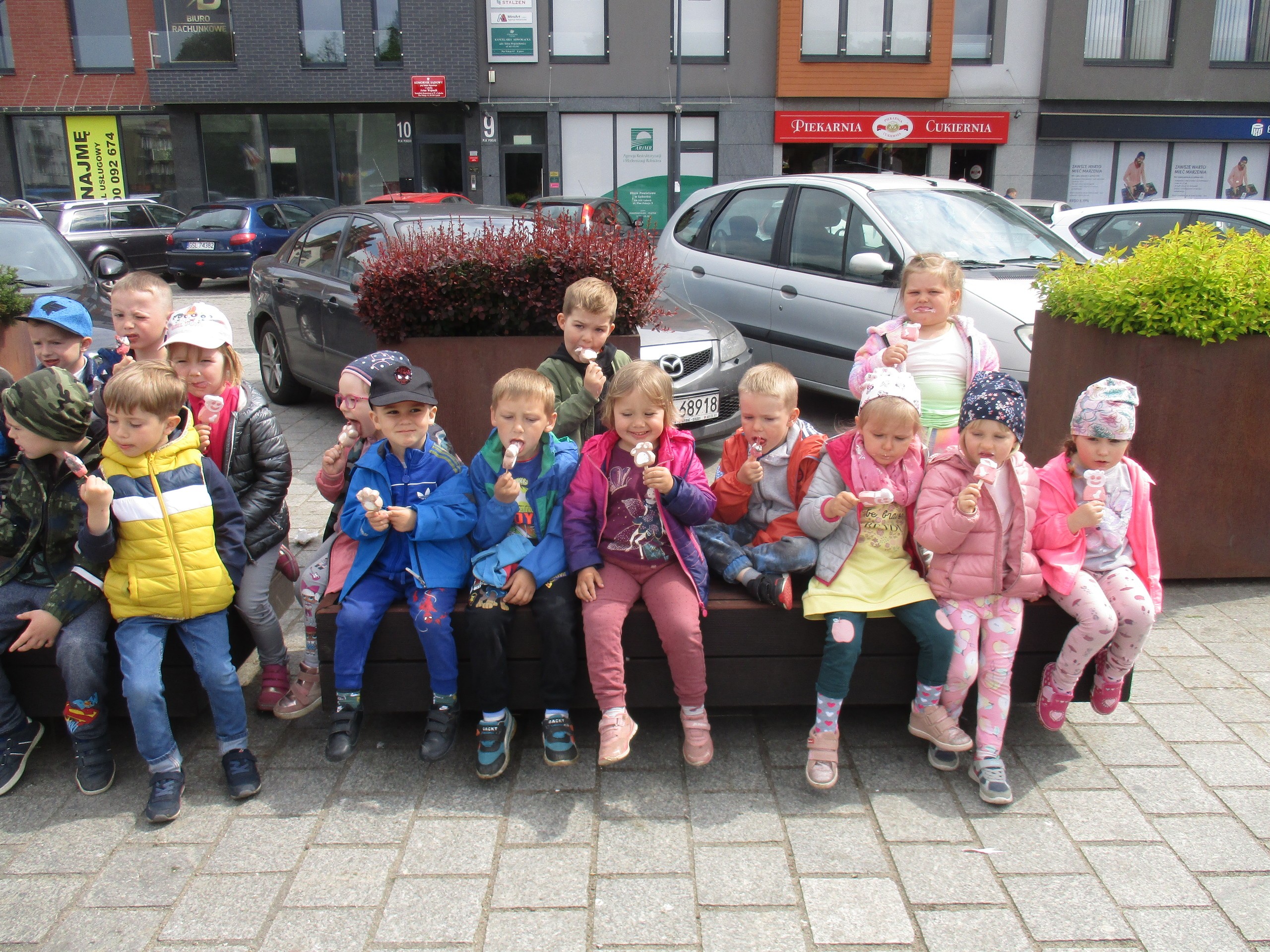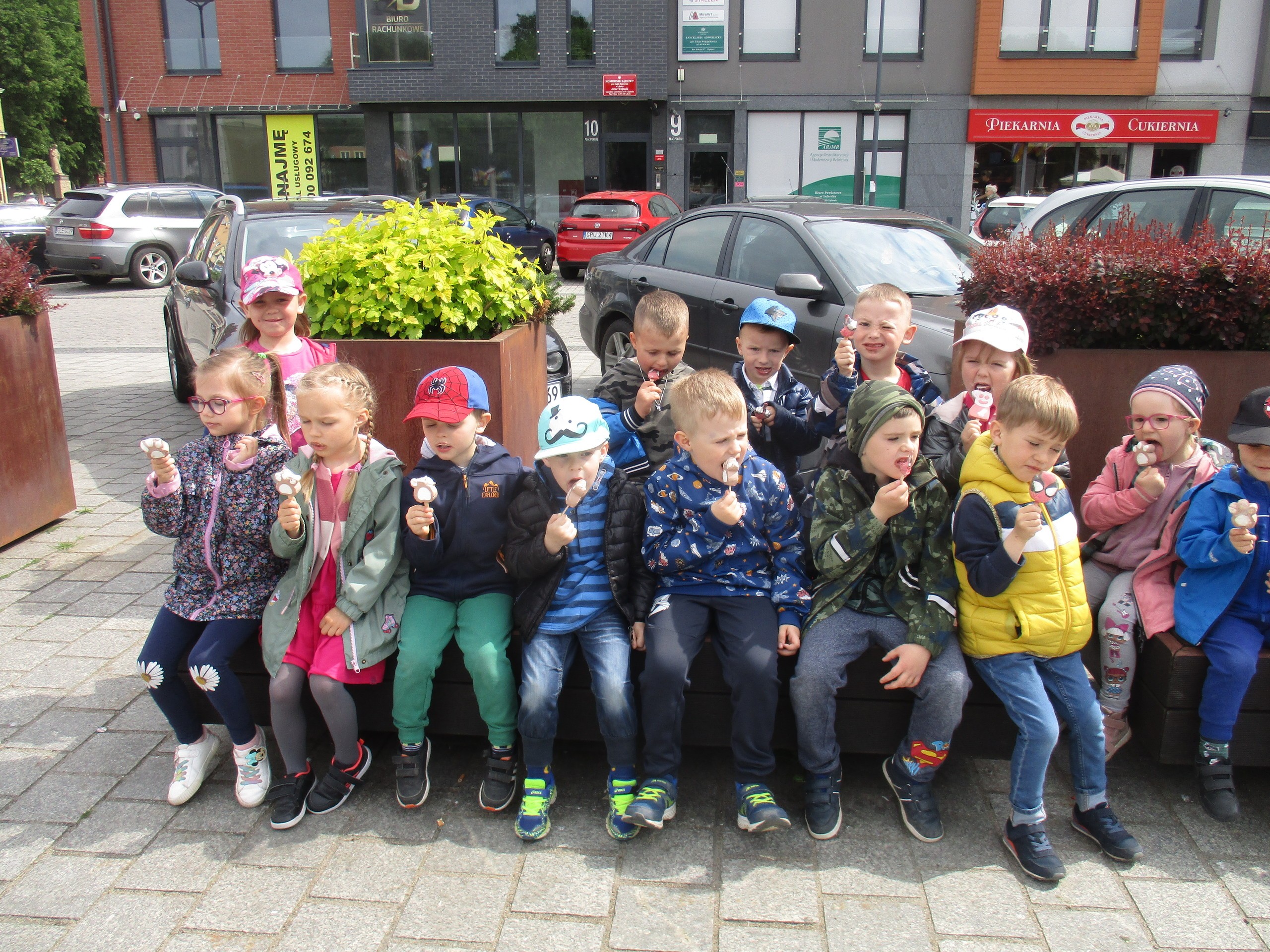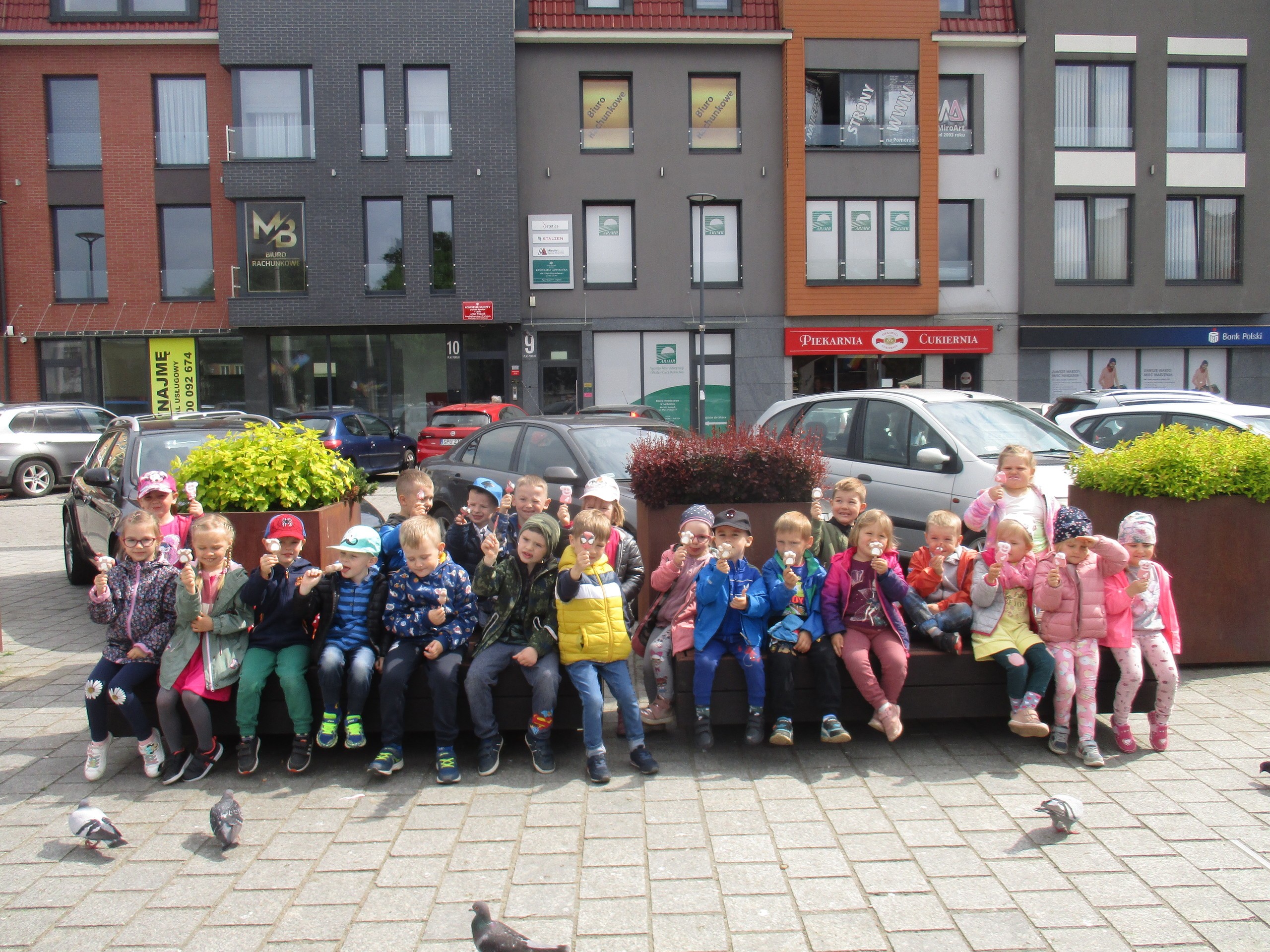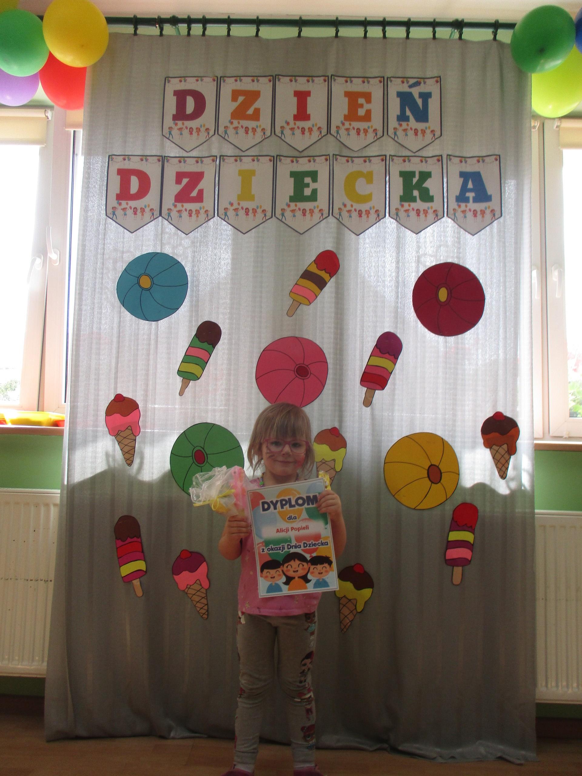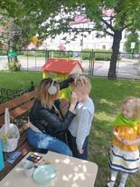 Dzisiaj obchodzimy Międzynarodowy Dzień Dziecka. Z tej okazji pojechaliśmy na wycieczkę do Lęborka. Po długim spacerze zjedliśmy pyszne lody na Placu Pokoju. Potem zostaliśmy zaproszeni do zaprzyjaźnionego Przedszkola Katolickiego im. Aniołów Stróżów w Lęborku na świetną zabawę. Bawiliśmy się skacząc na dmuchańcach. Pani z Przedszkola pomalowała nam twarze. Skorzystaliśmy z uroków placu zabaw. Na koniec spotkania dostaliśmy w prezencie balony i lizaki. Po powrocie z udanego wyjazdu czekały na nas następne niespodzianki: dyplom z okazji Dnia Dziecka, upominki, słodycze i popcorn.