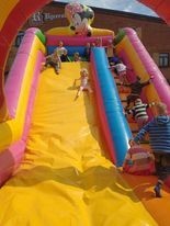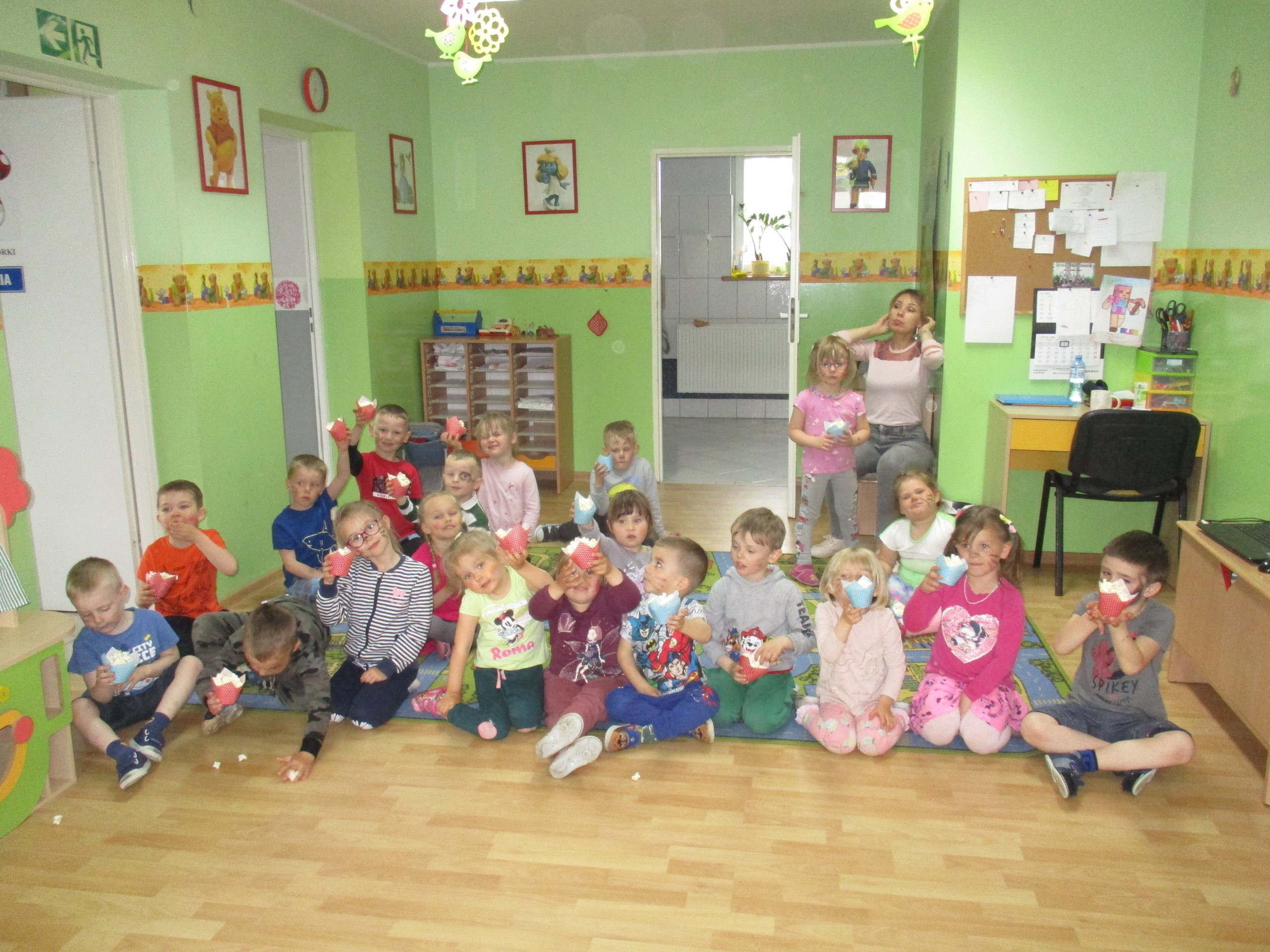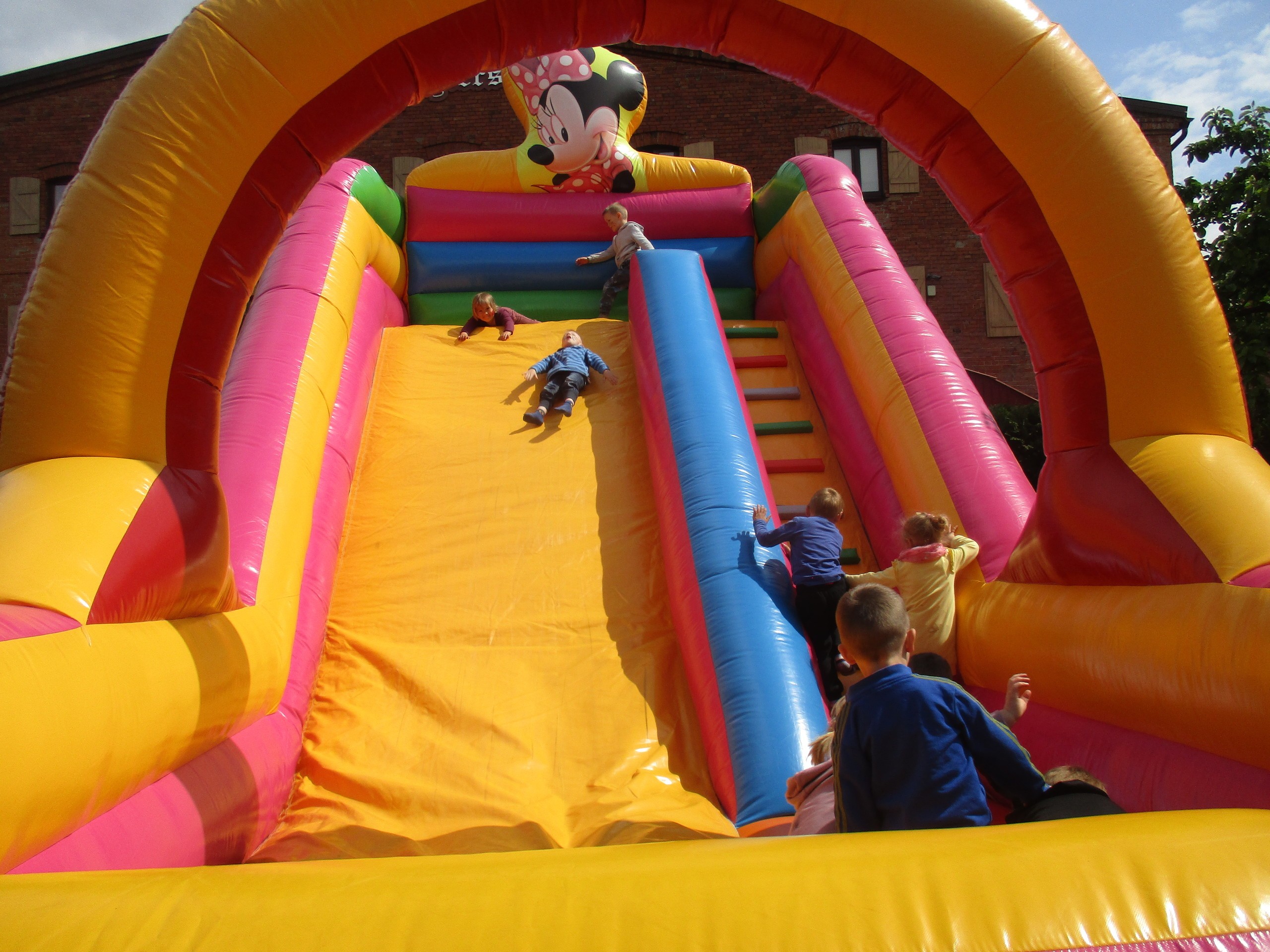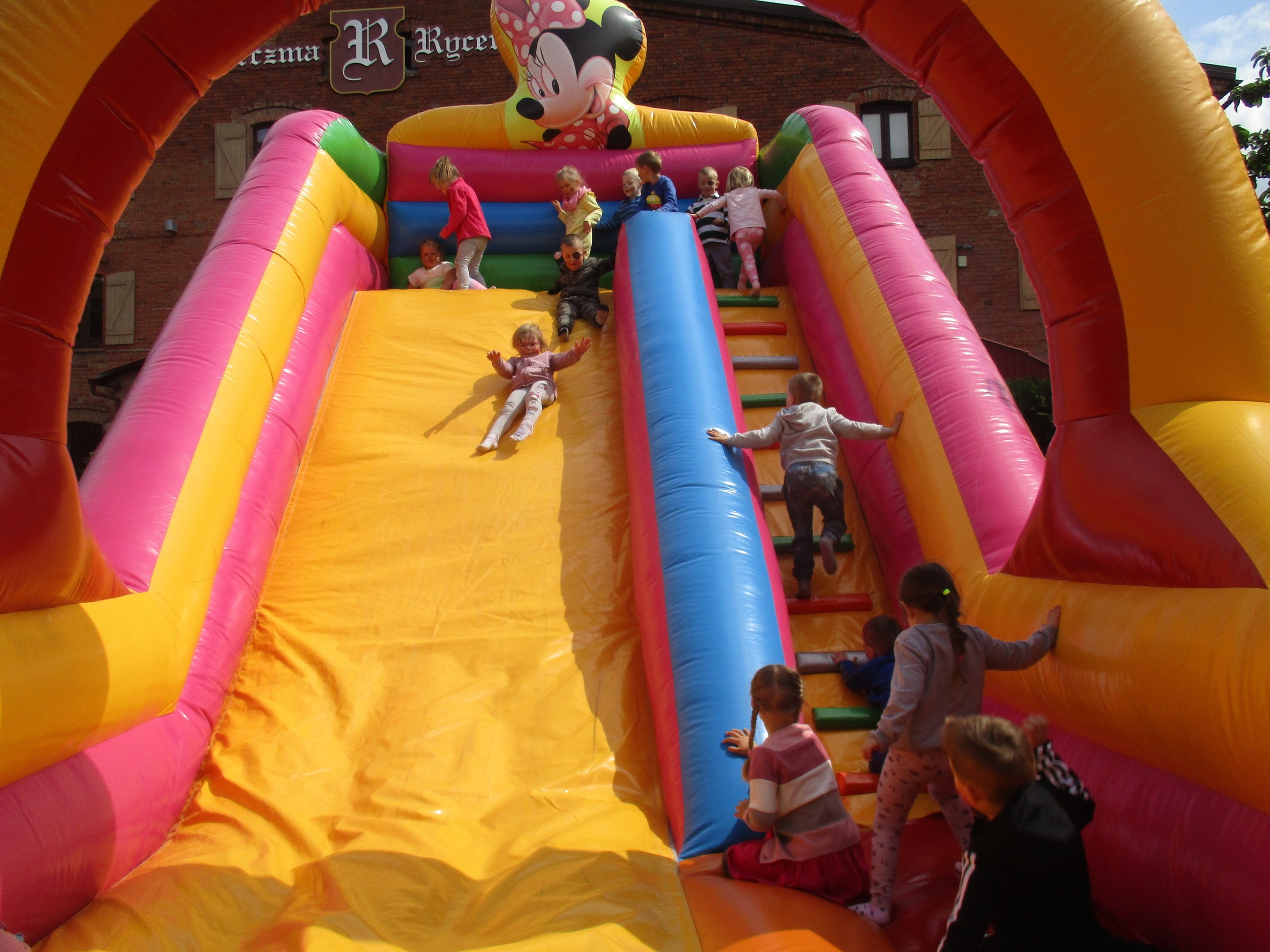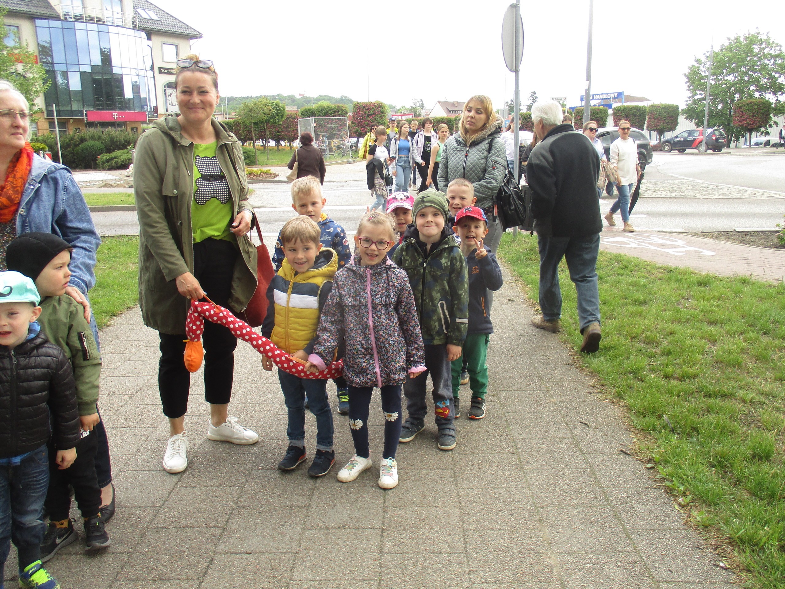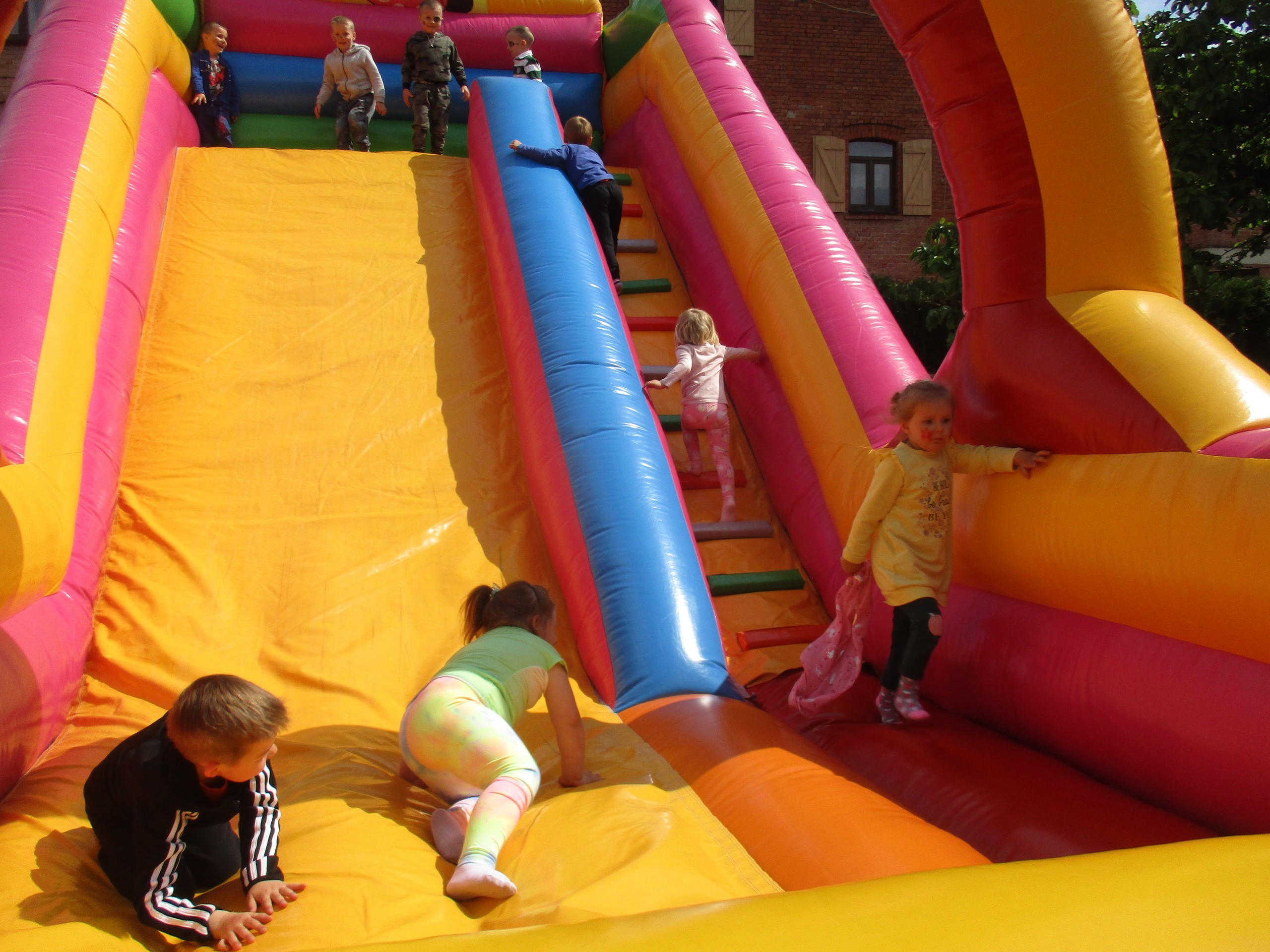 Dzisiaj obchodzimy Międzynarodowy Dzień Dziecka. Z tej okazji pojechaliśmy na wycieczkę do Lęborka. Po długim spacerze zjedliśmy pyszne lody na Placu Pokoju. Potem zostaliśmy zaproszeni do zaprzyjaźnionego Przedszkola Katolickiego im. Aniołów Stróżów w Lęborku na świetną zabawę. Bawiliśmy się skacząc na dmuchańcach. Pani z Przedszkola pomalowała nam twarze. Skorzystaliśmy z uroków placu zabaw. Na koniec spotkania dostaliśmy w prezencie balony i lizaki. Po powrocie z udanego wyjazdu czekały na nas następne niespodzianki: dyplom z okazji Dnia Dziecka, upominki, słodycze i popcorn.