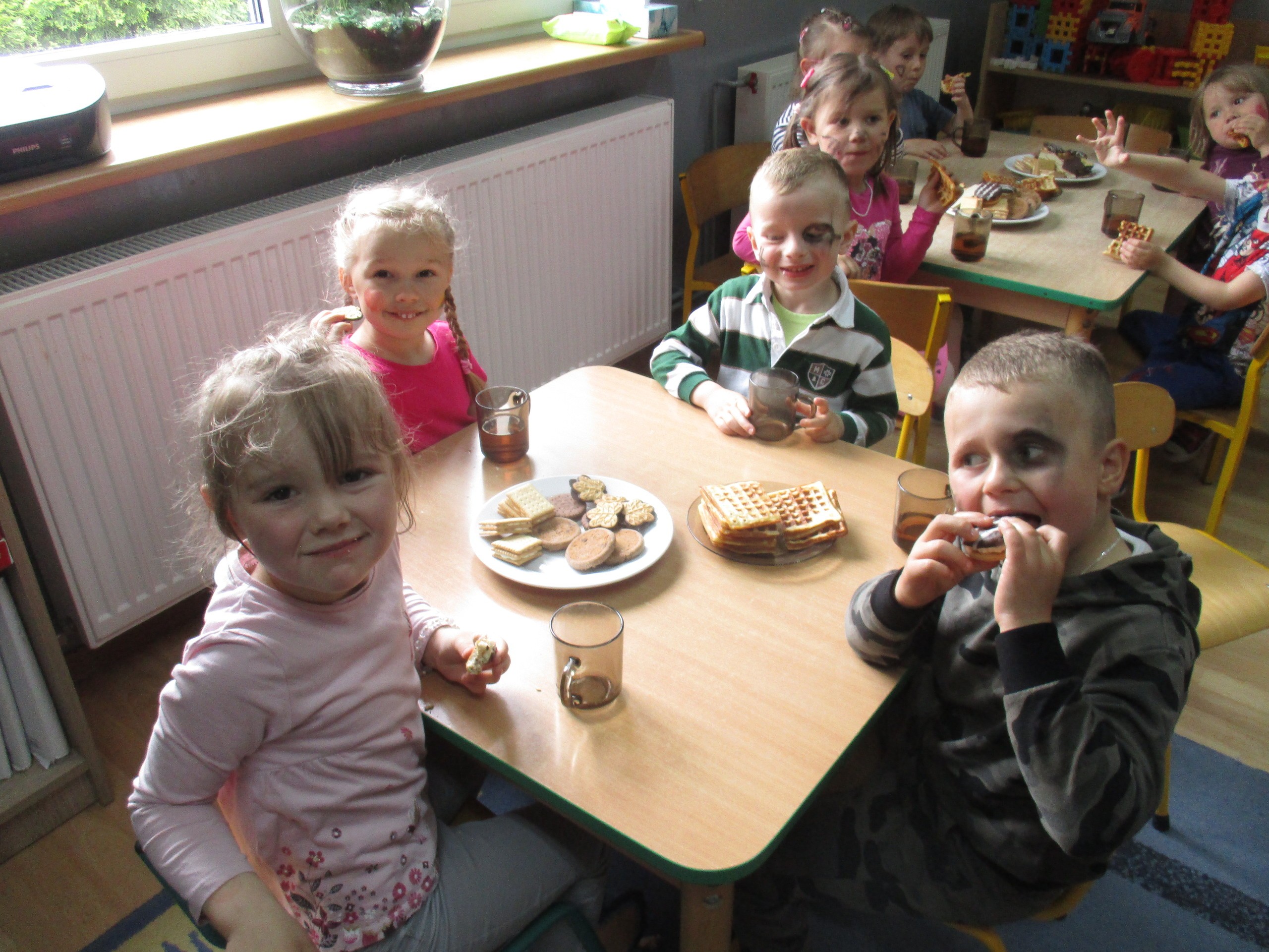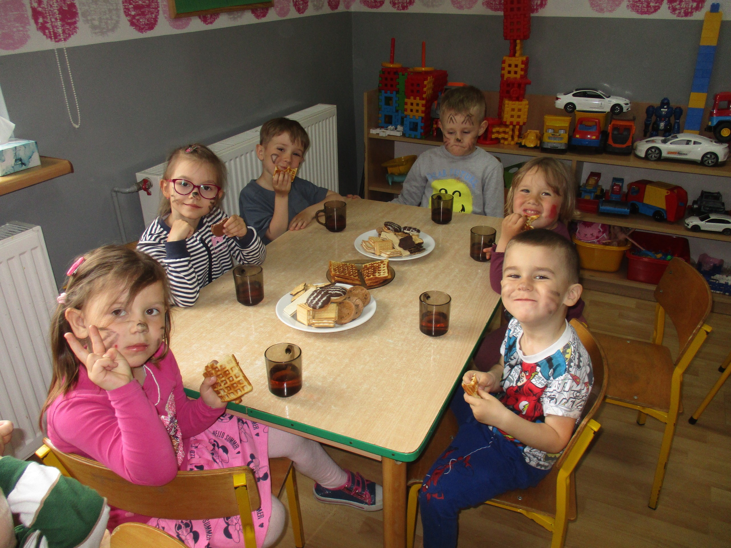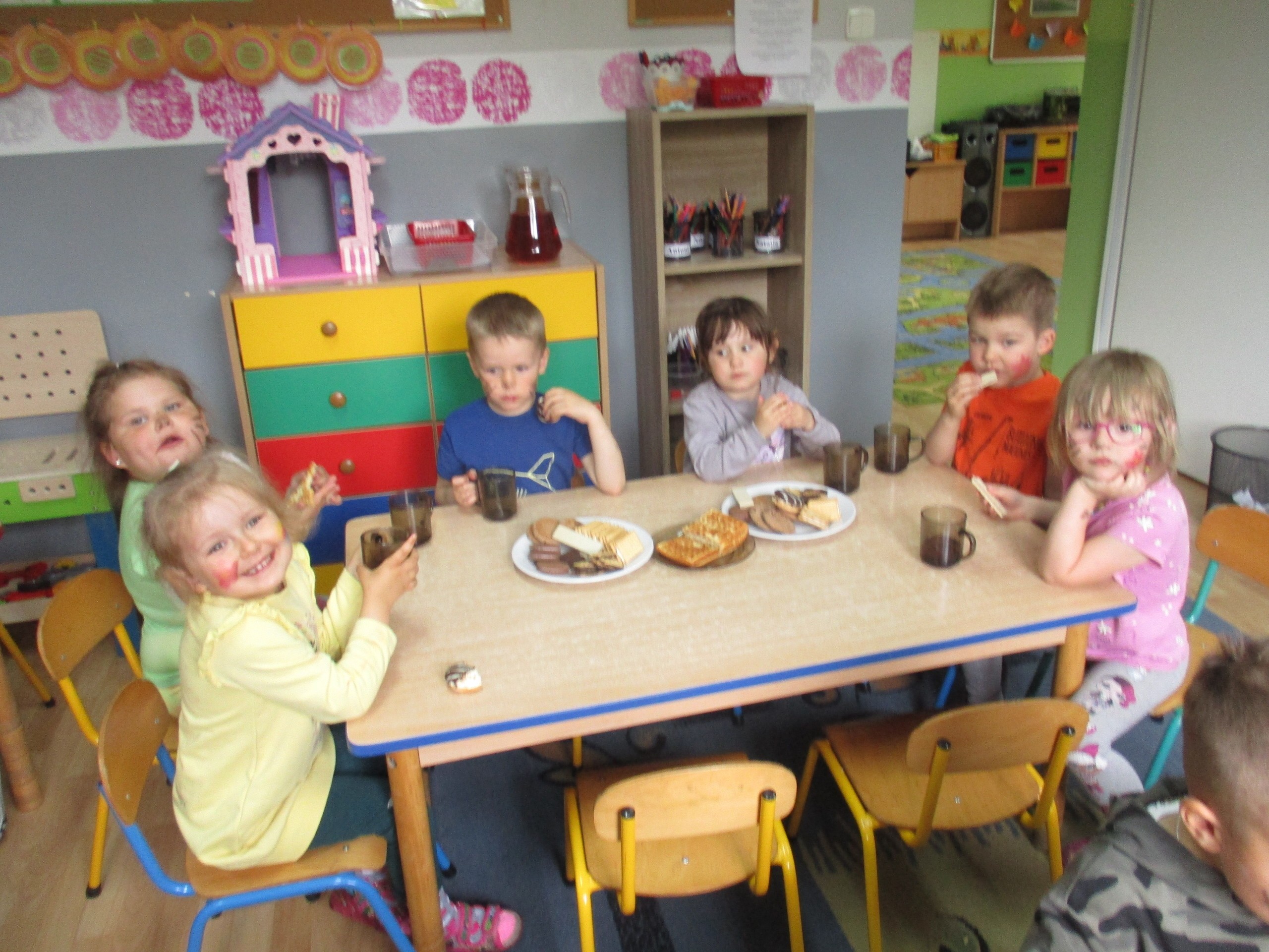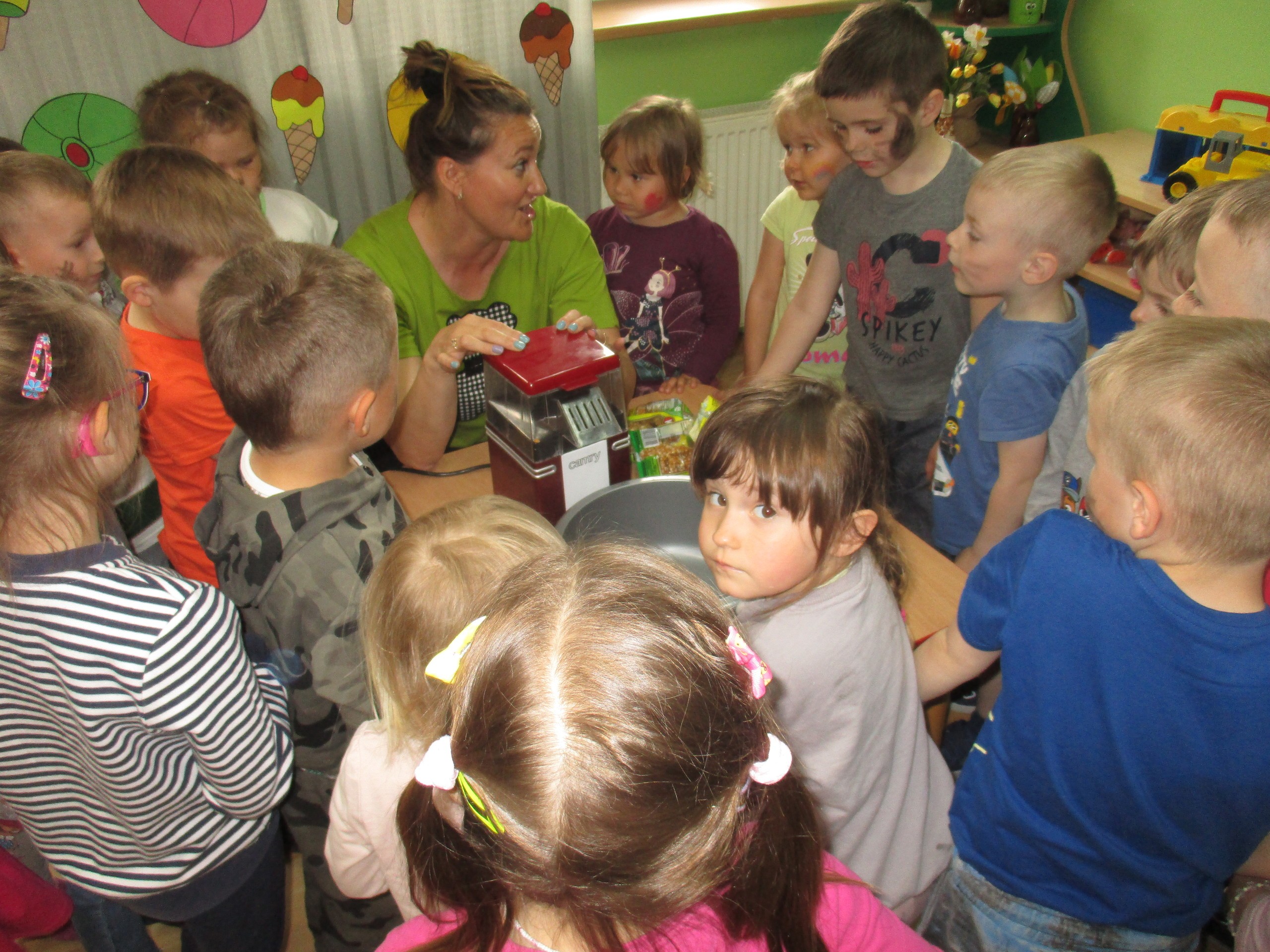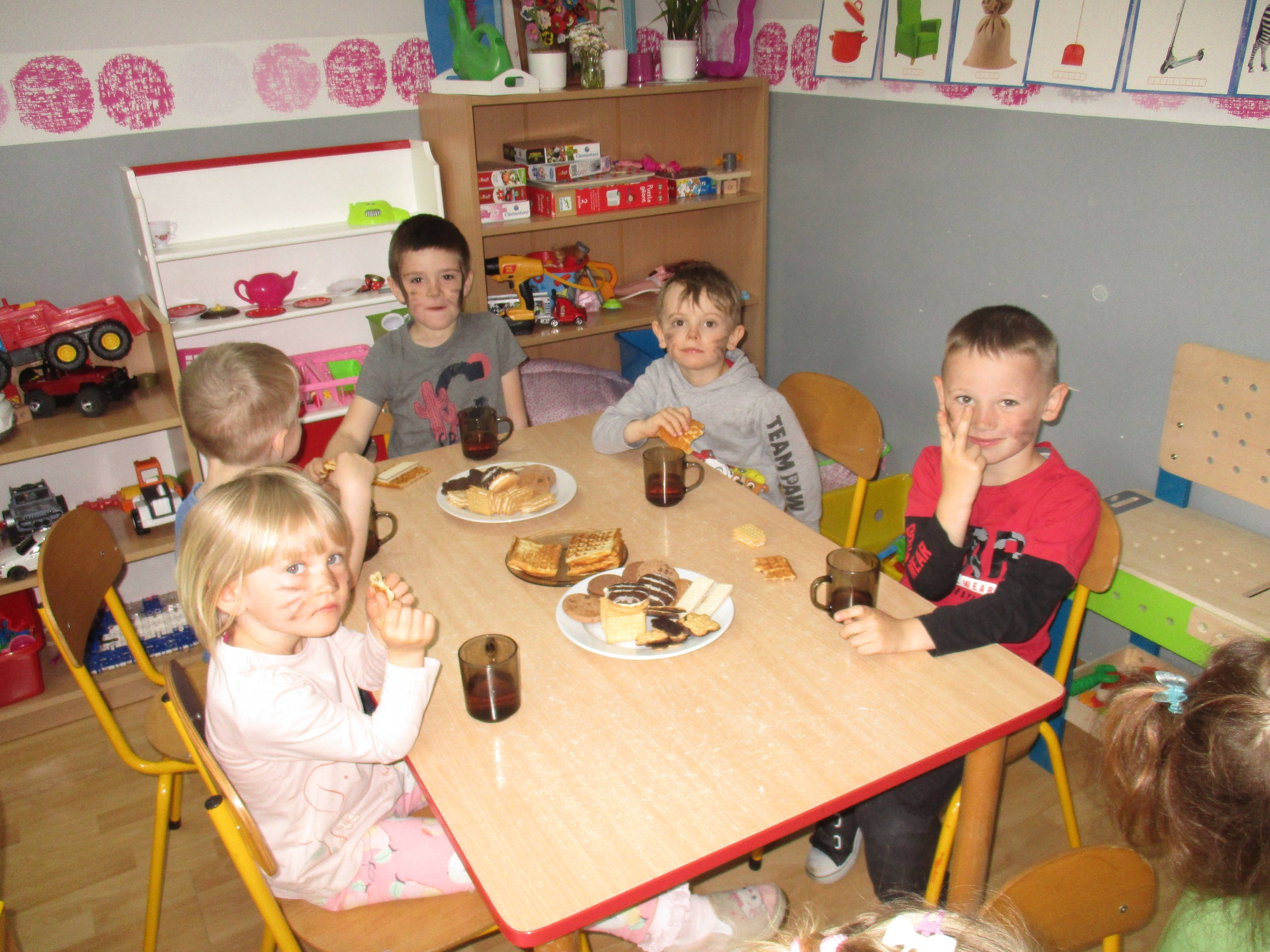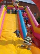 Dzisiaj obchodzimy Międzynarodowy Dzień Dziecka. Z tej okazji pojechaliśmy na wycieczkę do Lęborka. Po długim spacerze zjedliśmy pyszne lody na Placu Pokoju. Potem zostaliśmy zaproszeni do zaprzyjaźnionego Przedszkola Katolickiego im. Aniołów Stróżów w Lęborku na świetną zabawę. Bawiliśmy się skacząc na dmuchańcach. Pani z Przedszkola pomalowała nam twarze. Skorzystaliśmy z uroków placu zabaw. Na koniec spotkania dostaliśmy w prezencie balony i lizaki. Po powrocie z udanego wyjazdu czekały na nas następne niespodzianki: dyplom z okazji Dnia Dziecka, upominki, słodycze i popcorn.