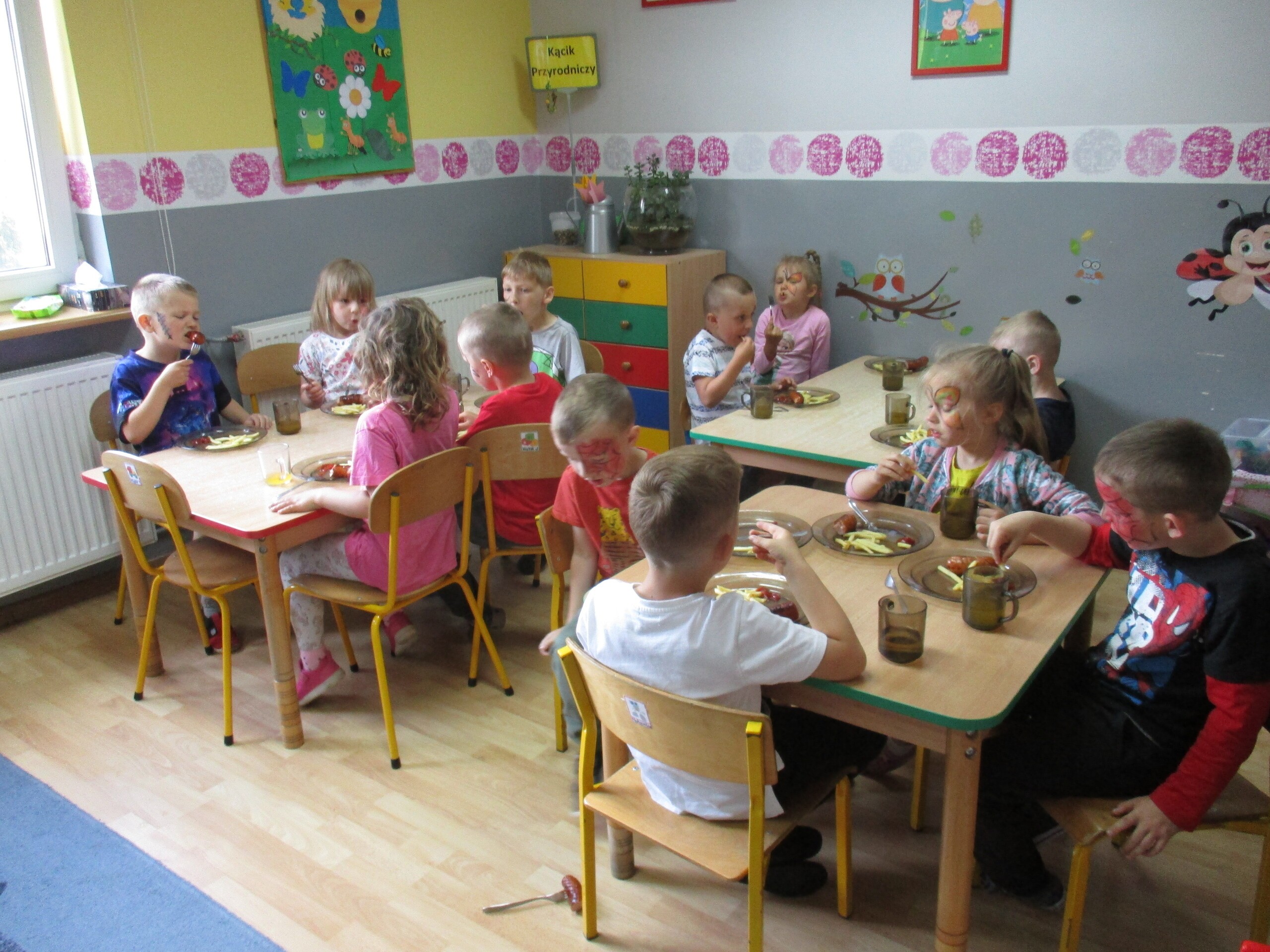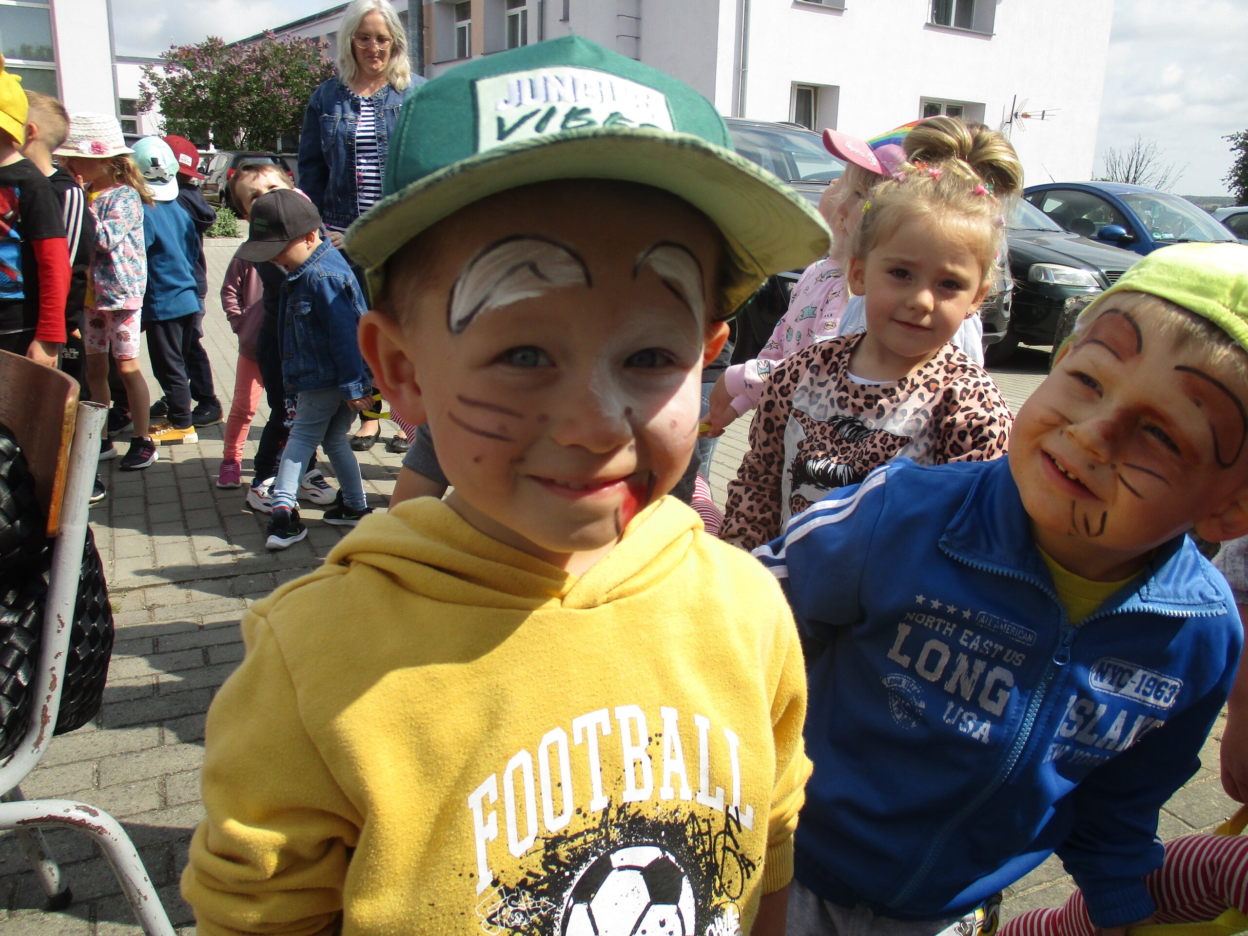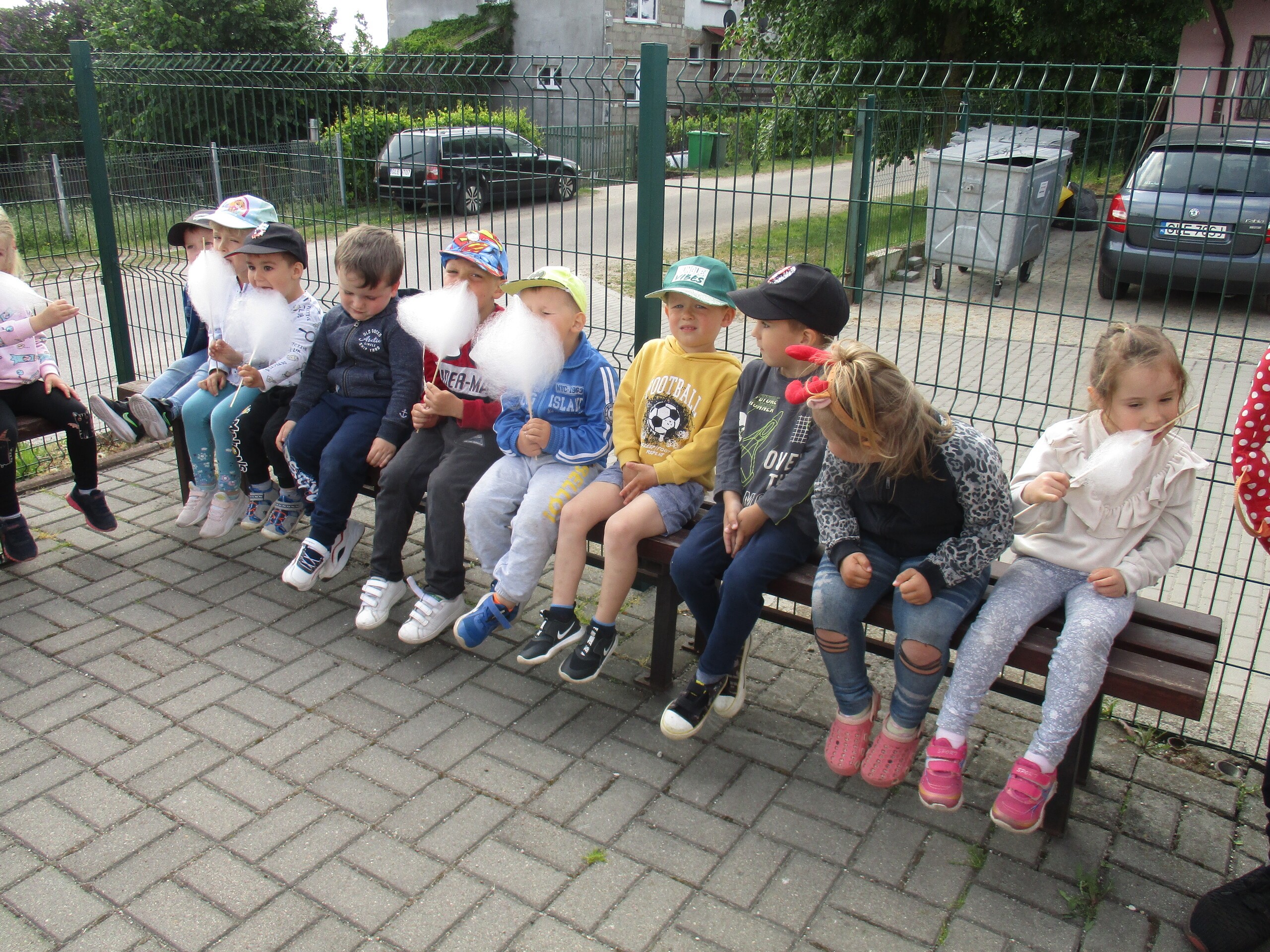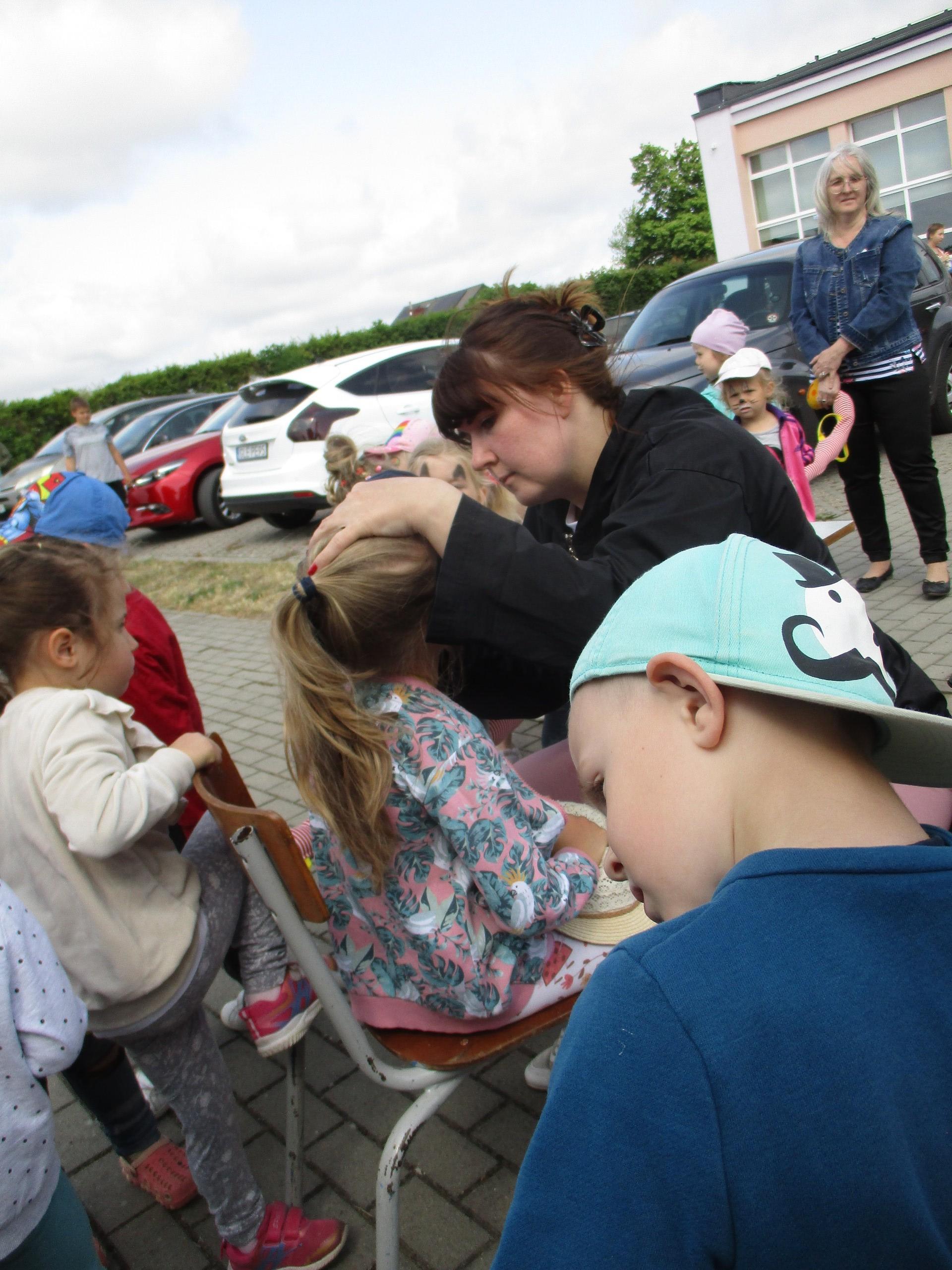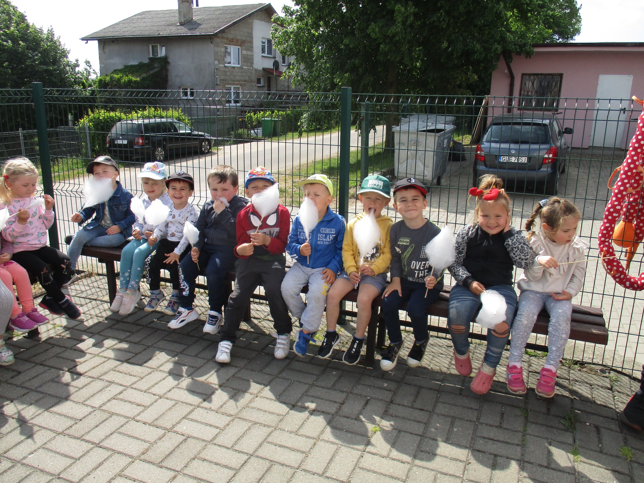 Dzisiaj kolejne atrakcje z okazji Dnia Dziecka. Na przedszkolaki czekały: wata cukrowa, gofry, frytki i kiełbasa z grilla. Chętnym dzieciom zostały przez Panią Patrycję pomalowane buzie. Na kazdego przedszkolaka czekała dodatkowa atrakcja w postaci baniek mydlanych i wodnych piłeczek.