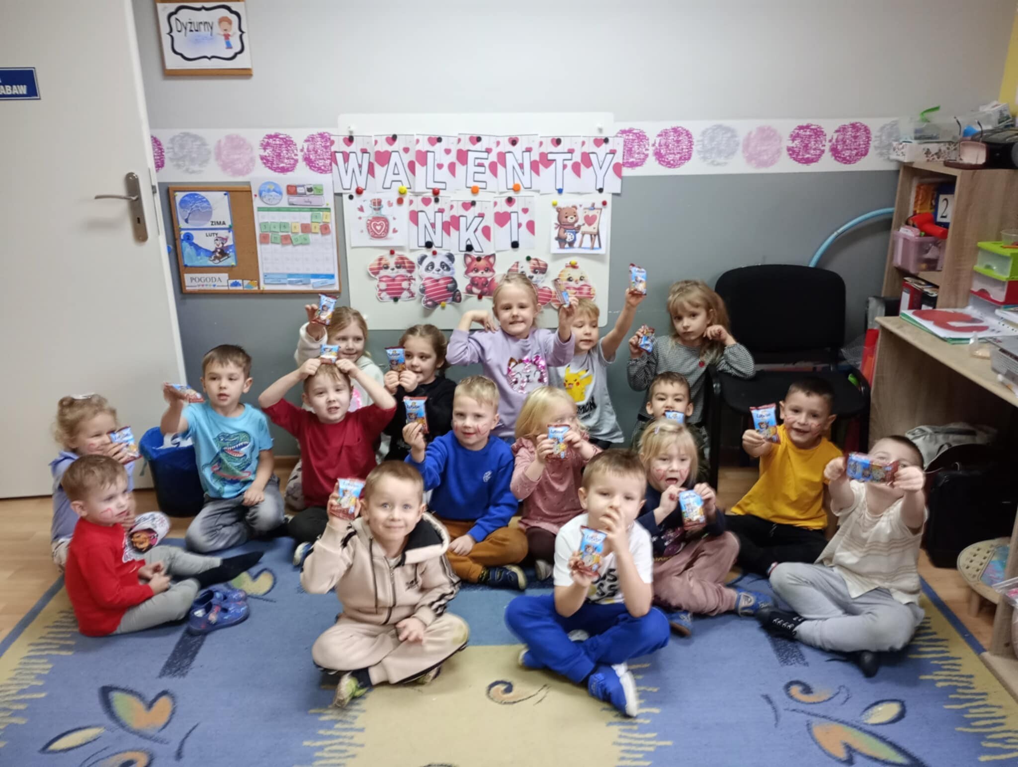 Walentynki to radosne i kolorowe święto, które i w tym roku było celebrowane w naszym przedszkolu. Takie dni mają na celu promowanie miłości, sympatii, przyjaźni i życzliwości wśród maluchów. Dzieci przygotowywały własnoręcznie kartki walentynkowe ozdabiając je w różny sposób. Atmosfera była bardzo przyjazna i pełna uśmiechów. Staś Syldatk z okazji Walentynek przyniósł dla wszystkich dzieci słodką niespodziankę a Leon Wrzesień dla swoich koleżanek serduszkowe balony. Panie wręczyły dzieciom lizaki w kształcie serca. Takie święto pozwala dzieciom wyrażać emocje i uczyć się wartości takich jak współpraca, empatia i szacunek dla innych.