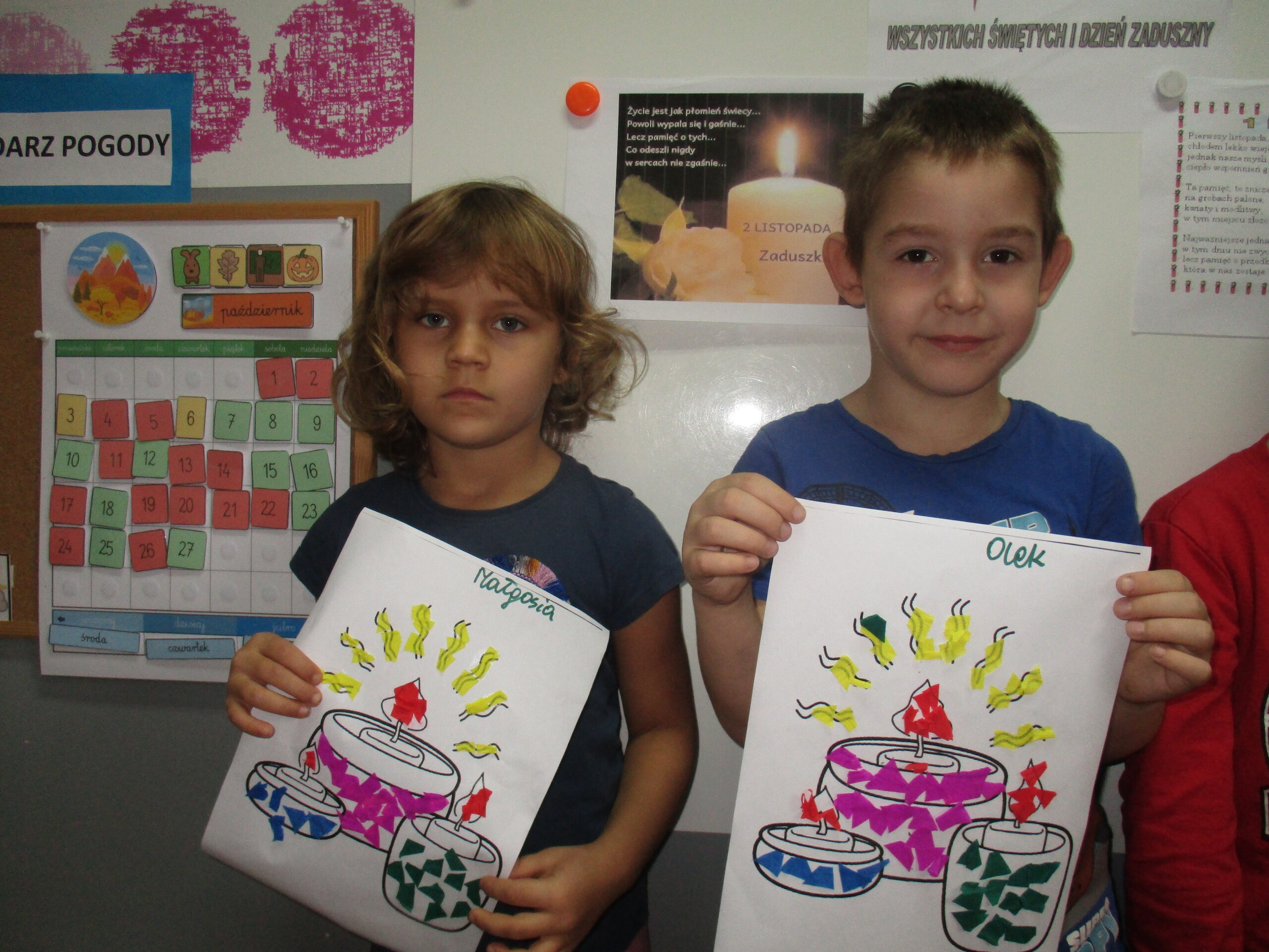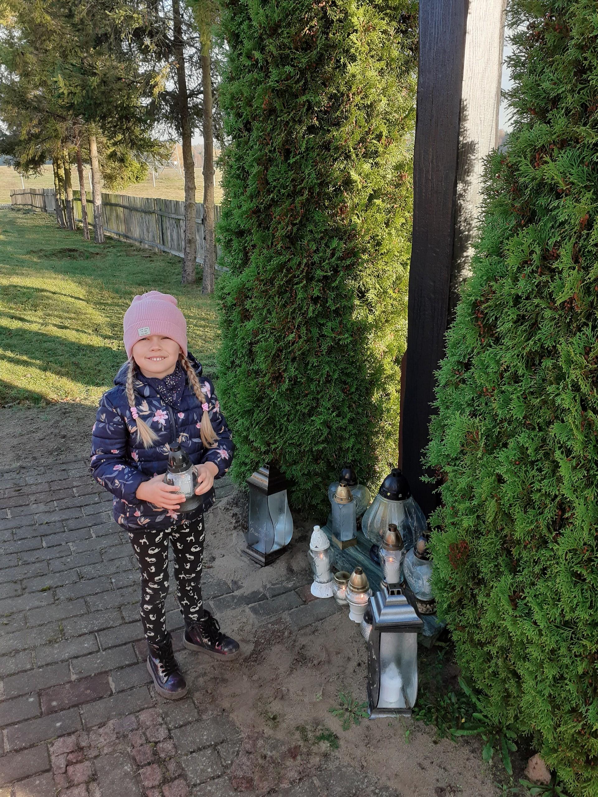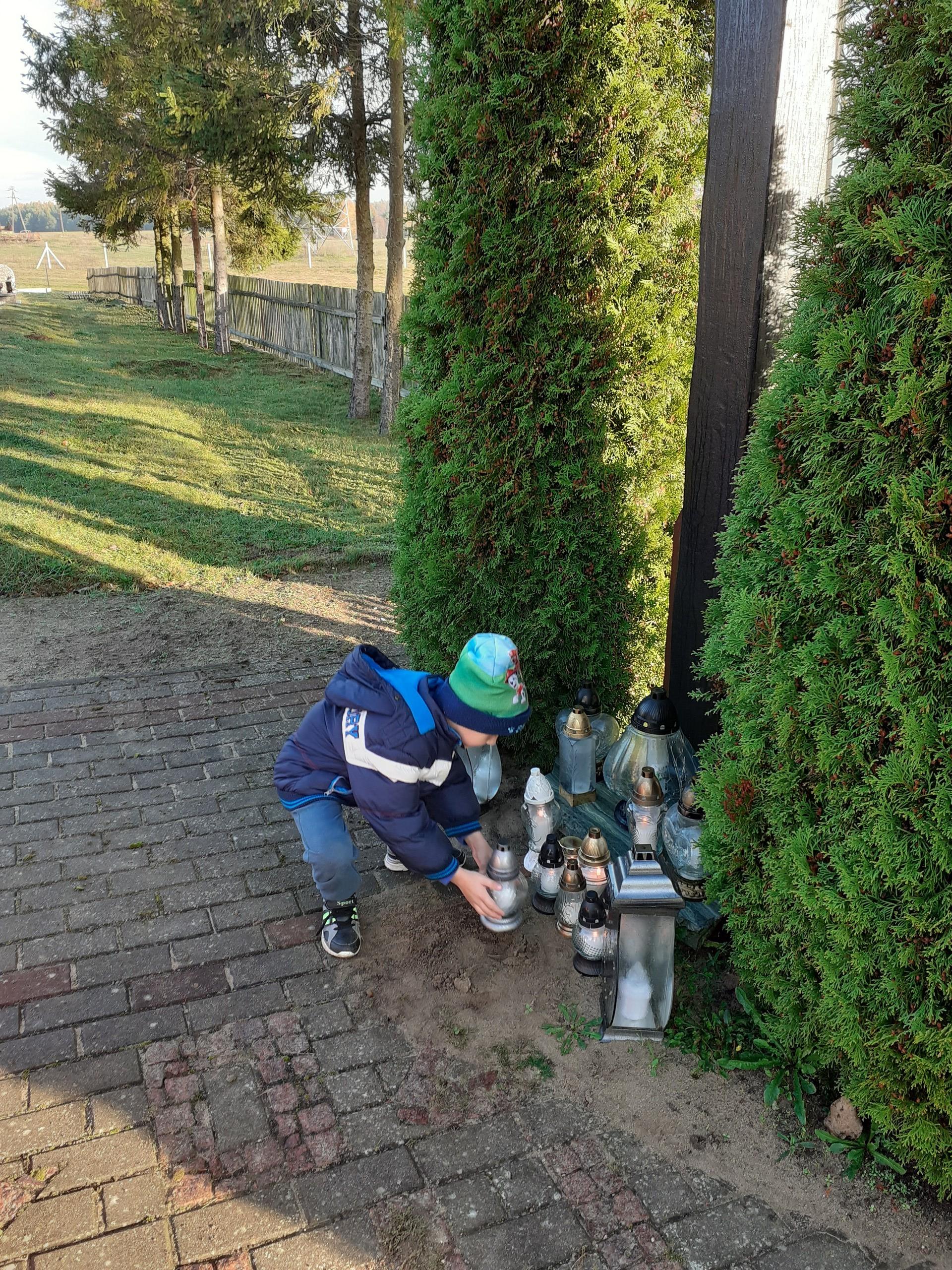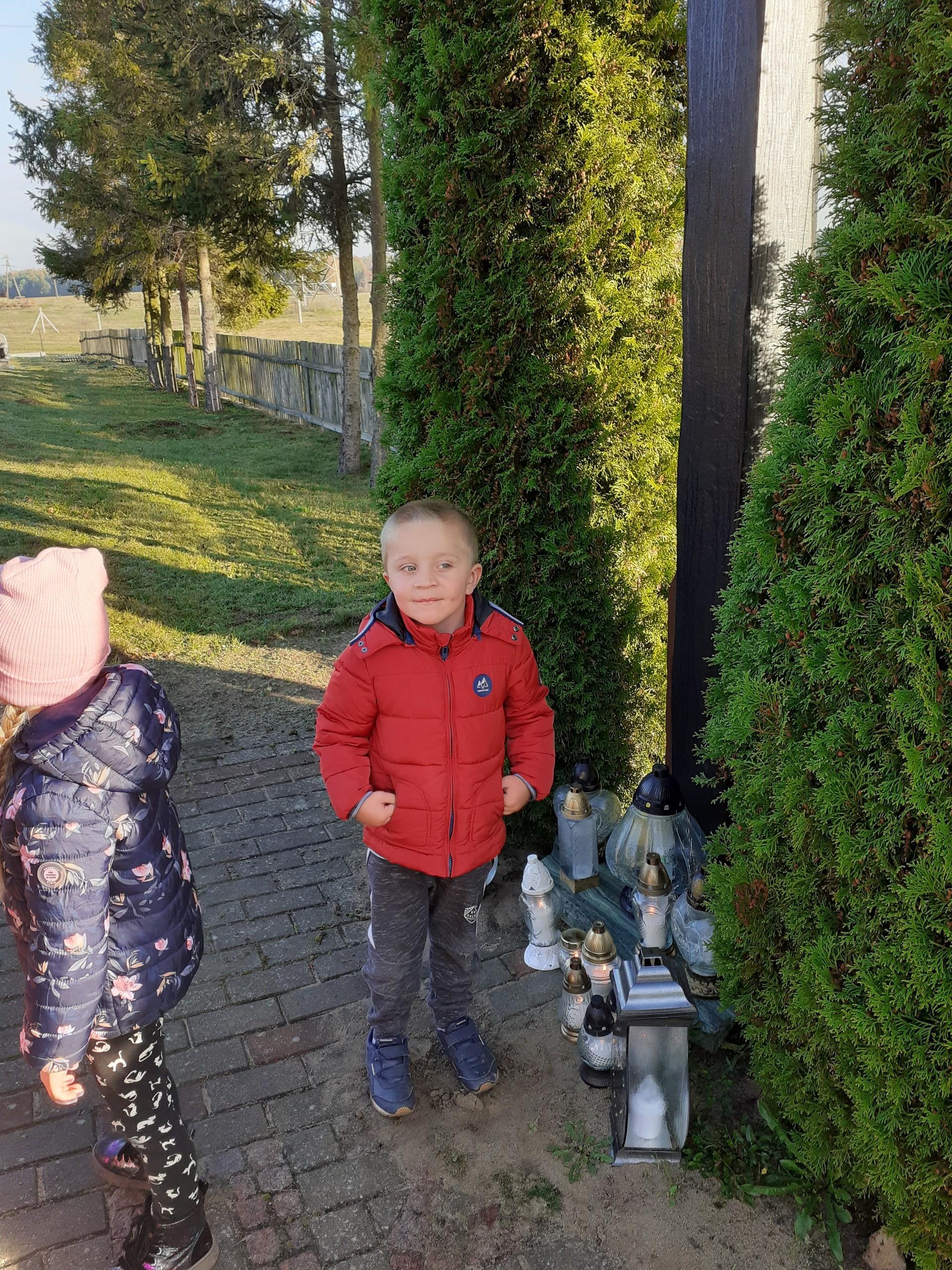 Niedługo 1 listopada. Z tej okazji przedszkolaki czynnie włączyły się do akcji "Szkoła pamięta". Dzieci rozmawiały o nadchodzącym Dniu Wszystkich Świętych. Dowiedziały się w jaki sposób wspominamy zmarłych członków rodziny oraz żołnierzy poległych za naszą Ojczyznę. Wszystkie dzieci wykonały prace plastyczne tematycznie związane ze świętem zadumy i pamięci. Następnie wszyscy udali się na pobliski cmentarz, gdzie pod krzyżem zostały zapalone znicze za wszystkich zmarłych.