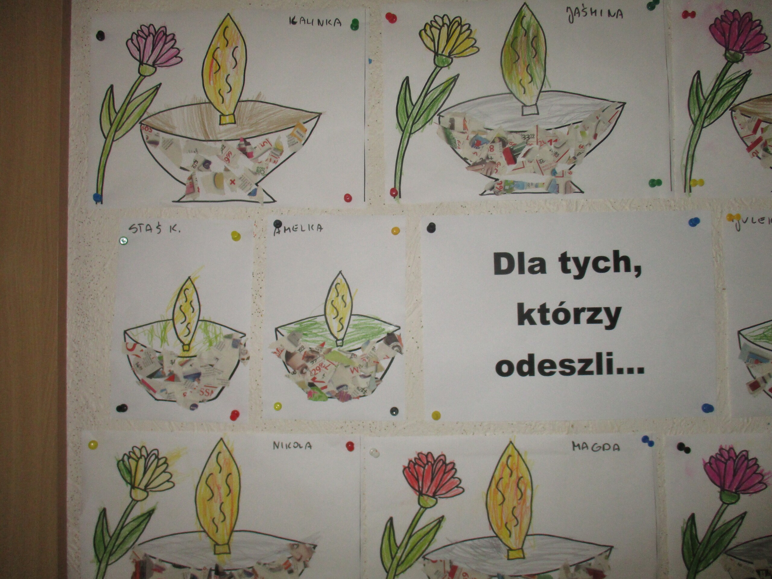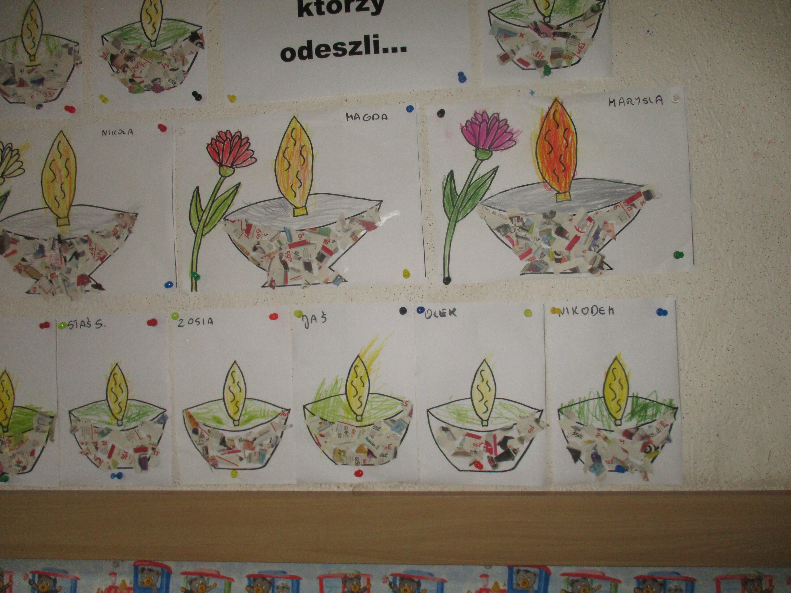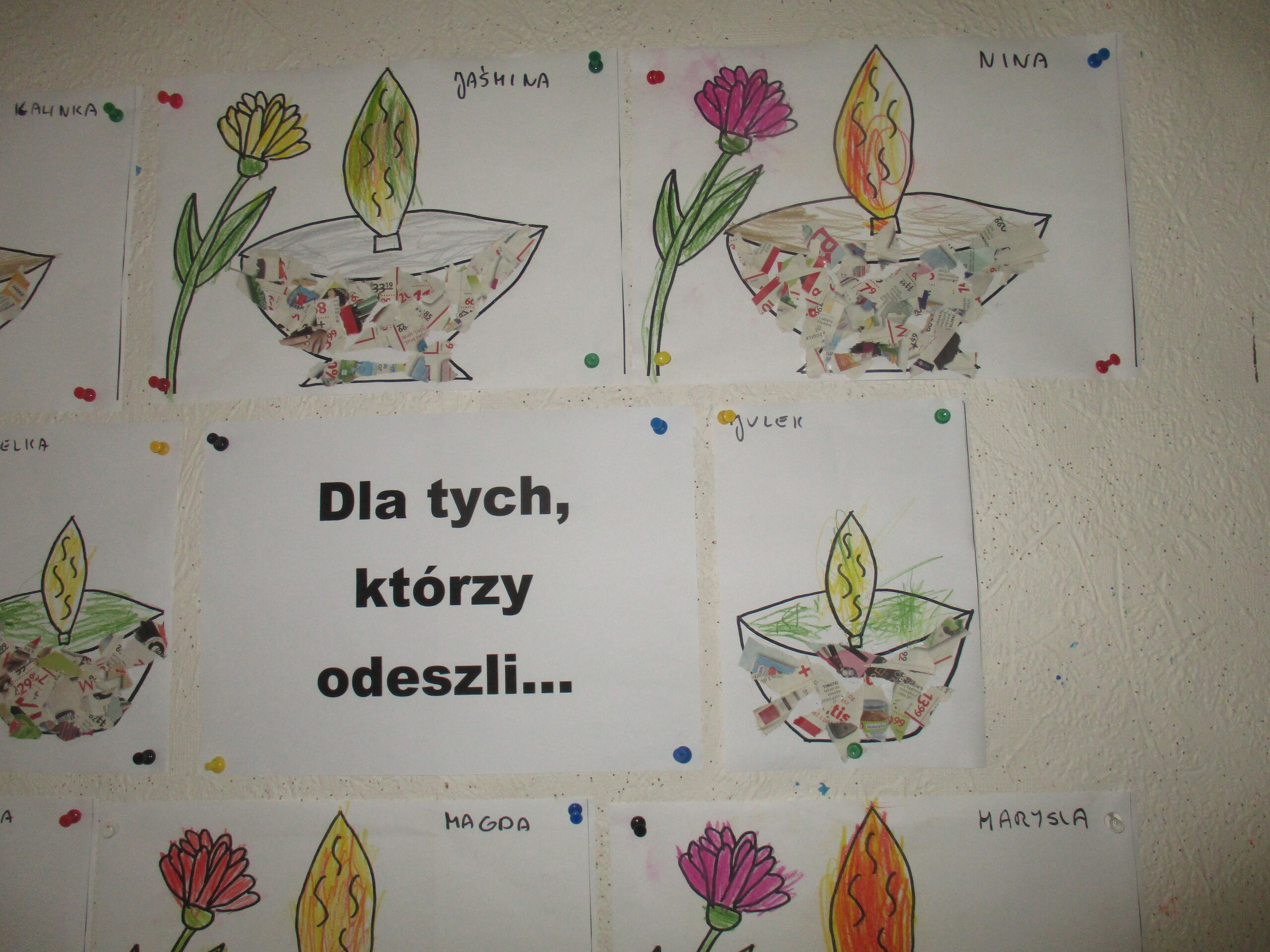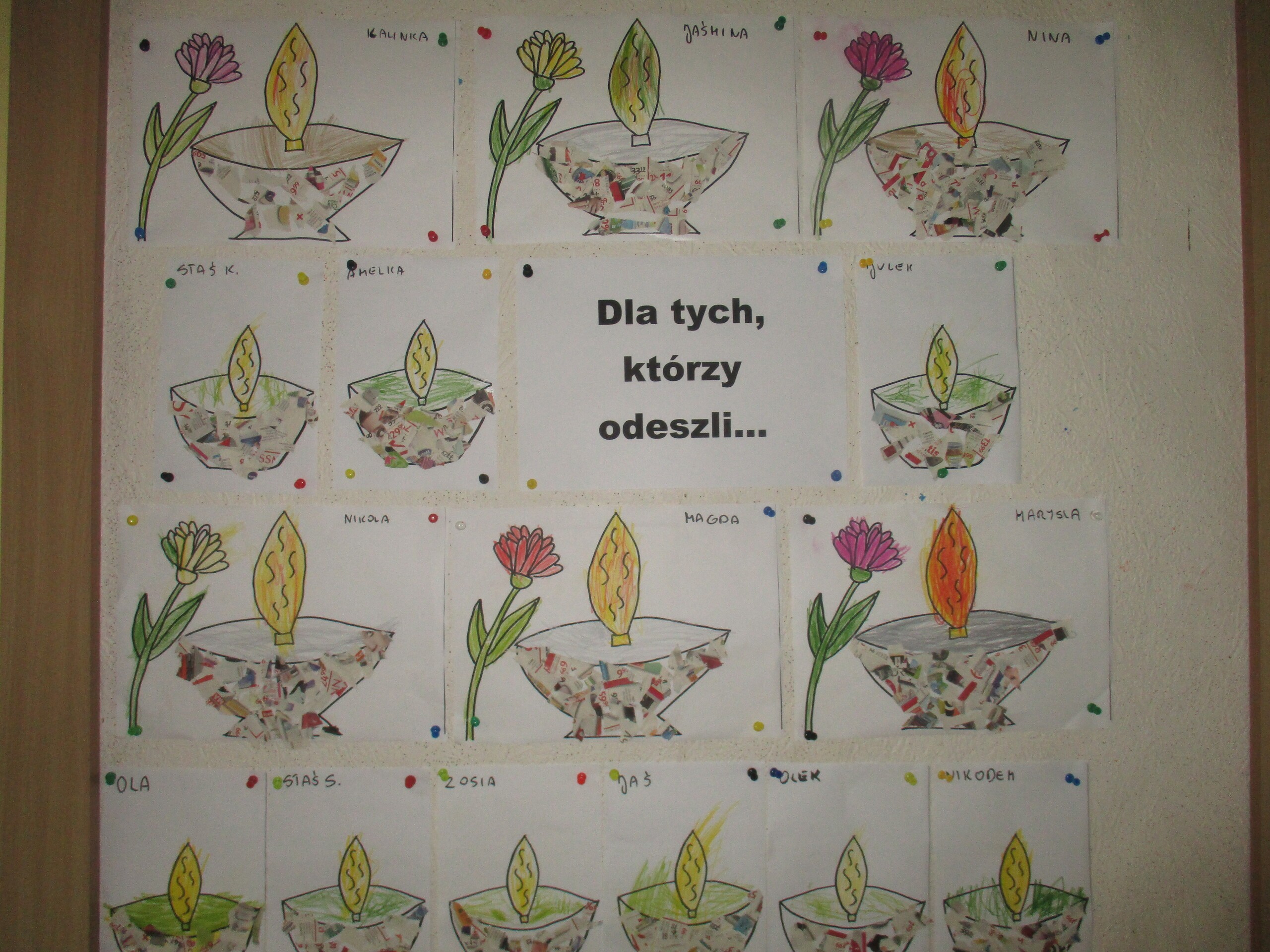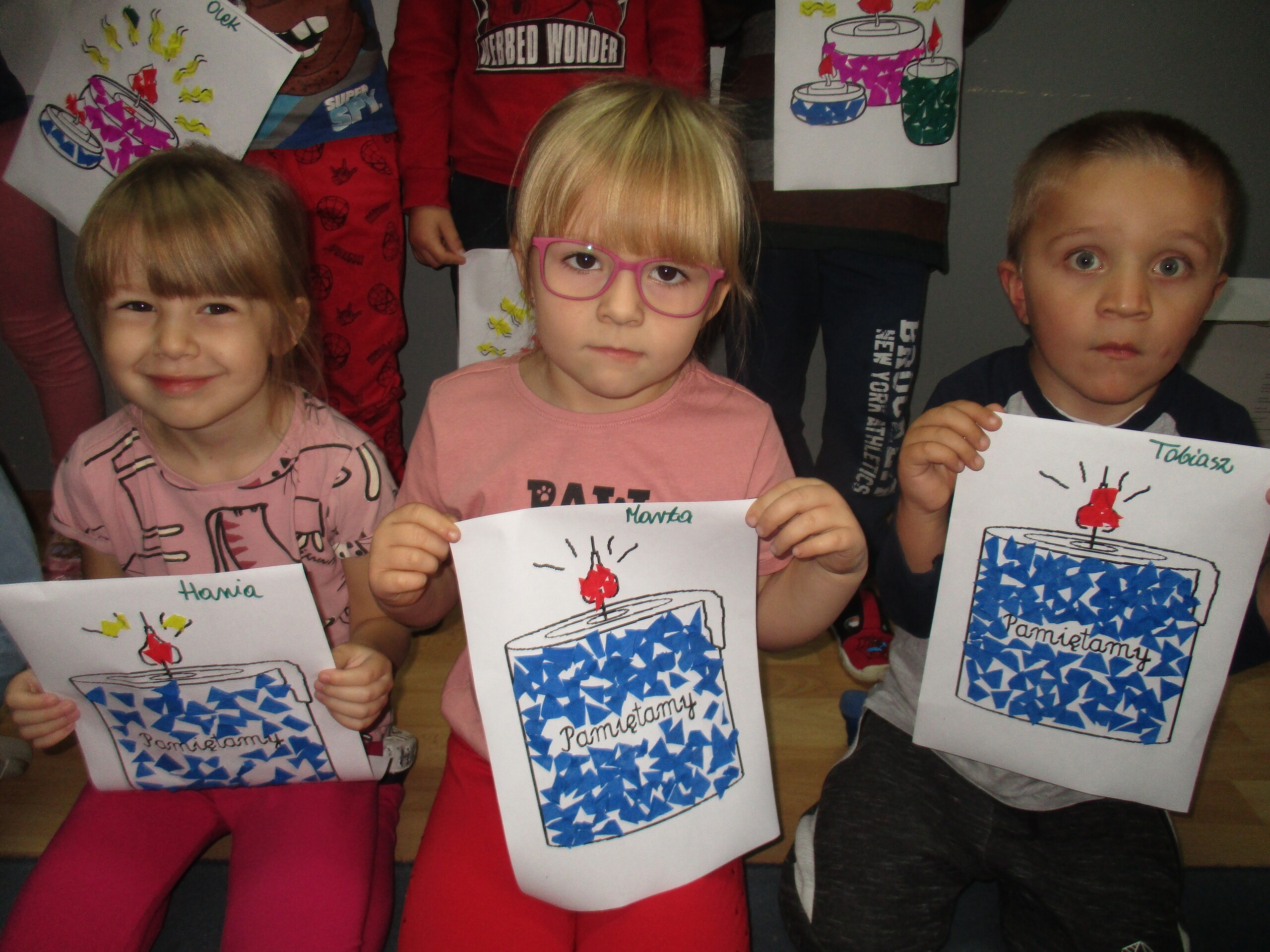 Niedługo 1 listopada. Z tej okazji przedszkolaki czynnie włączyły się do akcji "Szkoła pamięta". Dzieci rozmawiały o nadchodzącym Dniu Wszystkich Świętych. Dowiedziały się w jaki sposób wspominamy zmarłych członków rodziny oraz żołnierzy poległych za naszą Ojczyznę. Wszystkie dzieci wykonały prace plastyczne tematycznie związane ze świętem zadumy i pamięci. Następnie wszyscy udali się na pobliski cmentarz, gdzie pod krzyżem zostały zapalone znicze za wszystkich zmarłych.