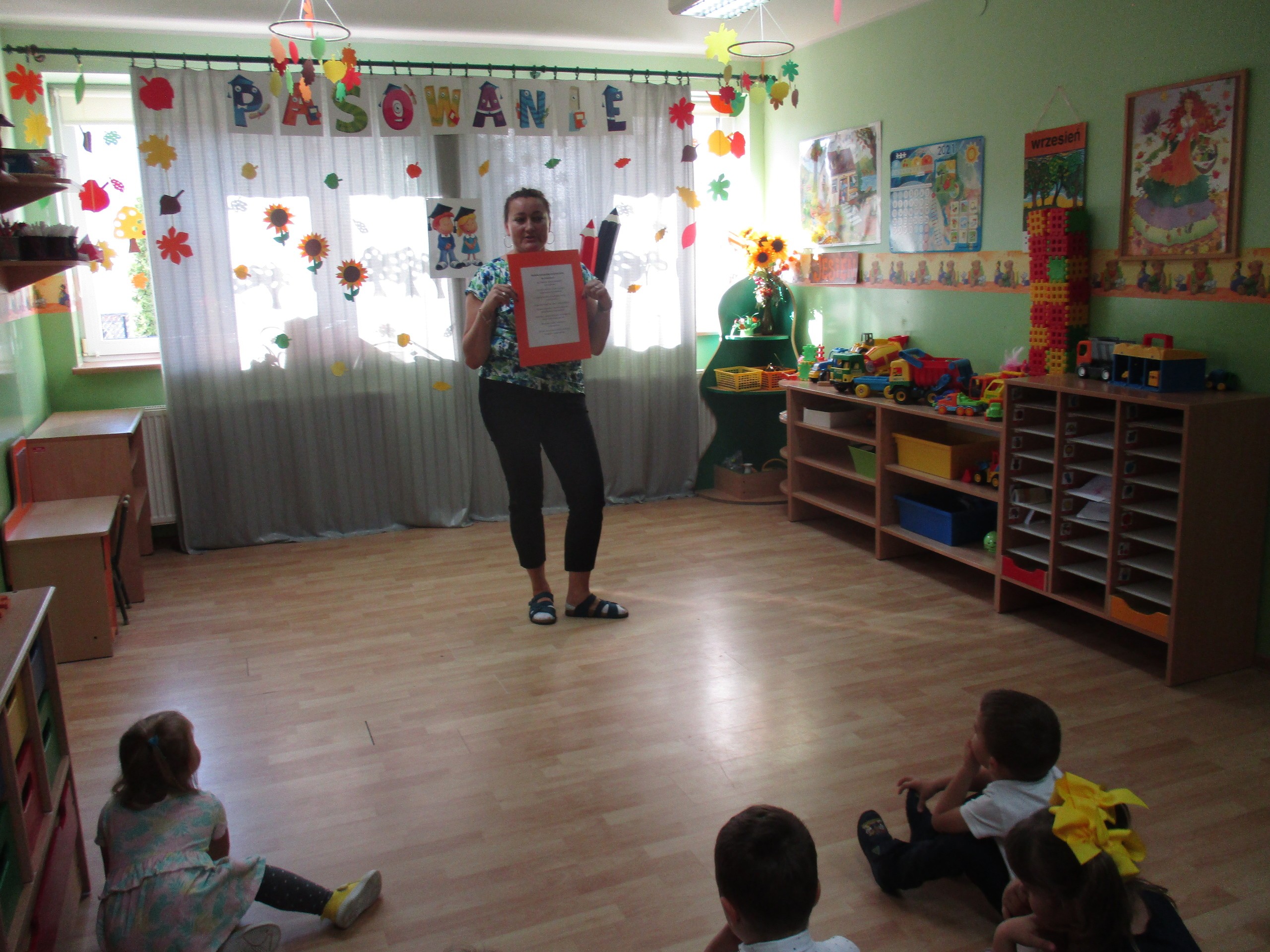 Radosny dzień w przedszkolu. Nasze kochane dzieci zostały oficjalnie pasowane na przedszkolaków. Wszystkie dzieci wspaniale się bawiły i brały udział w różnych konkurencjach. Przedszkolaki złożyły uroczystą przysięgę, otrzymały dyplomy i rożek z niespodzianką. Na koniec zostały zaproszone na słodki poczęstunek. Naszym wszystkim dzielnym przedszkolakom, życzymy samych radosnych i słonecznych dni. By w przedszkolu spełniały się Wasze marzenia, a spędzony tutaj czas był dla Was magiczny.